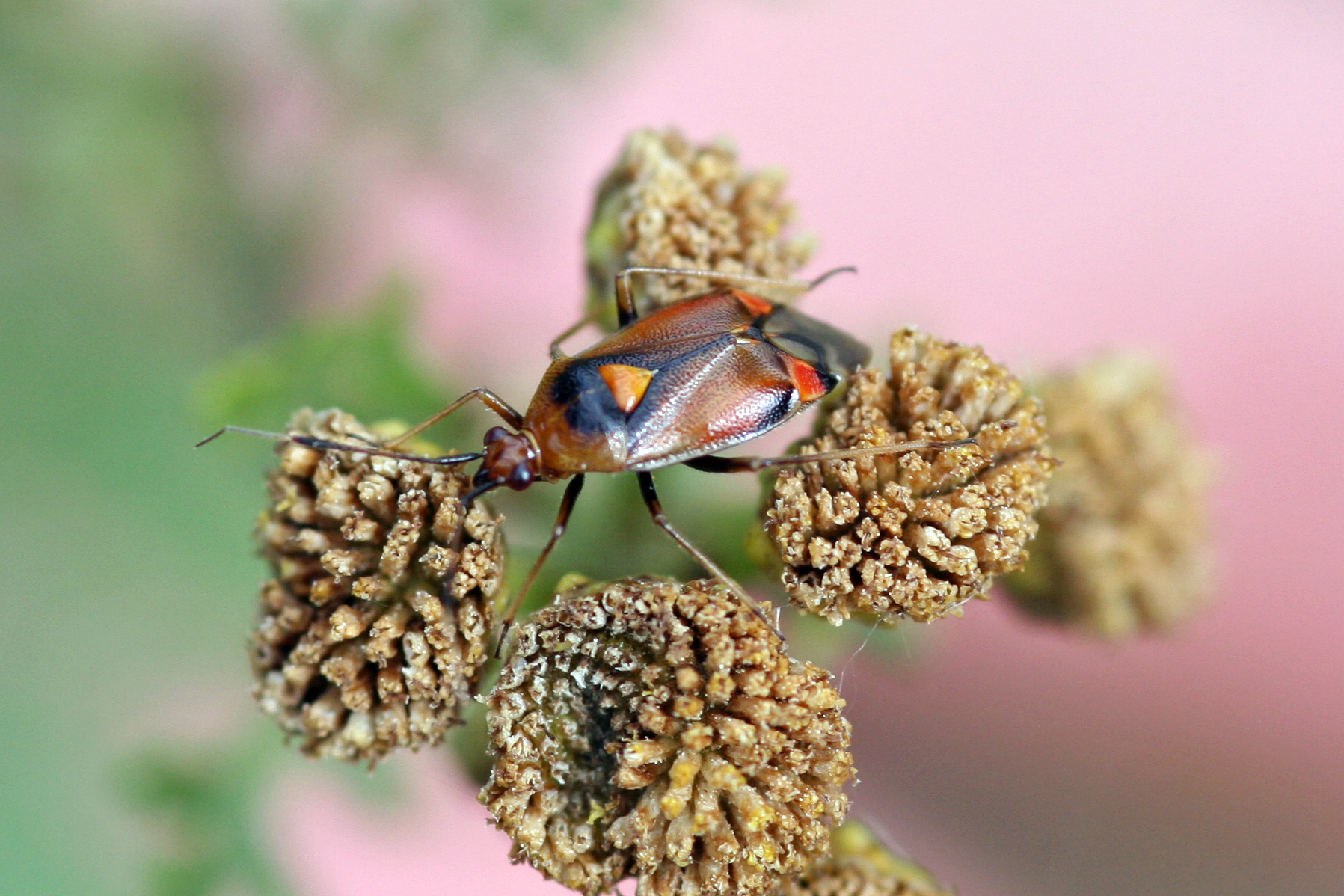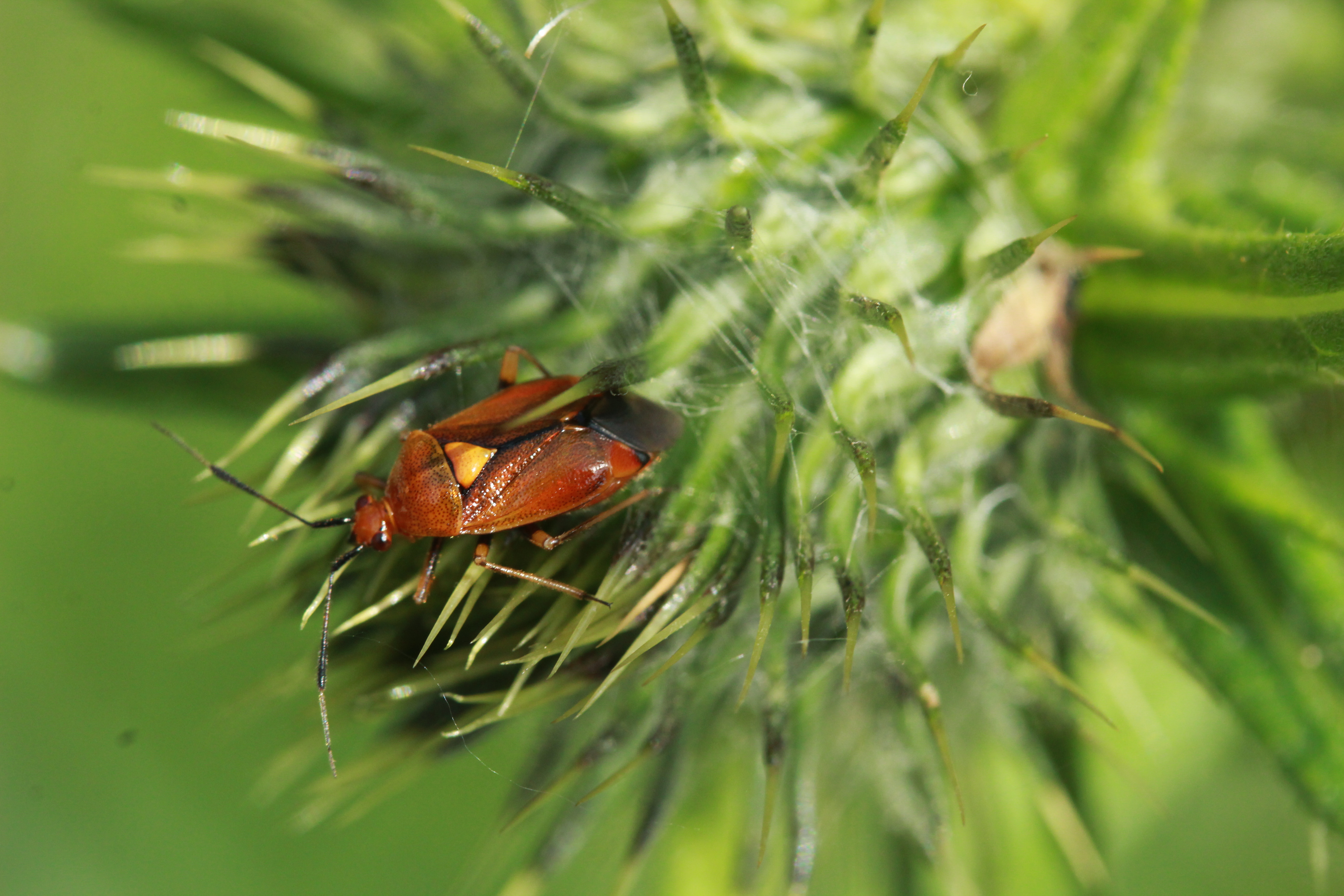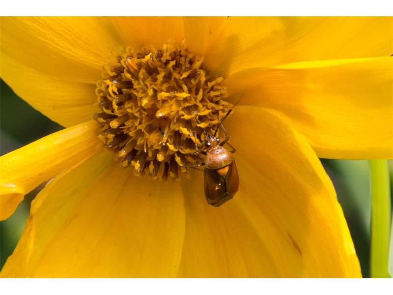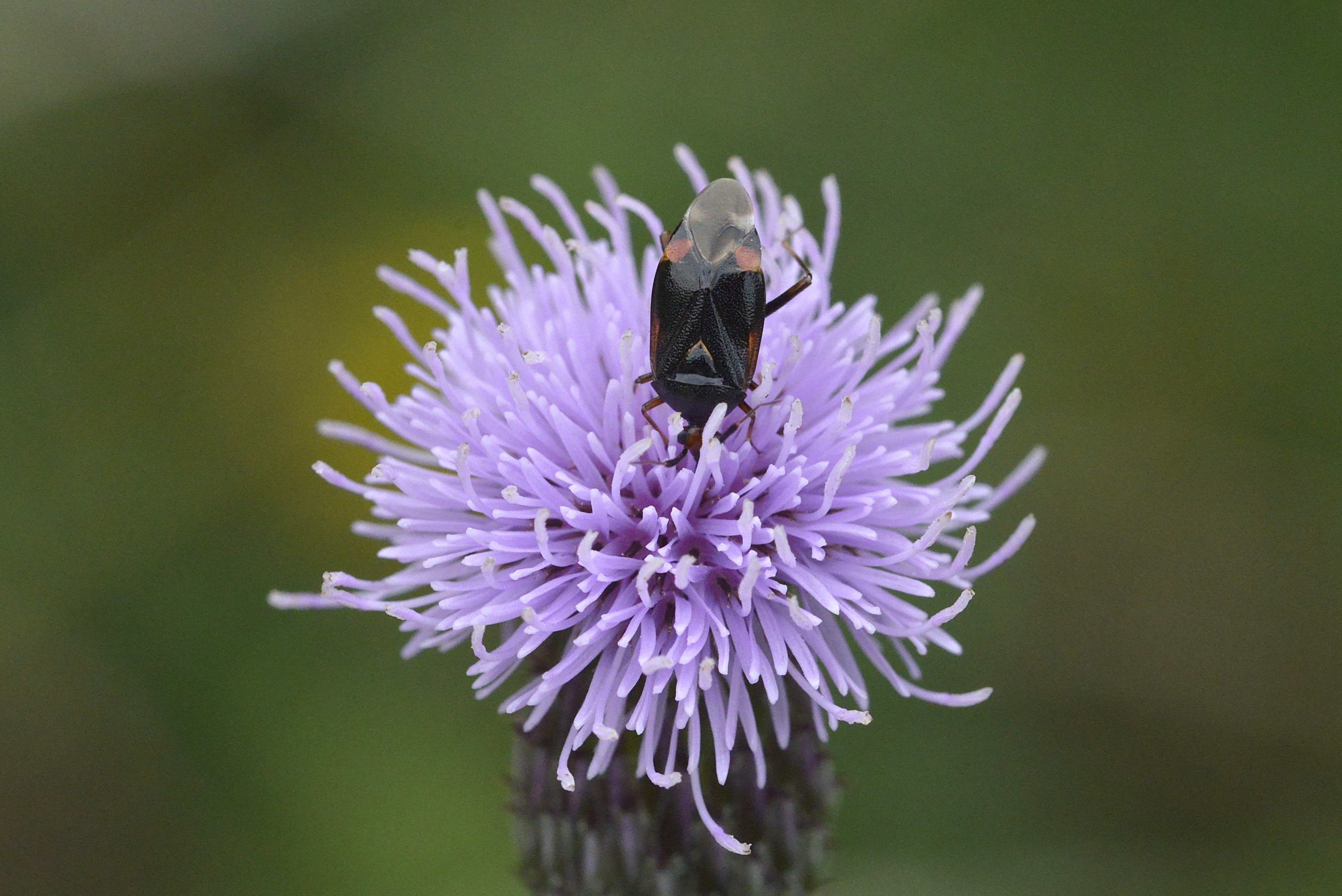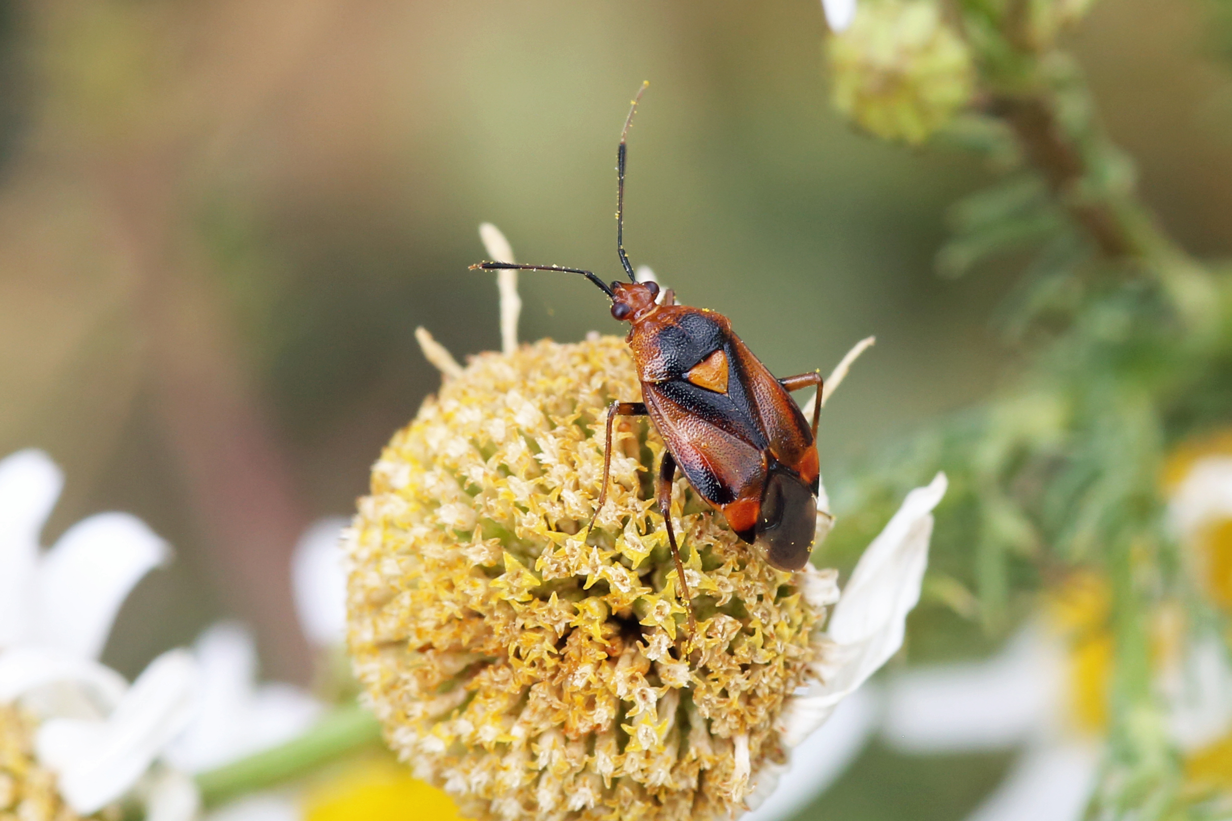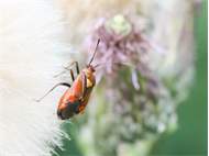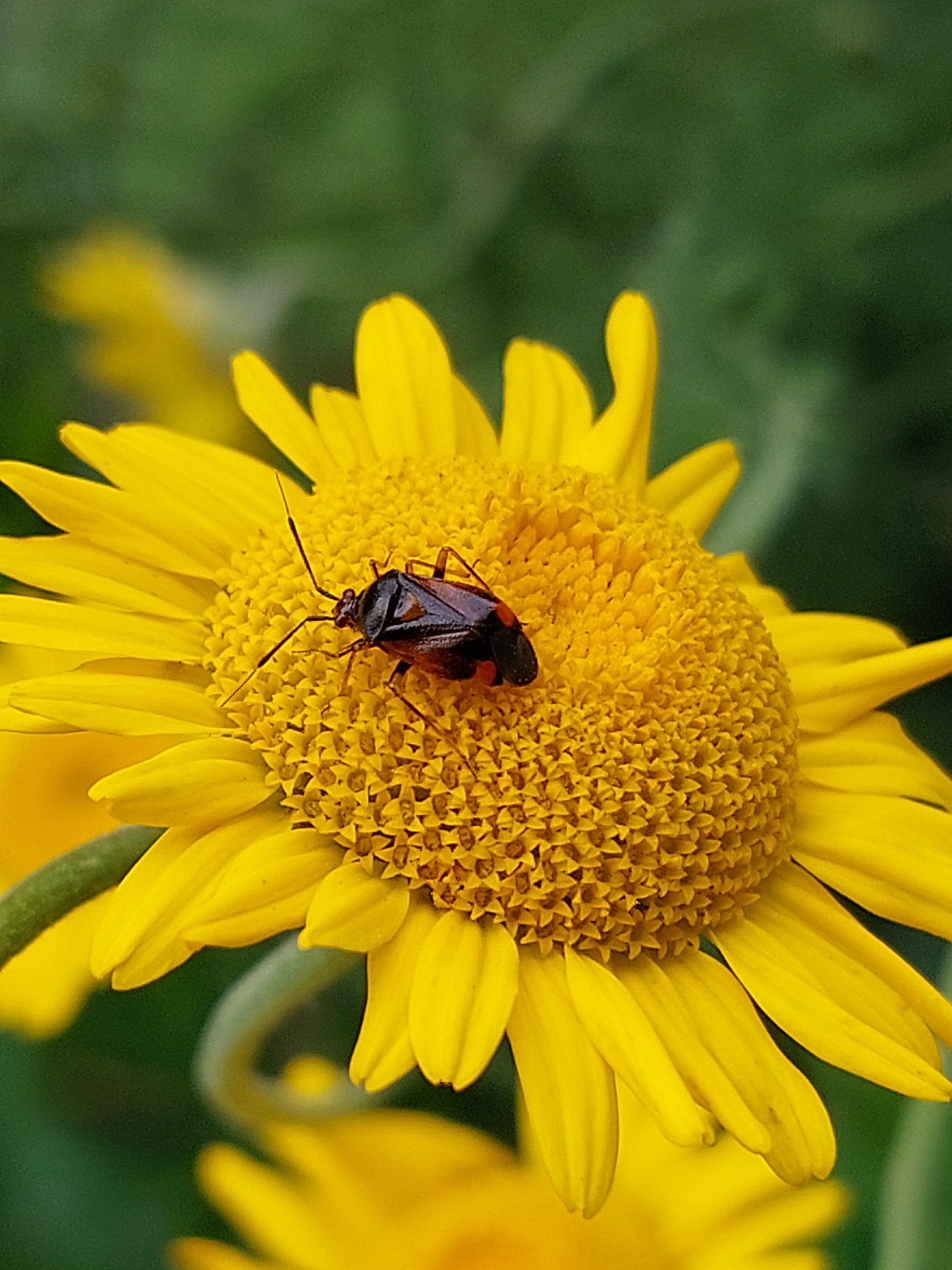 Deraeocoris ruber an der Blüte einer Golddistel, Hochhalde Trages bei Espenhain im August 2013