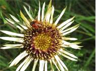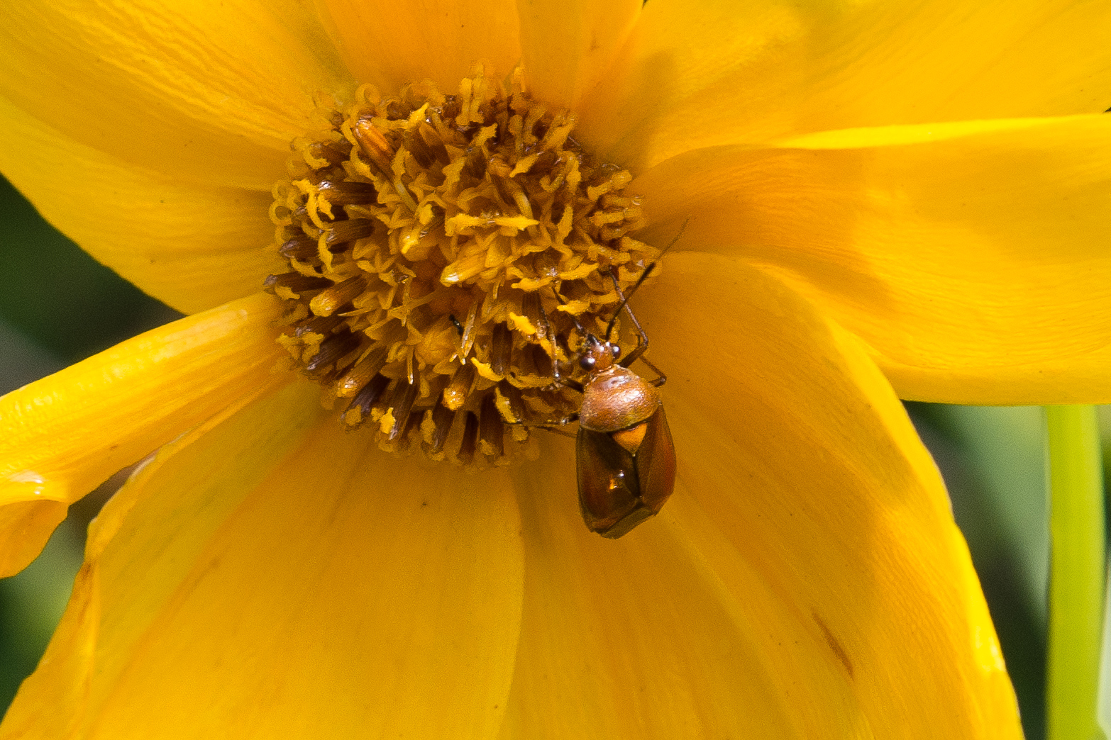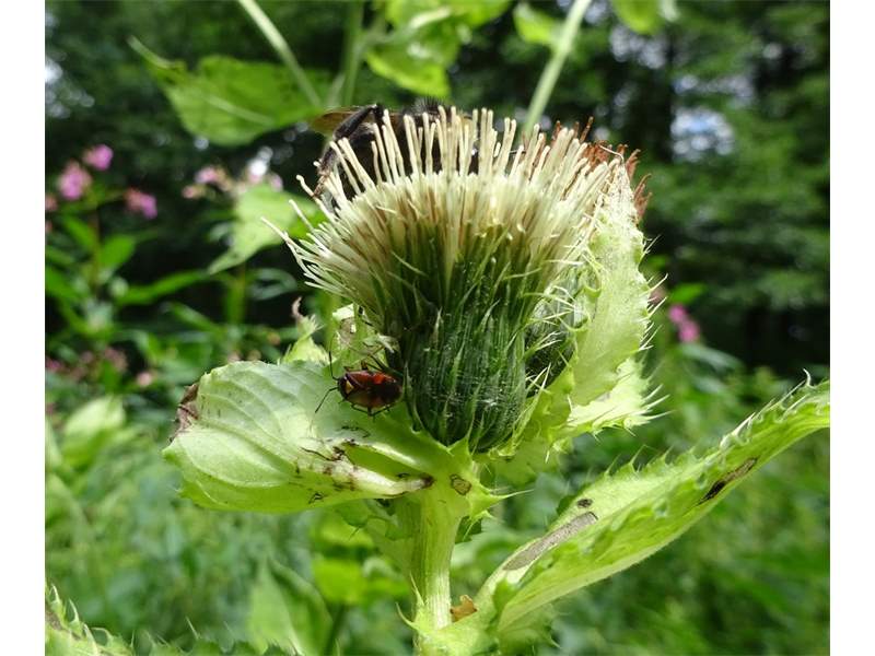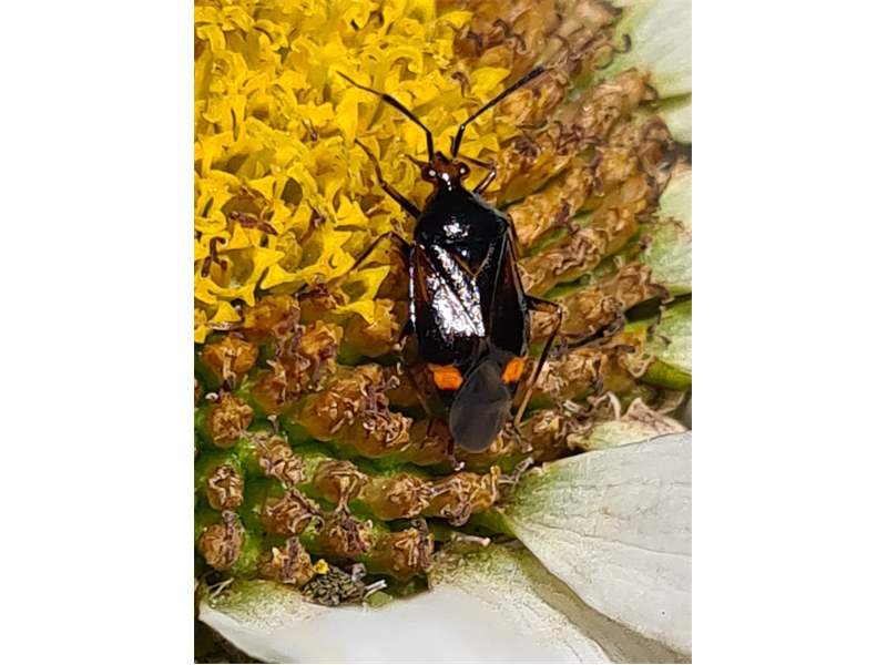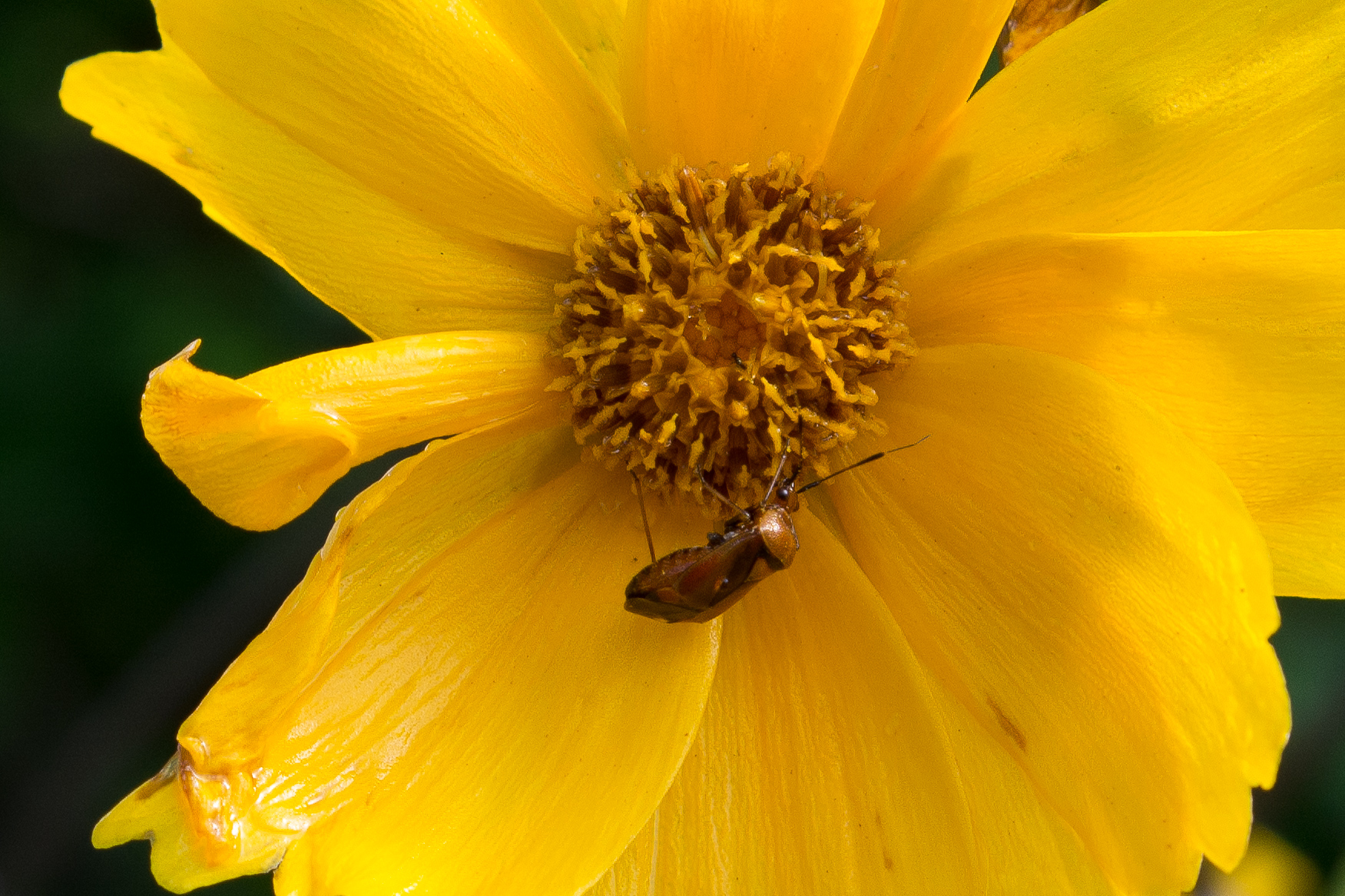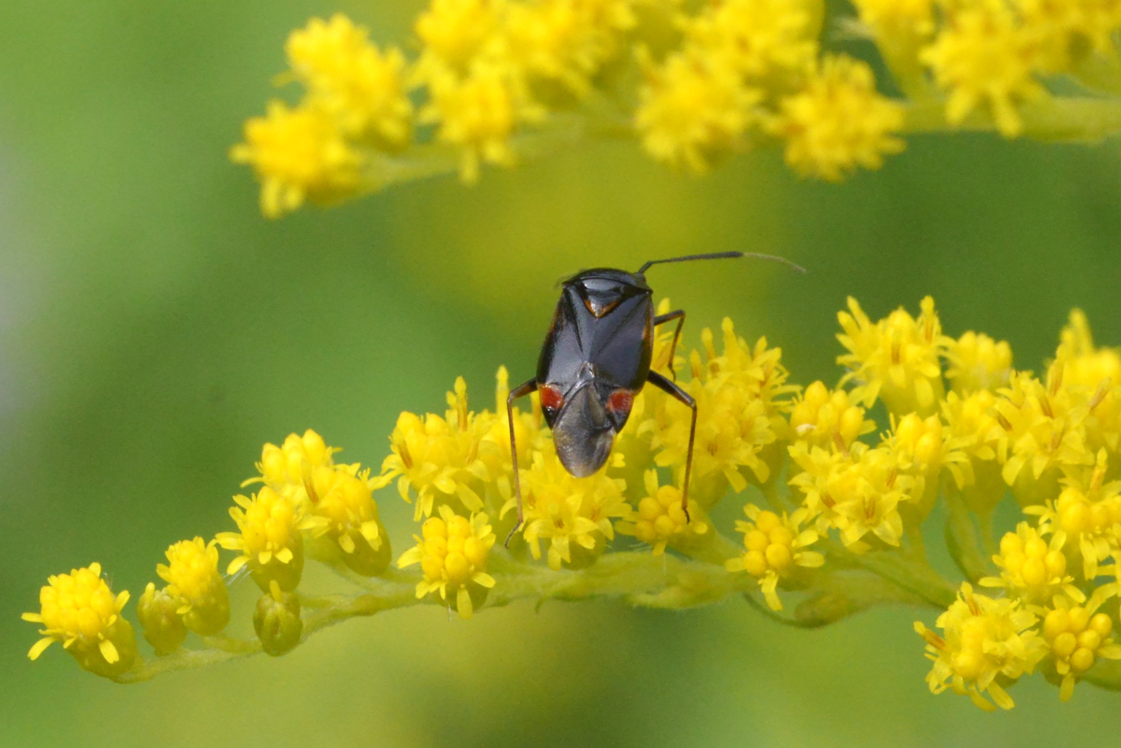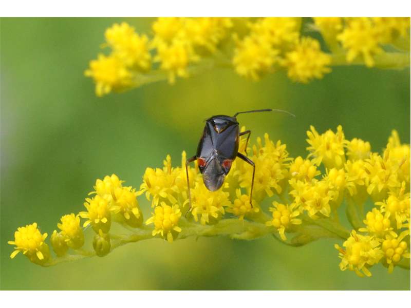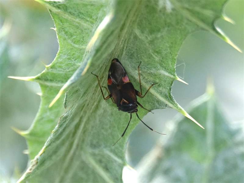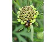 Deraeocoris ruber an der Blüte einer Golddistel, Hochhalde Trages bei Espenhain im August 2013