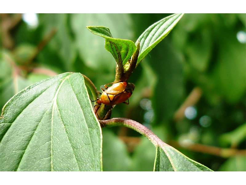 Rote Weichwanze, Gartengrundstück bei Bad Düben, am Rande der Dübener Heide, am 21.06.2008 und am 23. ´07.2008