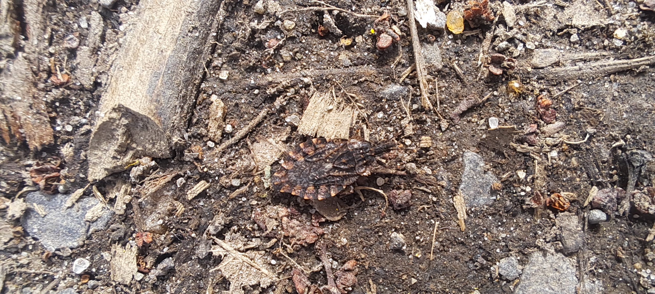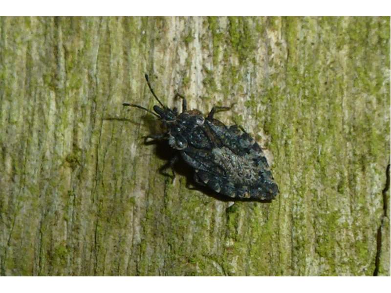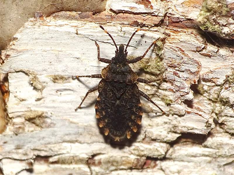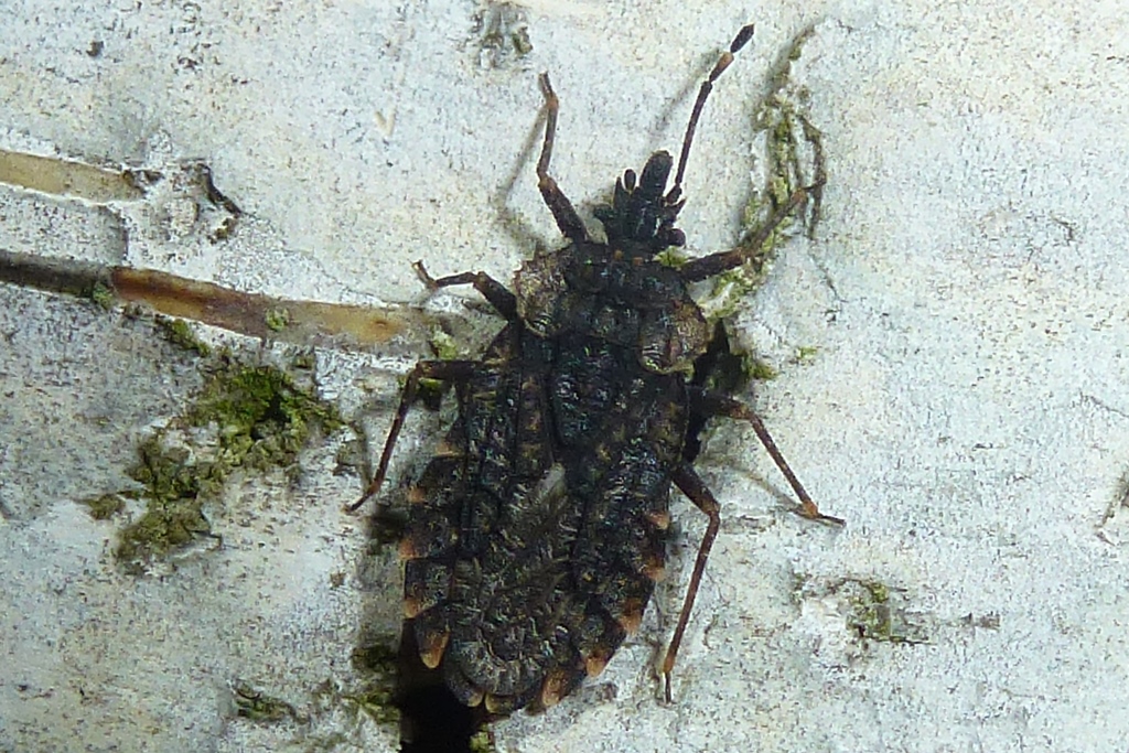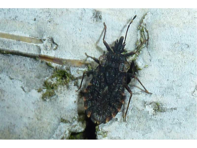 Aradus betulae, Larve im 5.Stadium, Cavertitz, Umgebung Teiche norwetslich des Ortsteils Reudnitz (Deutschland, Sachsen, Landkreis Nordsachsen), 23.07.2011