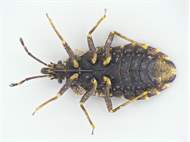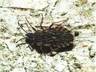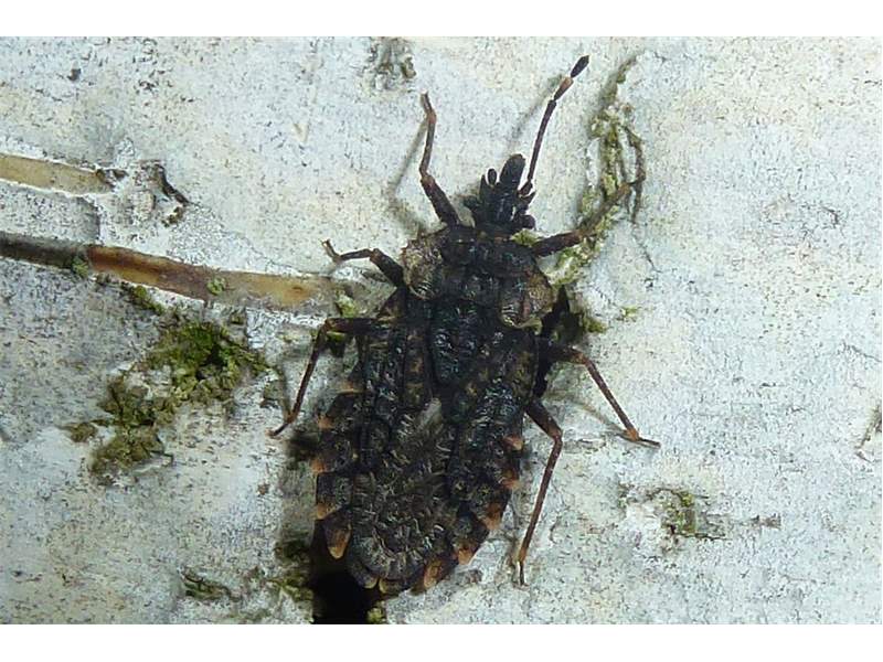 Aradus betulae, Larve im 5.Stadium, Cavertitz, Umgebung Teiche norwetslich des Ortsteils Reudnitz (Deutschland, Sachsen, Landkreis Nordsachsen), 23.07.2011 (© Michael Münch)( Bild vergrößern)
