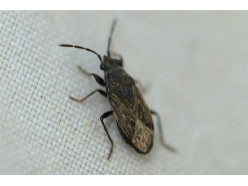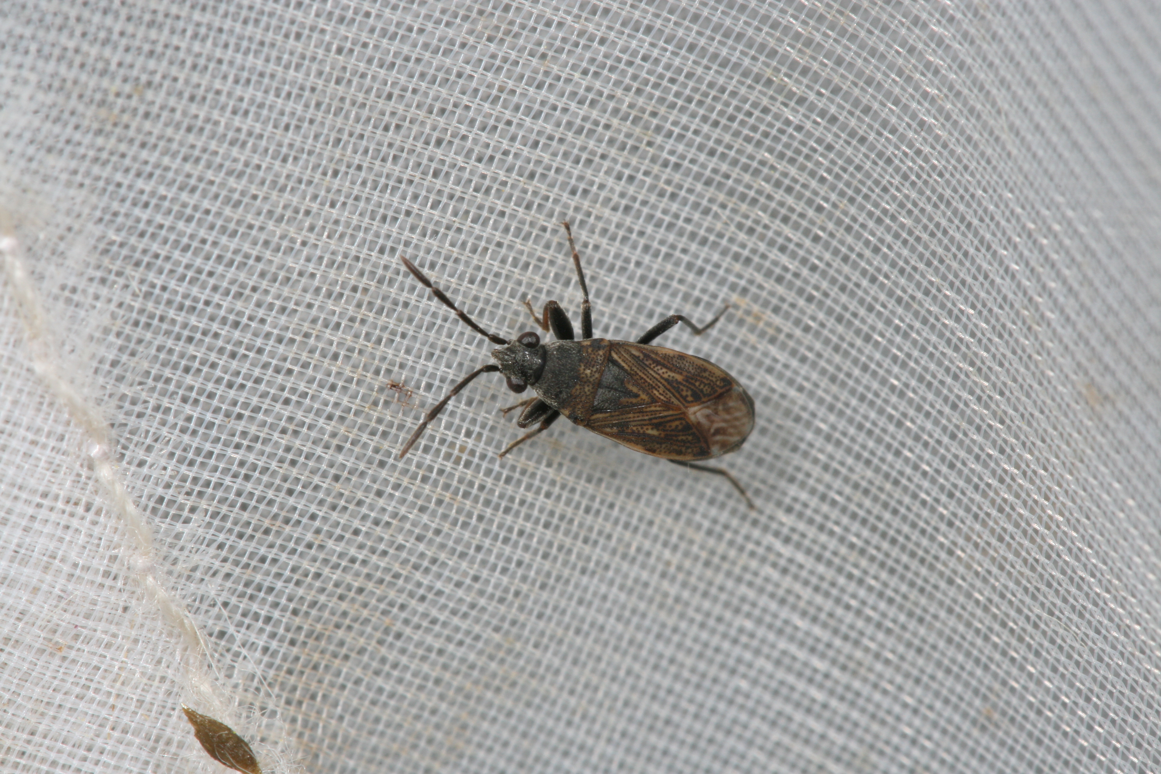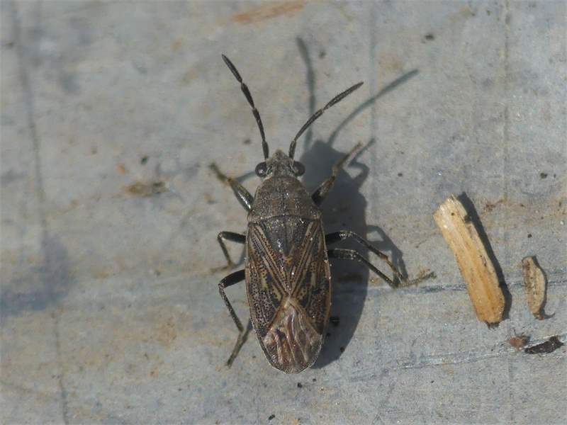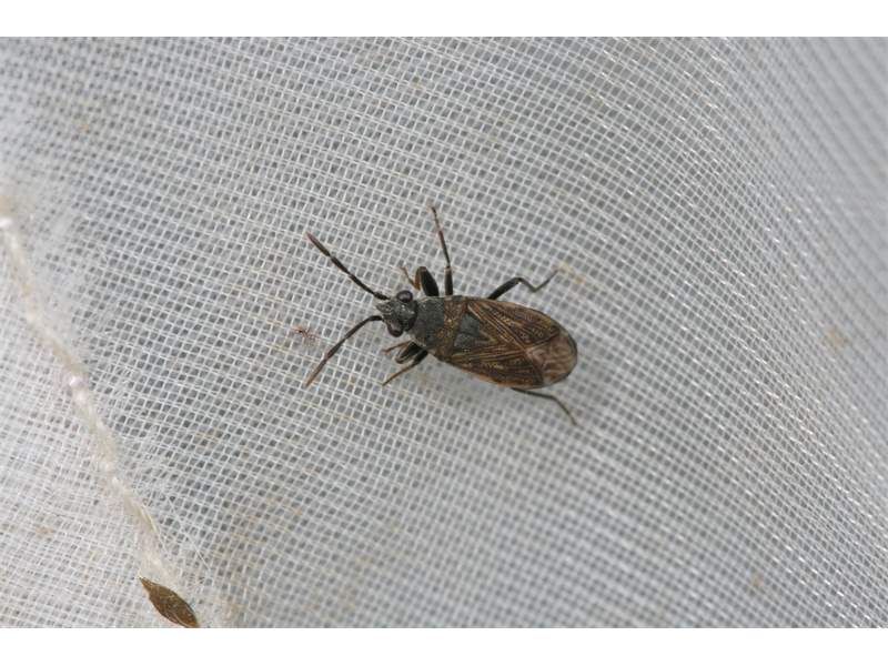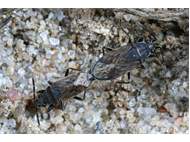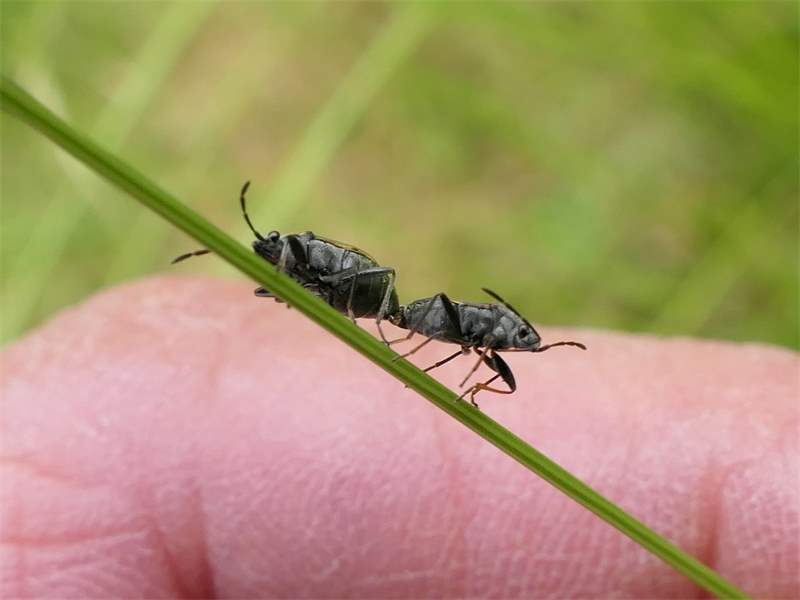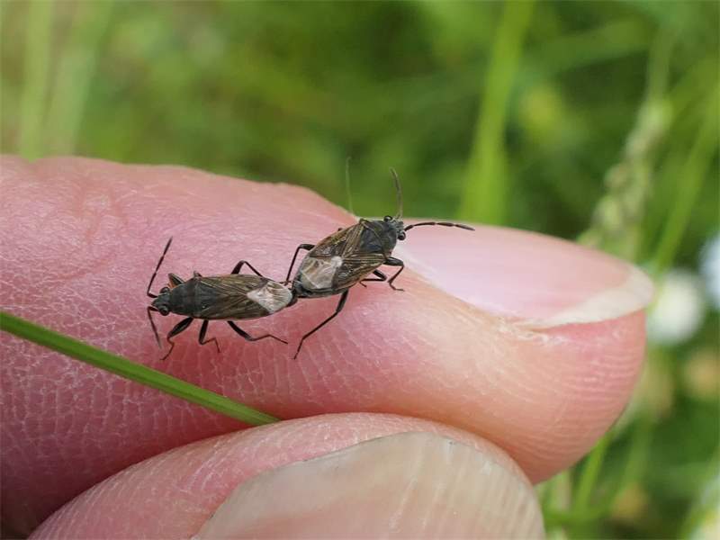 Peritrechus geniculatus - links das kleinere Männchen rechts das Weibchen. Zickersche Berge, 250m nordwestlich des letzten Gebäudes von Groß Zicker (Deutschland, Mecklenburg-Vorpommern, Rügen), 15.06.2009