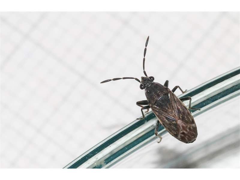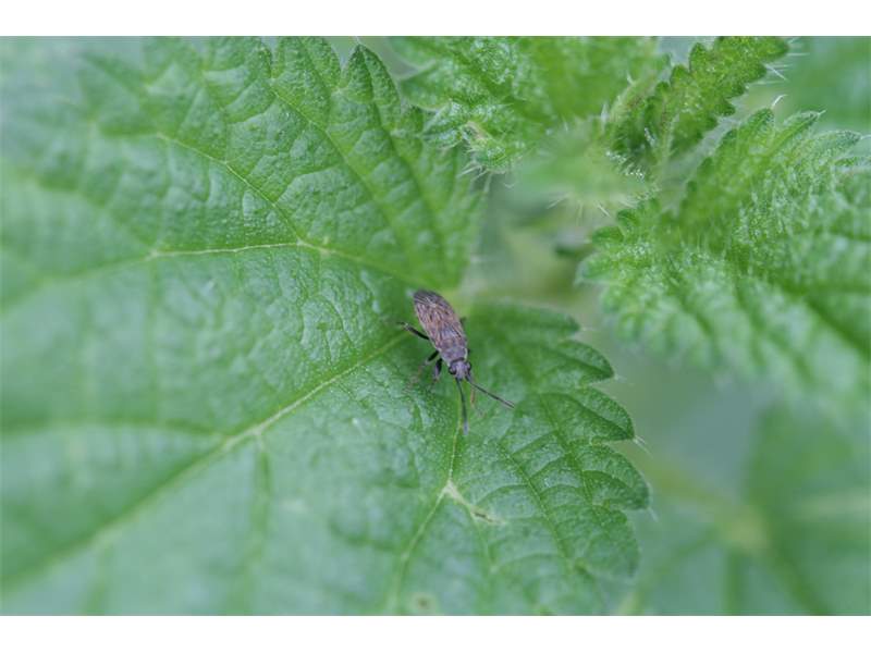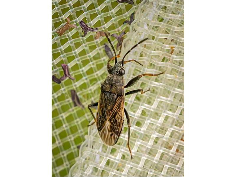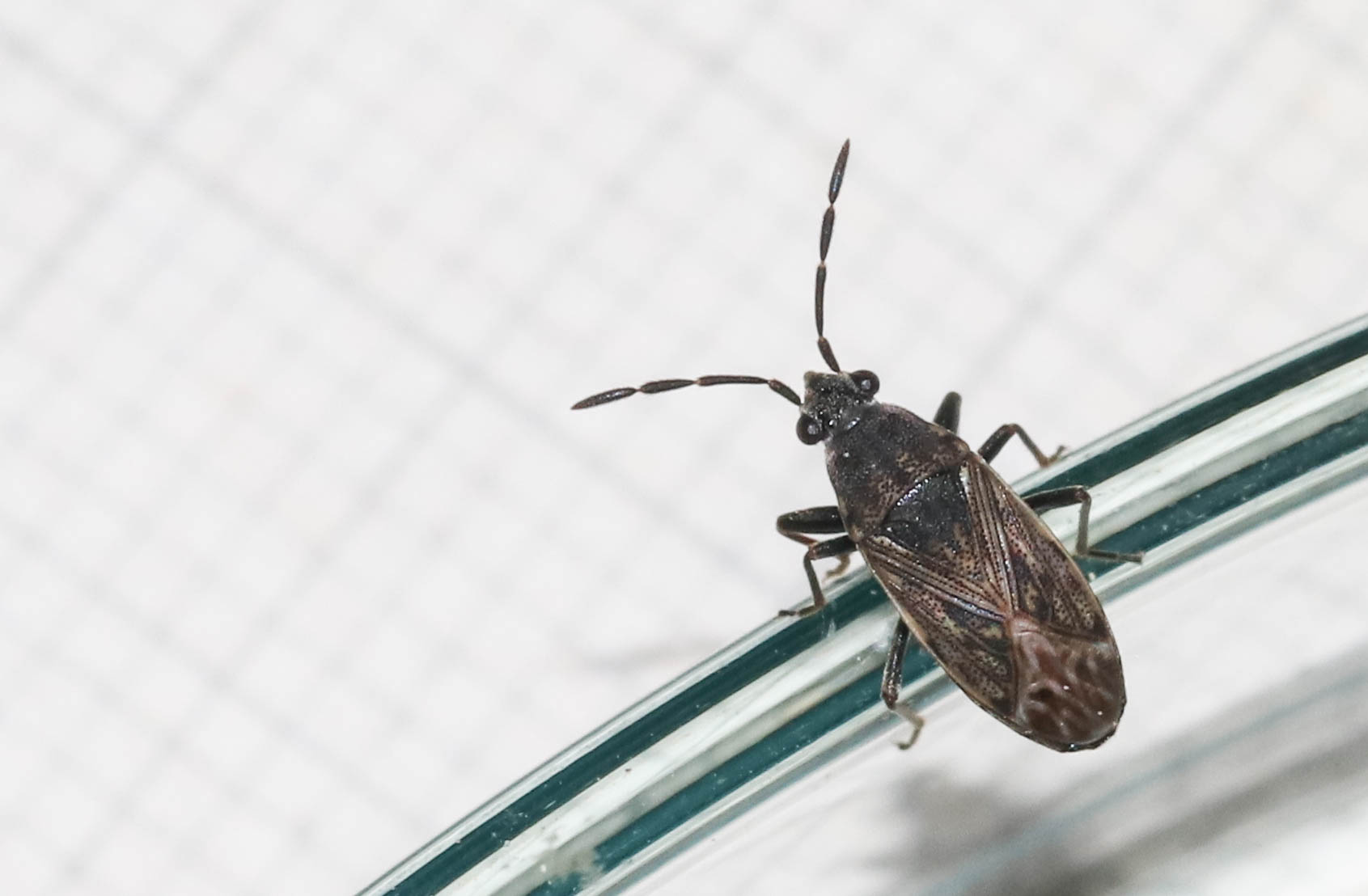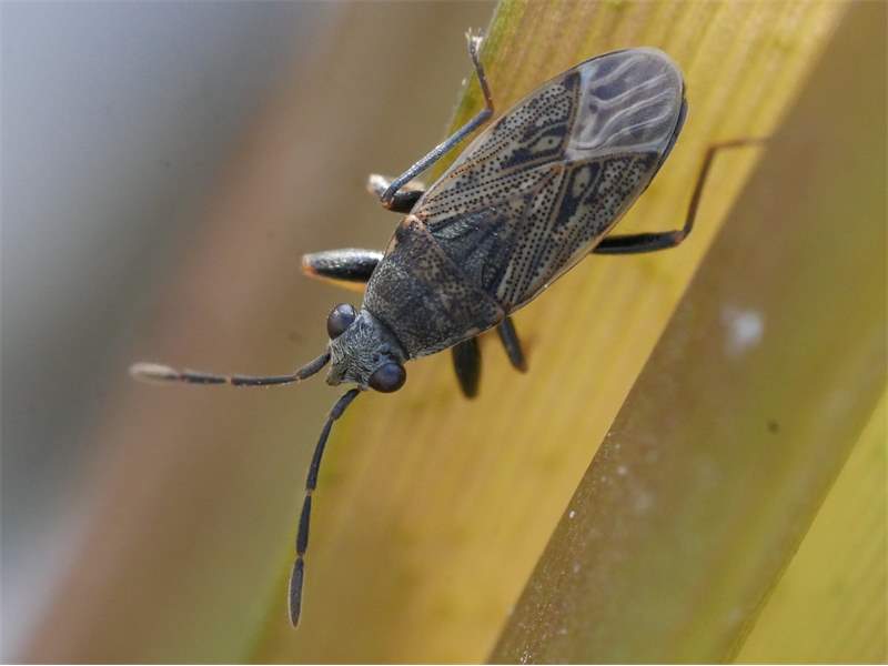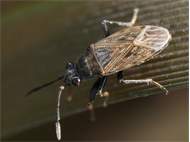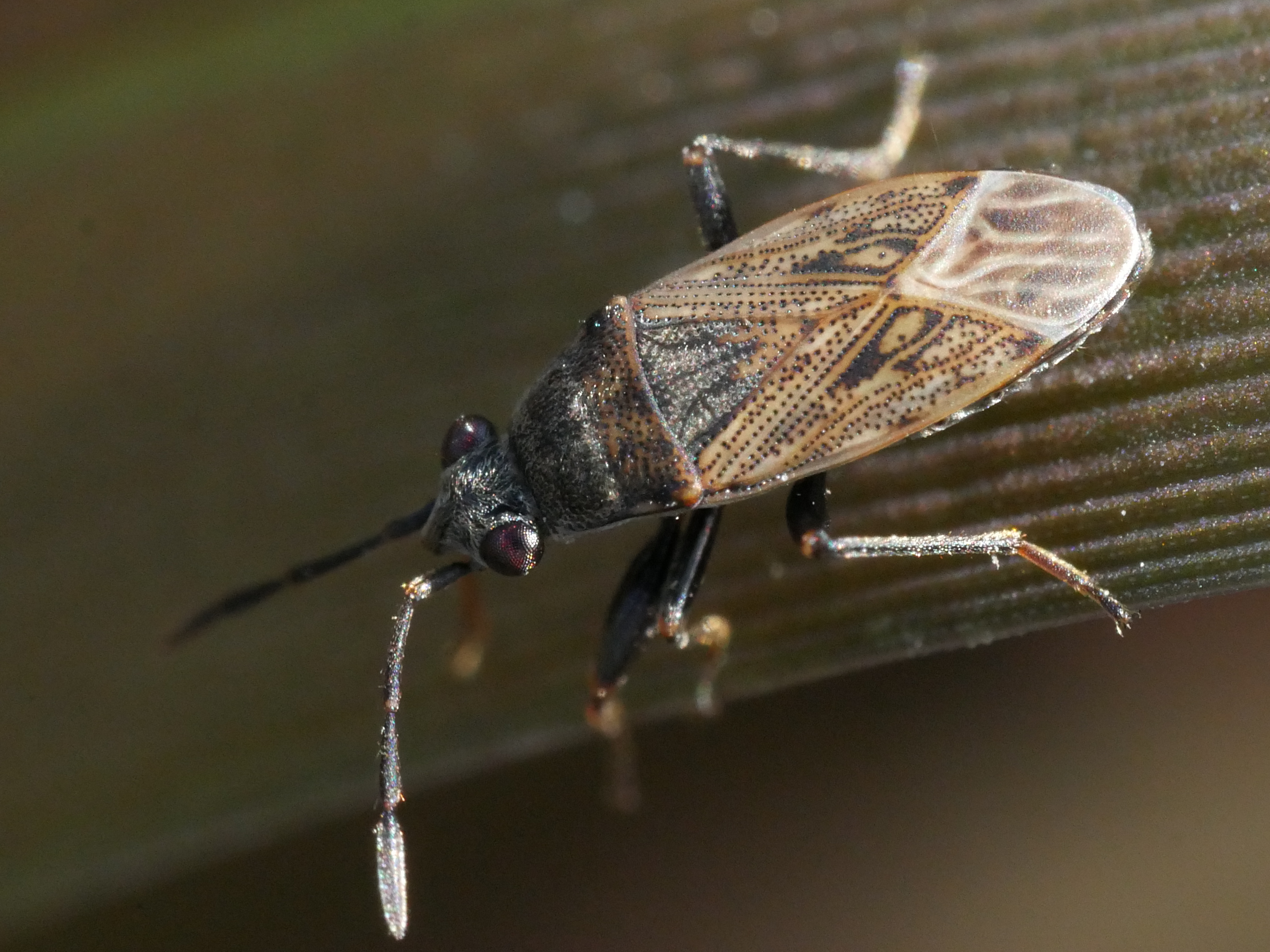 Peritrechus geniculatus - links das kleinere Männchen rechts das Weibchen. Zickersche Berge, 250m nordwestlich des letzten Gebäudes von Groß Zicker (Deutschland, Mecklenburg-Vorpommern, Rügen), 15.06.2009