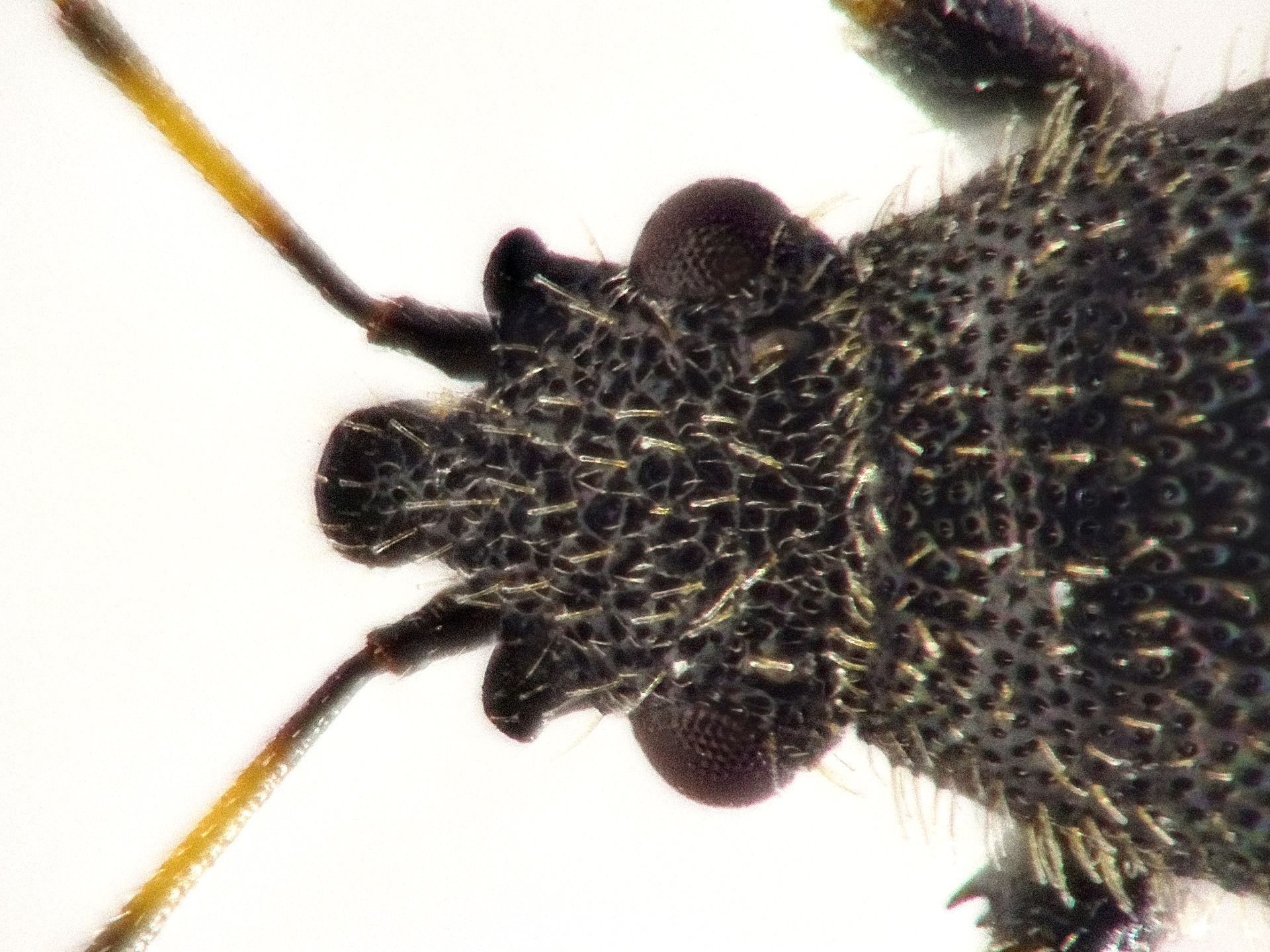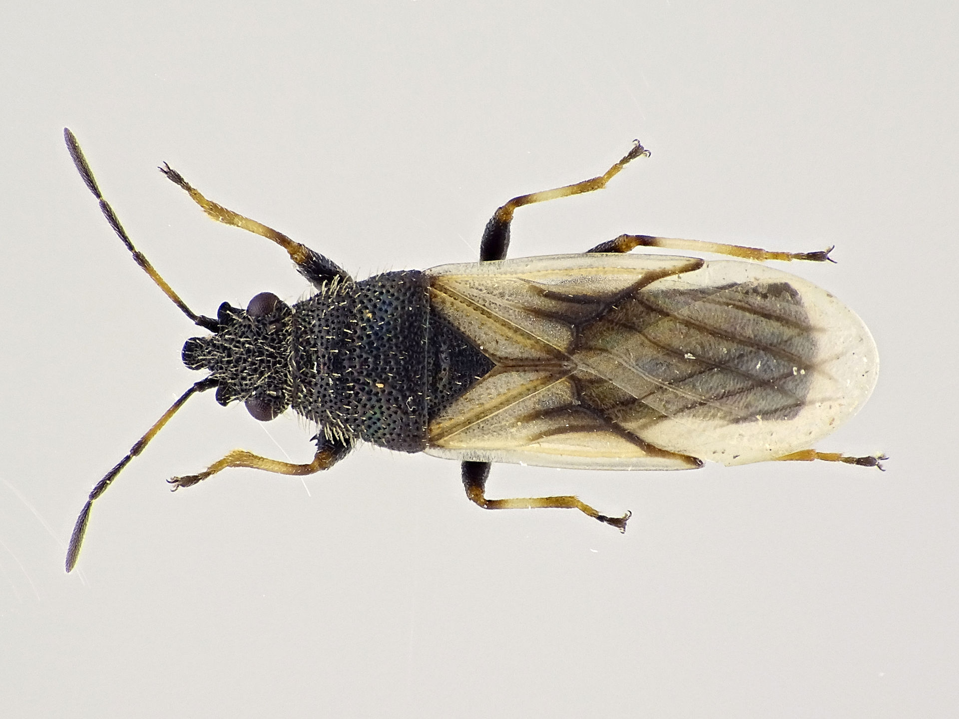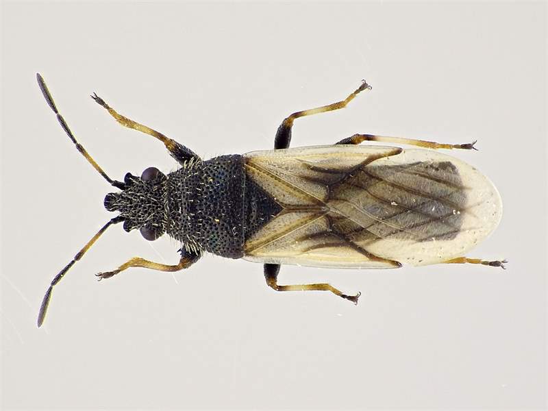 Thorax: Halsschild schwarz oder gelblich mit dunkler Hinterhälfte ("fuscinervis"). Schildchen schwarz. Halbdecken hell beige, hinten mit geschwärzten Adern, Membran hell mit bräunlichen Adern.