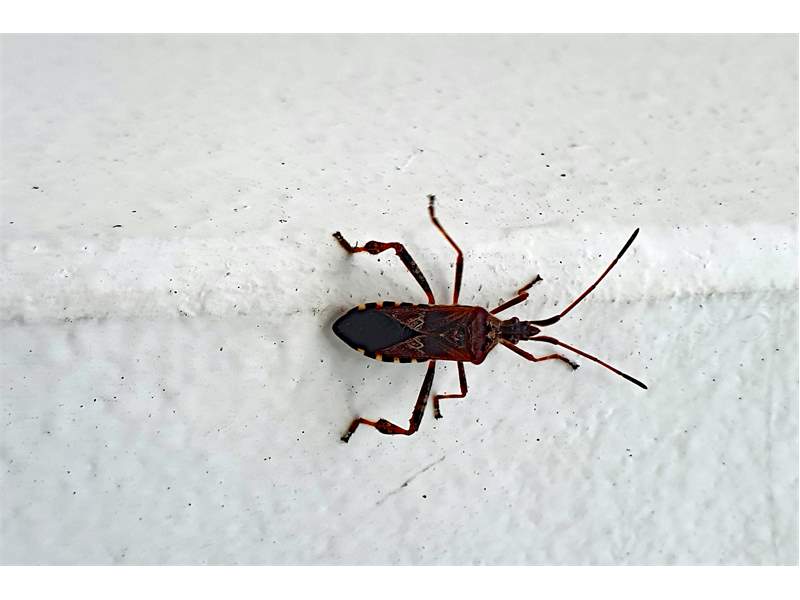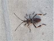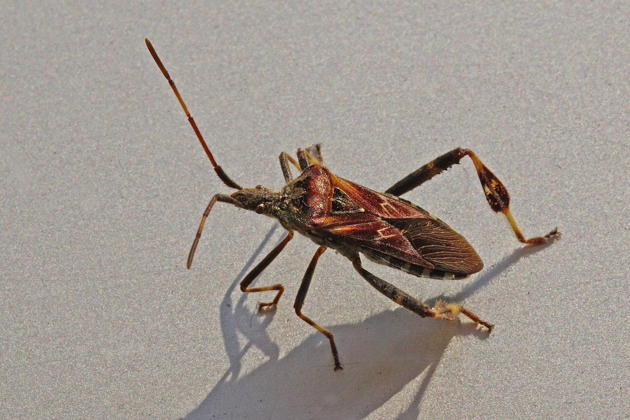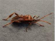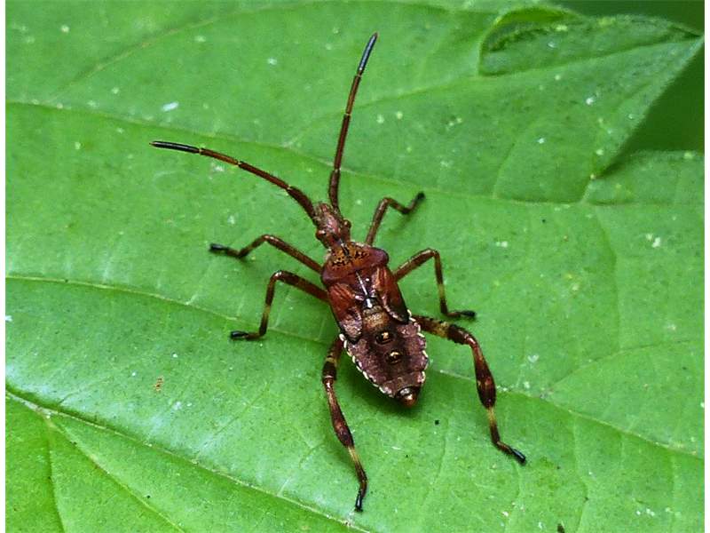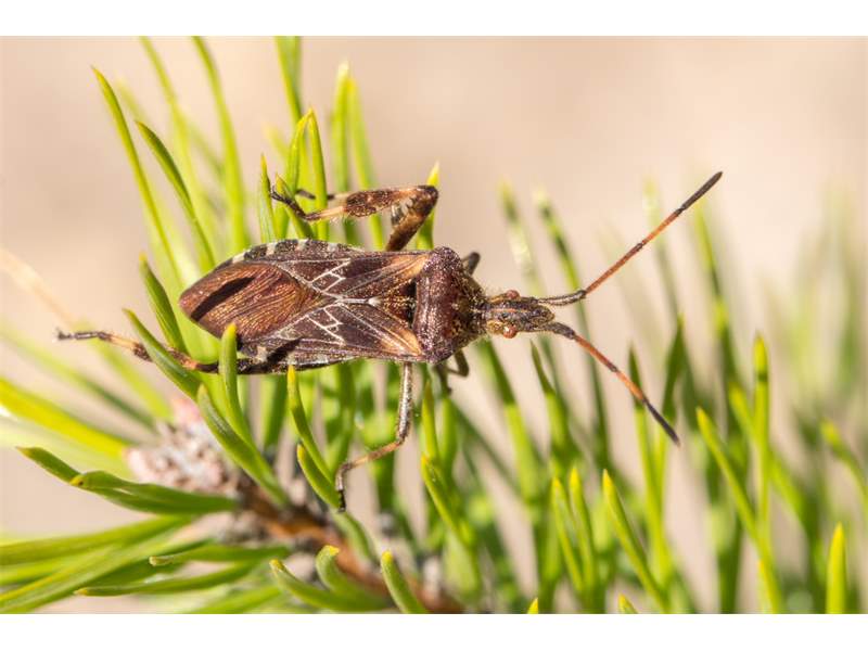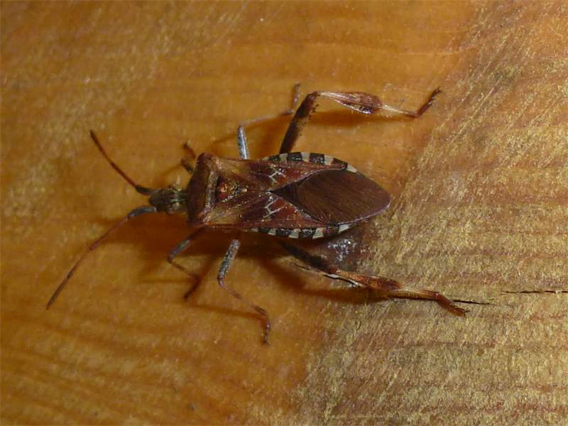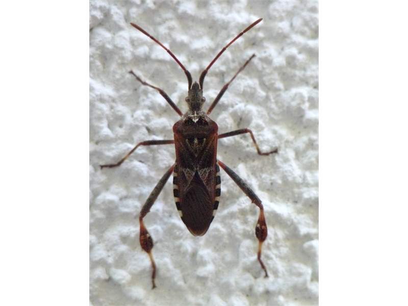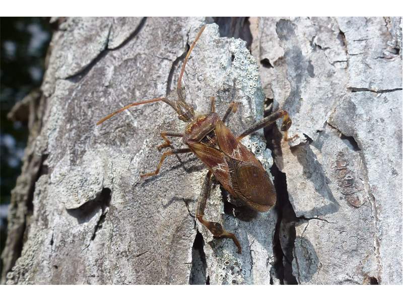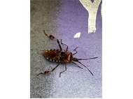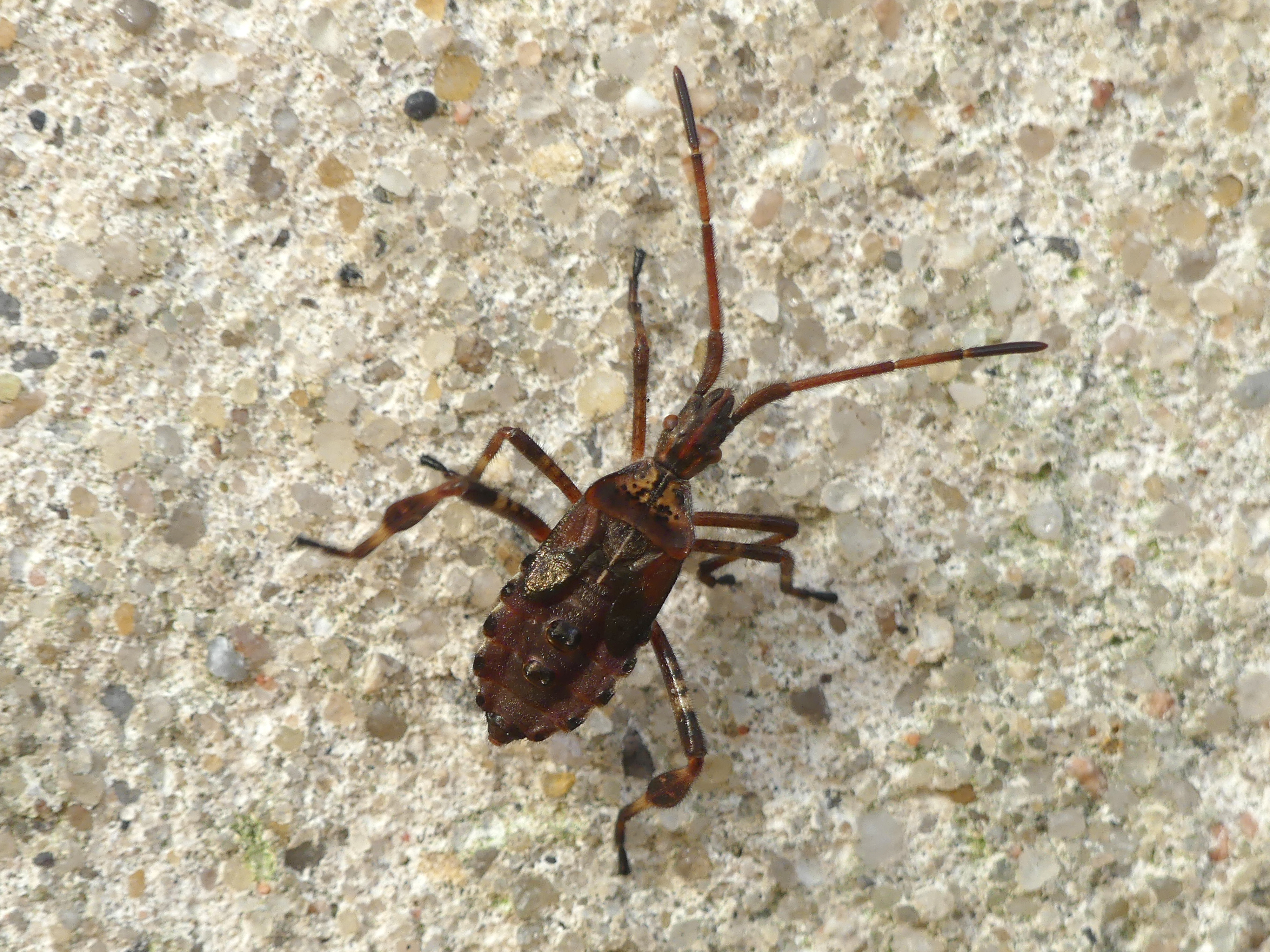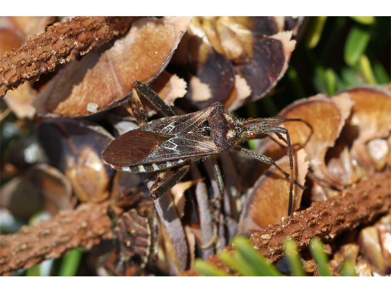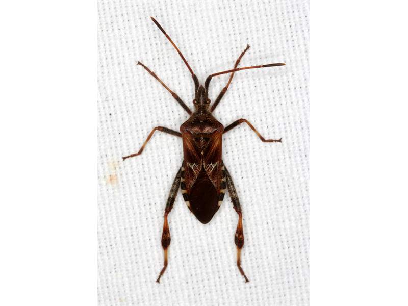Larve der Amerikanischen Zapfenwanze ( Leptoglossus occidentalis). Deutschland, Baden-Württemberg, Baden-Baden, einzeln stehende Kiefer nord-nord-westlich Ortsteil Sandweier, 30.06.2012 (© Michael Münch)( Bild vergrößern)