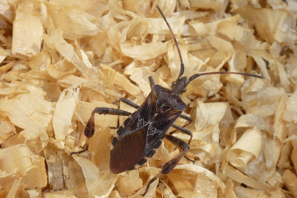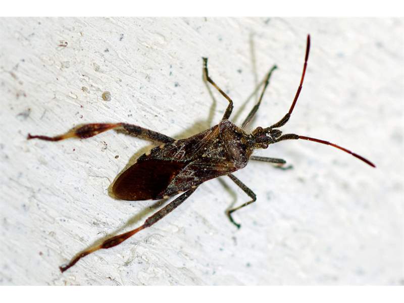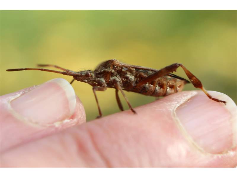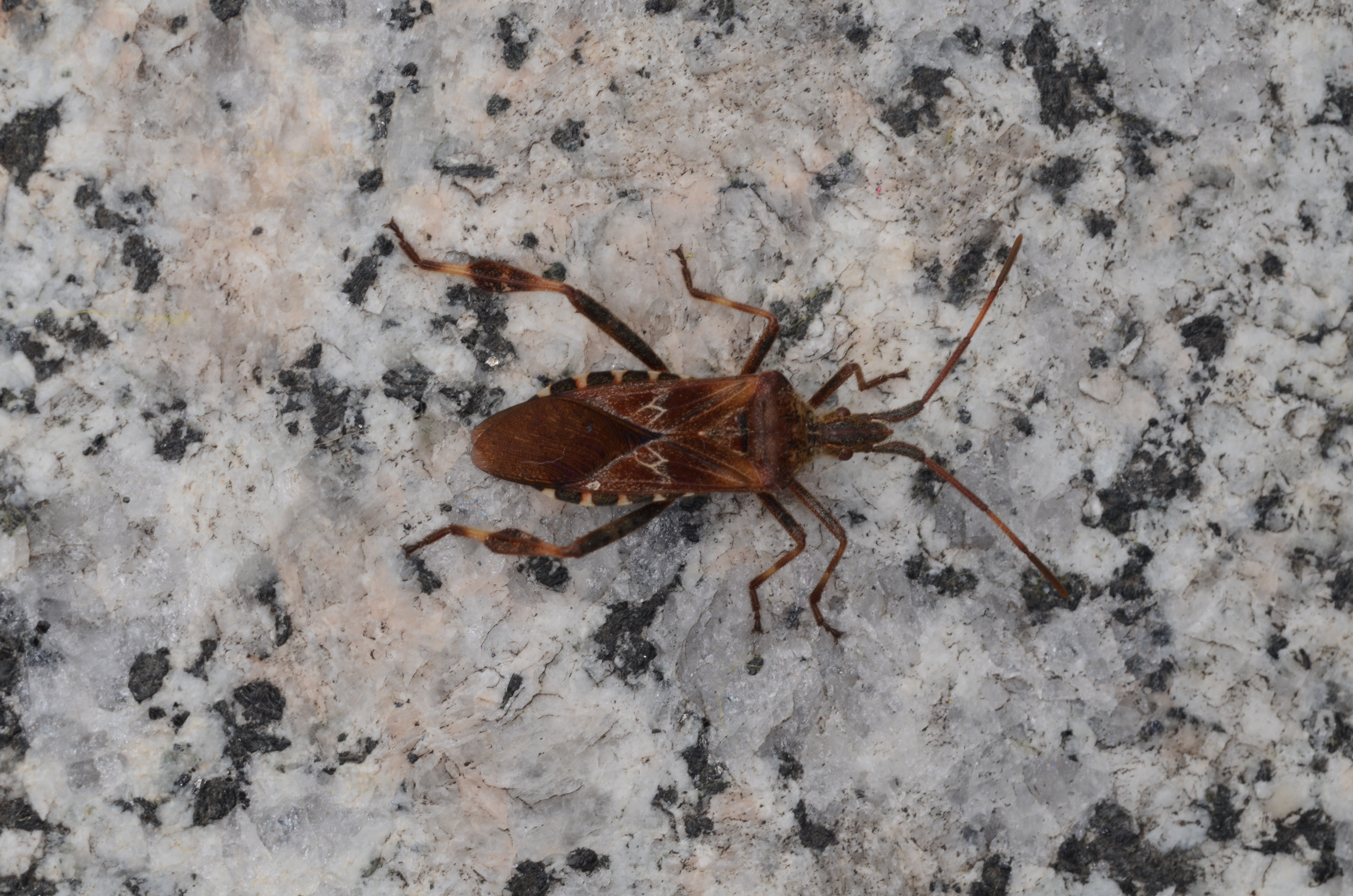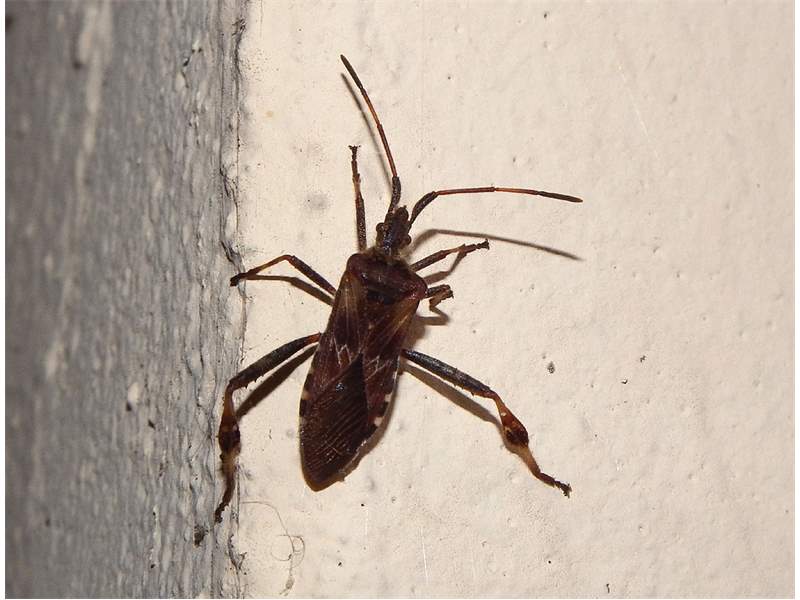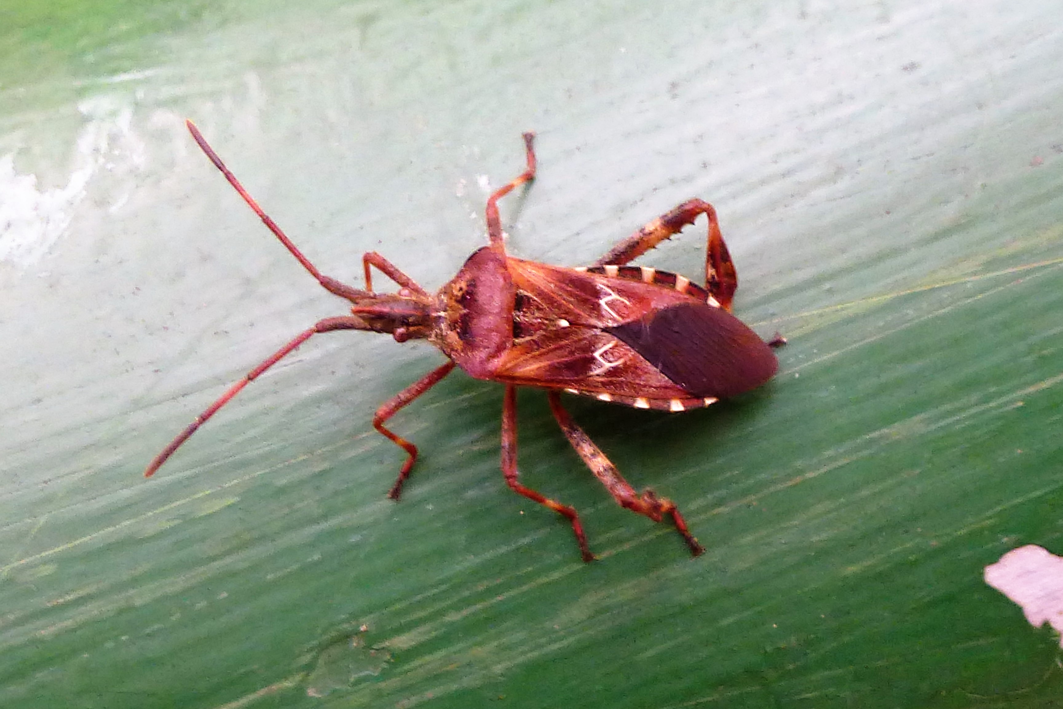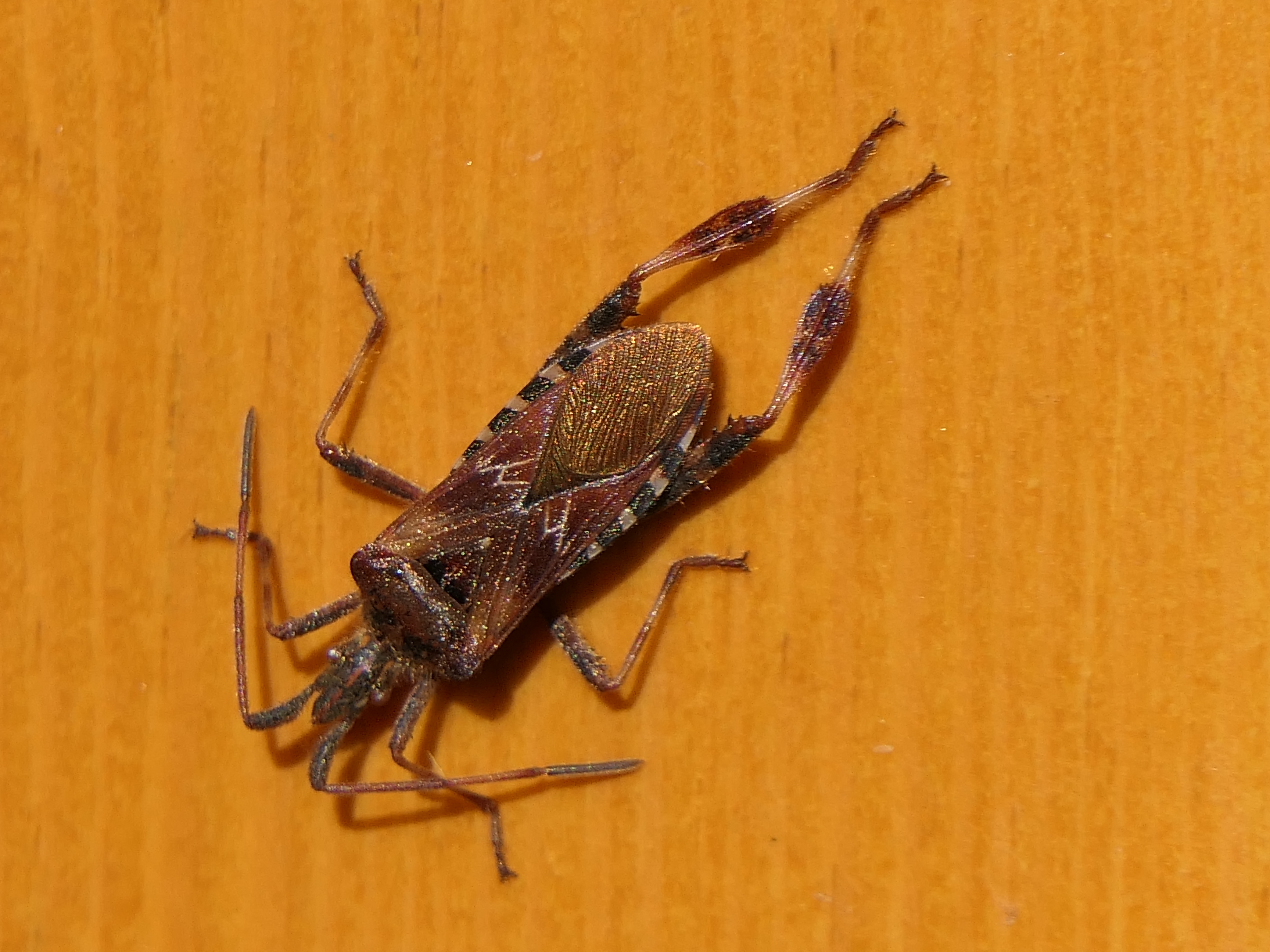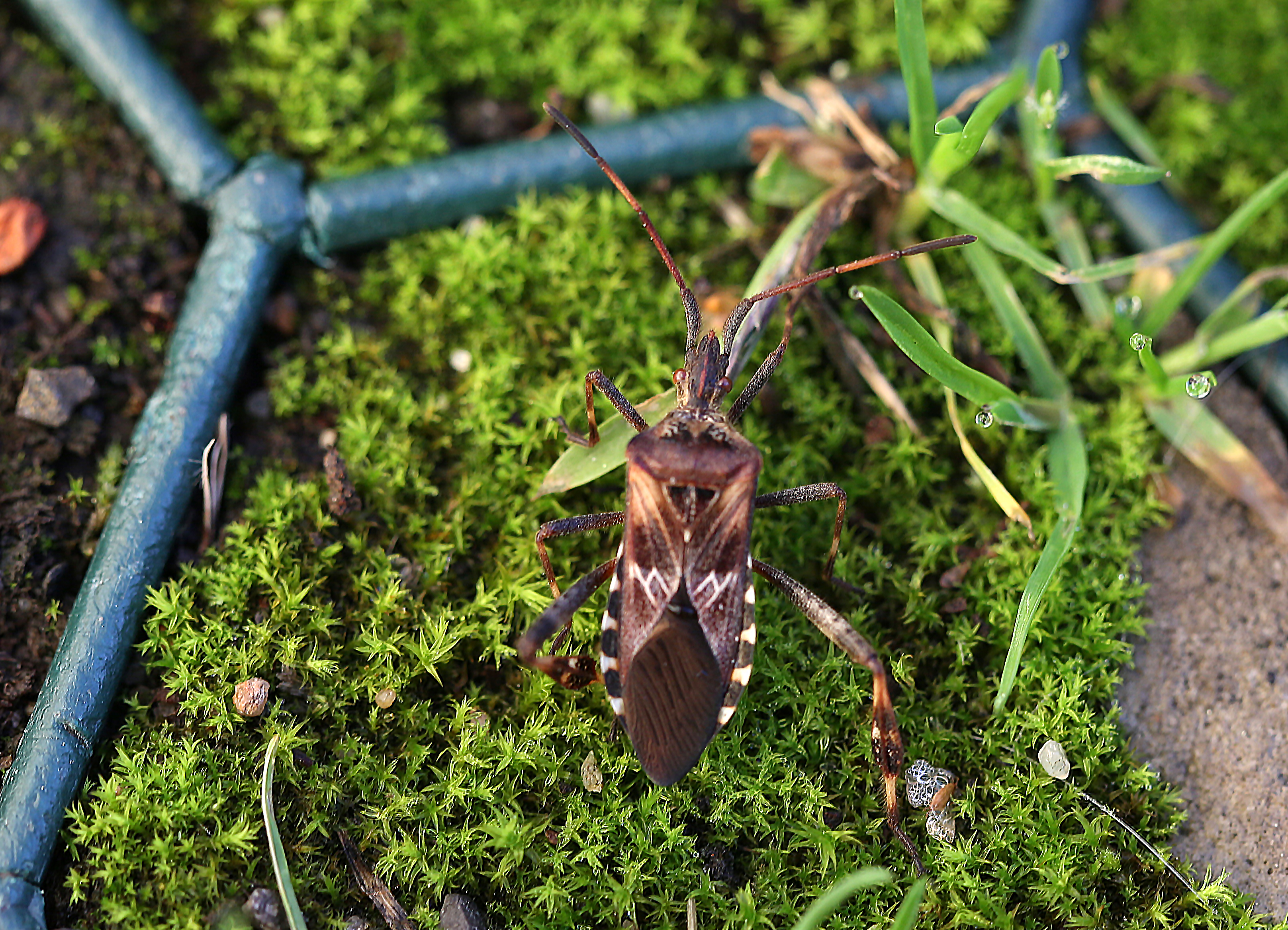 Larve der Amerikanischen Zapfenwanze ( Leptoglossus occidentalis). Deutschland, Baden-Württemberg, Baden-Baden, einzeln stehende Kiefer nord-nord-westlich Ortsteil Sandweier, 30.06.2012 (© Michael Münch)( Bild vergrößern)