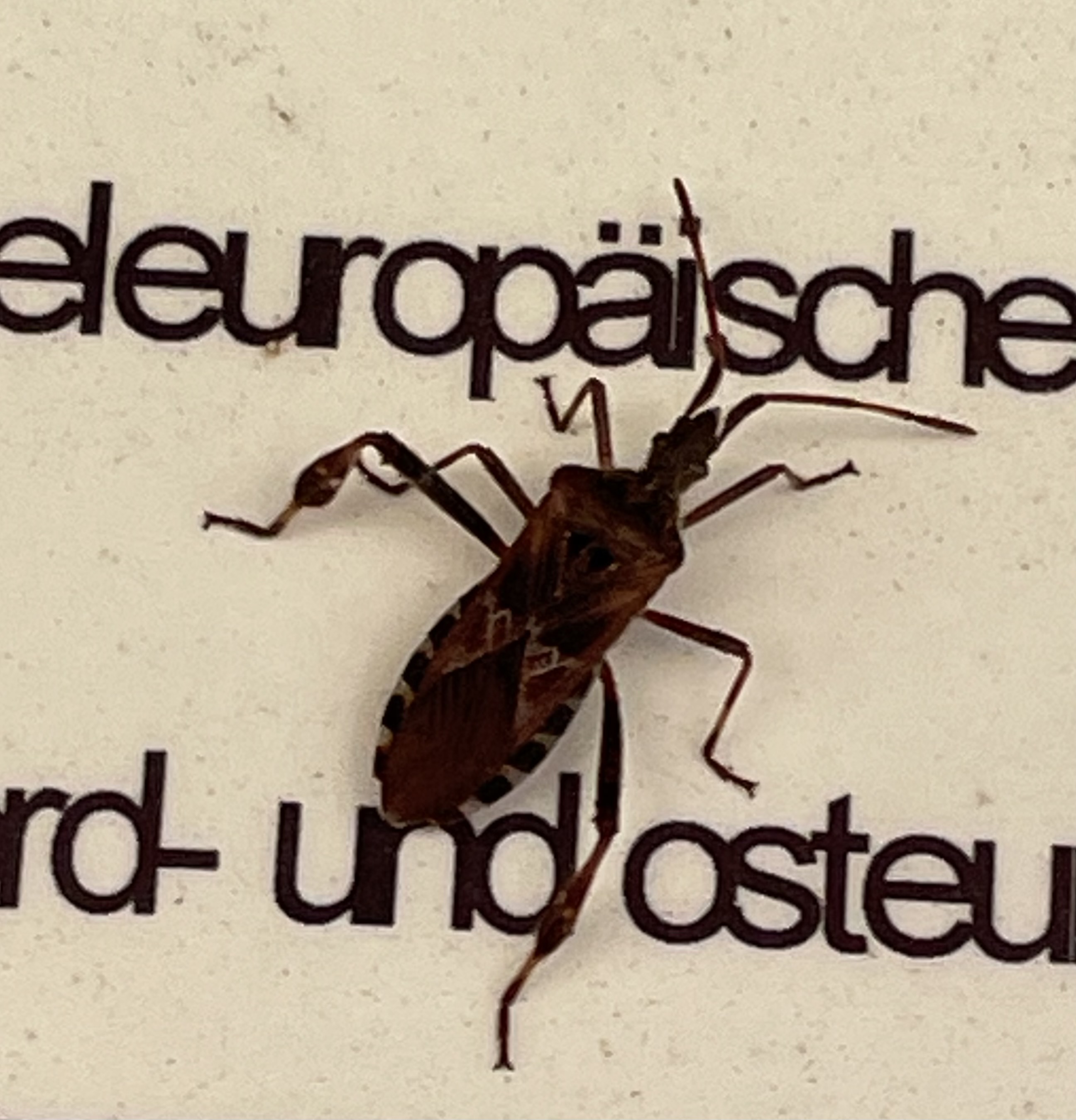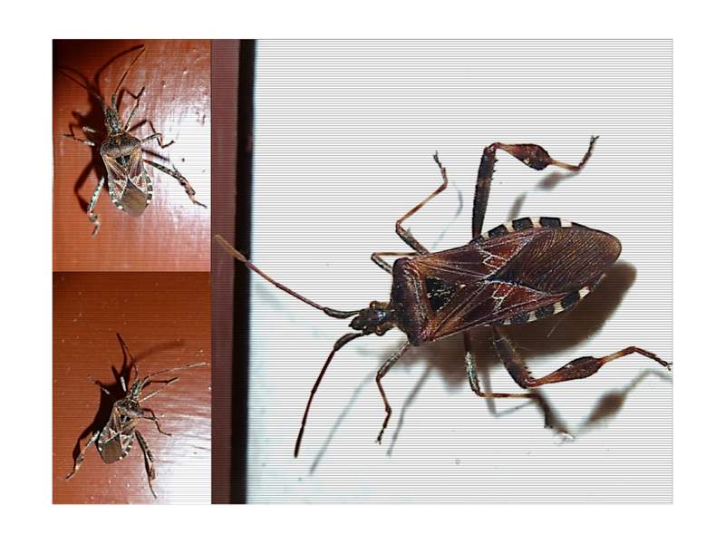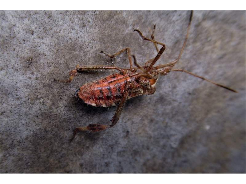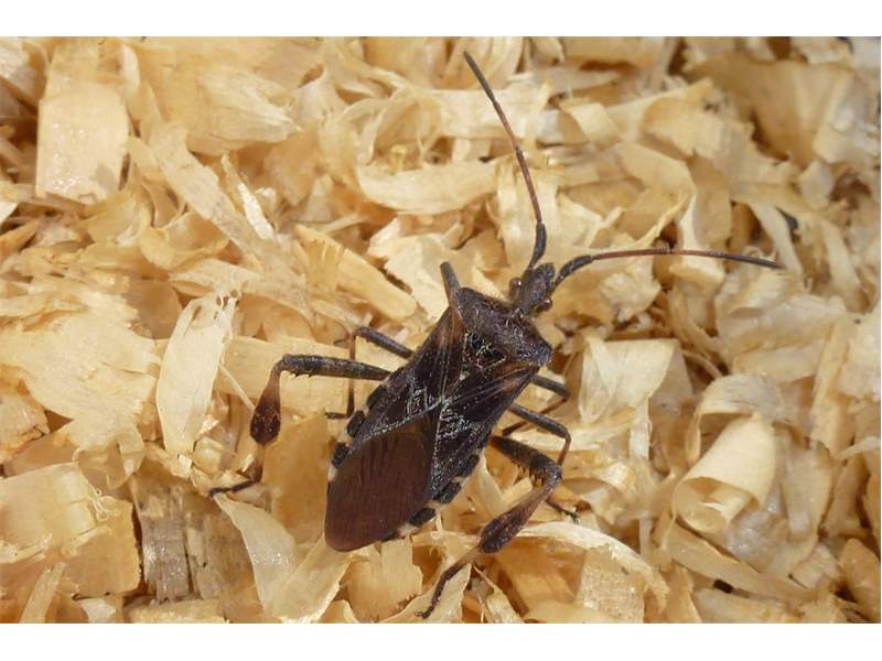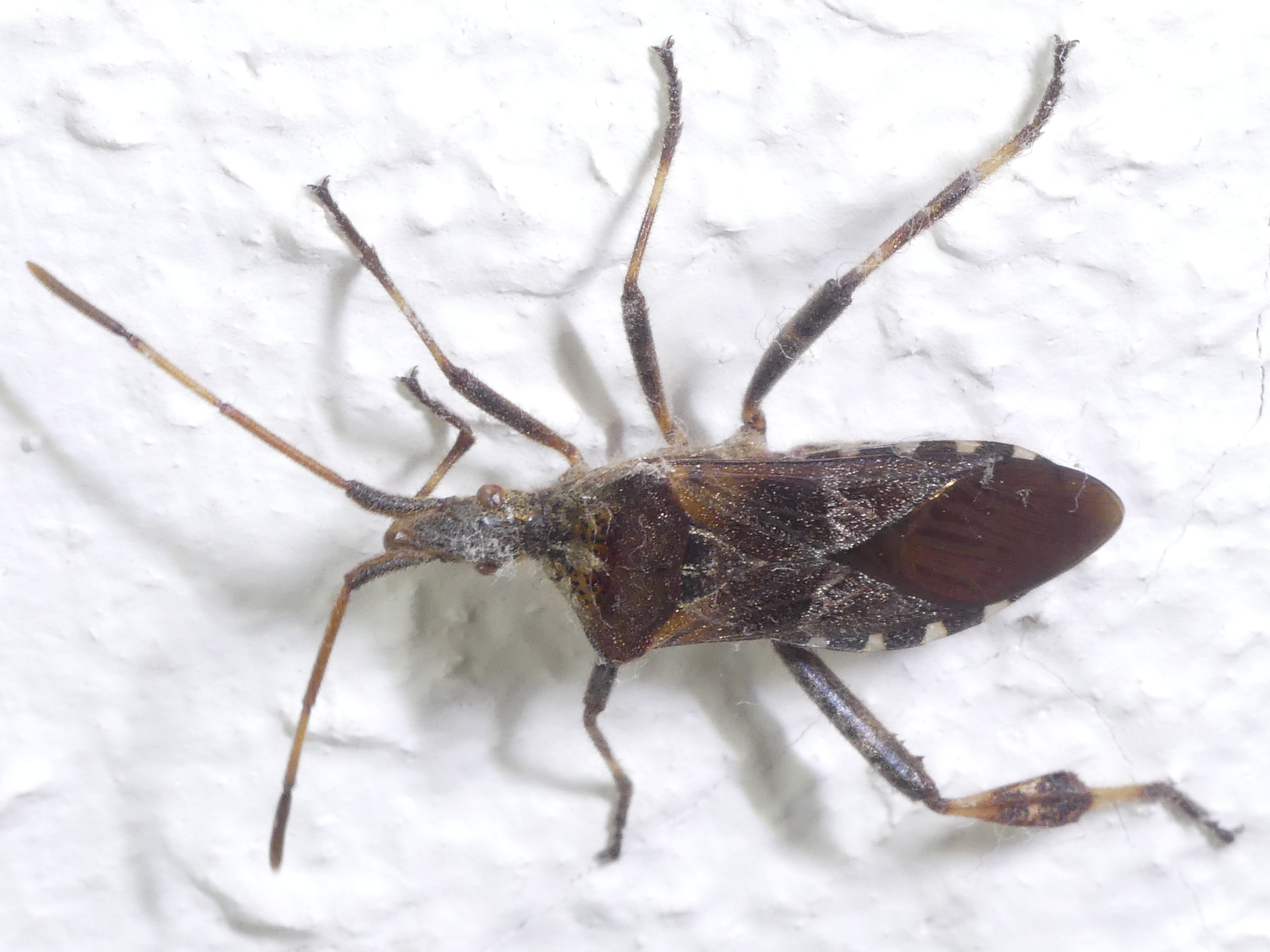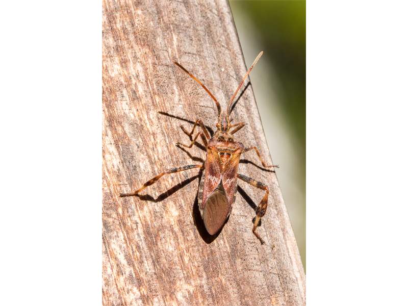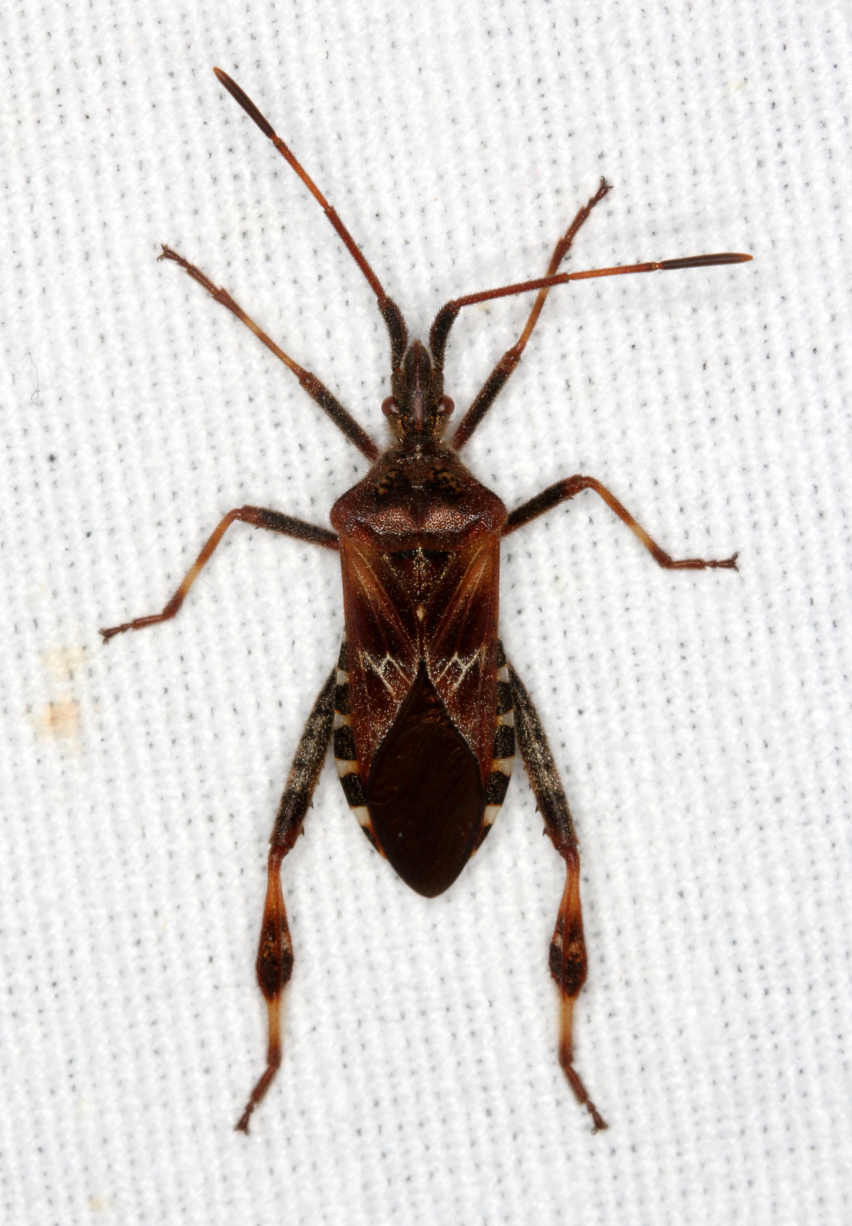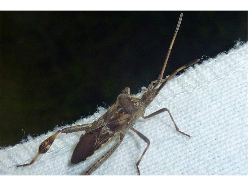 Larve der Amerikanischen Zapfenwanze ( Leptoglossus occidentalis). Deutschland, Baden-Württemberg, Baden-Baden, einzeln stehende Kiefer nord-nord-westlich Ortsteil Sandweier, 30.06.2012 (© Michael Münch)( Bild vergrößern)