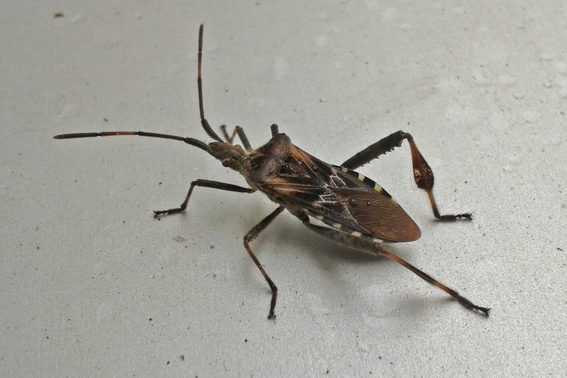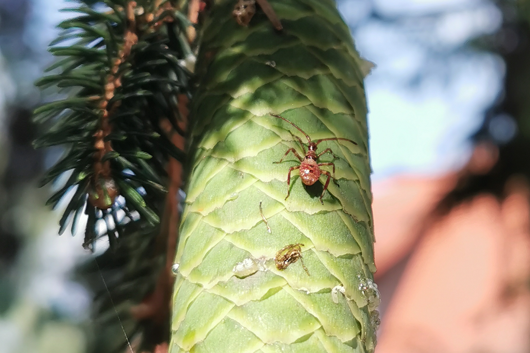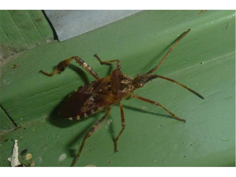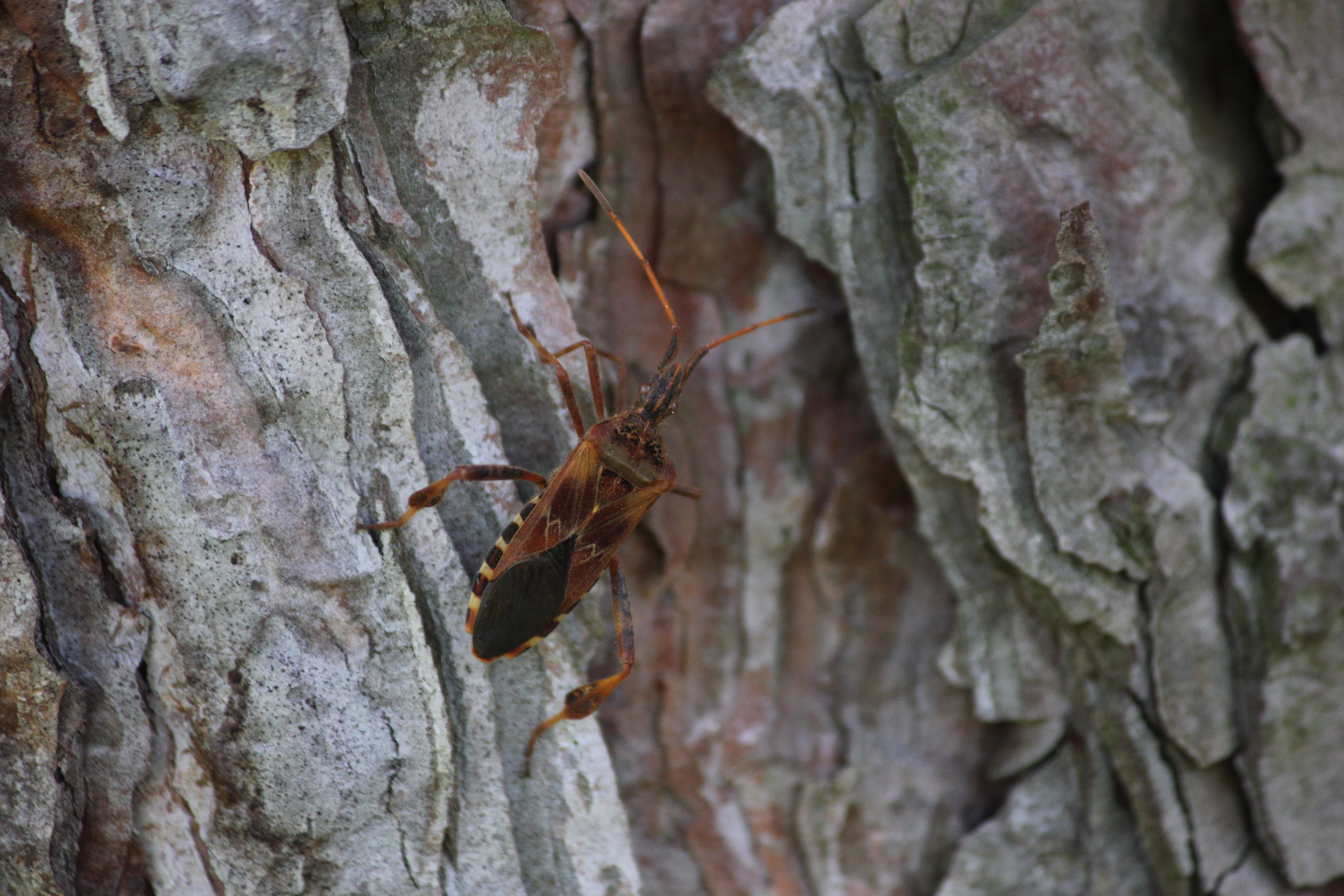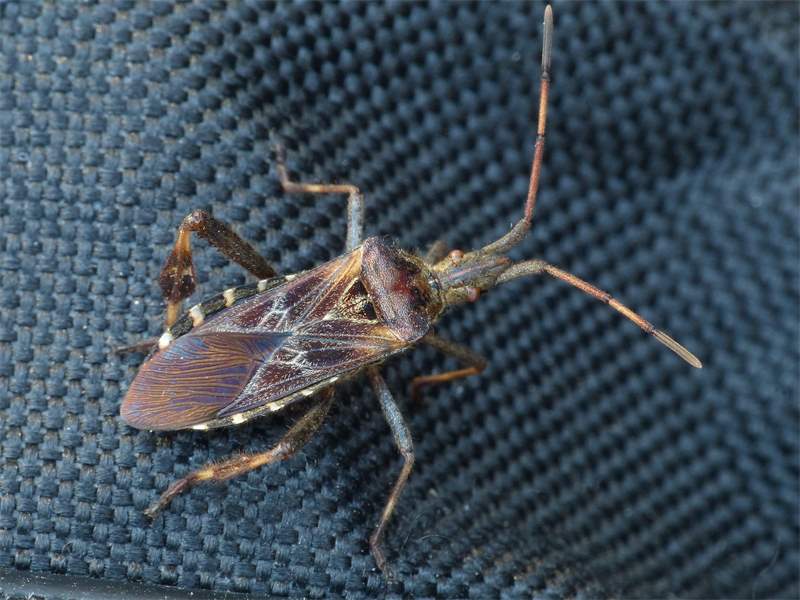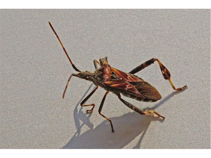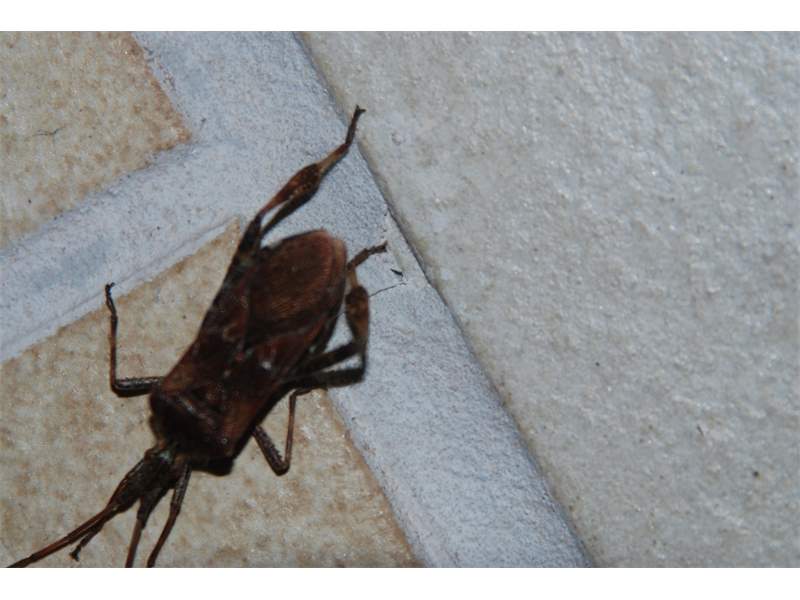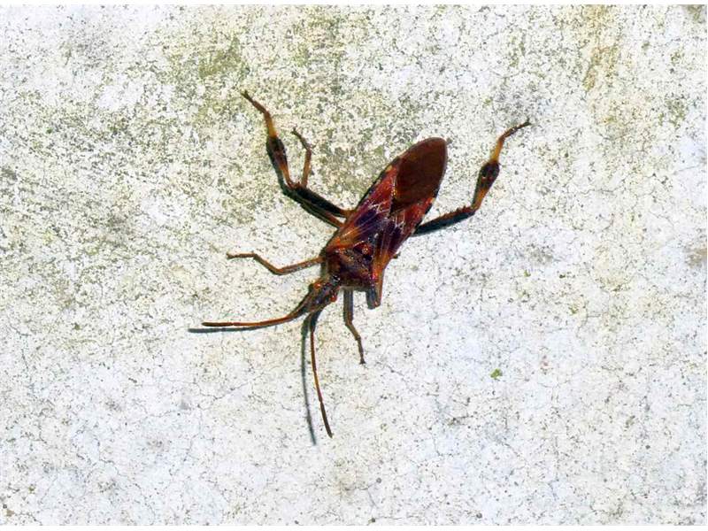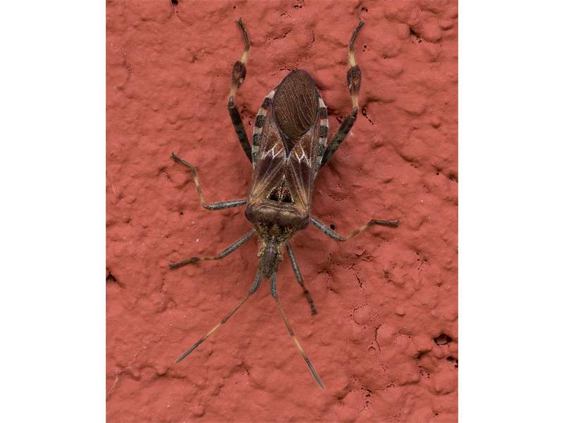 Larve der Amerikanischen Zapfenwanze ( Leptoglossus occidentalis). Deutschland, Baden-Württemberg, Baden-Baden, einzeln stehende Kiefer nord-nord-westlich Ortsteil Sandweier, 30.06.2012 (© Michael Münch)( Bild vergrößern)