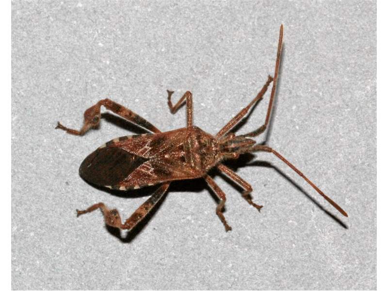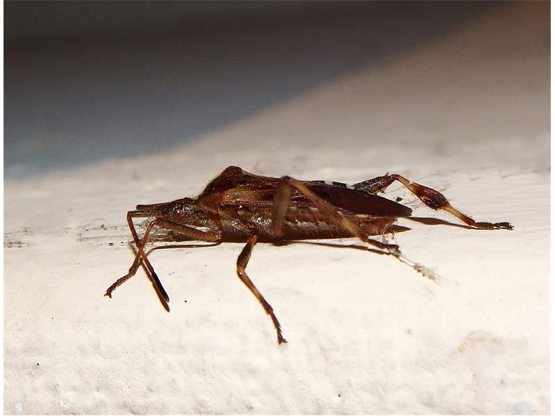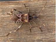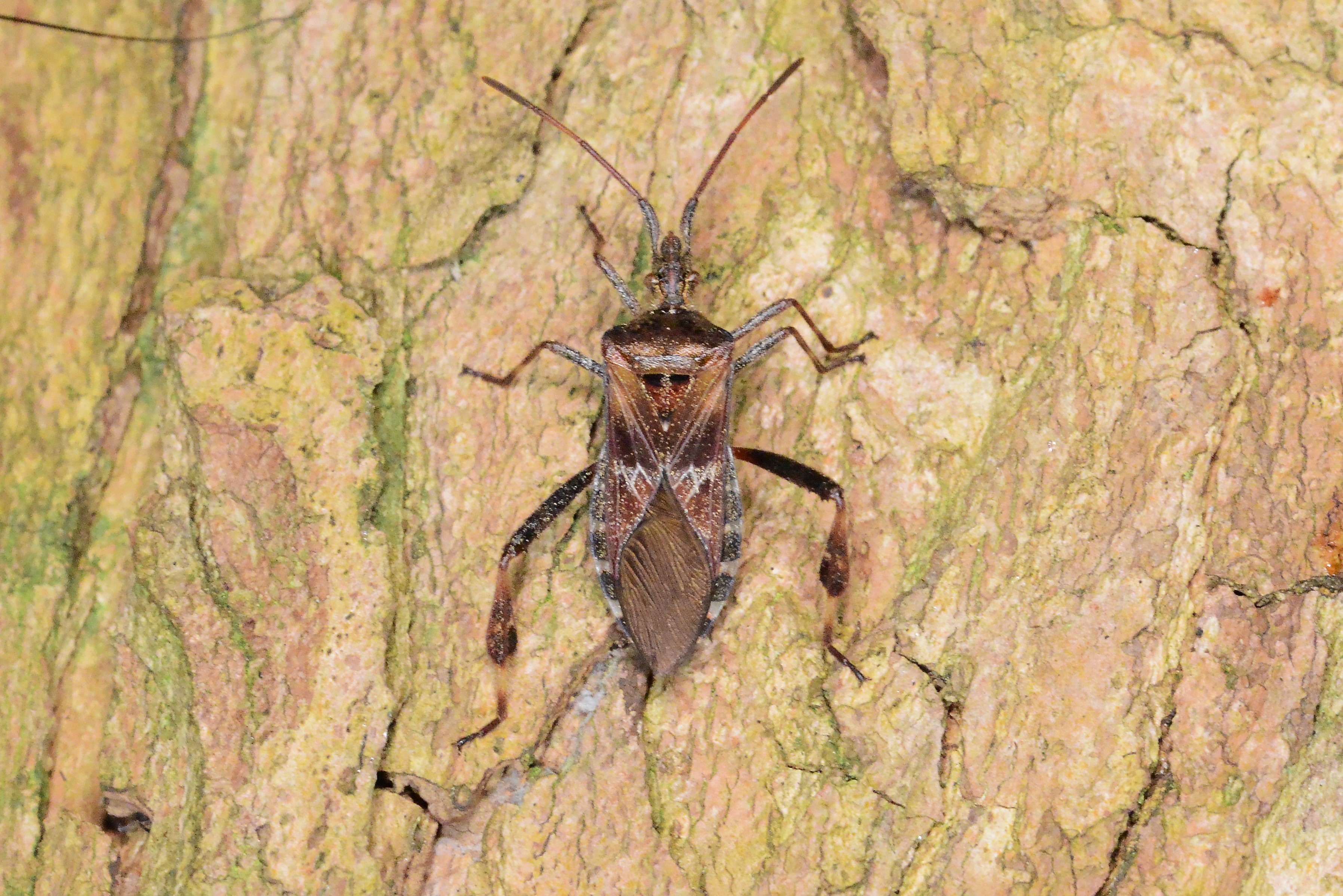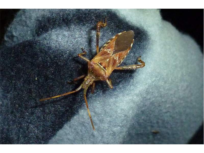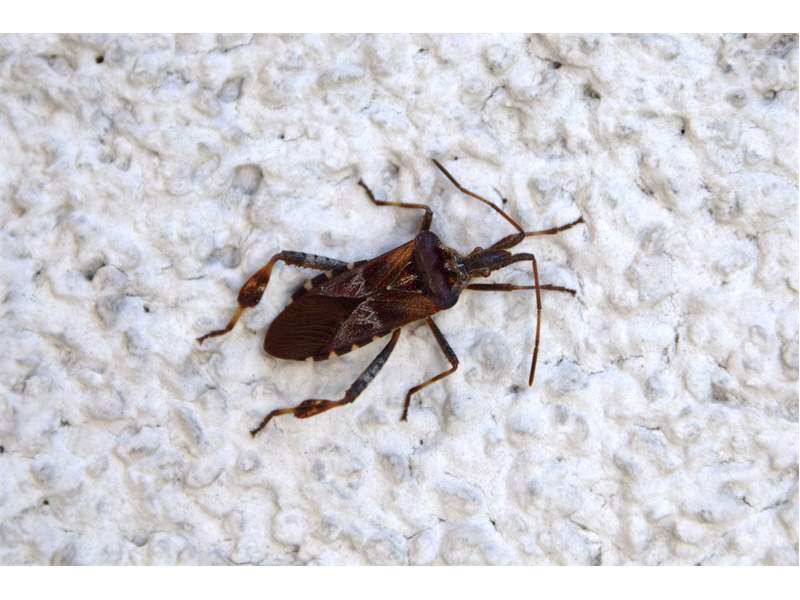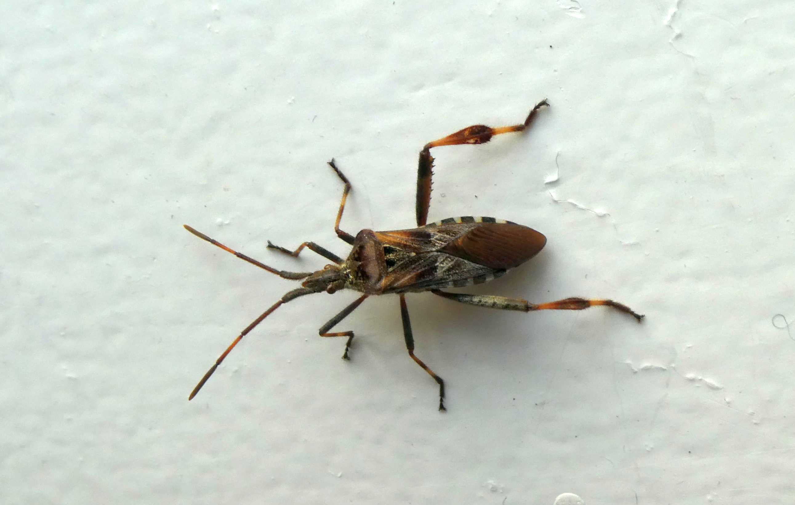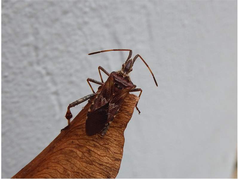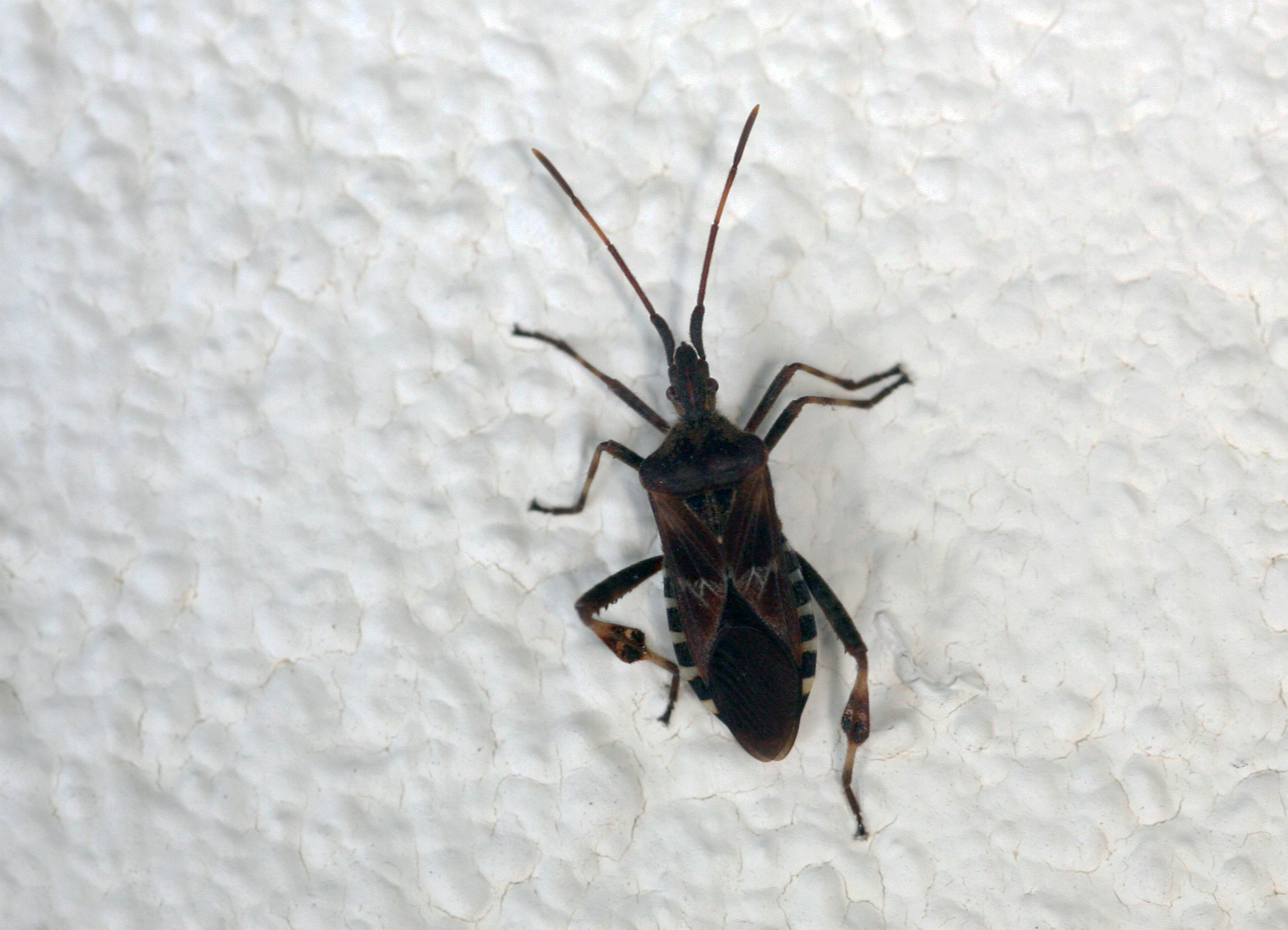 Larve der Amerikanischen Zapfenwanze ( Leptoglossus occidentalis). Deutschland, Baden-Württemberg, Baden-Baden, einzeln stehende Kiefer nord-nord-westlich Ortsteil Sandweier, 30.06.2012 (© Michael Münch)( Bild vergrößern)