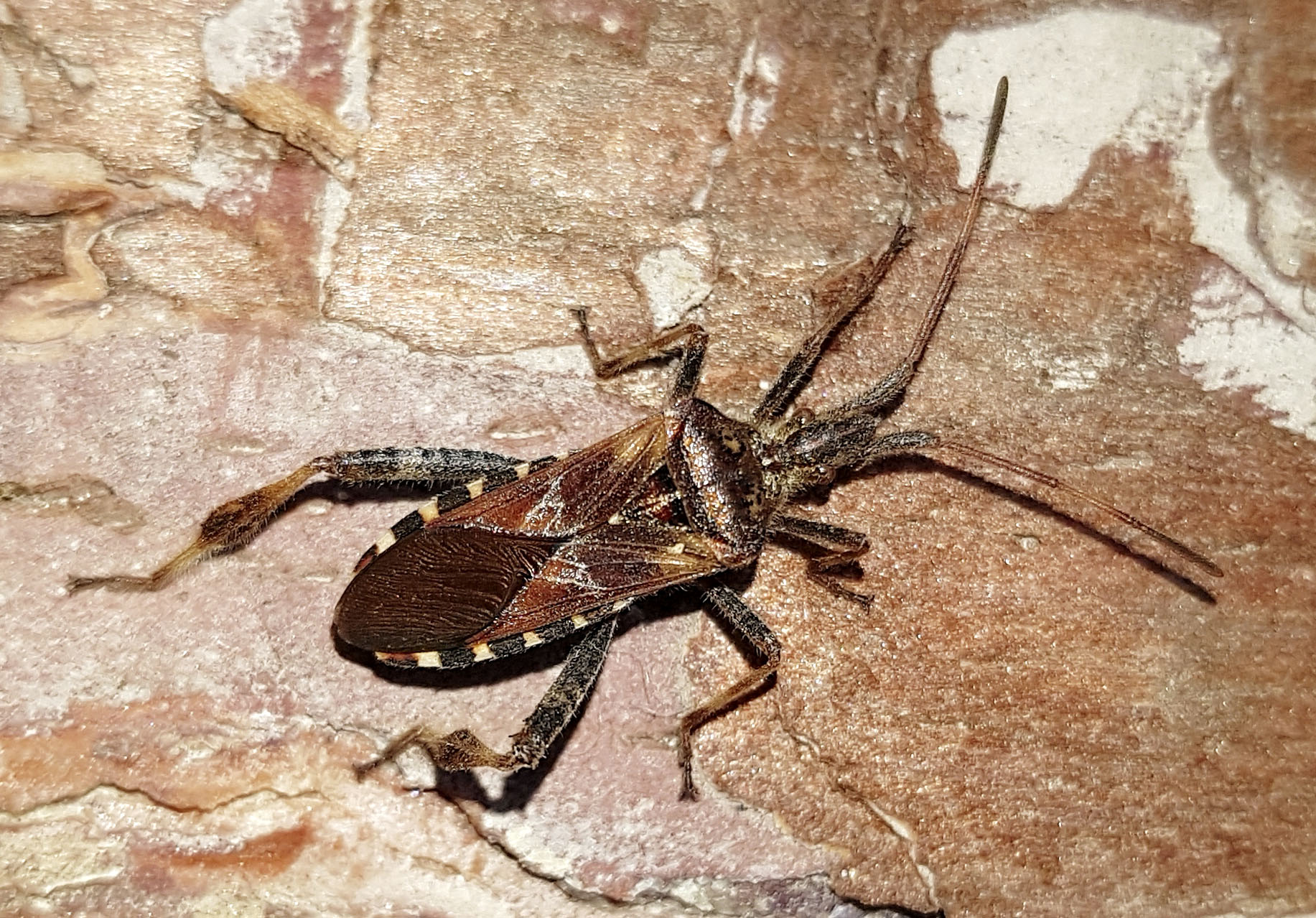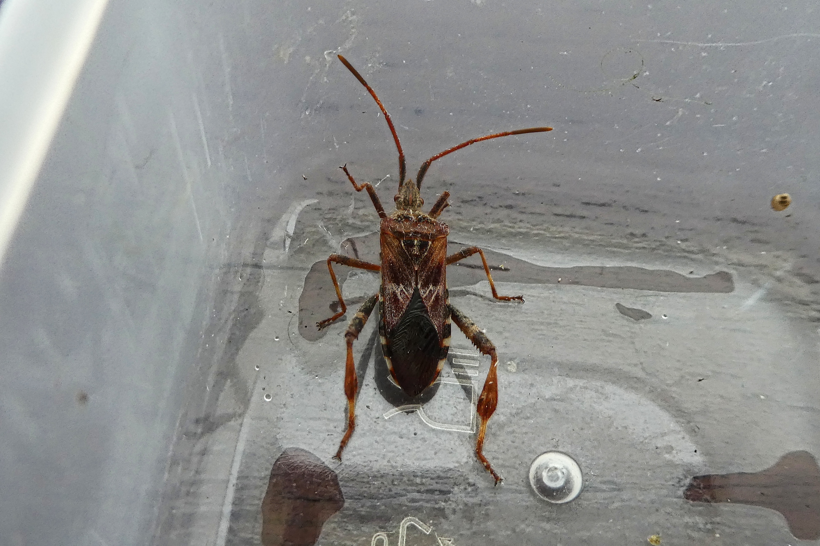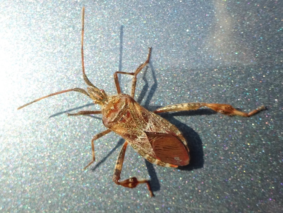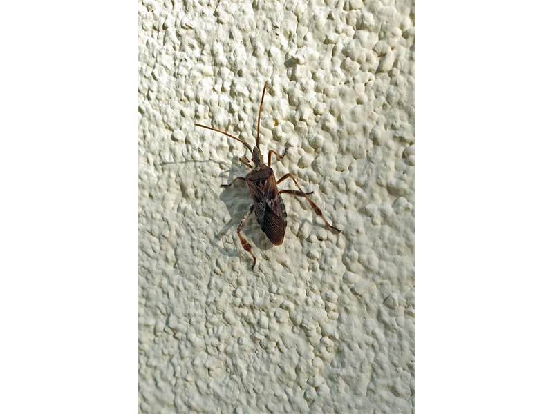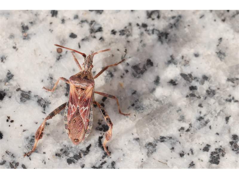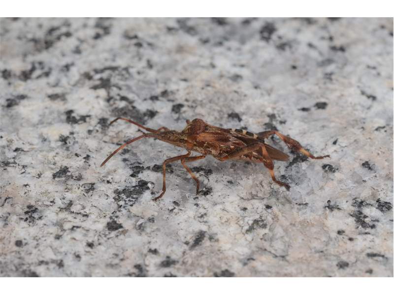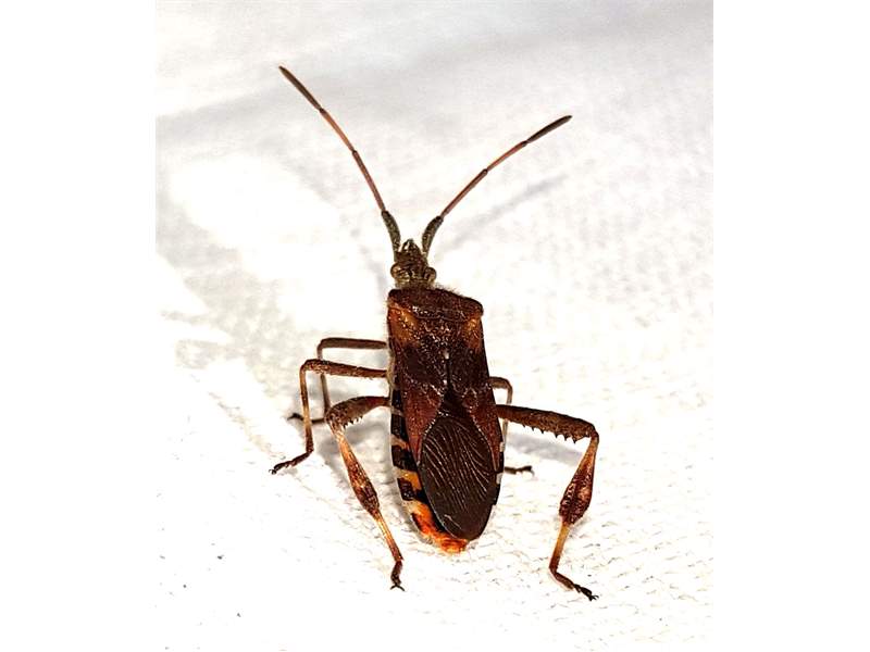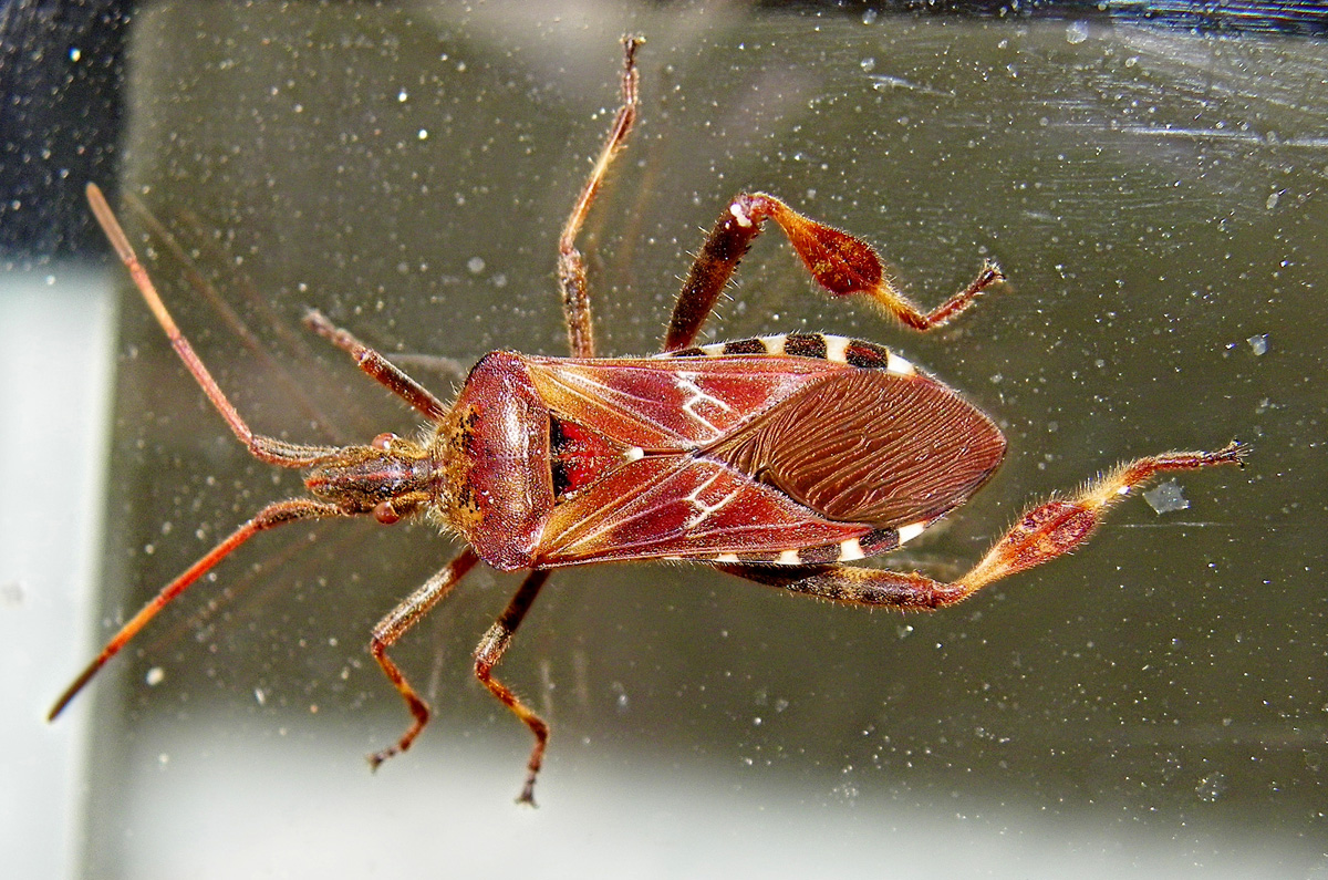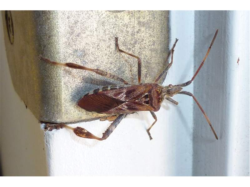 Larve der Amerikanischen Zapfenwanze ( Leptoglossus occidentalis). Deutschland, Baden-Württemberg, Baden-Baden, einzeln stehende Kiefer nord-nord-westlich Ortsteil Sandweier, 30.06.2012 (© Michael Münch)( Bild vergrößern)
