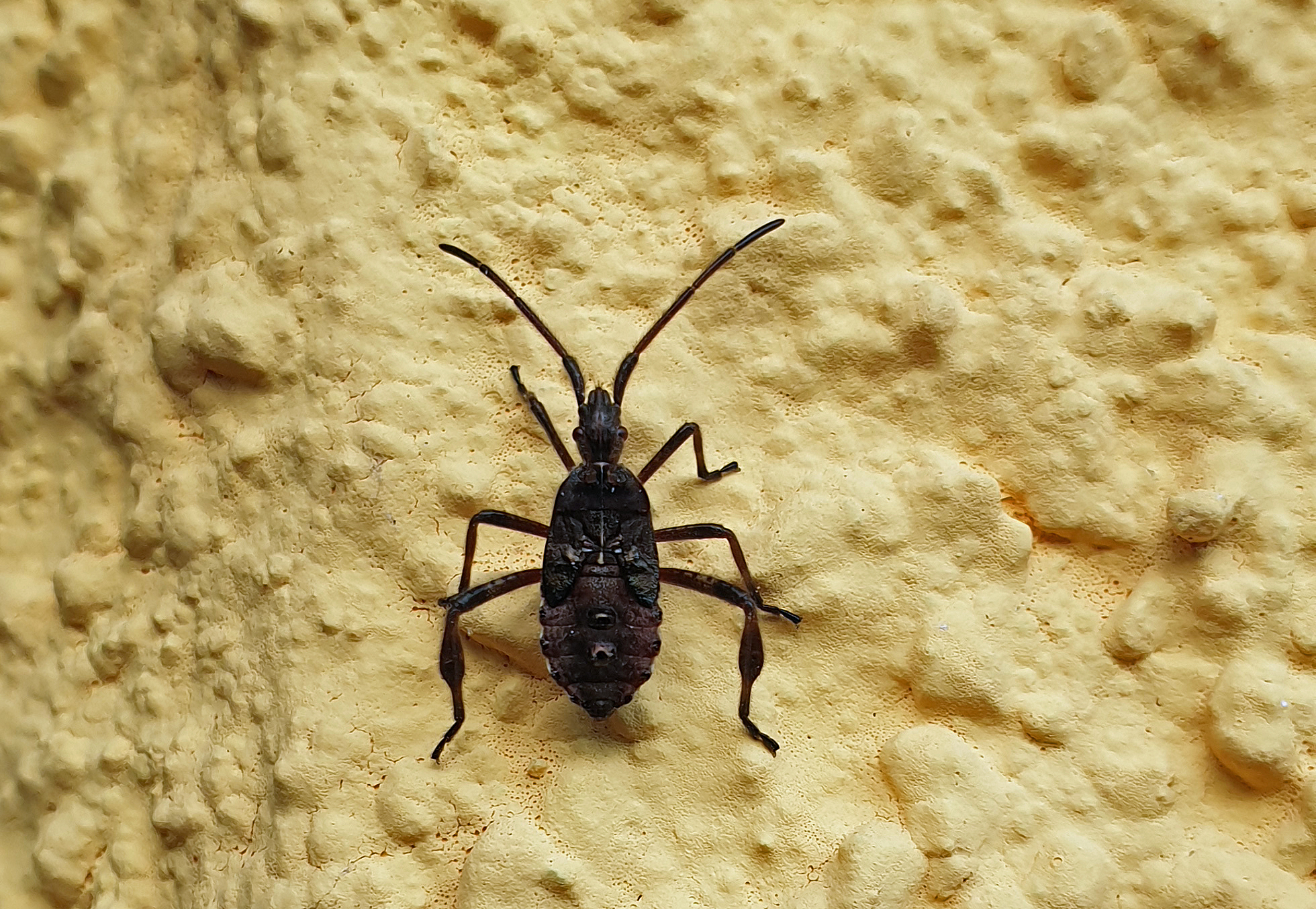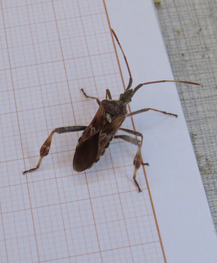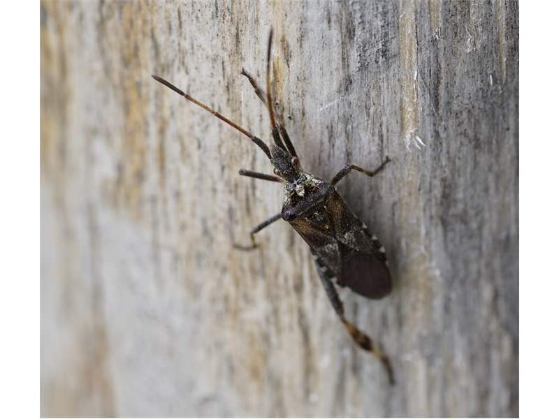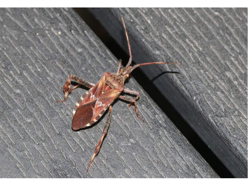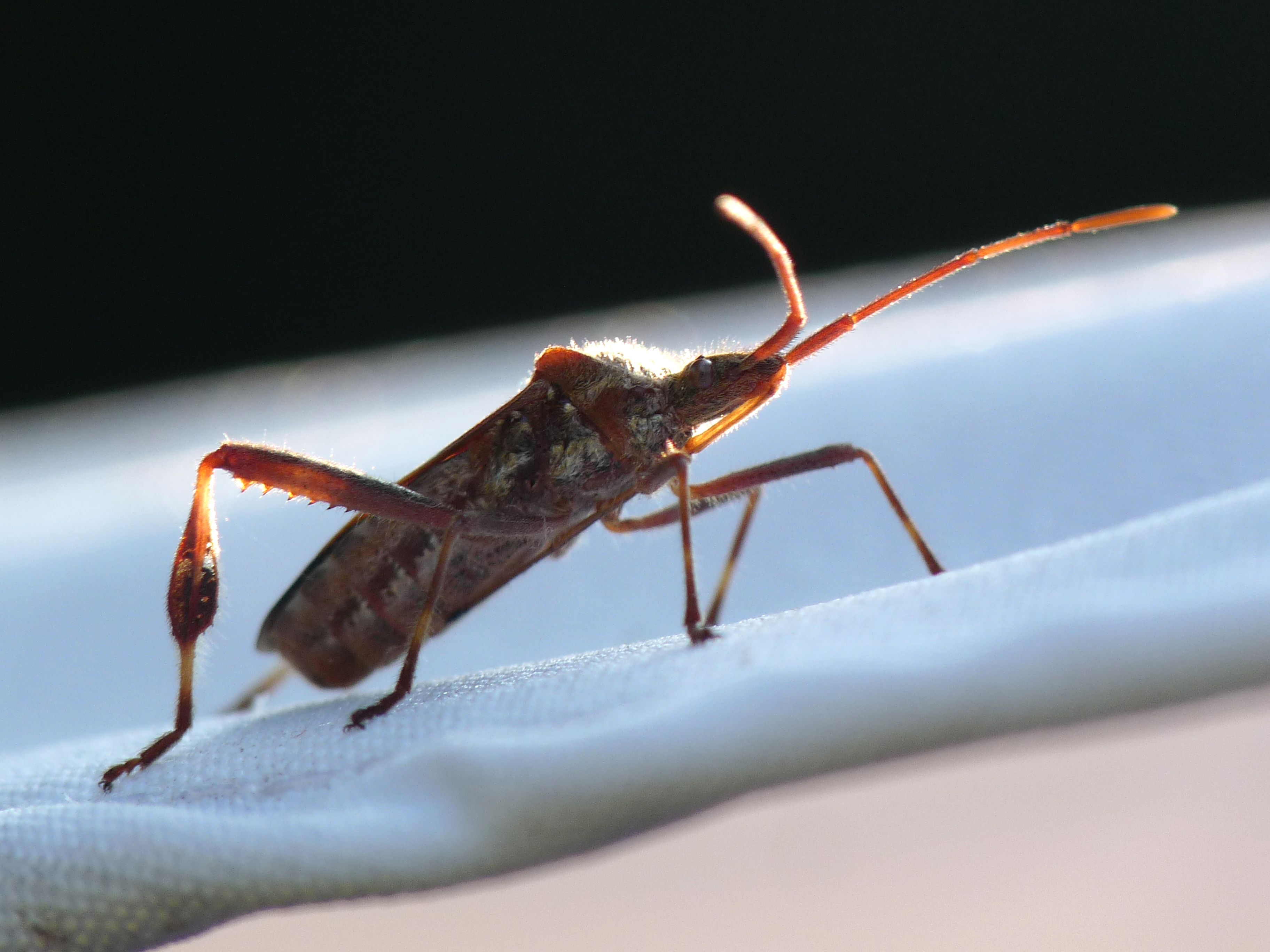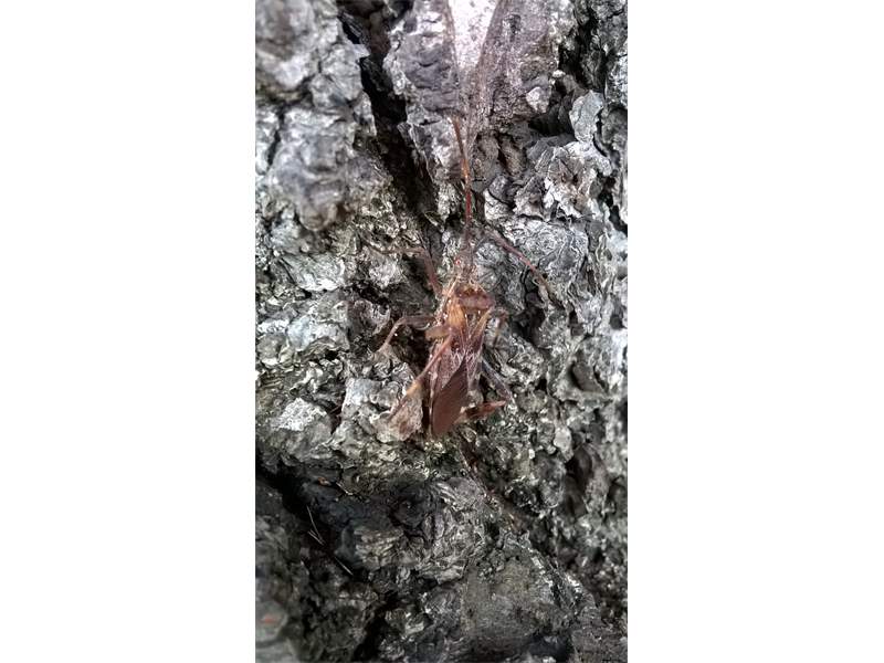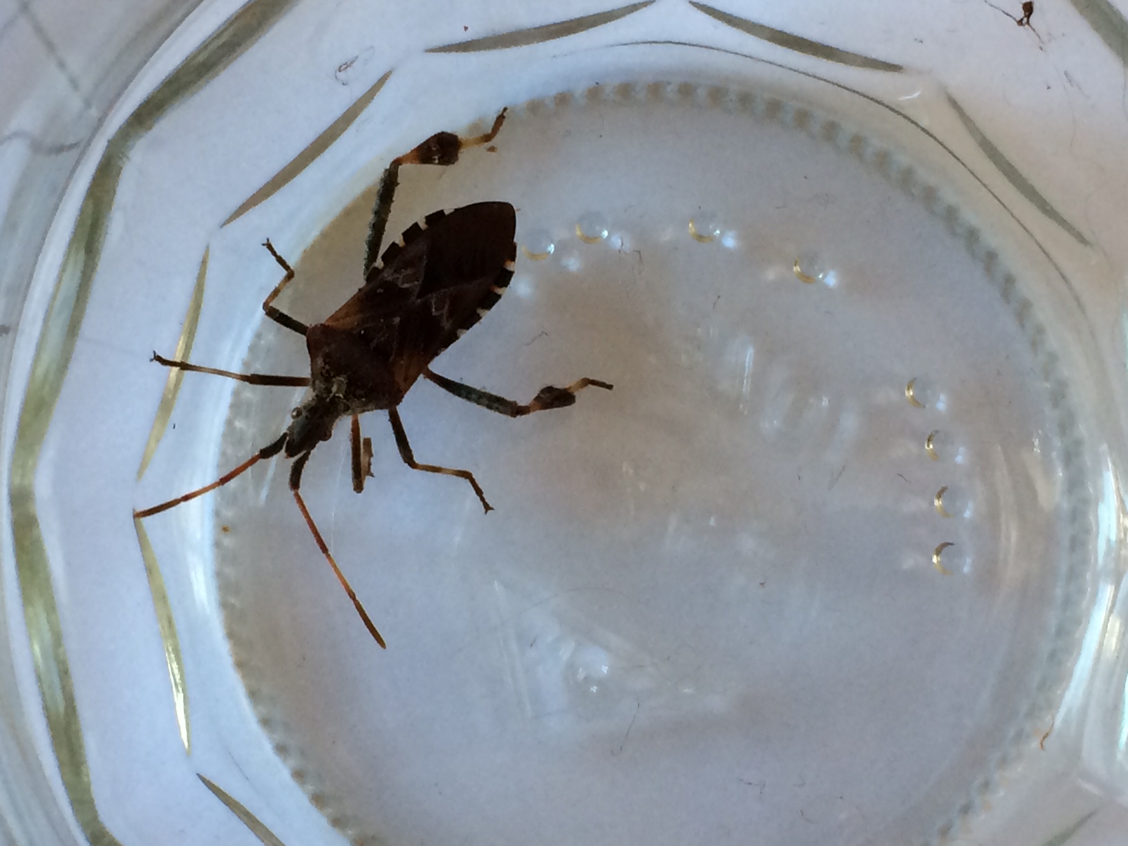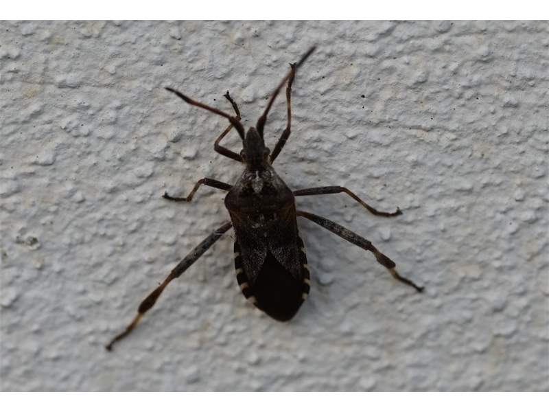 Larve der Amerikanischen Zapfenwanze ( Leptoglossus occidentalis). Deutschland, Baden-Württemberg, Baden-Baden, einzeln stehende Kiefer nord-nord-westlich Ortsteil Sandweier, 30.06.2012 (© Michael Münch)( Bild vergrößern)