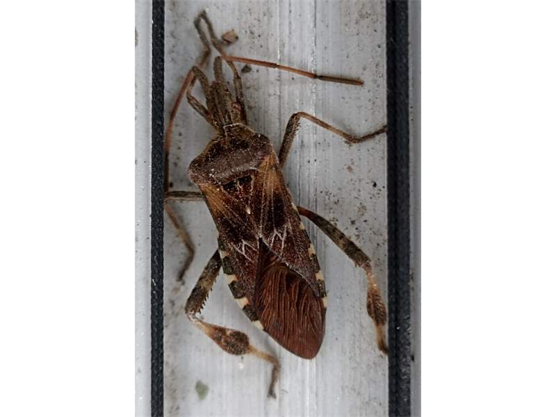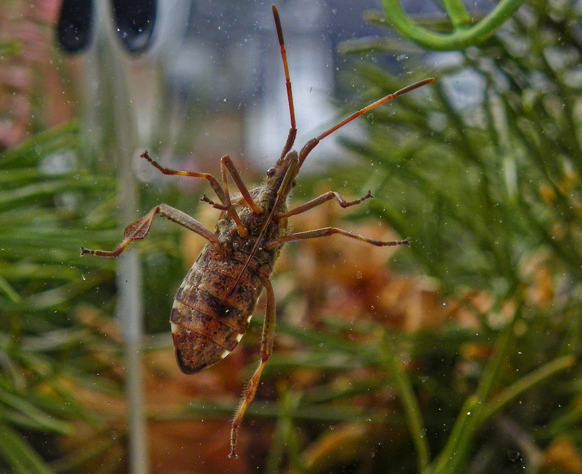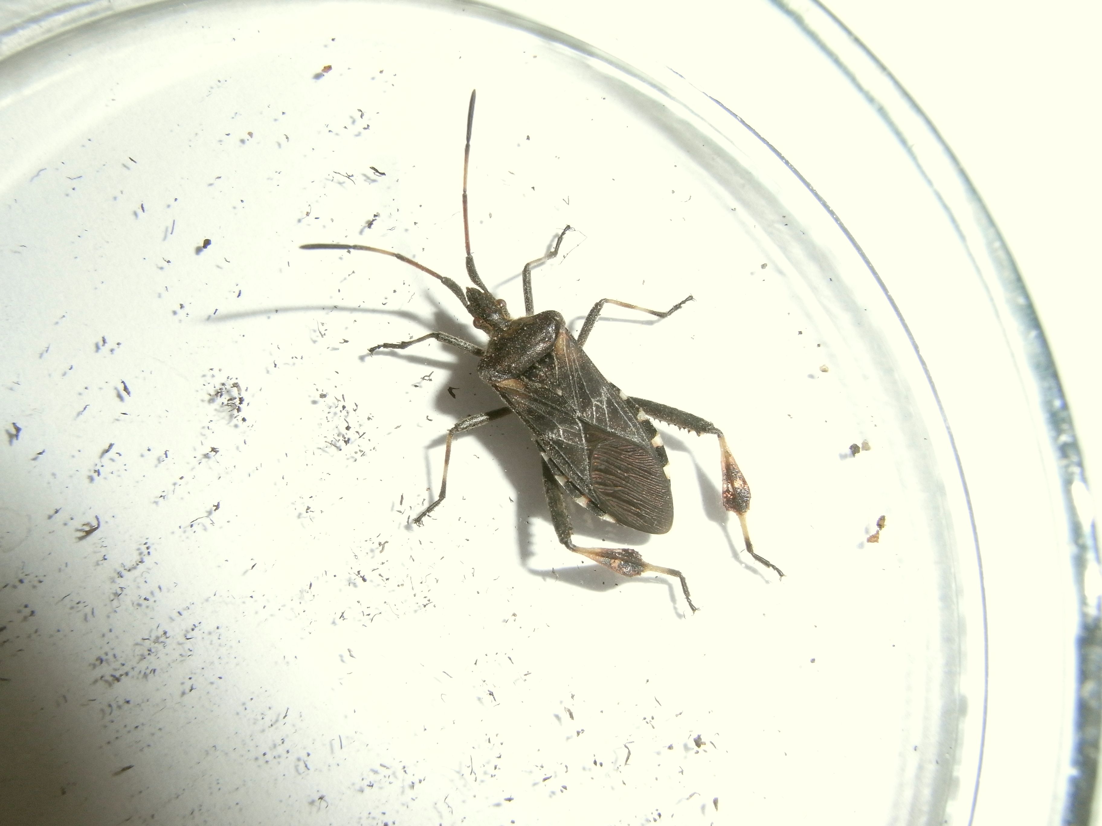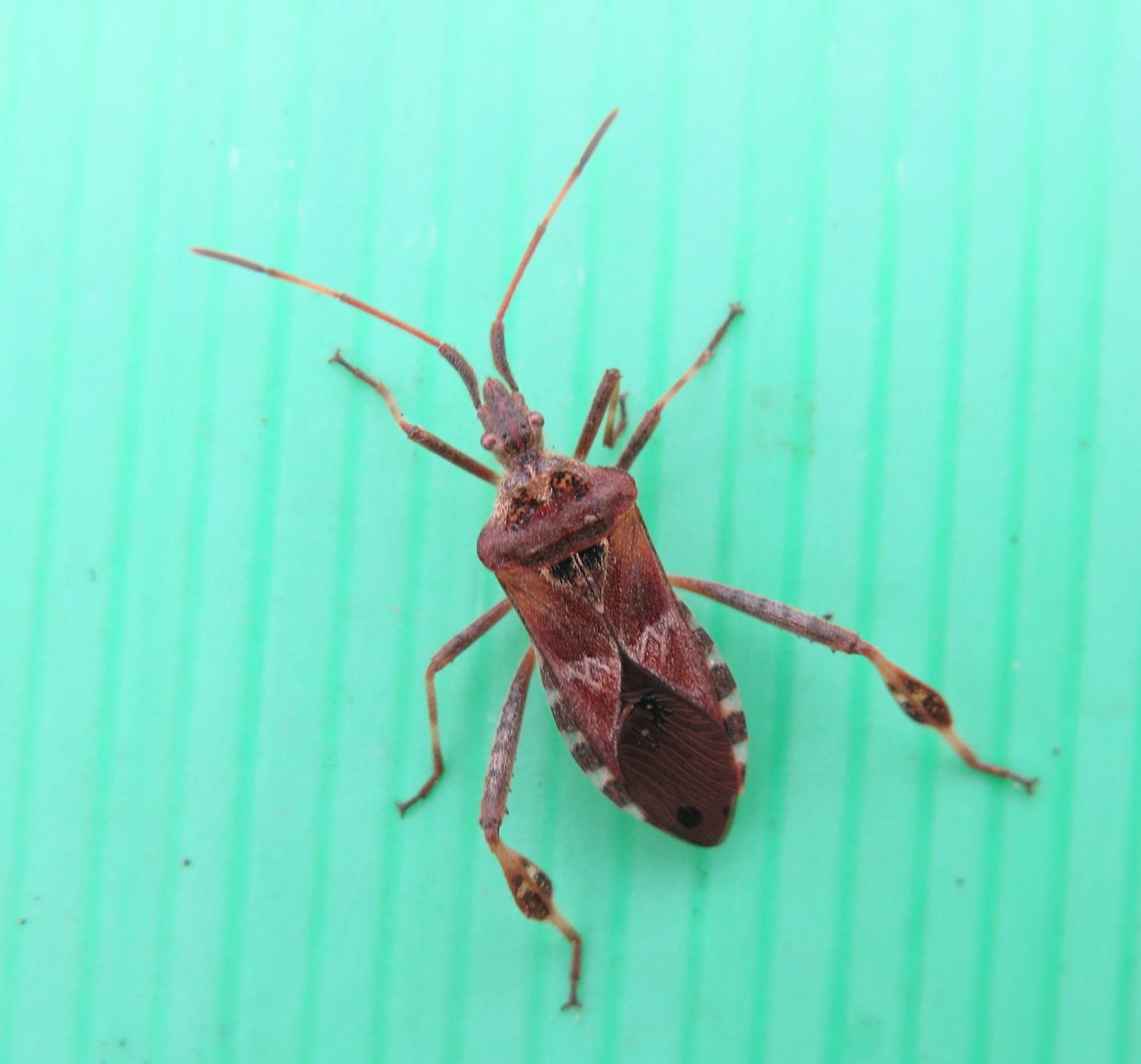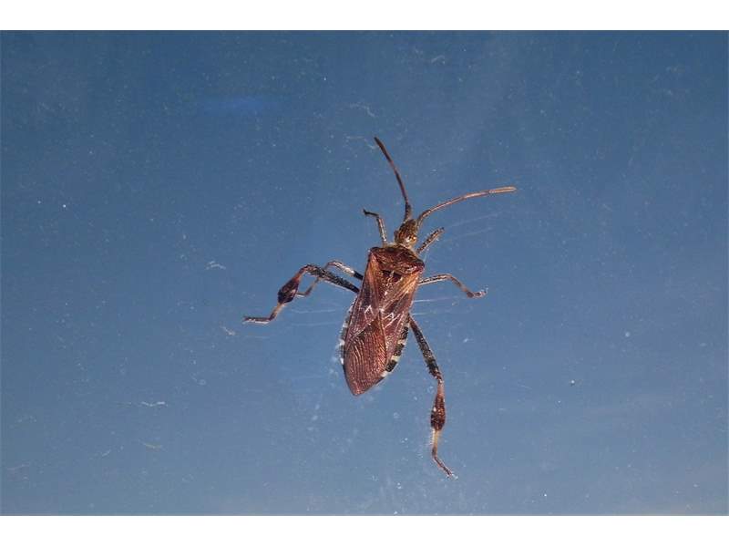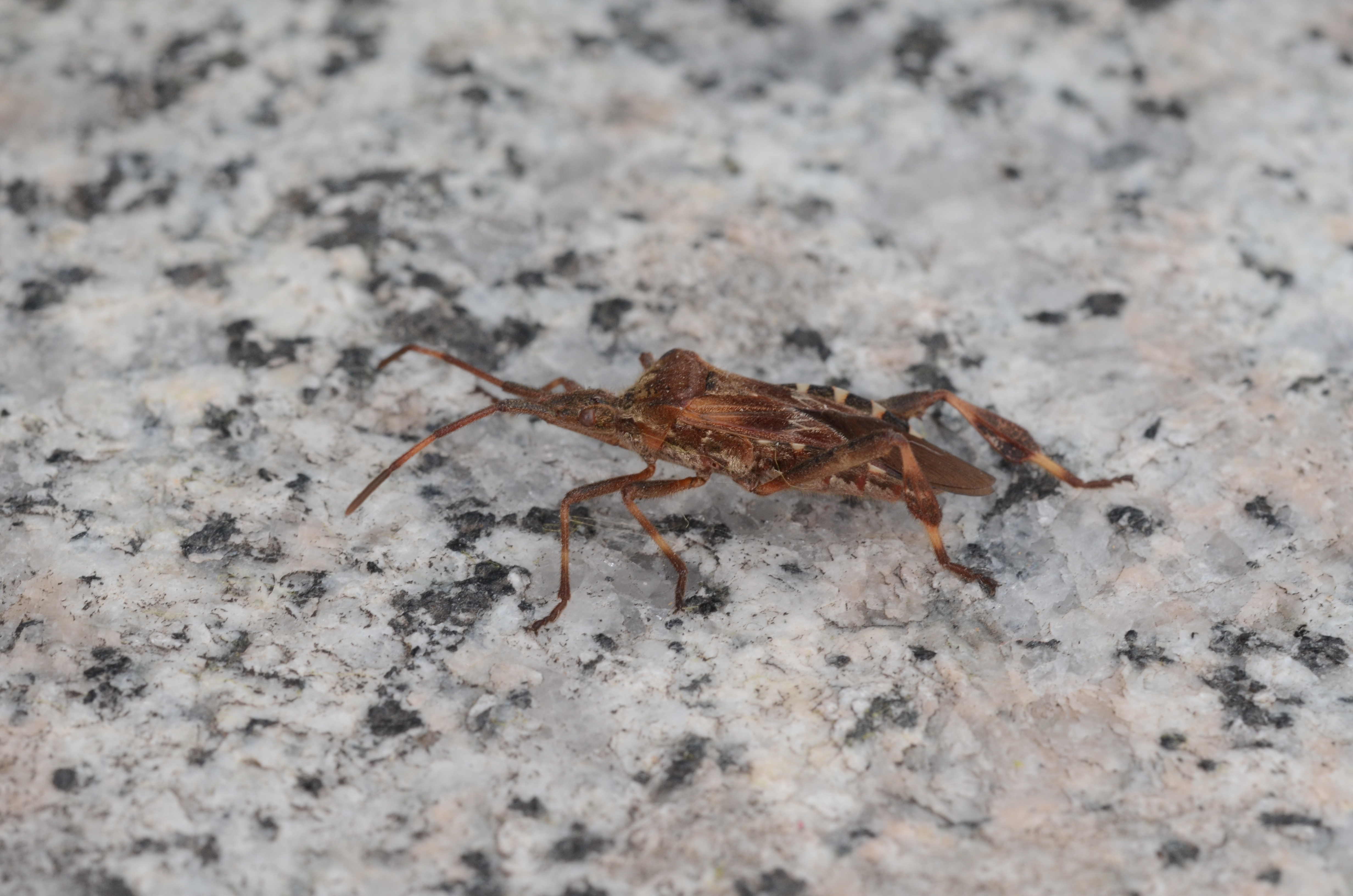 Larve der Amerikanischen Zapfenwanze ( Leptoglossus occidentalis). Deutschland, Baden-Württemberg, Baden-Baden, einzeln stehende Kiefer nord-nord-westlich Ortsteil Sandweier, 30.06.2012 (© Michael Münch)( Bild vergrößern)