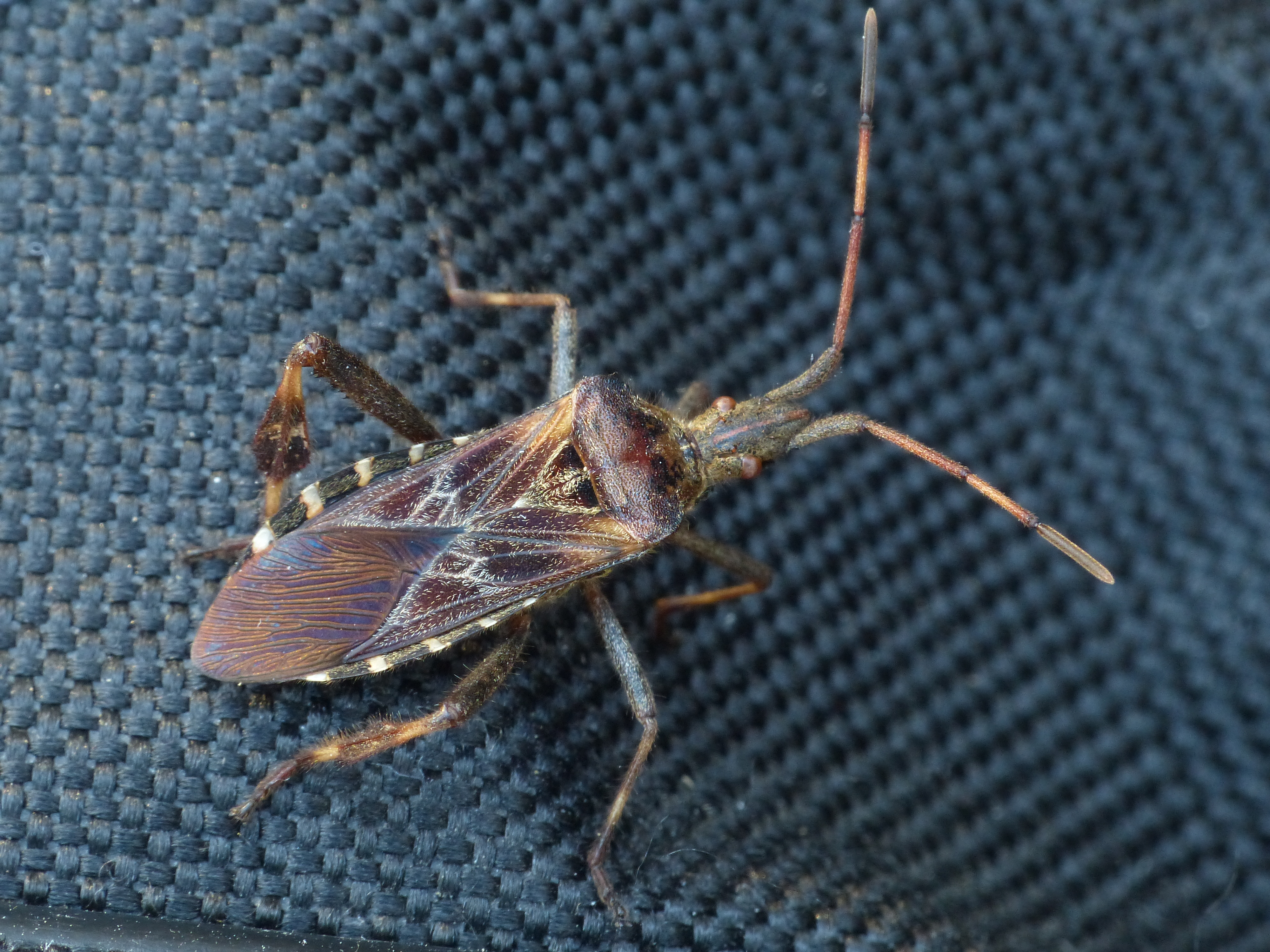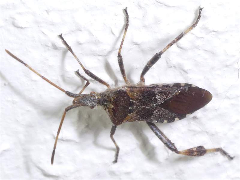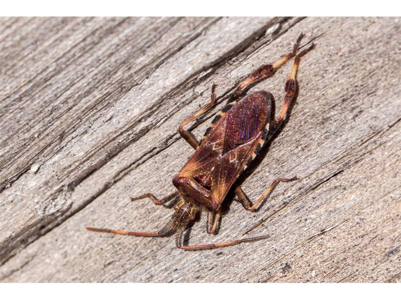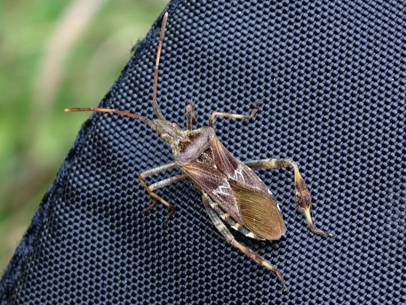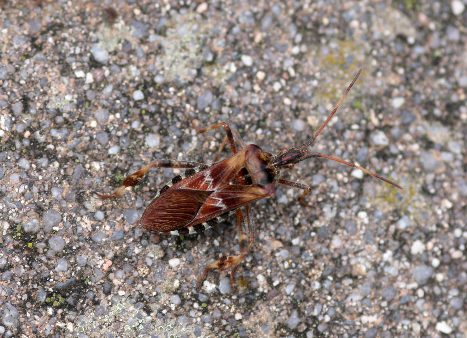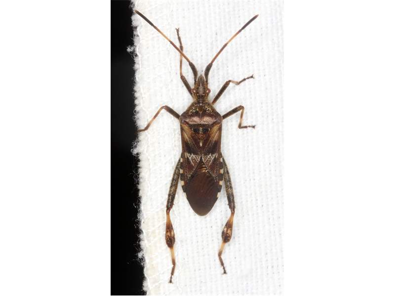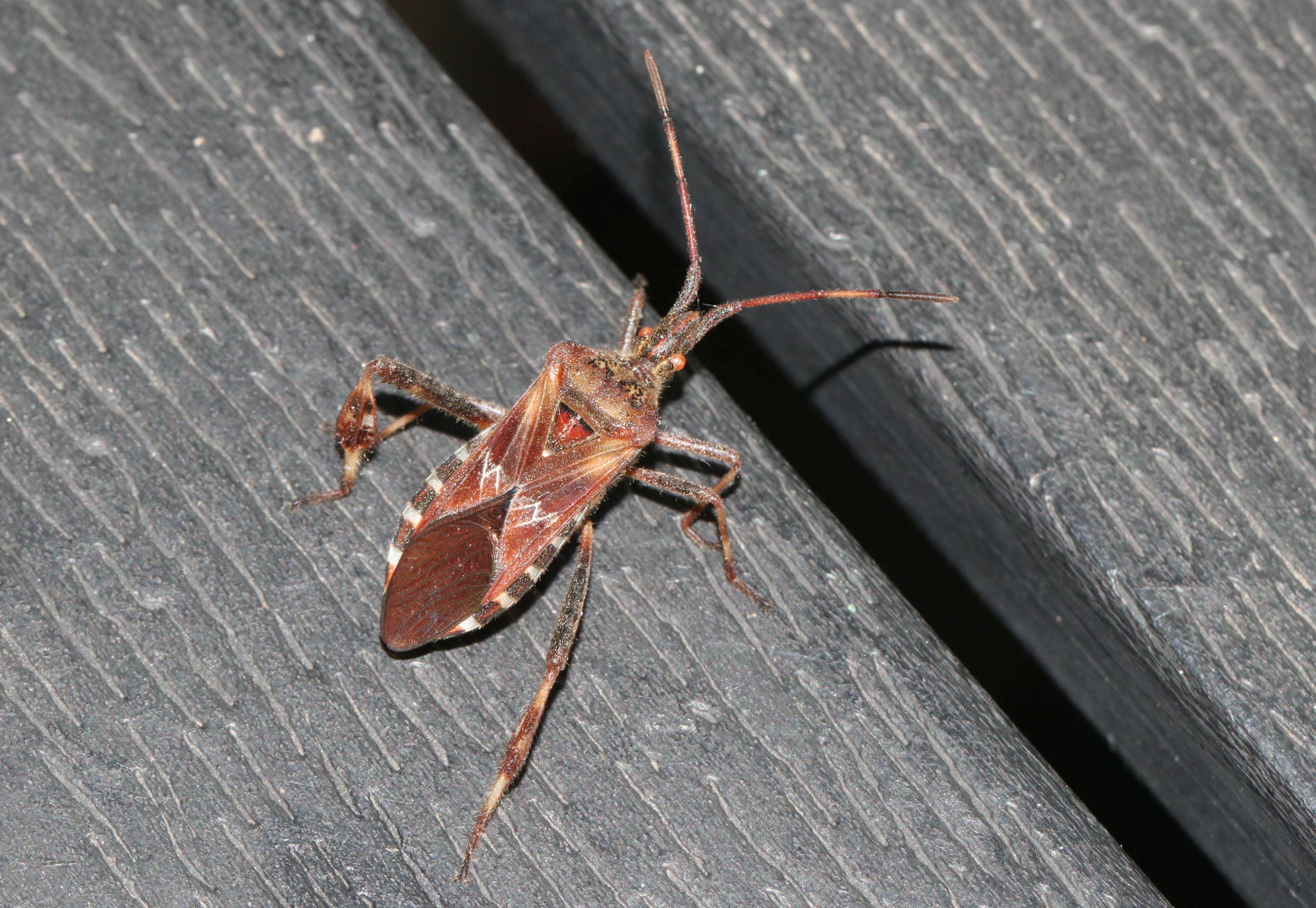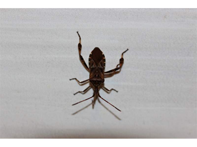 Larve der Amerikanischen Zapfenwanze ( Leptoglossus occidentalis). Deutschland, Baden-Württemberg, Baden-Baden, einzeln stehende Kiefer nord-nord-westlich Ortsteil Sandweier, 30.06.2012 (© Michael Münch)( Bild vergrößern)