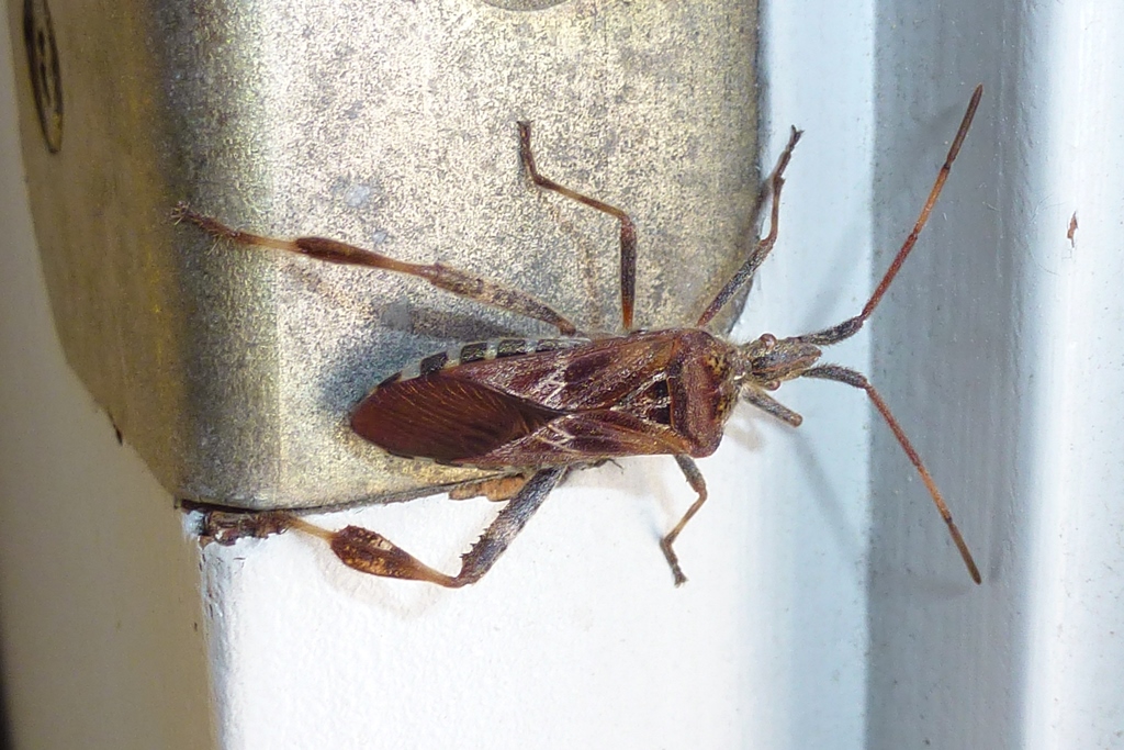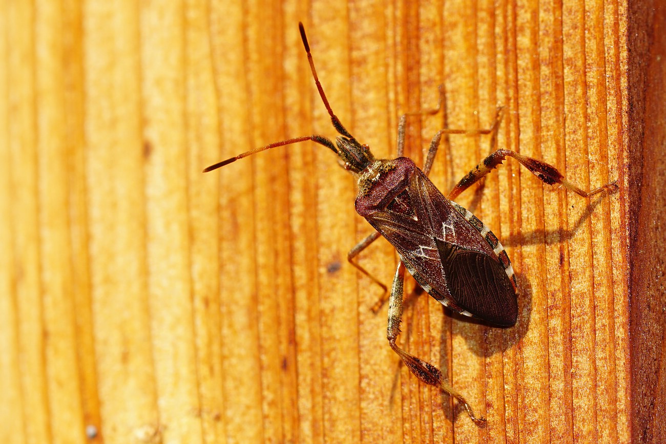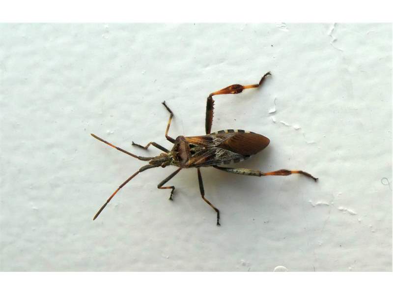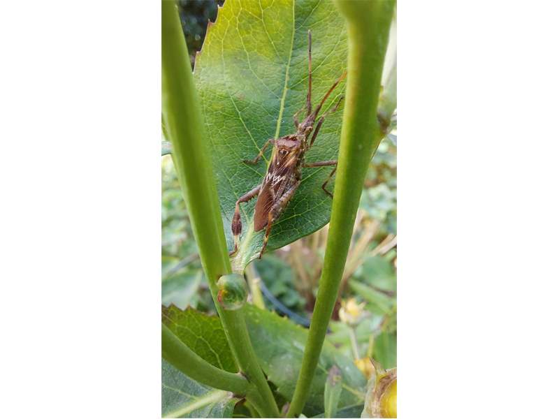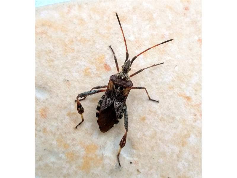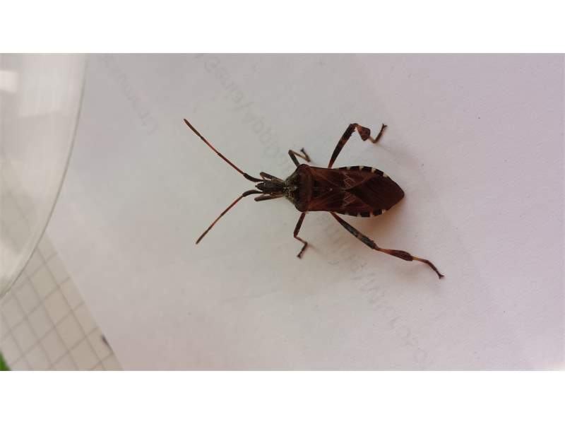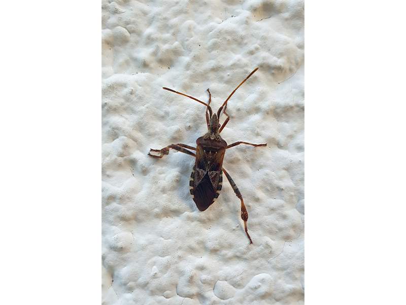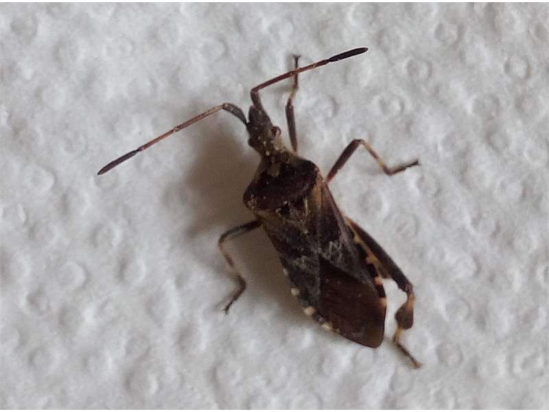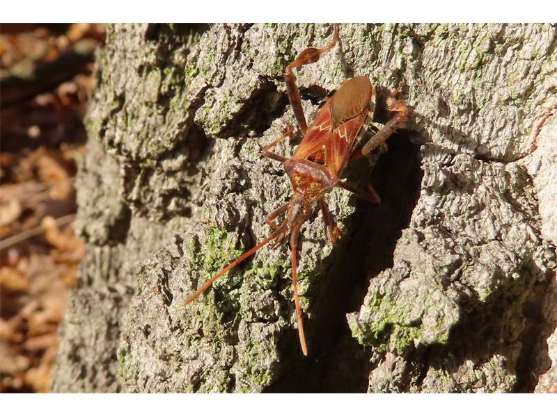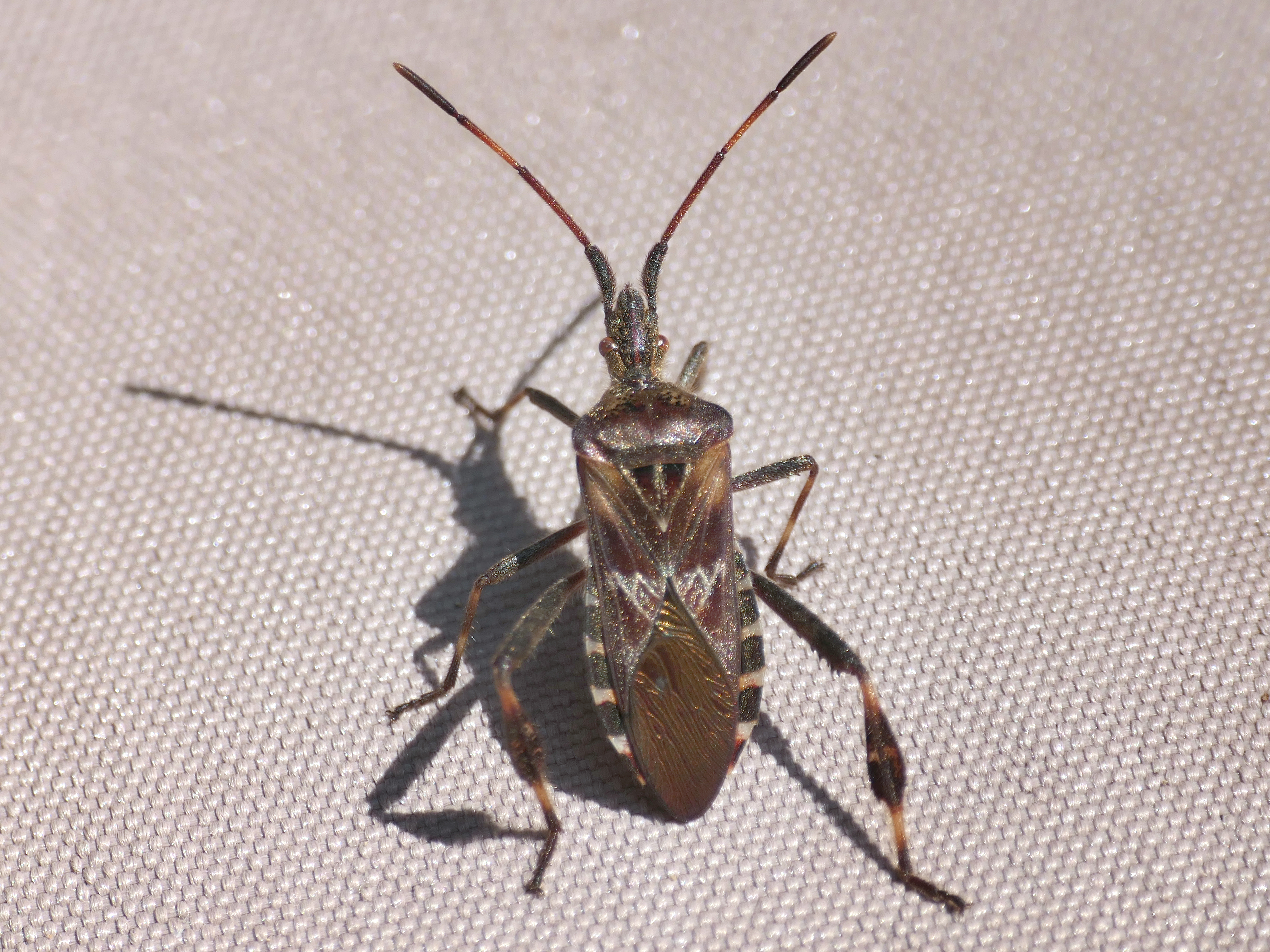 Larve der Amerikanischen Zapfenwanze ( Leptoglossus occidentalis). Deutschland, Baden-Württemberg, Baden-Baden, einzeln stehende Kiefer nord-nord-westlich Ortsteil Sandweier, 30.06.2012 (© Michael Münch)( Bild vergrößern)