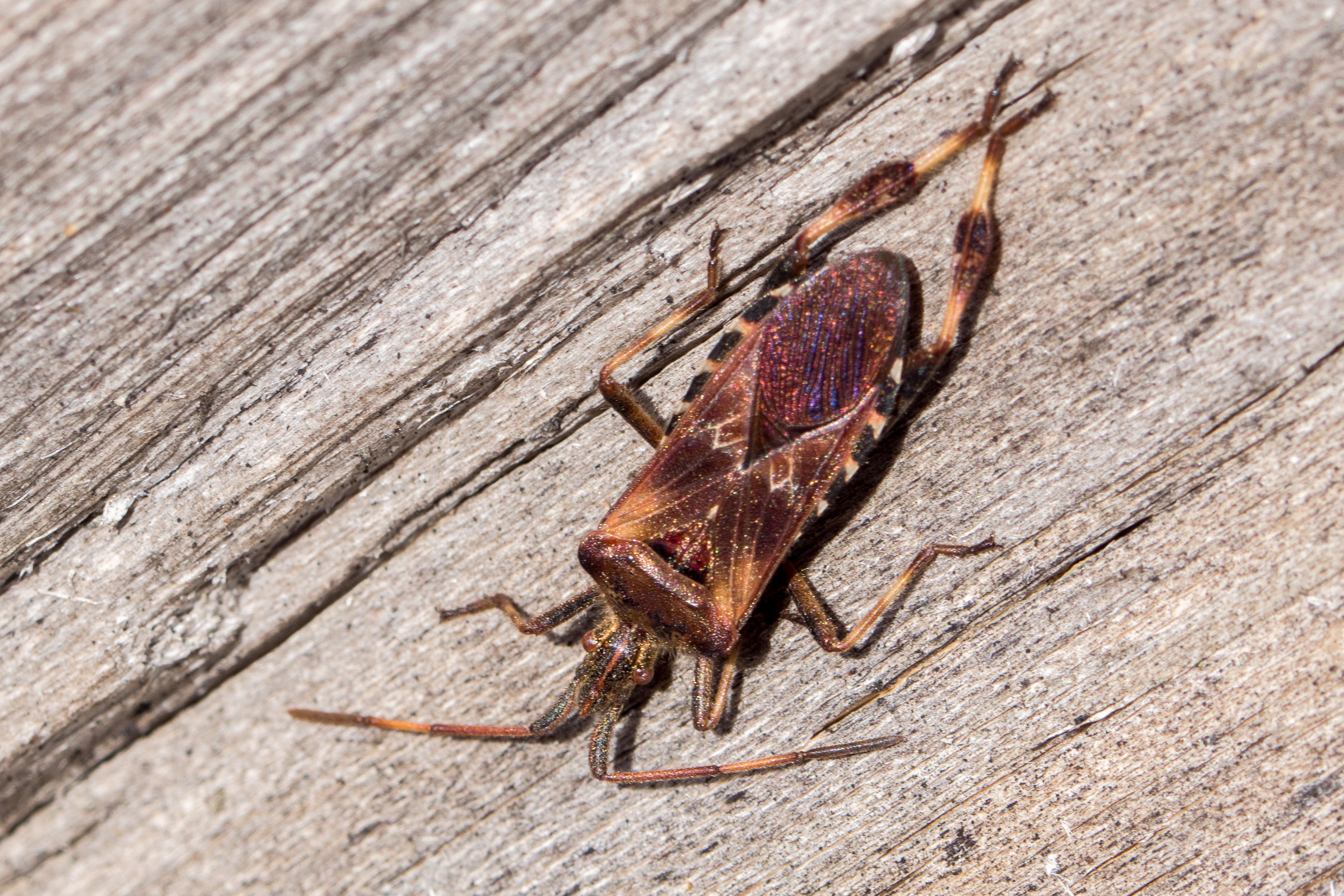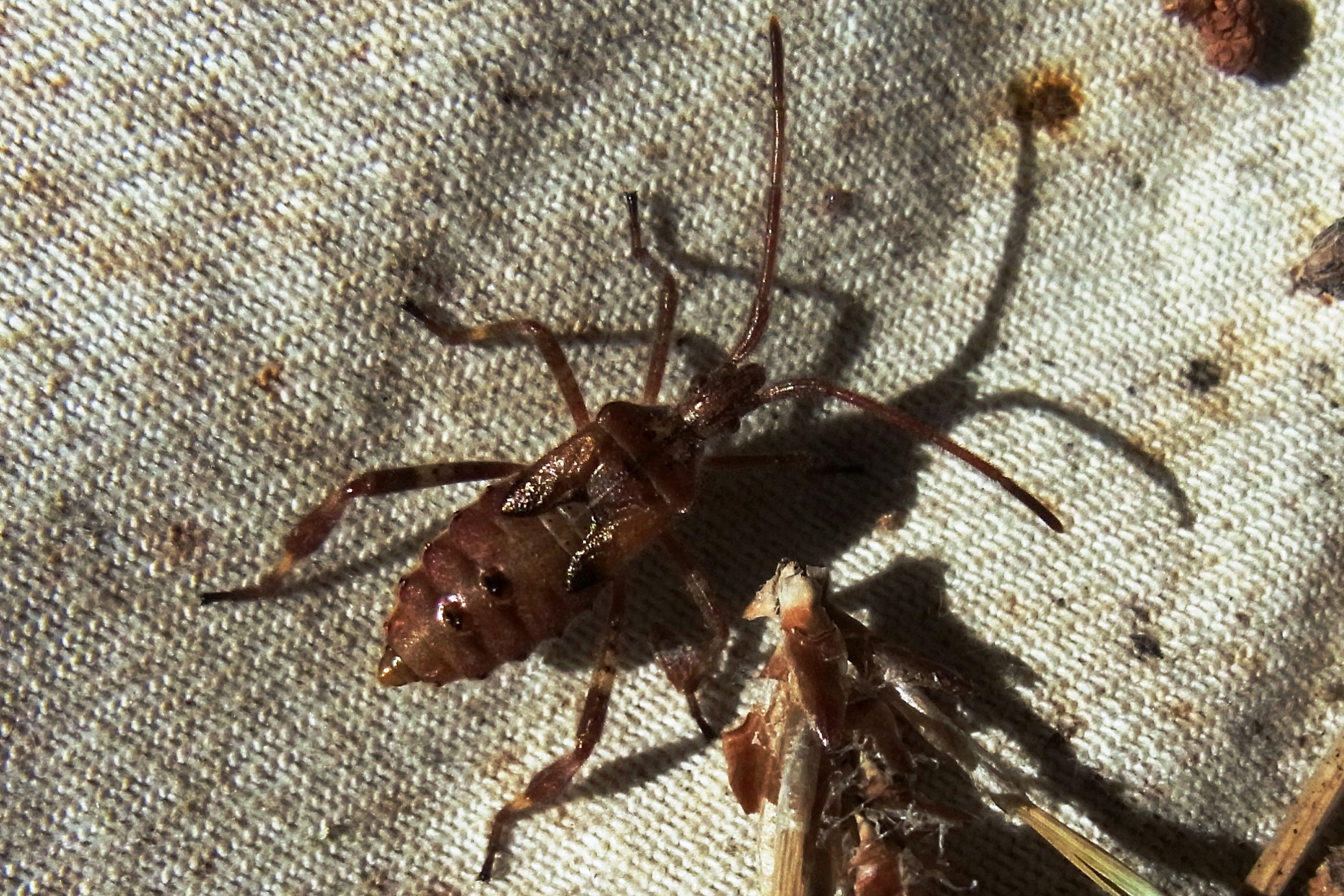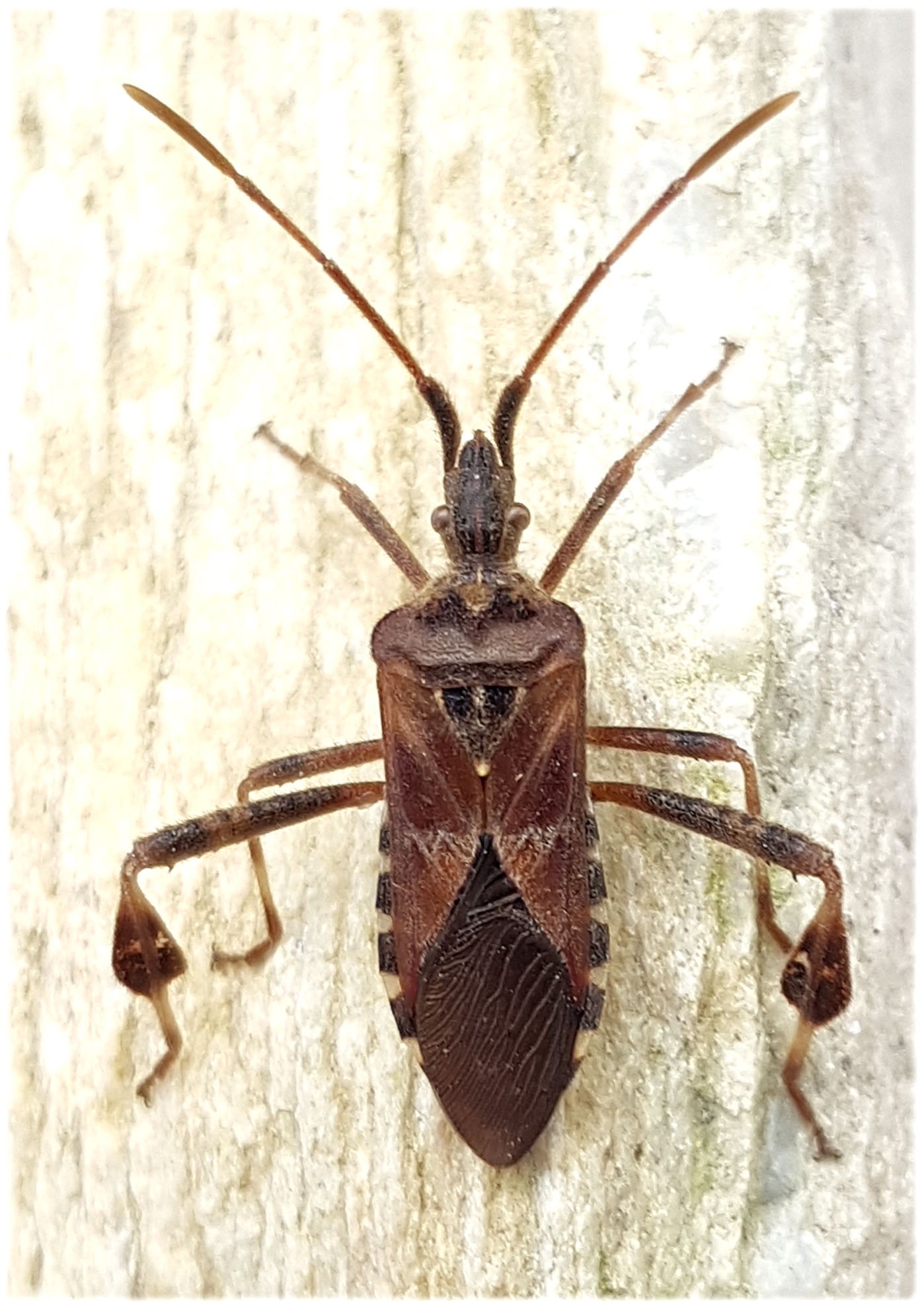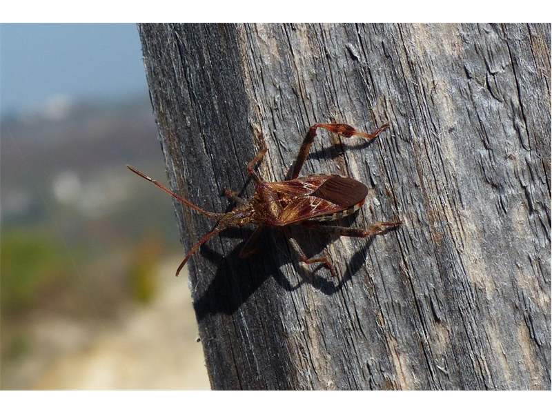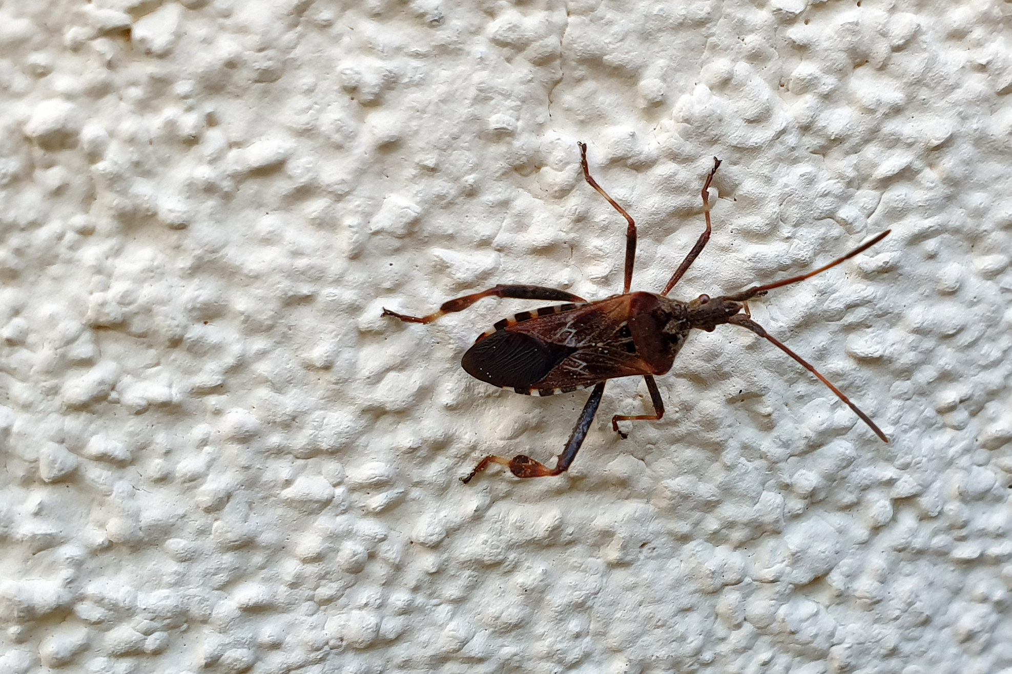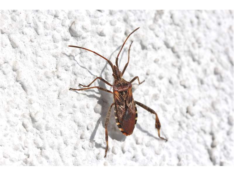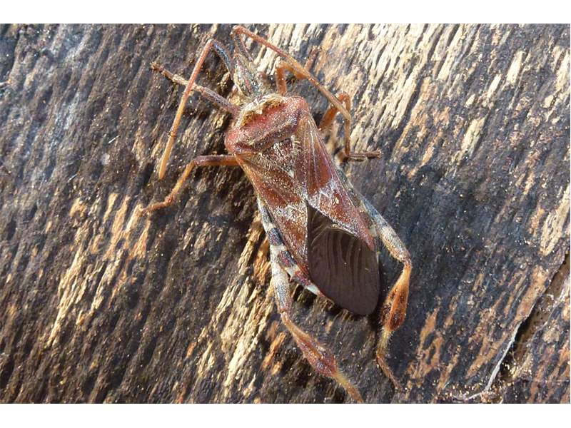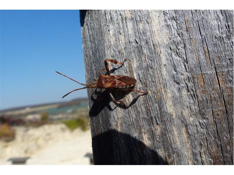 Larve der Amerikanischen Zapfenwanze ( Leptoglossus occidentalis). Deutschland, Baden-Württemberg, Baden-Baden, einzeln stehende Kiefer nord-nord-westlich Ortsteil Sandweier, 30.06.2012 (© Michael Münch)( Bild vergrößern)