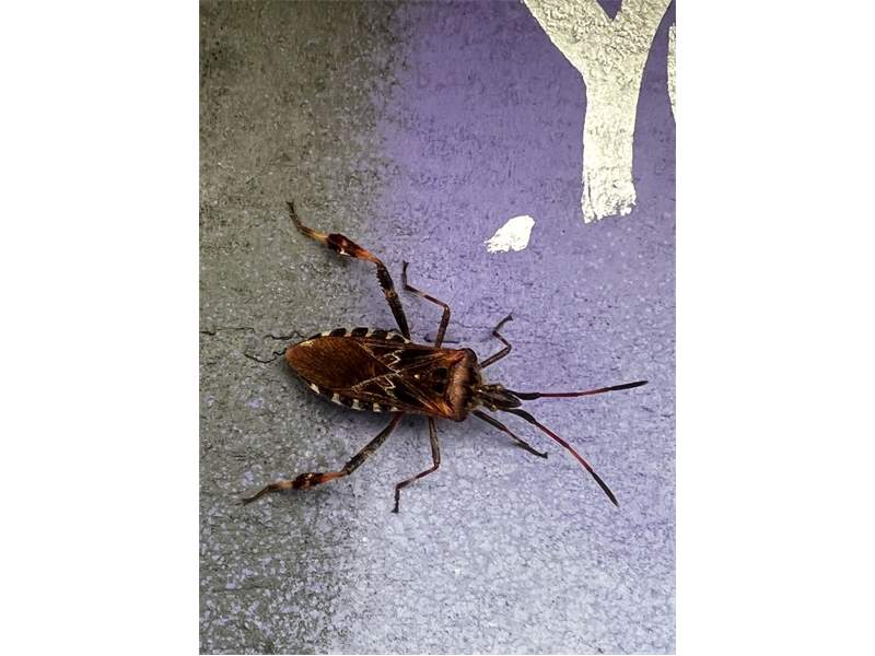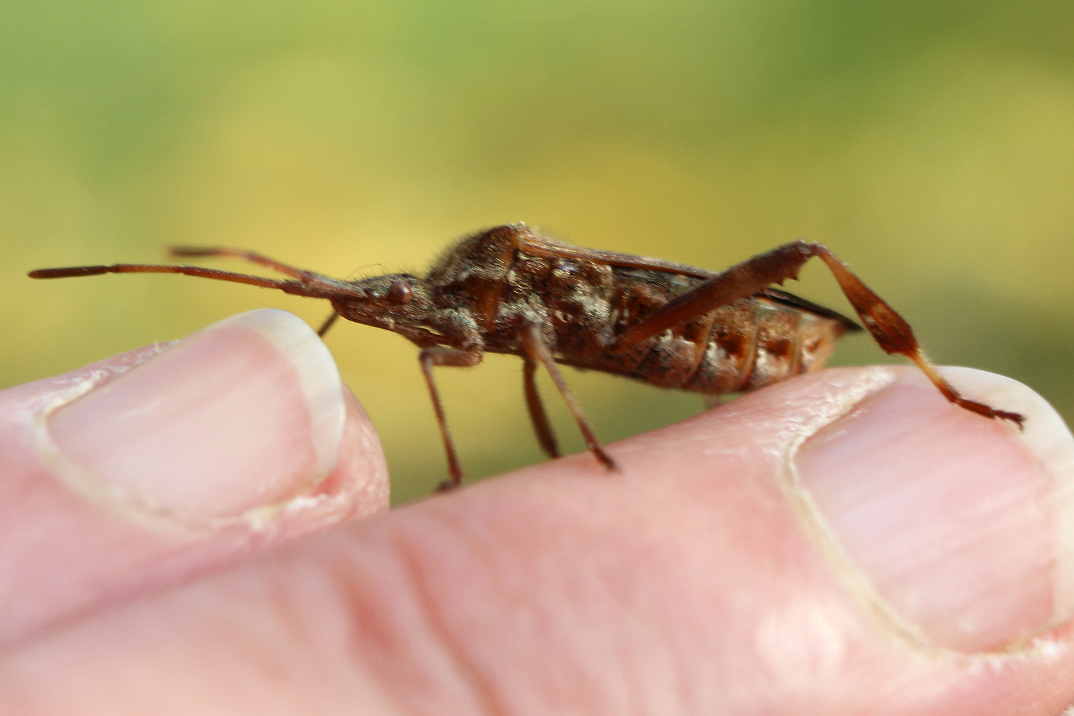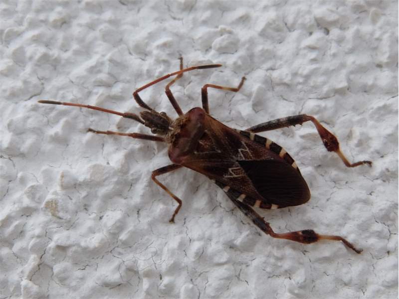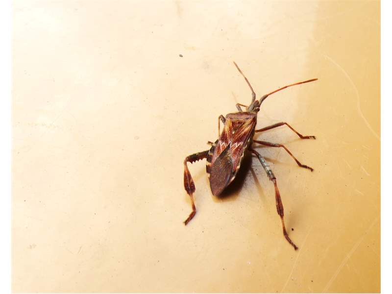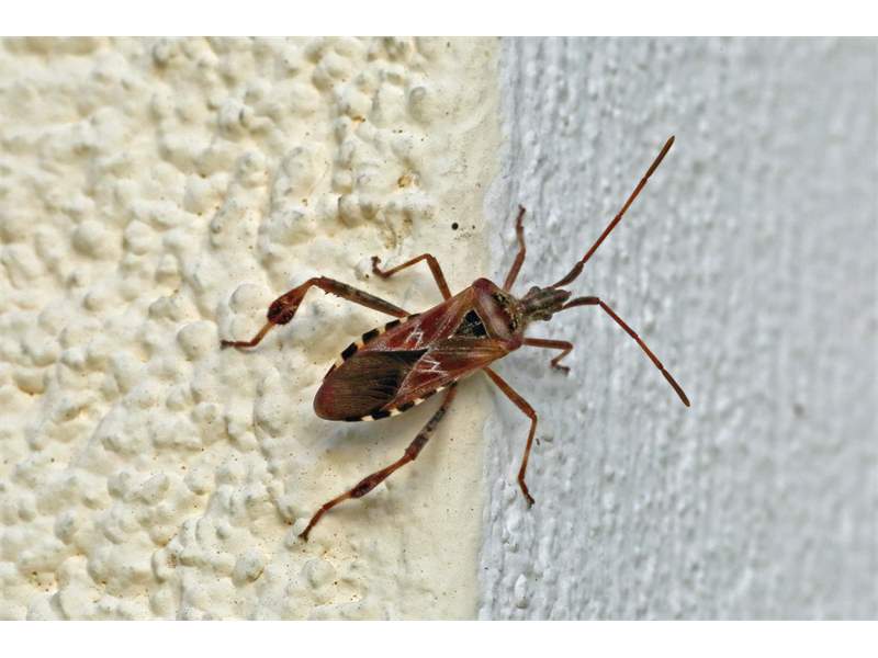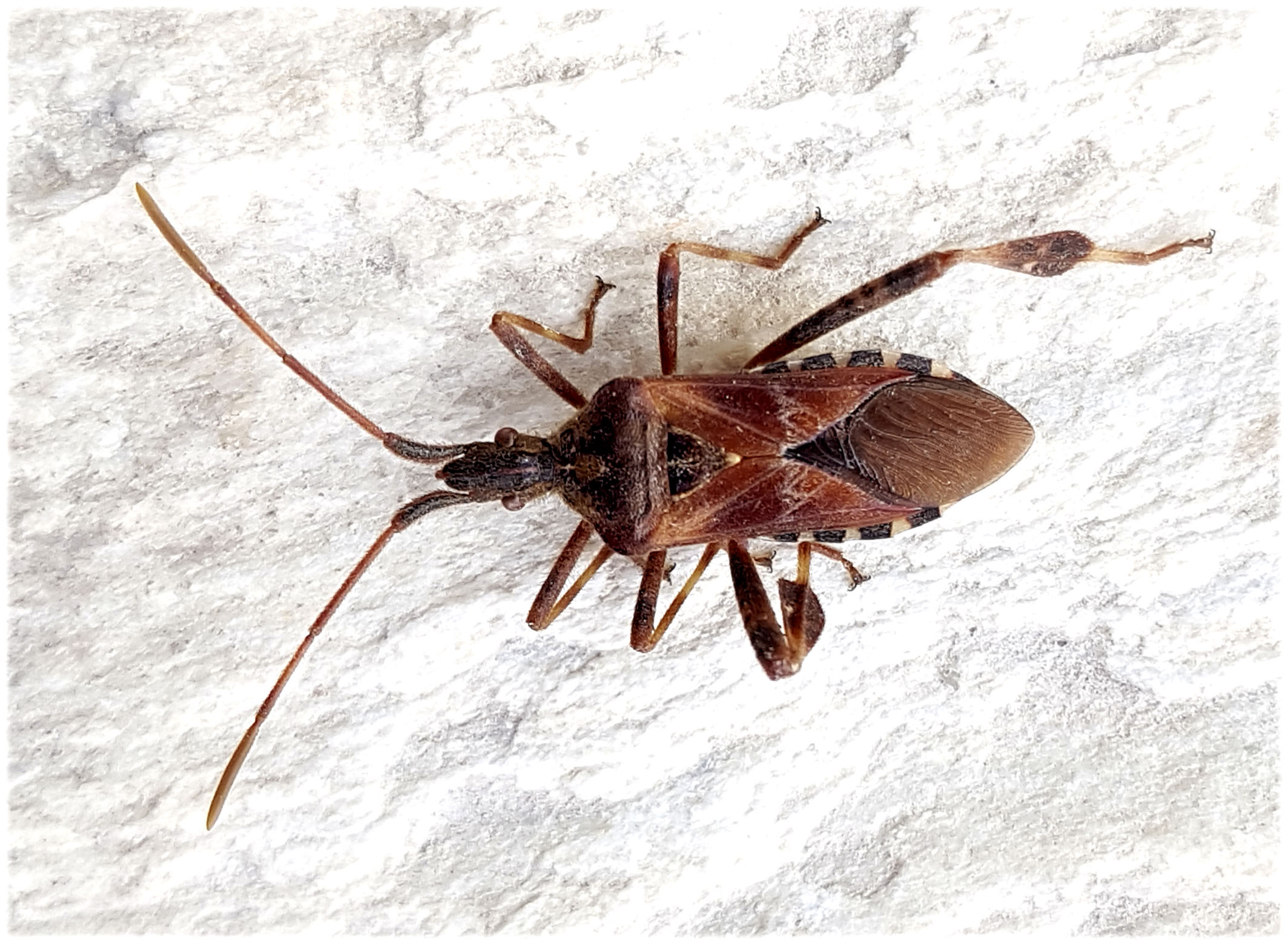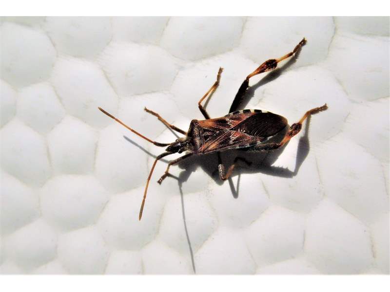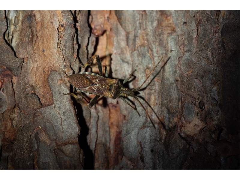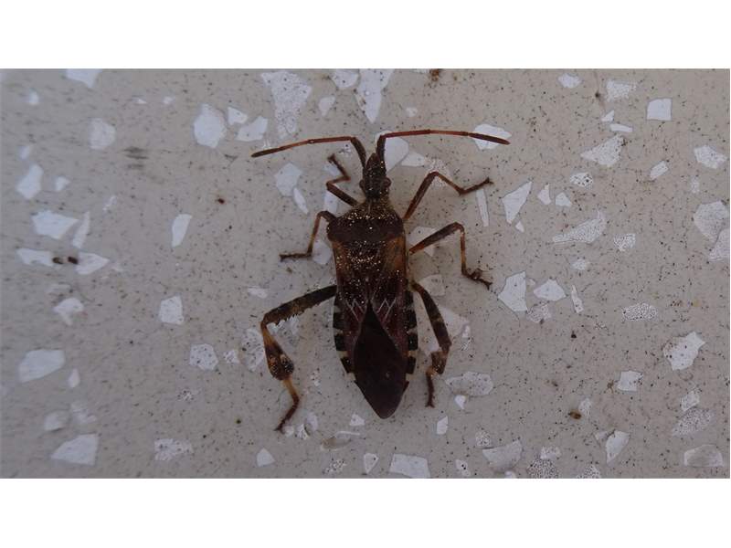 Larve der Amerikanischen Zapfenwanze ( Leptoglossus occidentalis). Deutschland, Baden-Württemberg, Baden-Baden, einzeln stehende Kiefer nord-nord-westlich Ortsteil Sandweier, 30.06.2012 (© Michael Münch)( Bild vergrößern)