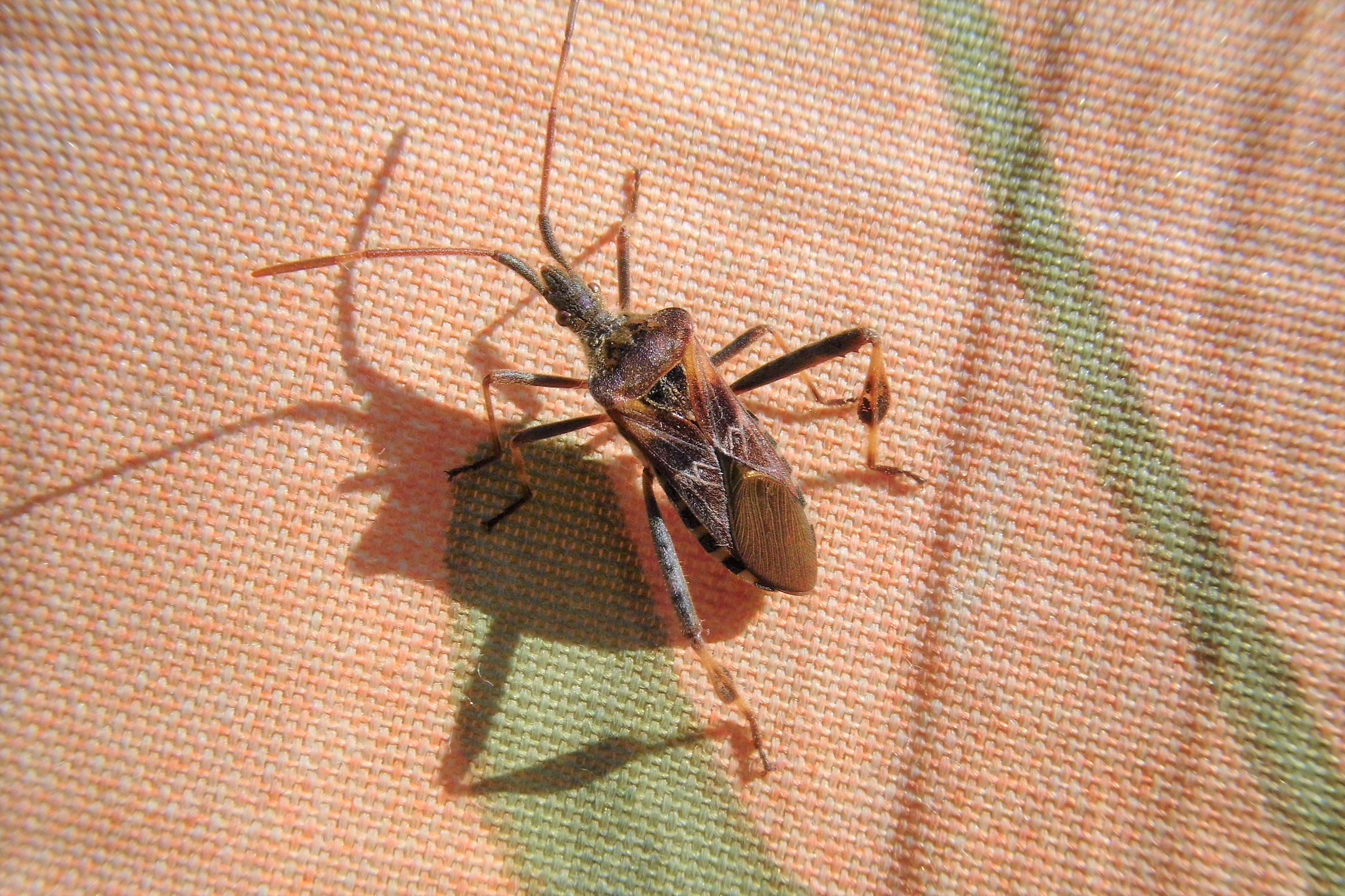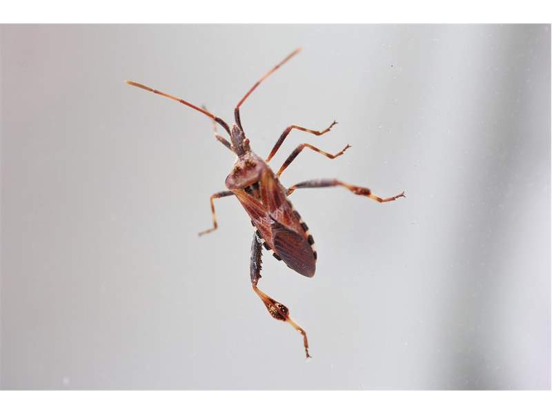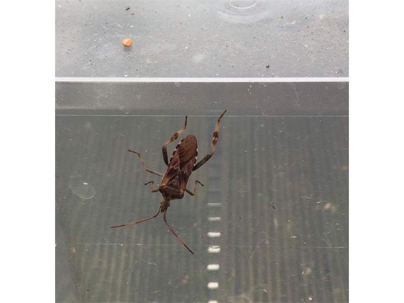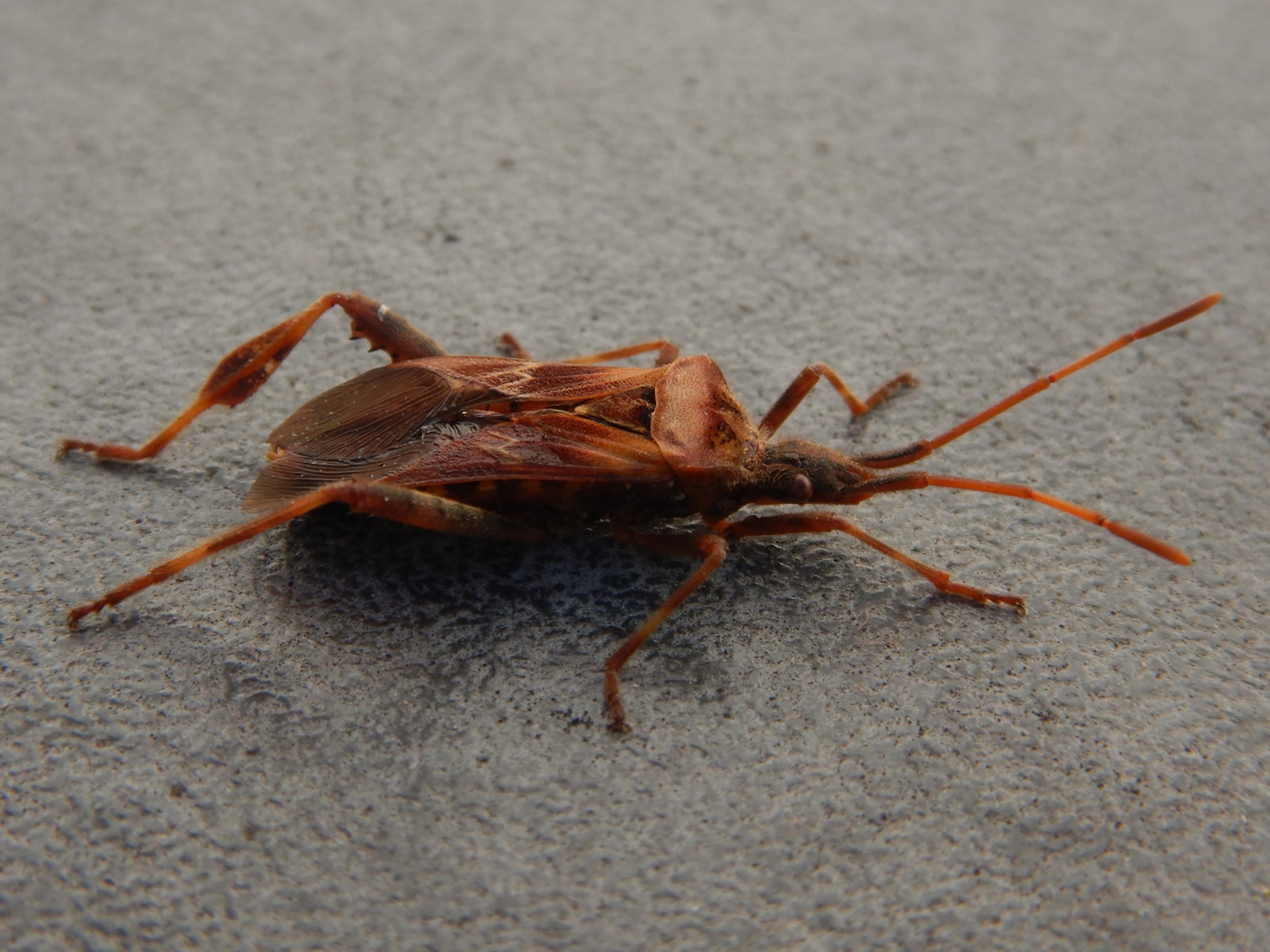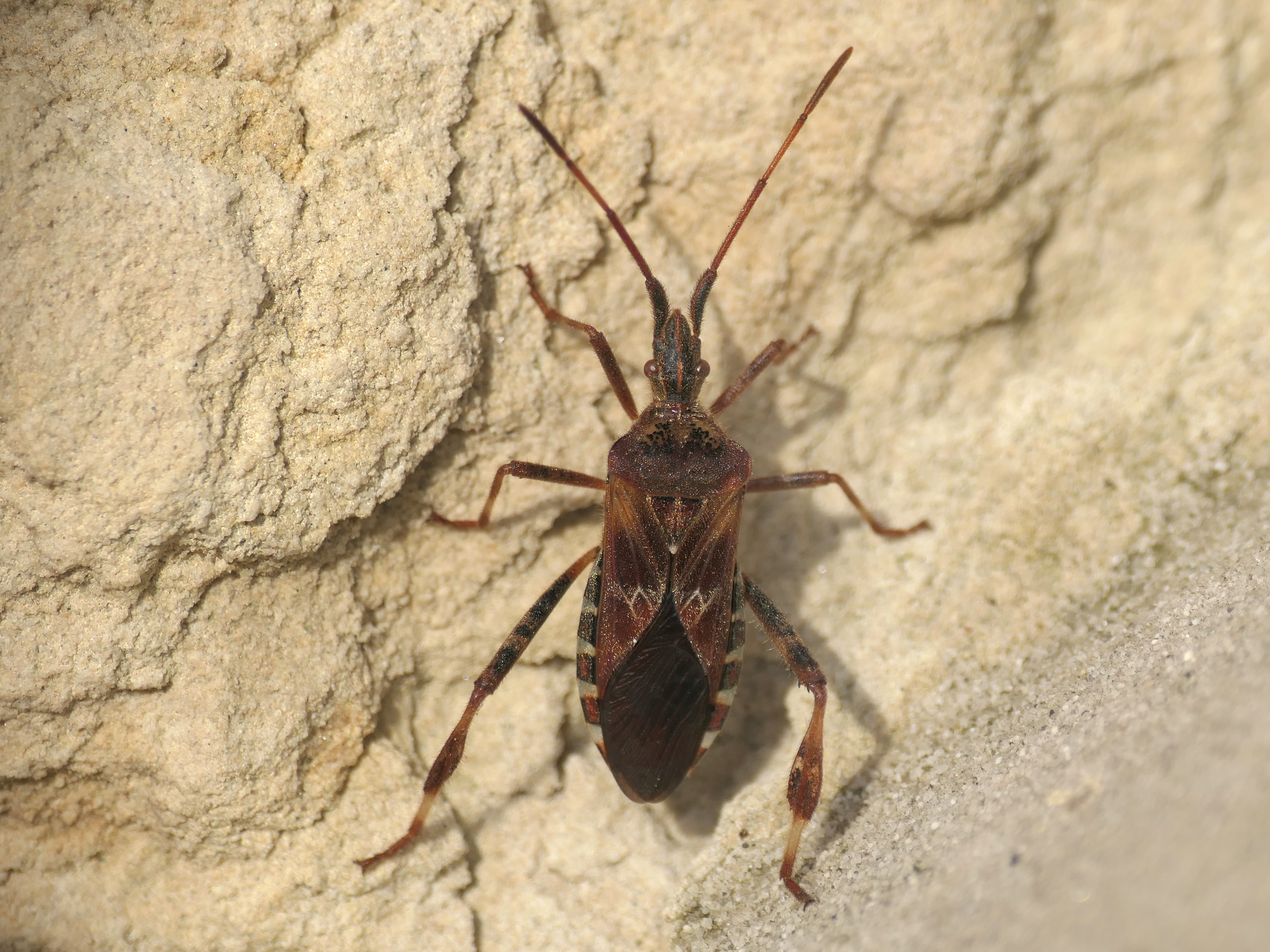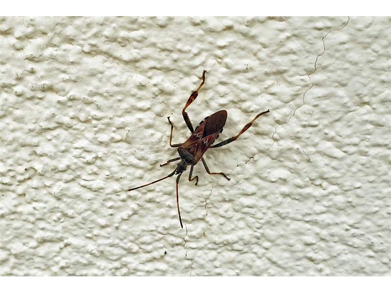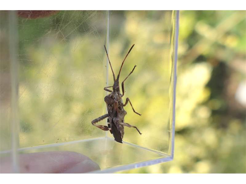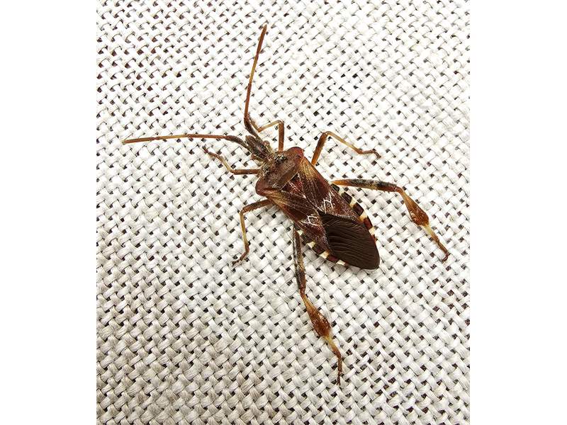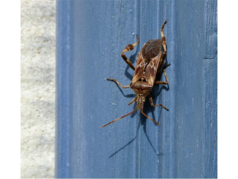 Larve der Amerikanischen Zapfenwanze ( Leptoglossus occidentalis). Deutschland, Baden-Württemberg, Baden-Baden, einzeln stehende Kiefer nord-nord-westlich Ortsteil Sandweier, 30.06.2012 (© Michael Münch)( Bild vergrößern)