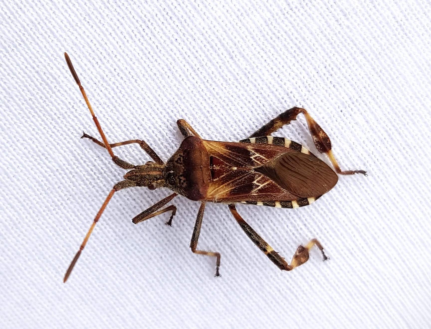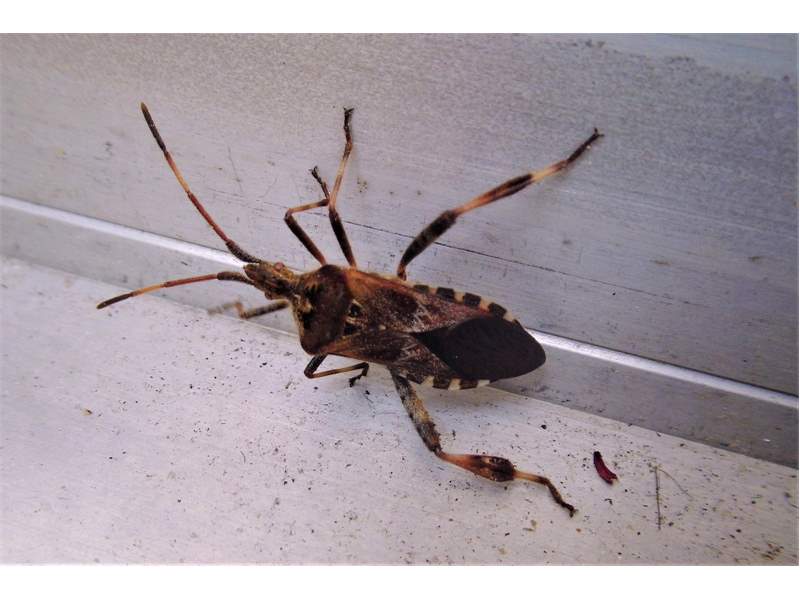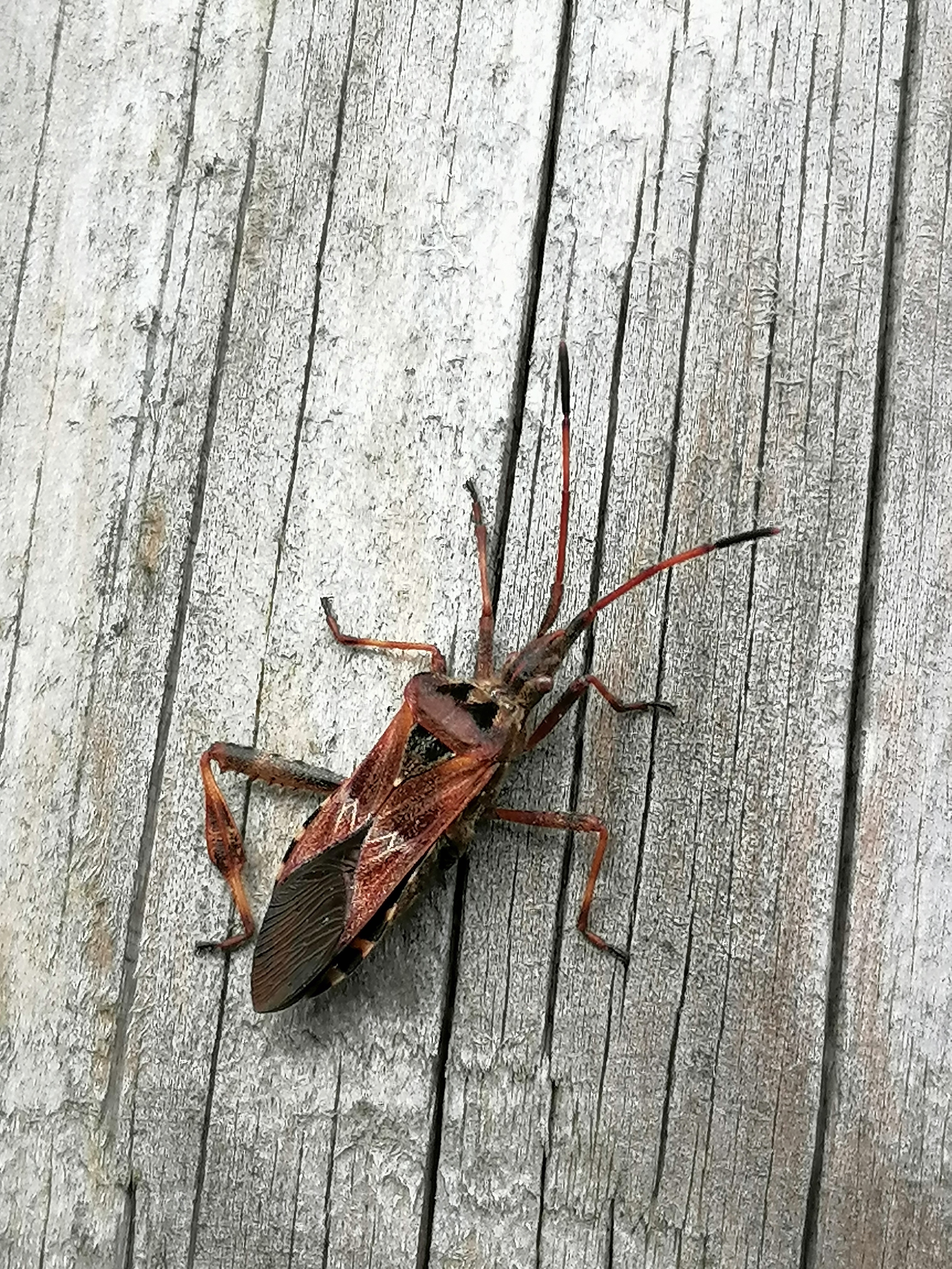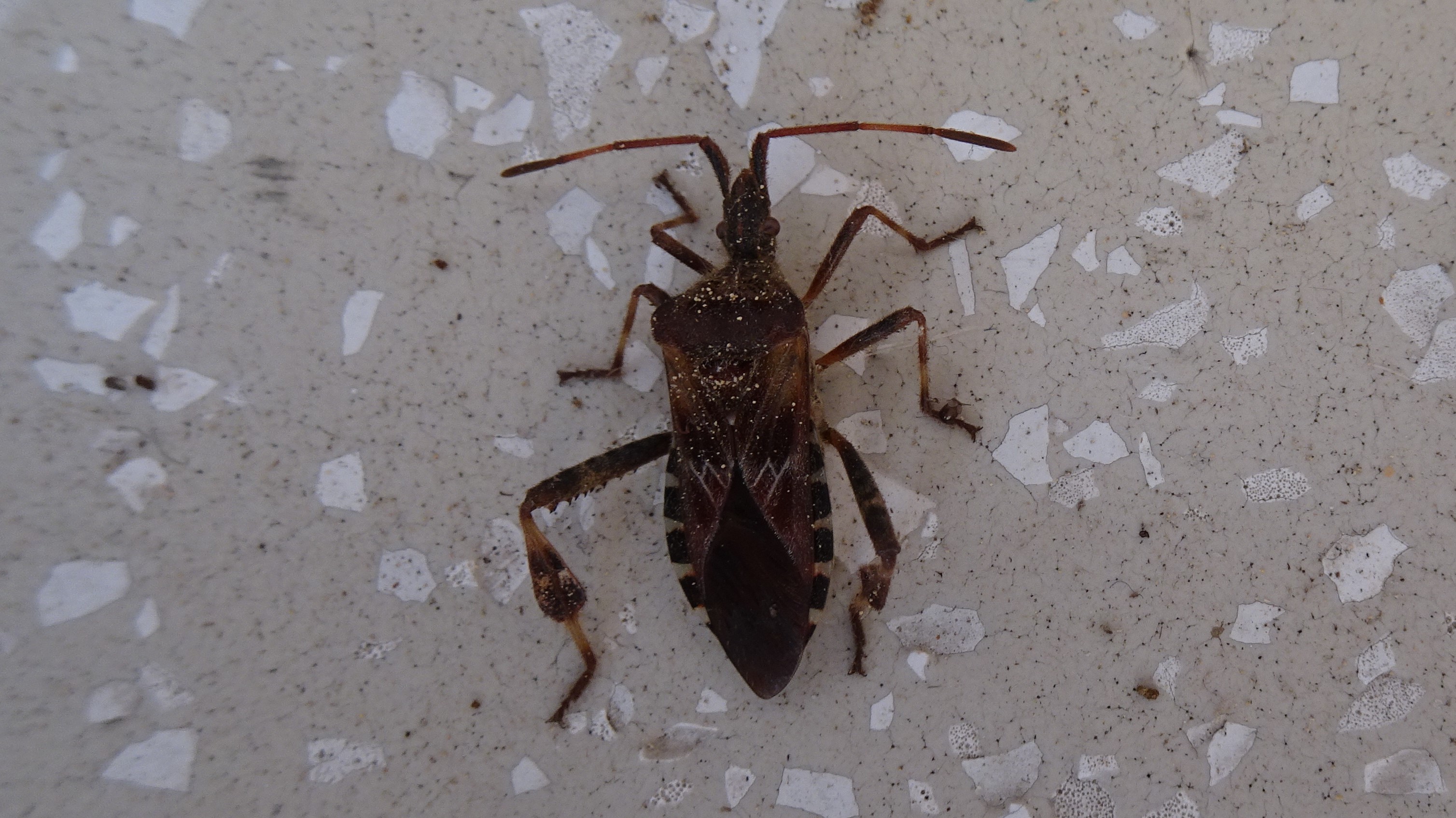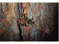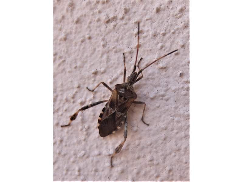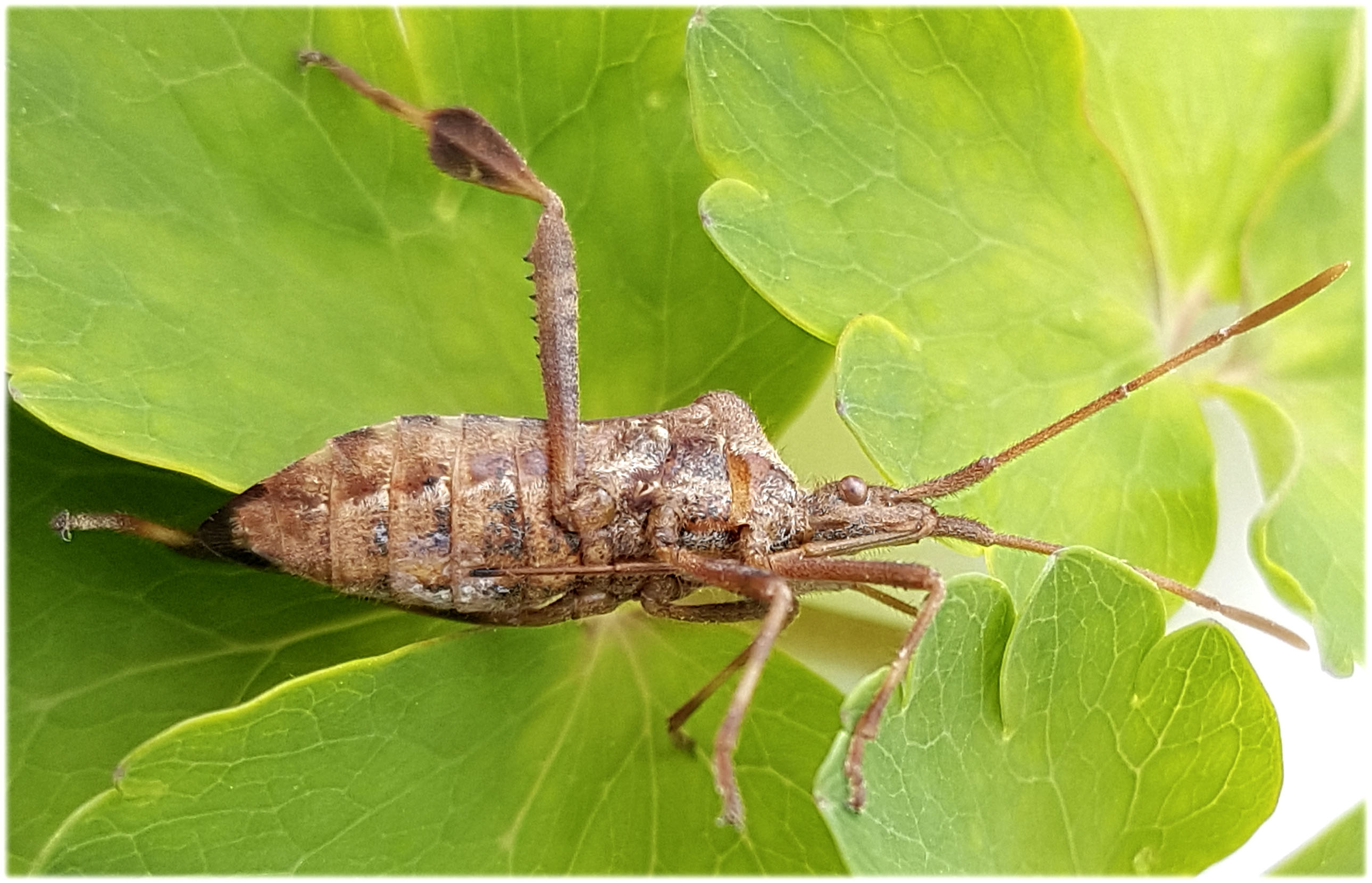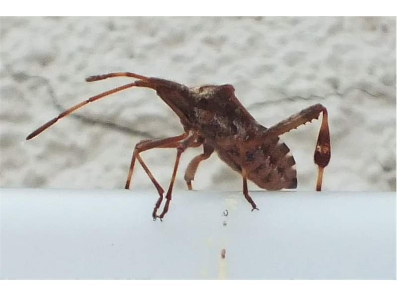 Larve der Amerikanischen Zapfenwanze ( Leptoglossus occidentalis). Deutschland, Baden-Württemberg, Baden-Baden, einzeln stehende Kiefer nord-nord-westlich Ortsteil Sandweier, 30.06.2012 (© Michael Münch)( Bild vergrößern)