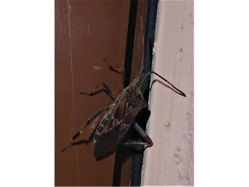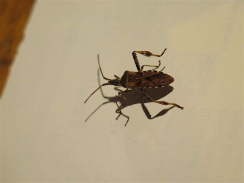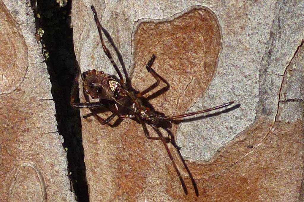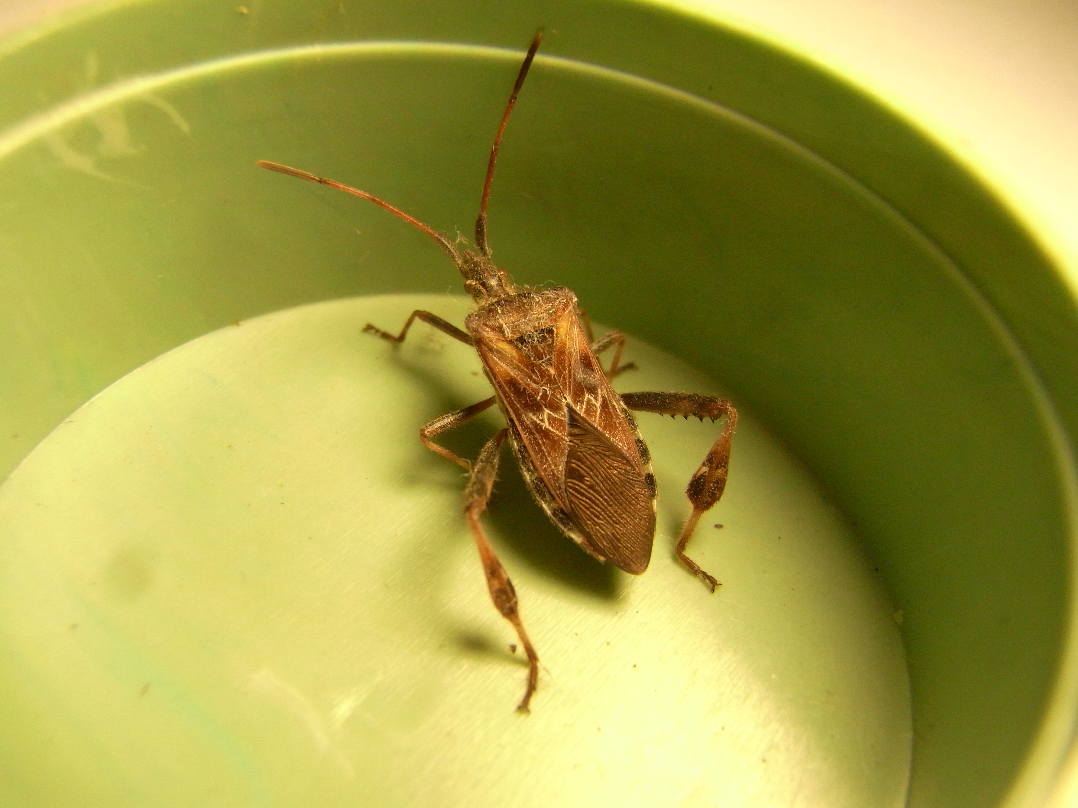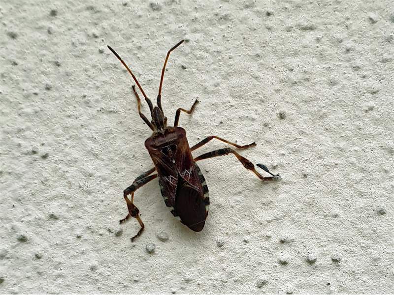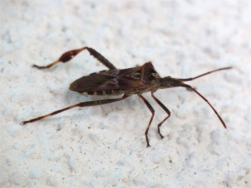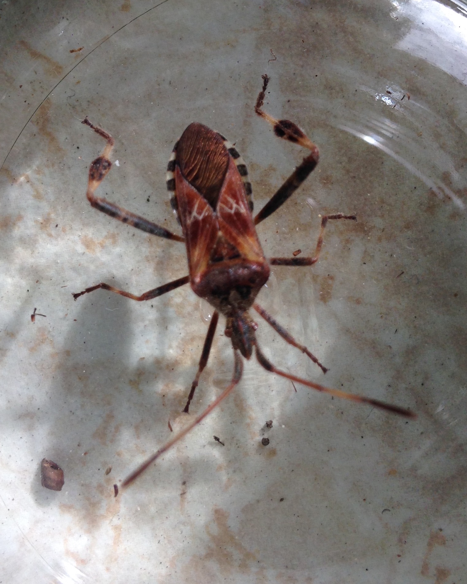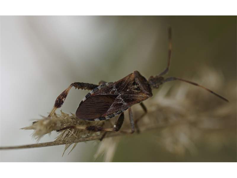 Larve der Amerikanischen Zapfenwanze ( Leptoglossus occidentalis). Deutschland, Baden-Württemberg, Baden-Baden, einzeln stehende Kiefer nord-nord-westlich Ortsteil Sandweier, 30.06.2012 (© Michael Münch)( Bild vergrößern)