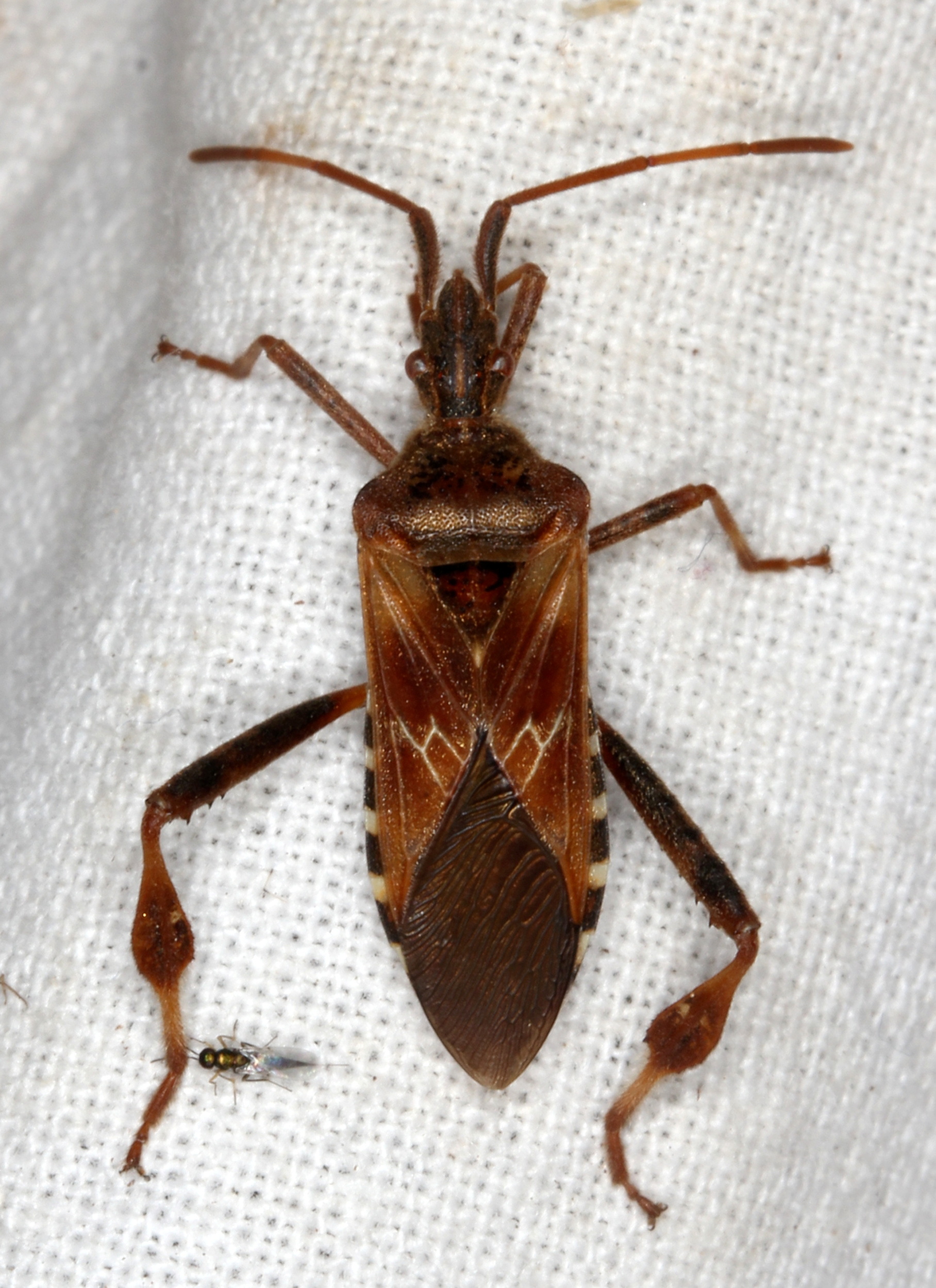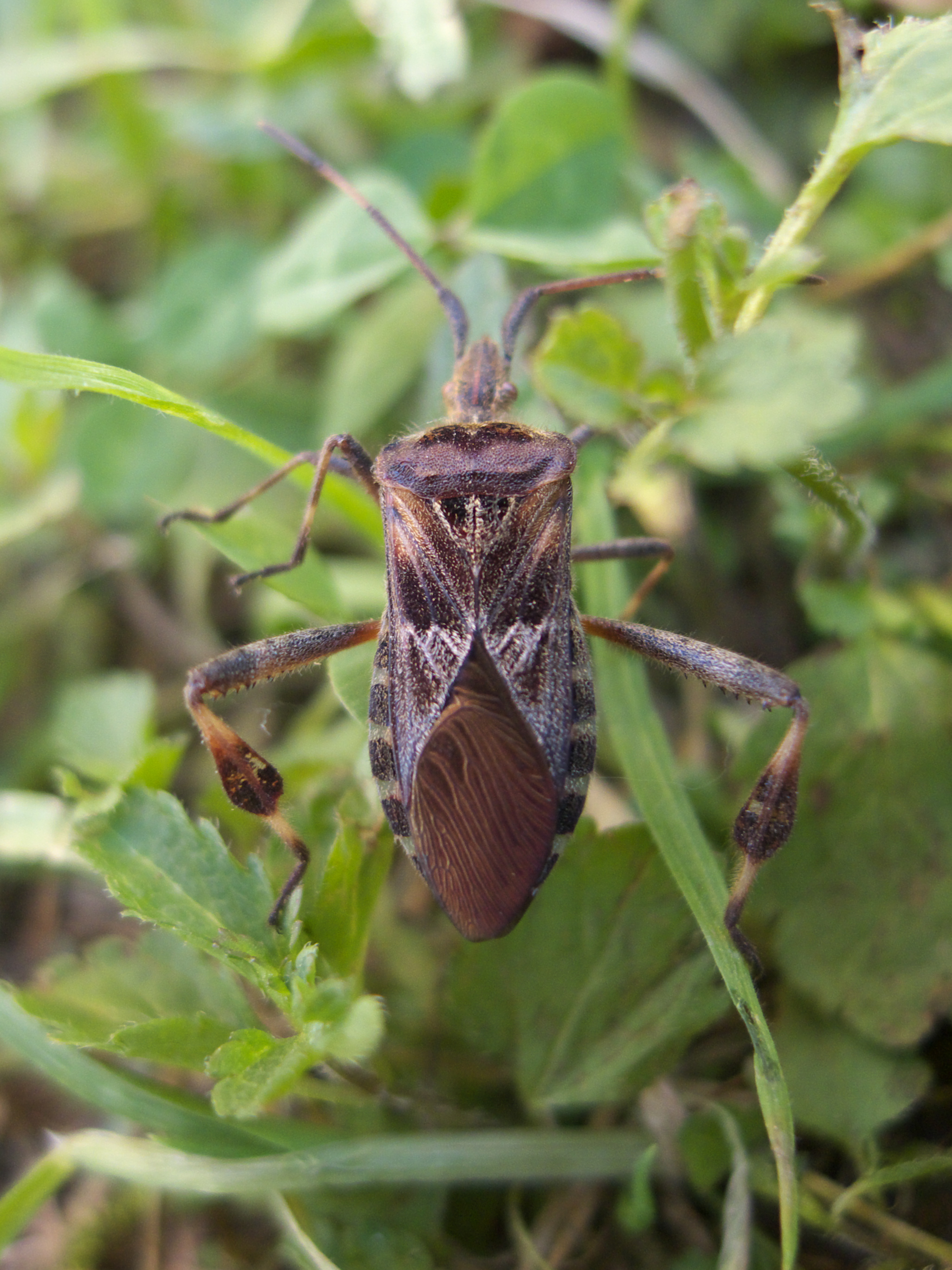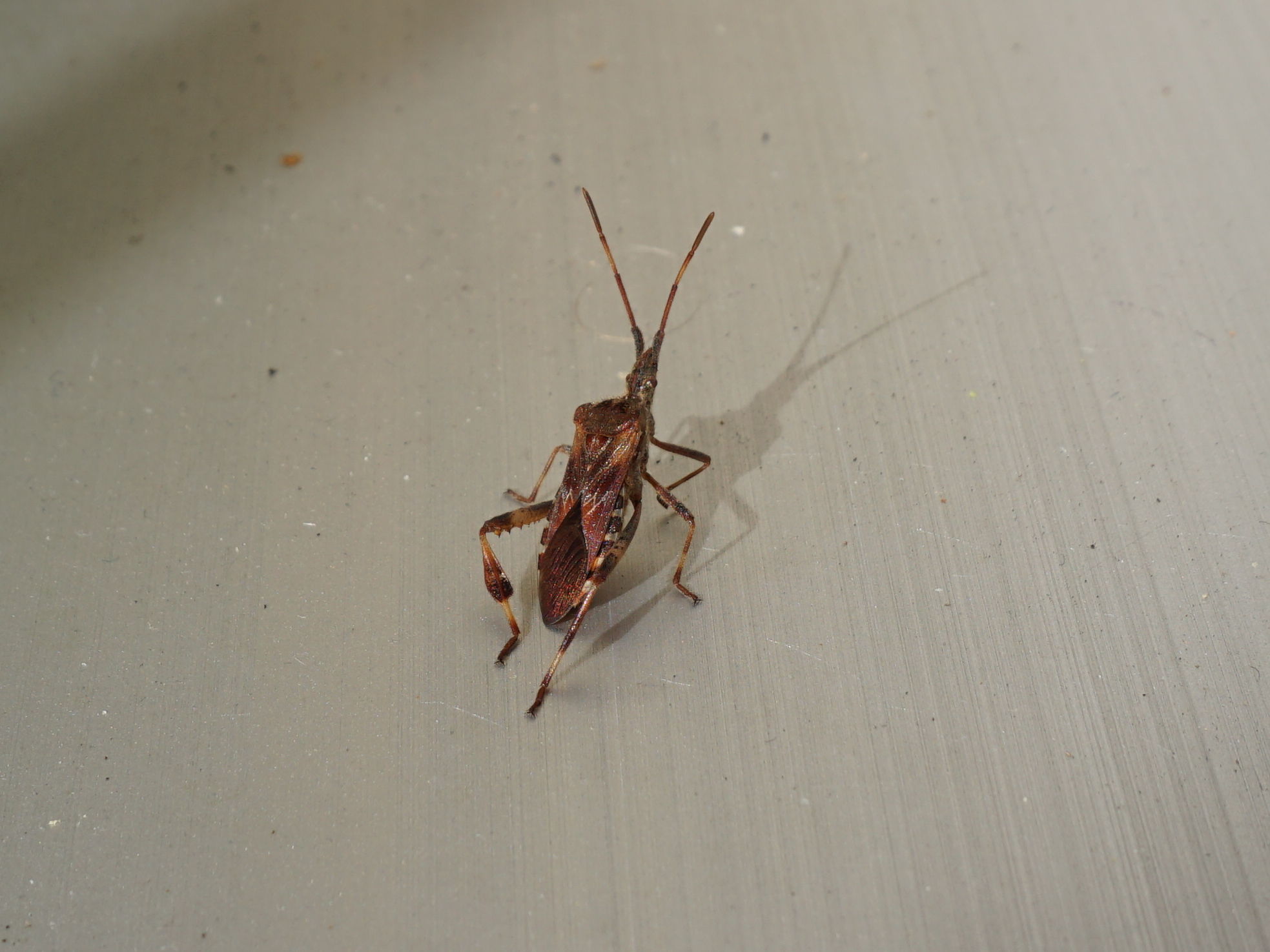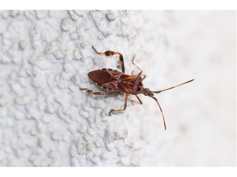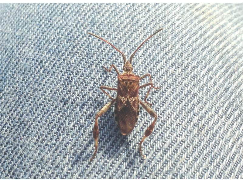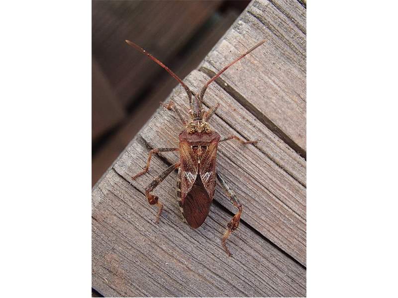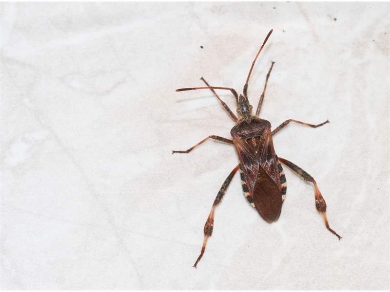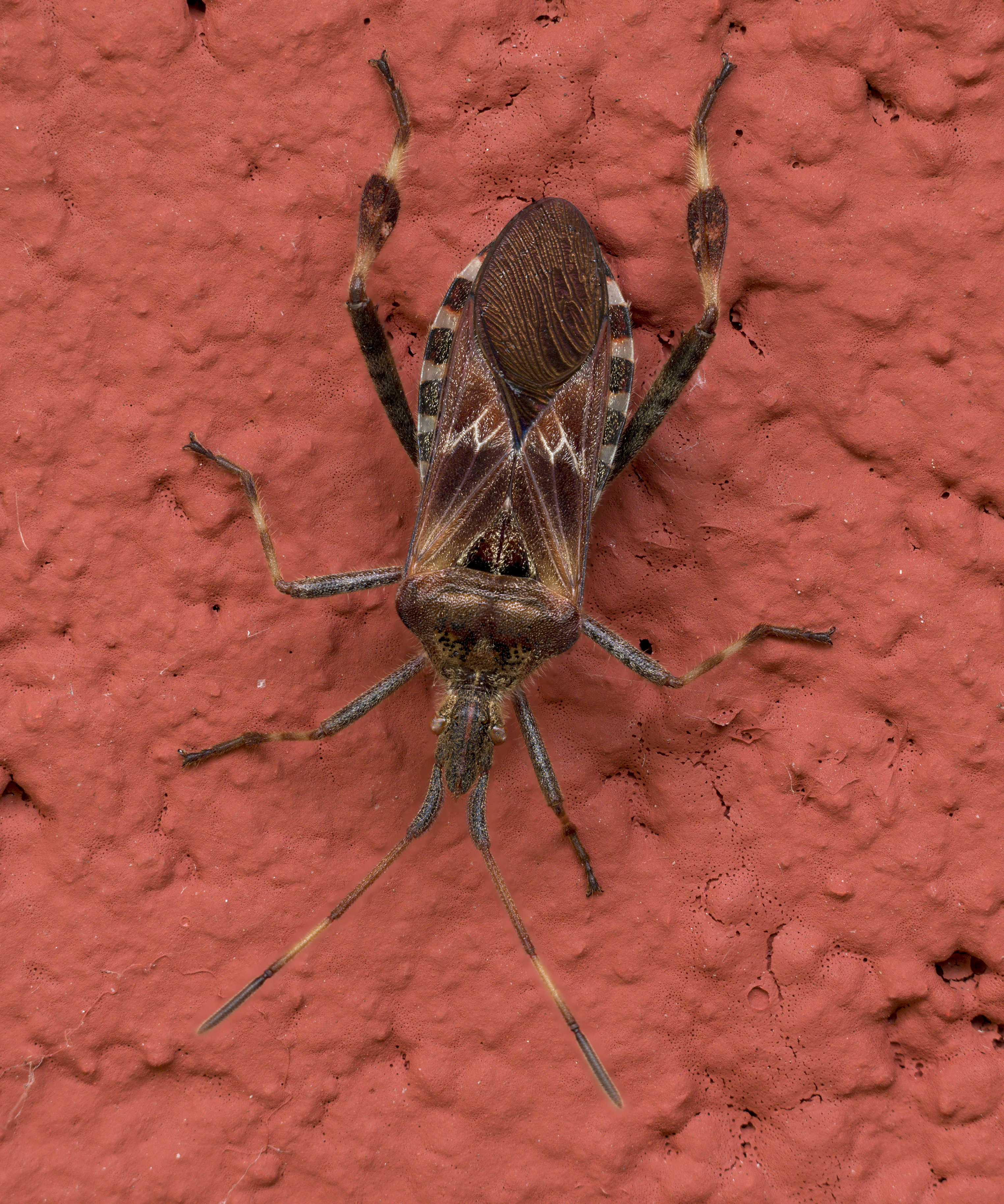 Larve der Amerikanischen Zapfenwanze ( Leptoglossus occidentalis). Deutschland, Baden-Württemberg, Baden-Baden, einzeln stehende Kiefer nord-nord-westlich Ortsteil Sandweier, 30.06.2012 (© Michael Münch)( Bild vergrößern)