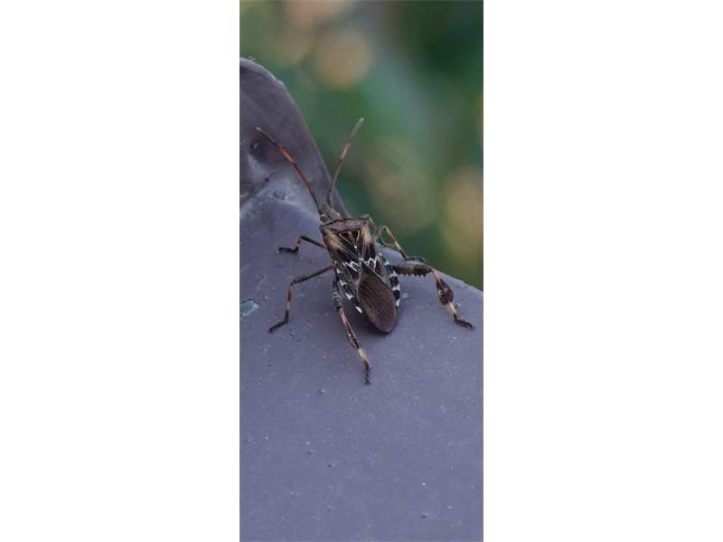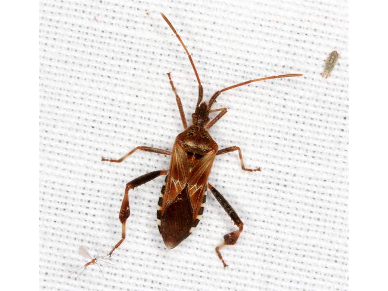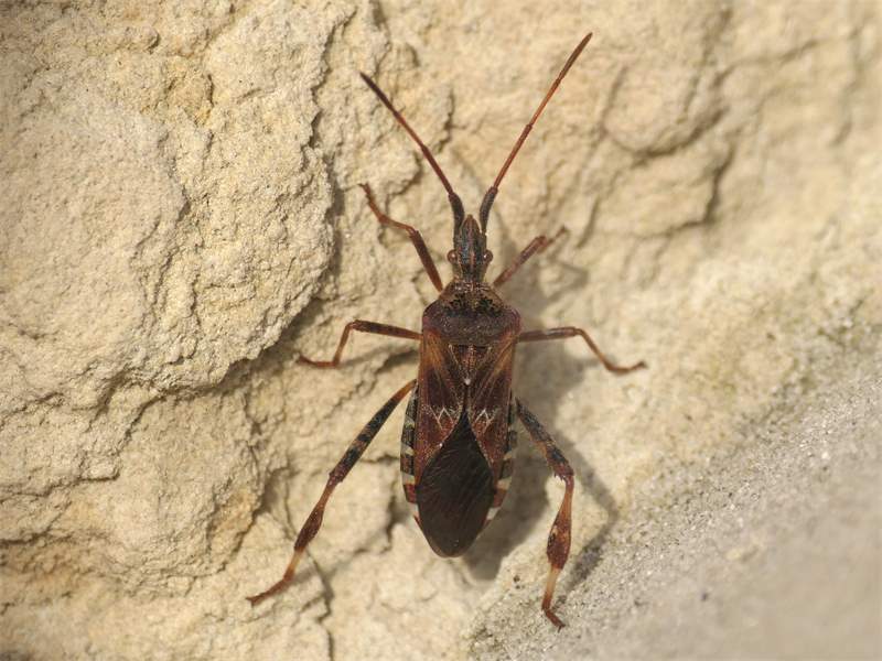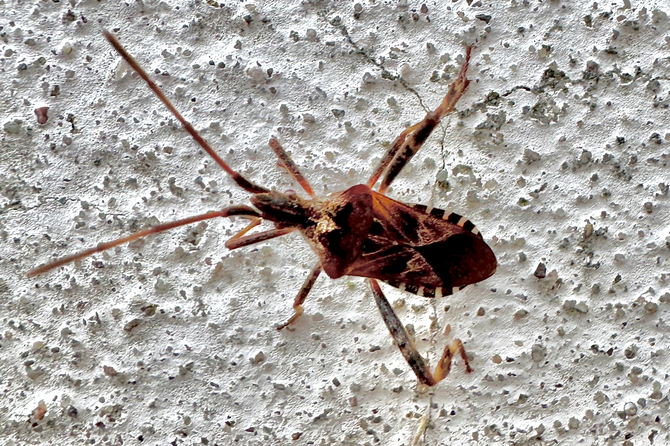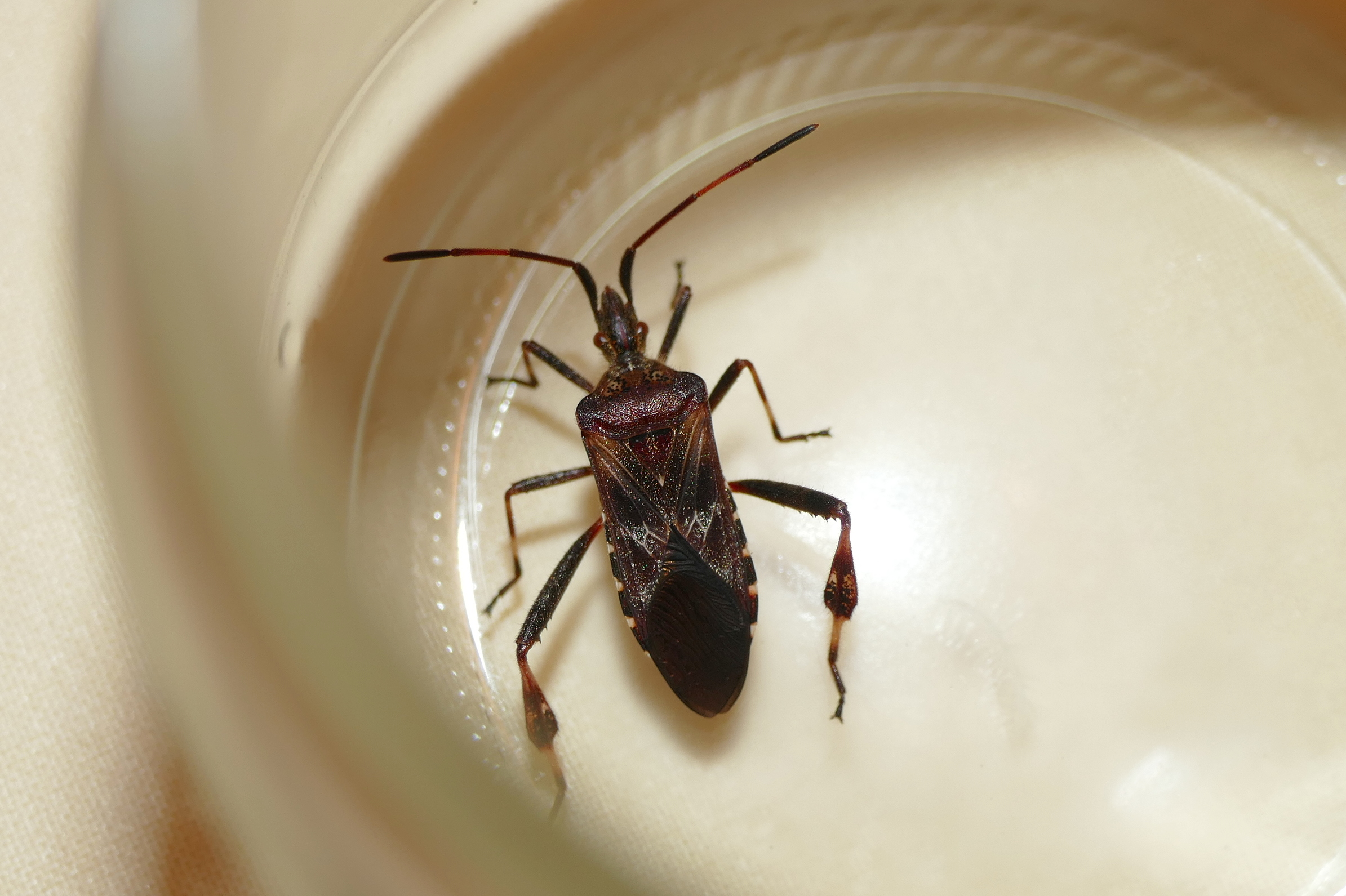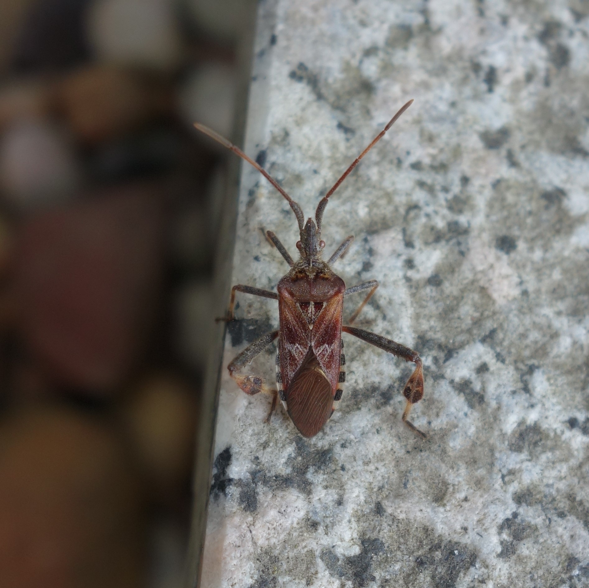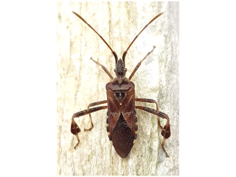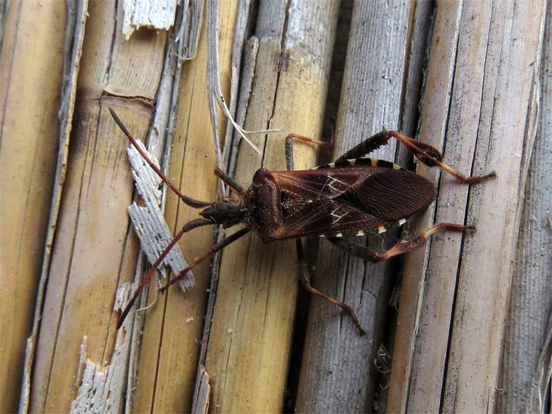 Larve der Amerikanischen Zapfenwanze ( Leptoglossus occidentalis). Deutschland, Baden-Württemberg, Baden-Baden, einzeln stehende Kiefer nord-nord-westlich Ortsteil Sandweier, 30.06.2012 (© Michael Münch)( Bild vergrößern)