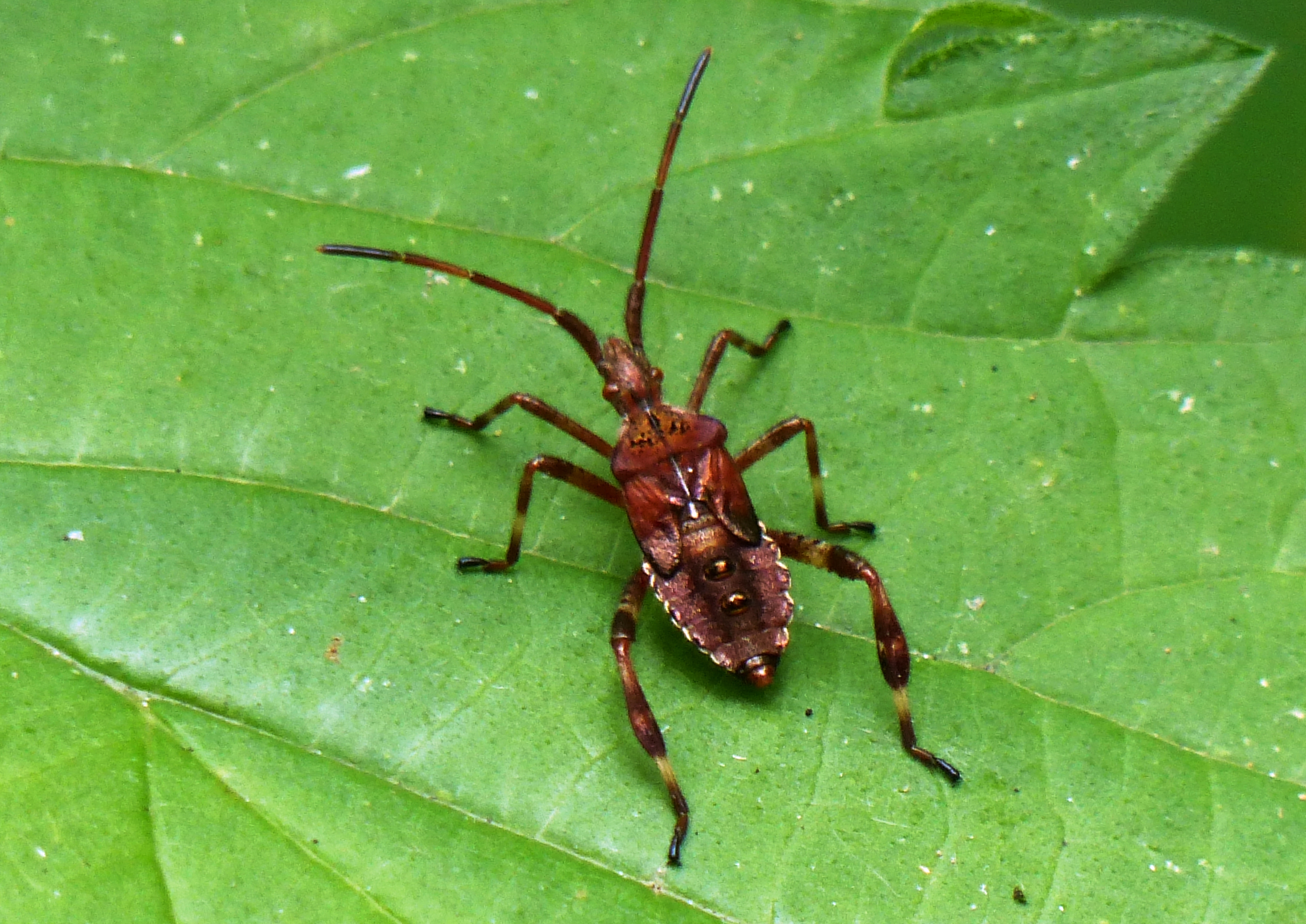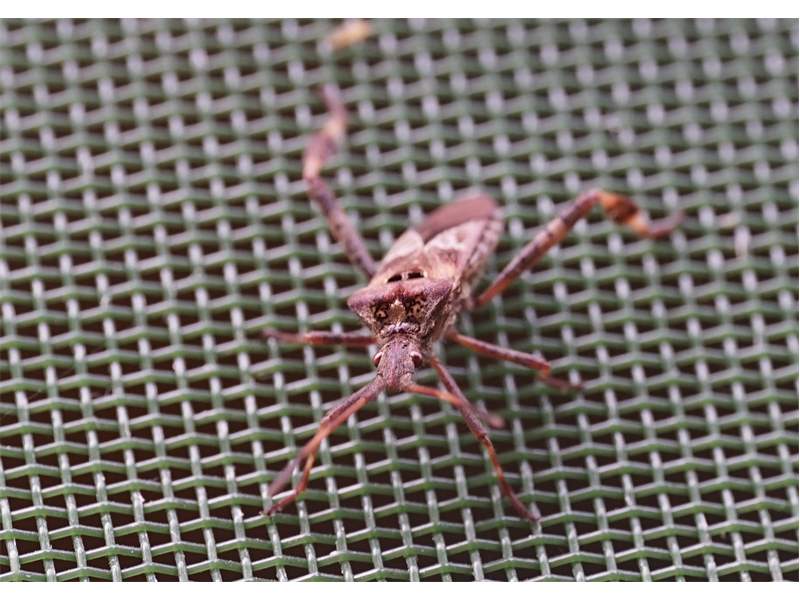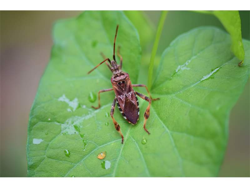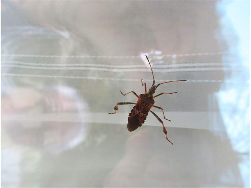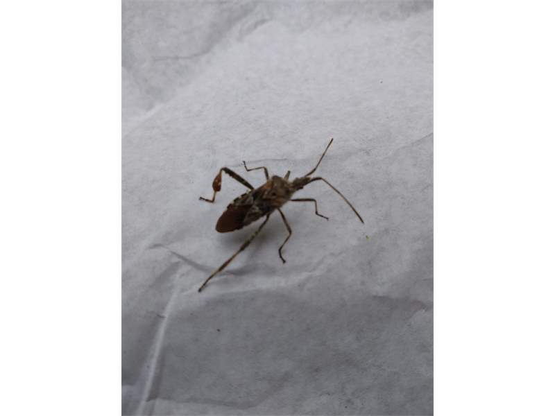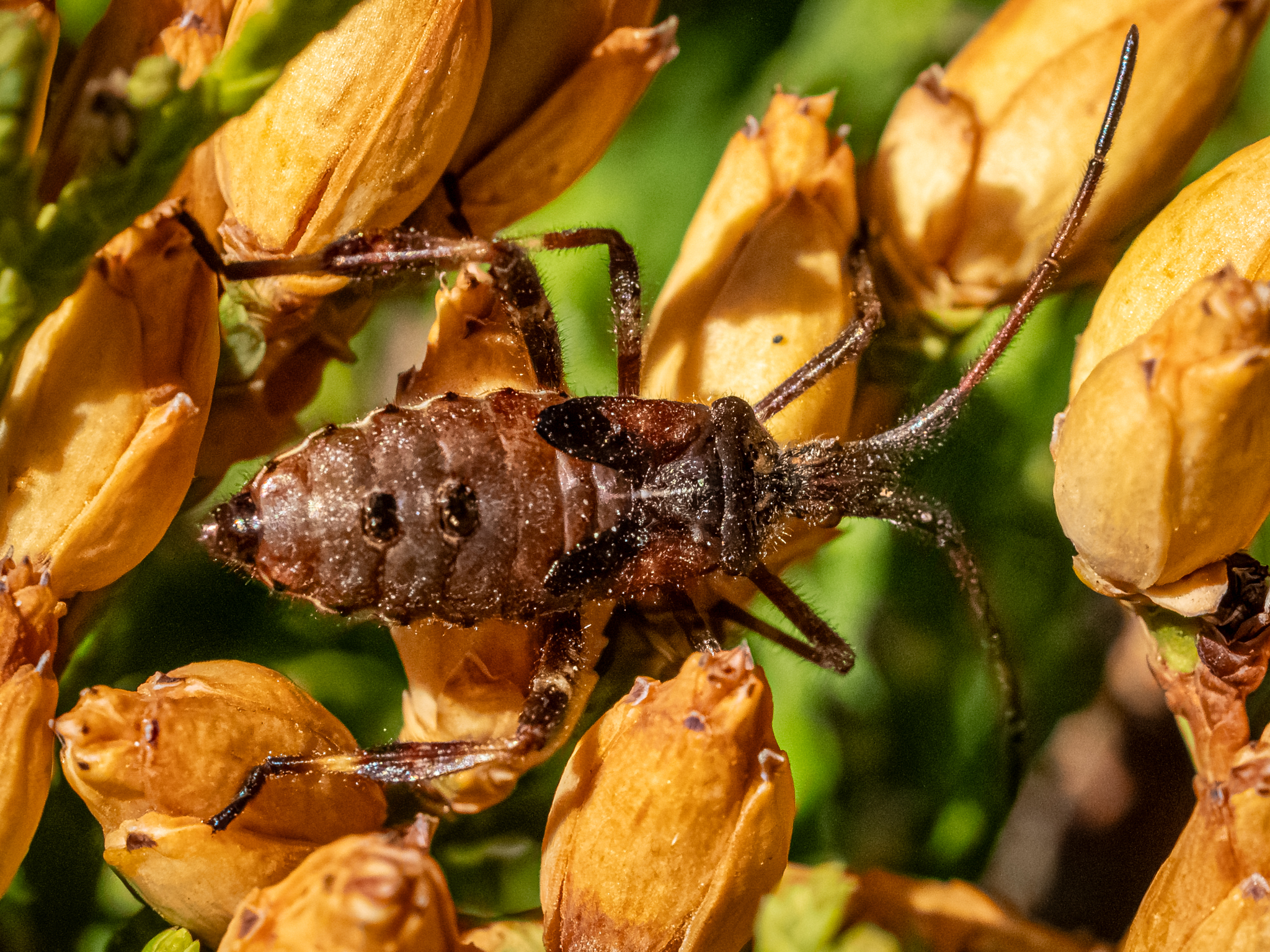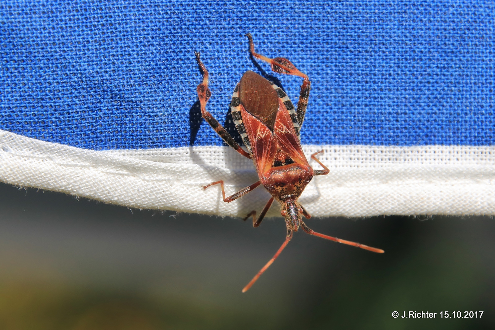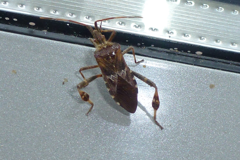 Larve der Amerikanischen Zapfenwanze ( Leptoglossus occidentalis). Deutschland, Baden-Württemberg, Baden-Baden, einzeln stehende Kiefer nord-nord-westlich Ortsteil Sandweier, 30.06.2012 (© Michael Münch)( Bild vergrößern)