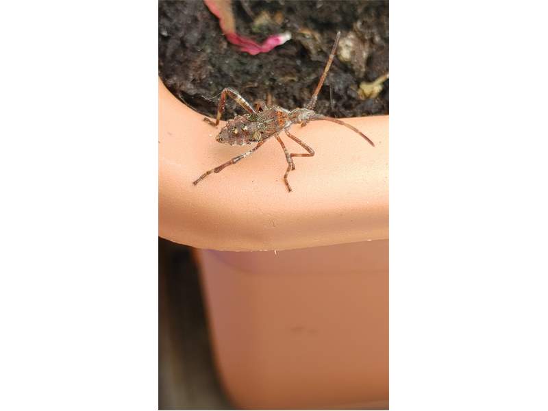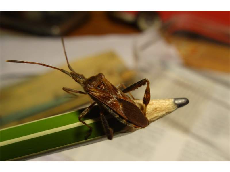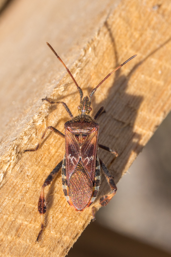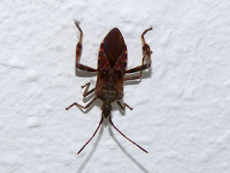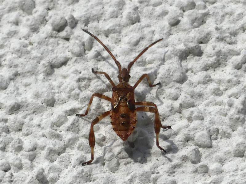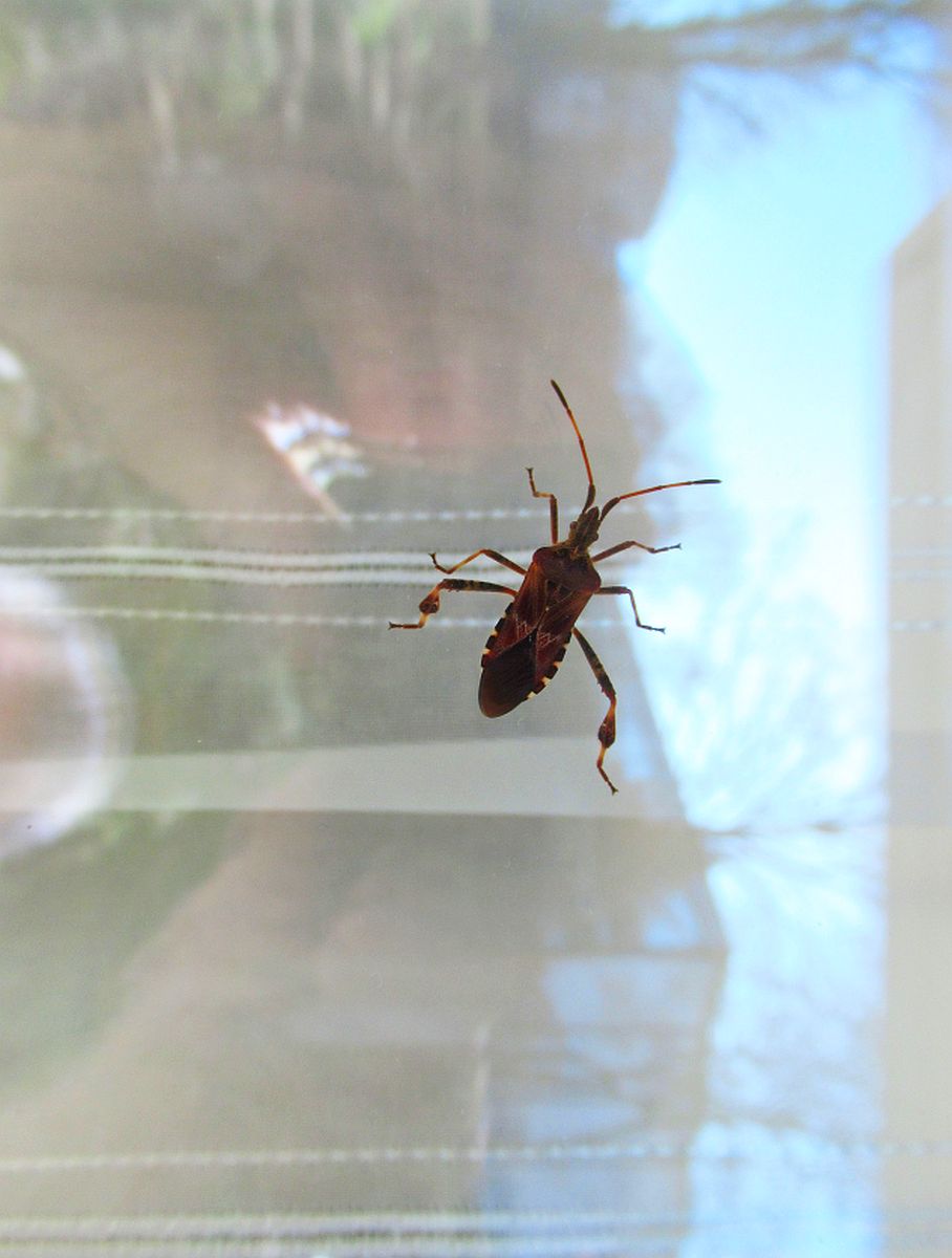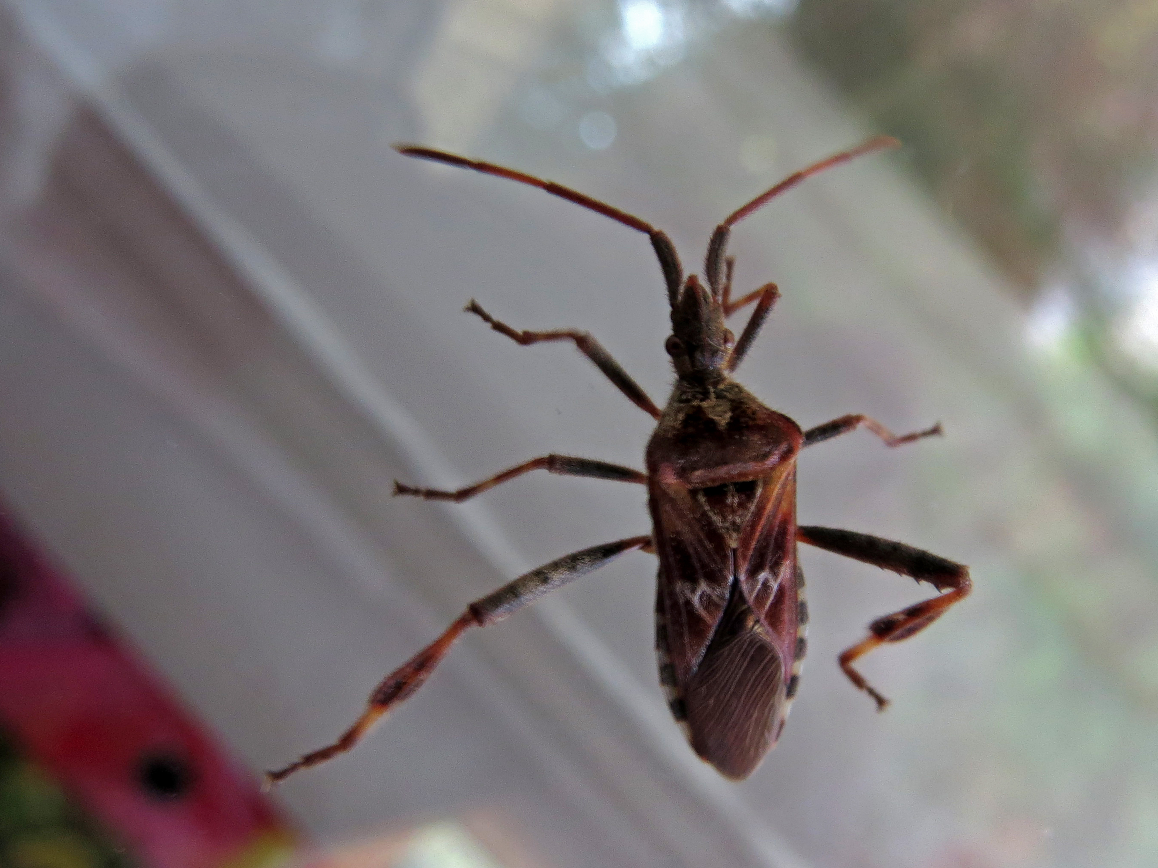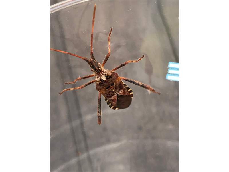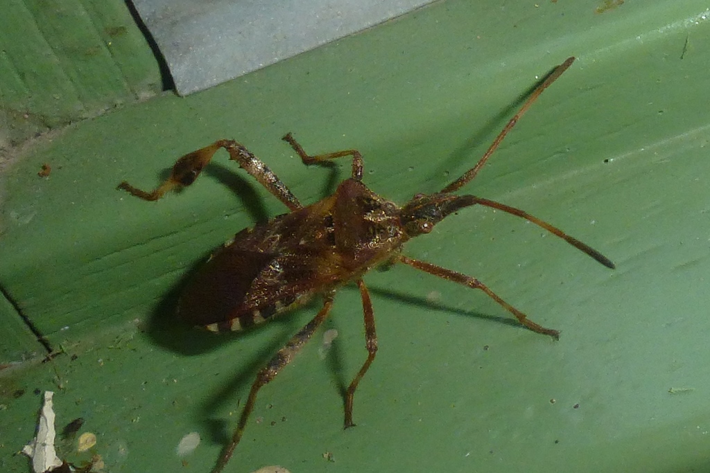 Larve der Amerikanischen Zapfenwanze ( Leptoglossus occidentalis). Deutschland, Baden-Württemberg, Baden-Baden, einzeln stehende Kiefer nord-nord-westlich Ortsteil Sandweier, 30.06.2012 (© Michael Münch)( Bild vergrößern)