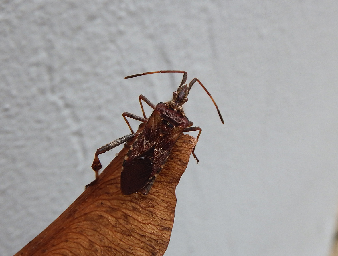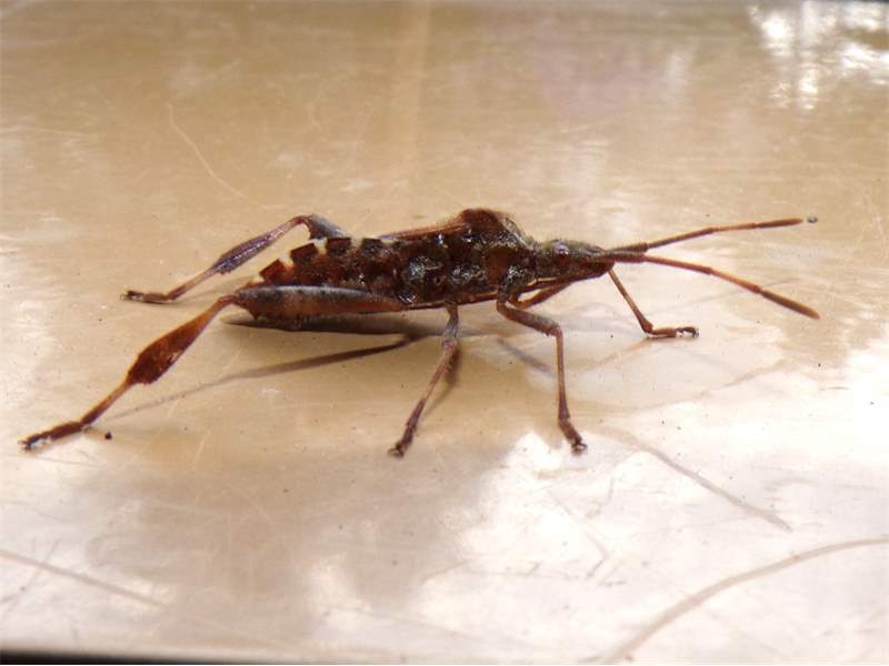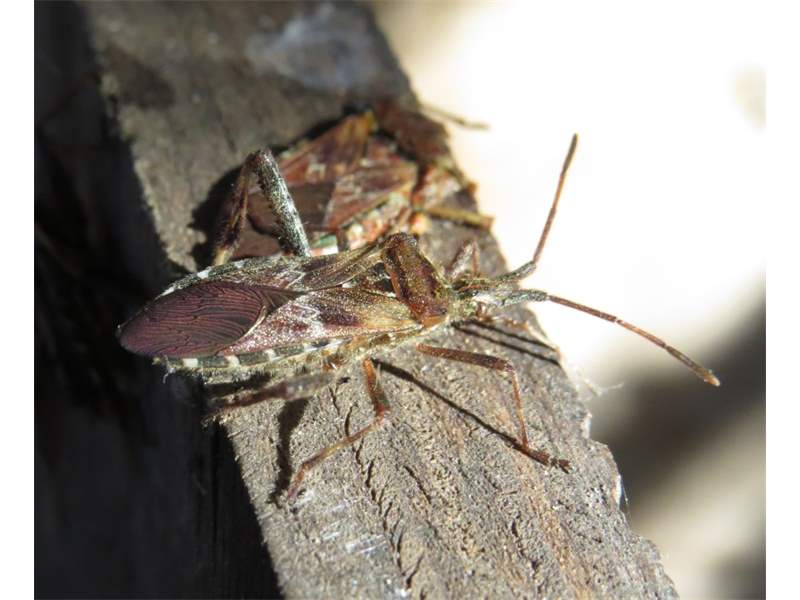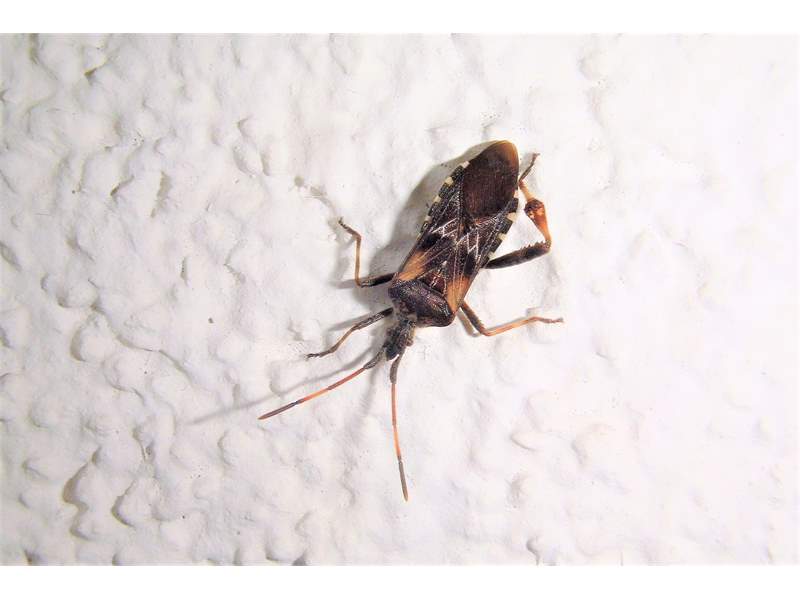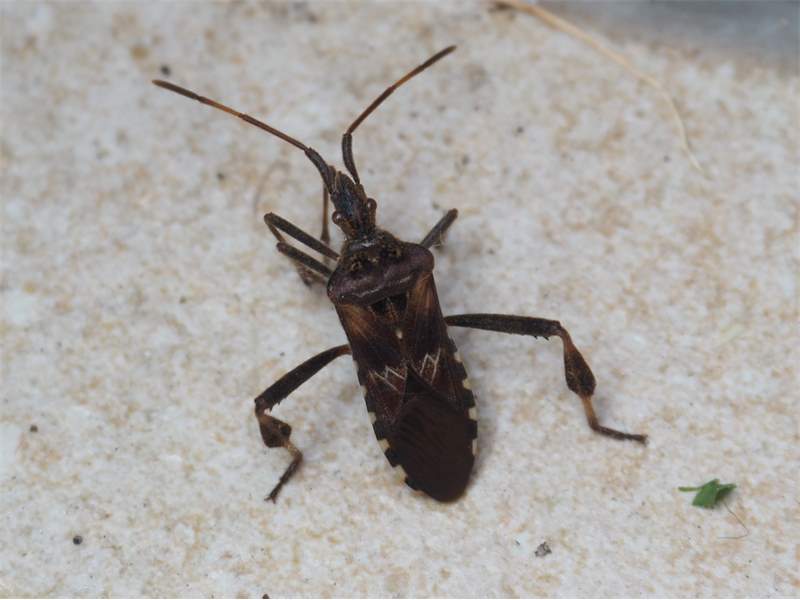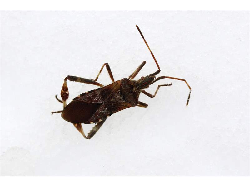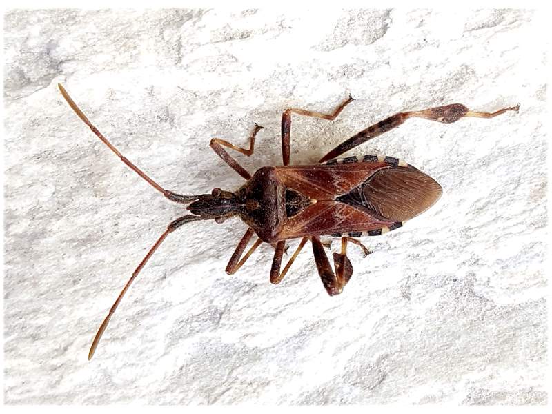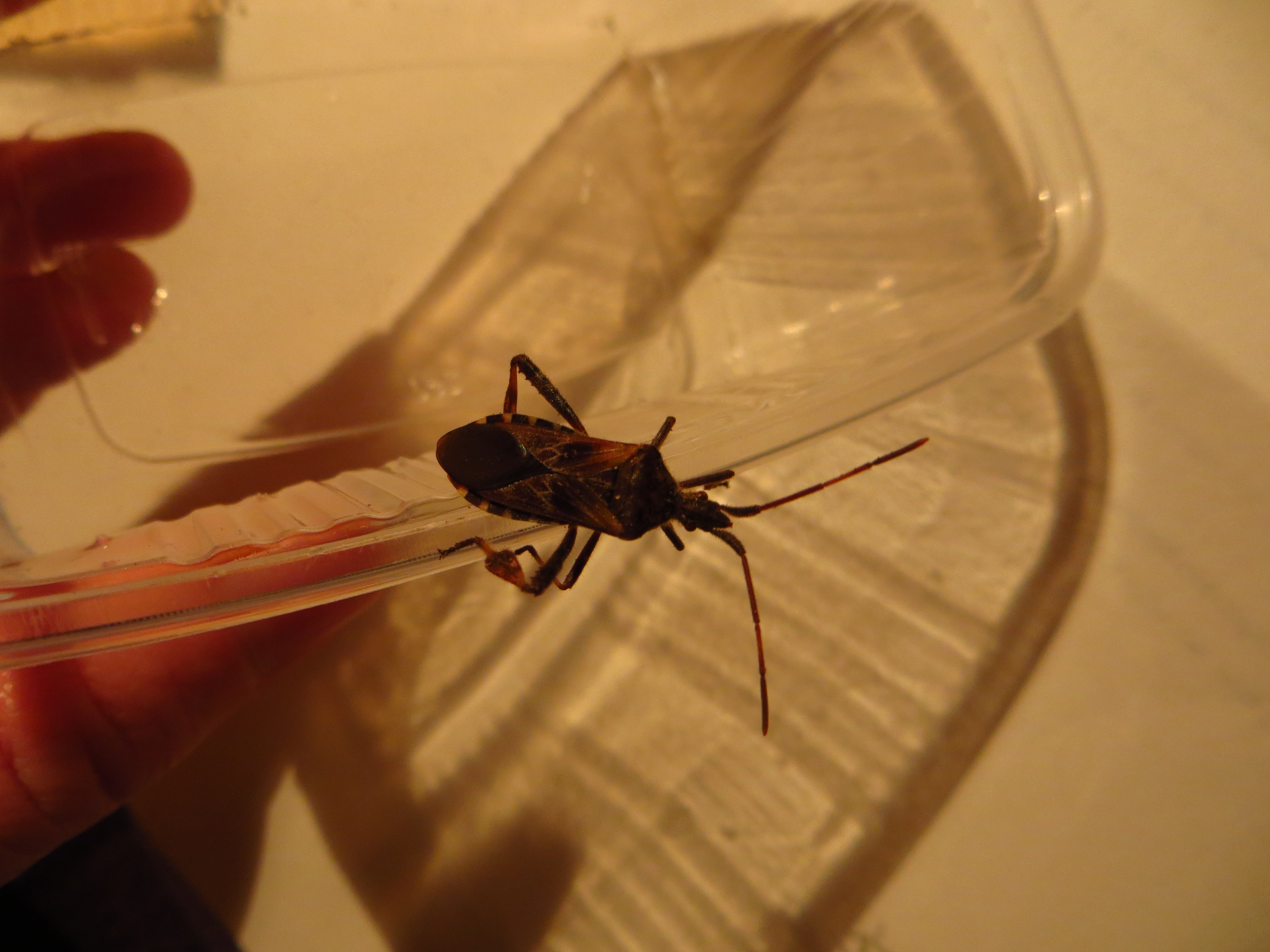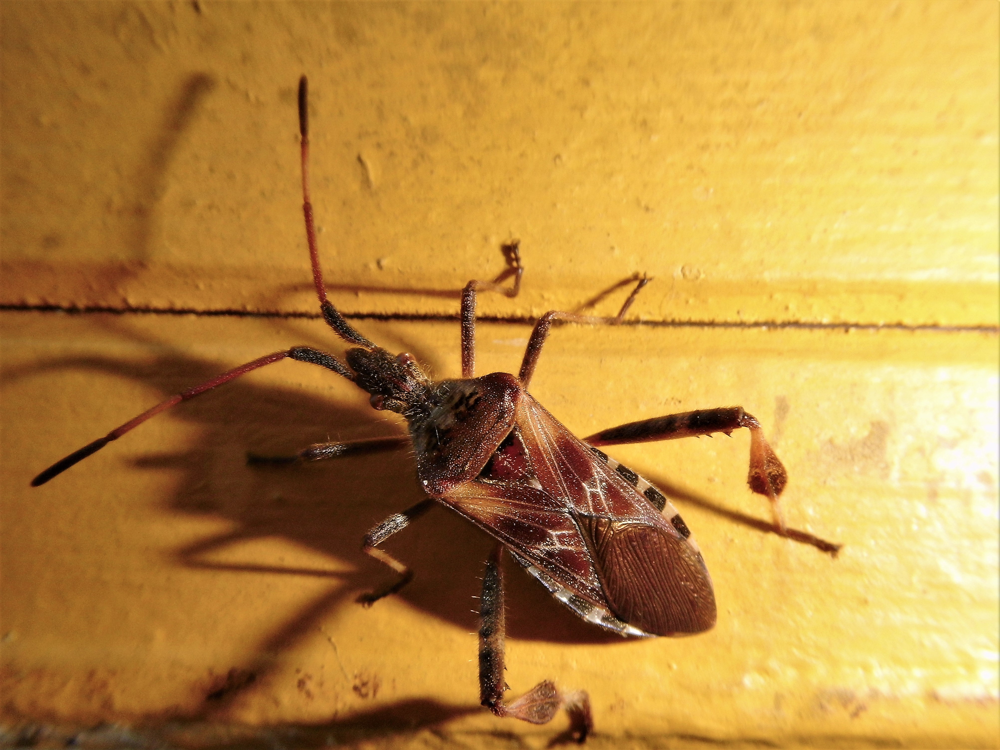 Larve der Amerikanischen Zapfenwanze ( Leptoglossus occidentalis). Deutschland, Baden-Württemberg, Baden-Baden, einzeln stehende Kiefer nord-nord-westlich Ortsteil Sandweier, 30.06.2012 (© Michael Münch)( Bild vergrößern)