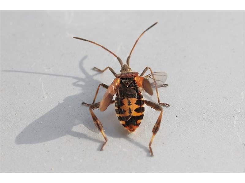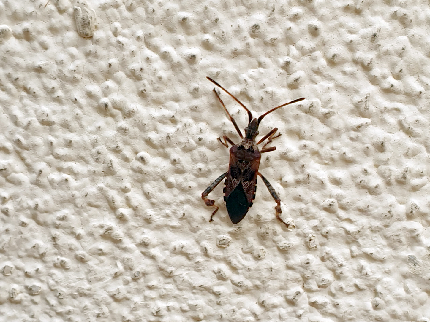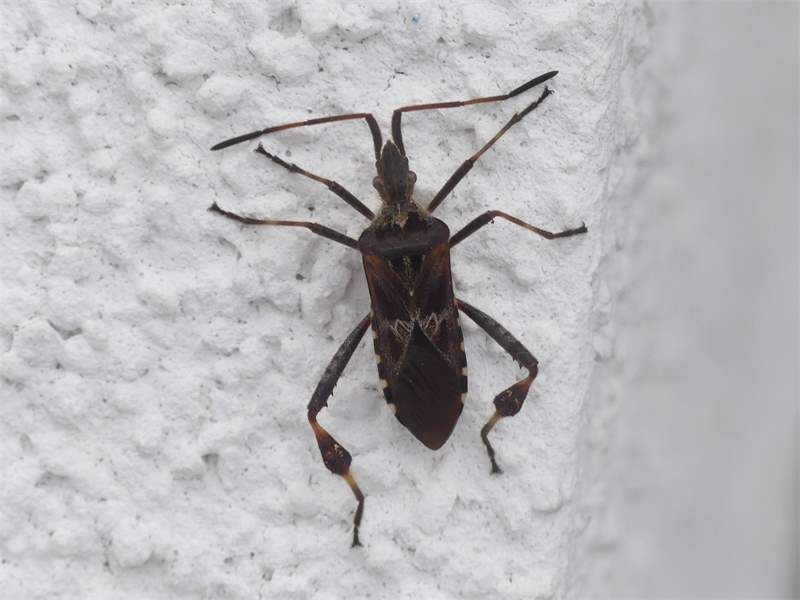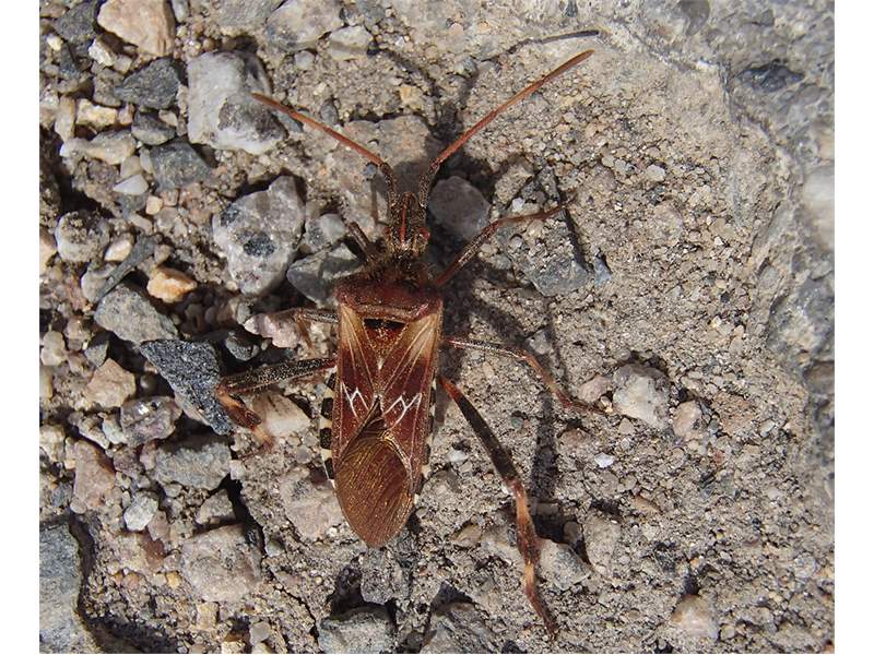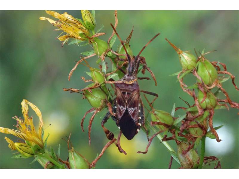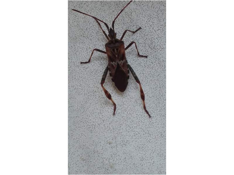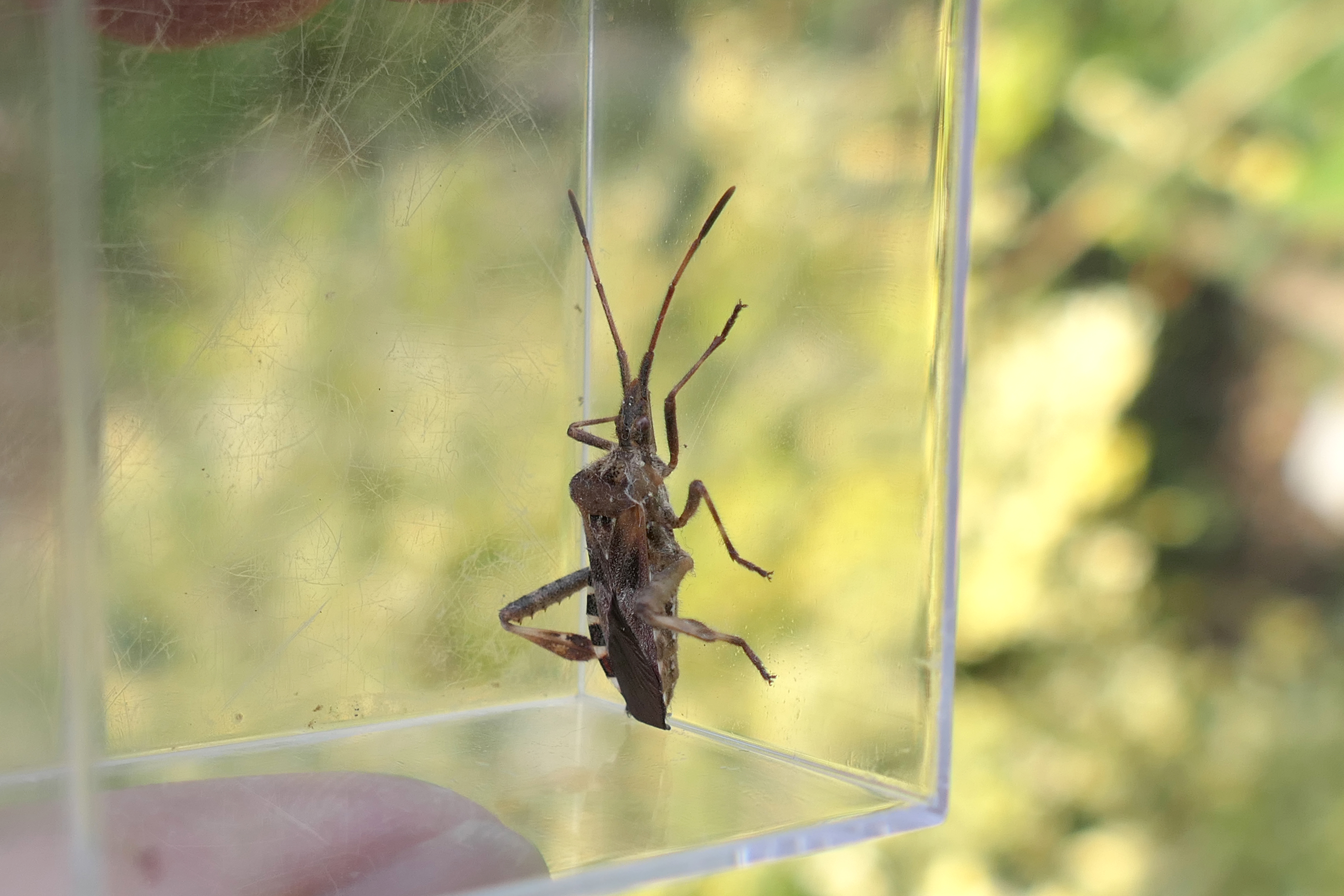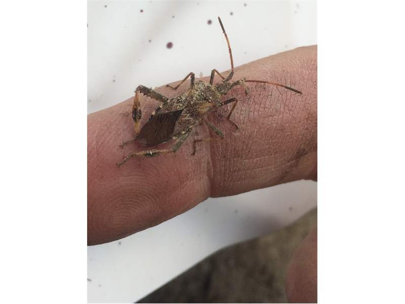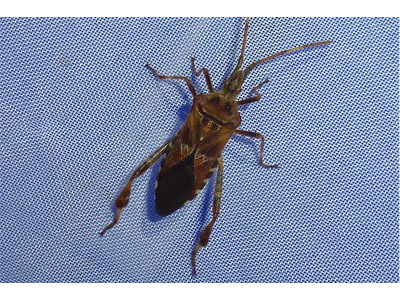 Larve der Amerikanischen Zapfenwanze ( Leptoglossus occidentalis). Deutschland, Baden-Württemberg, Baden-Baden, einzeln stehende Kiefer nord-nord-westlich Ortsteil Sandweier, 30.06.2012 (© Michael Münch)( Bild vergrößern)