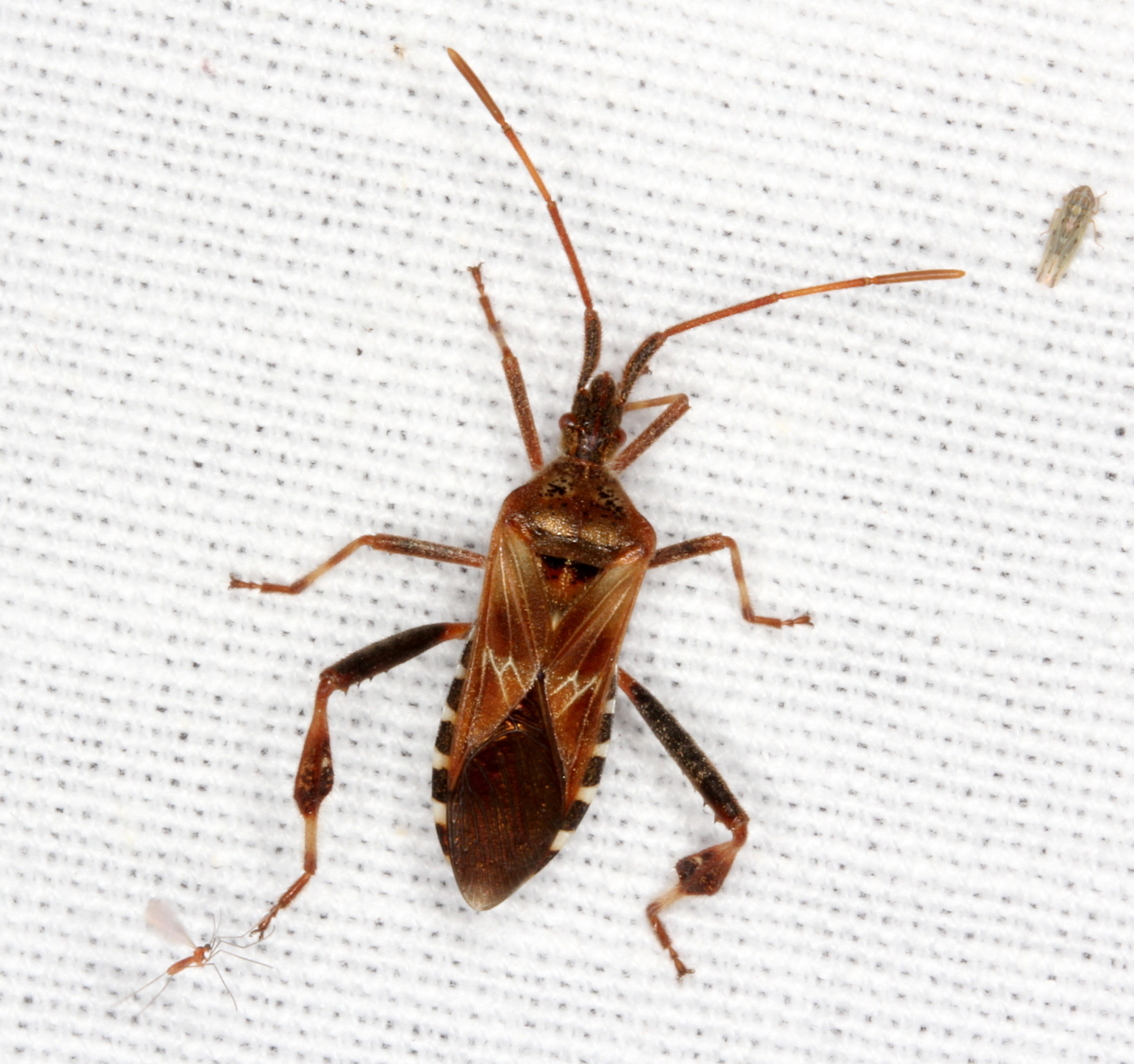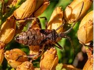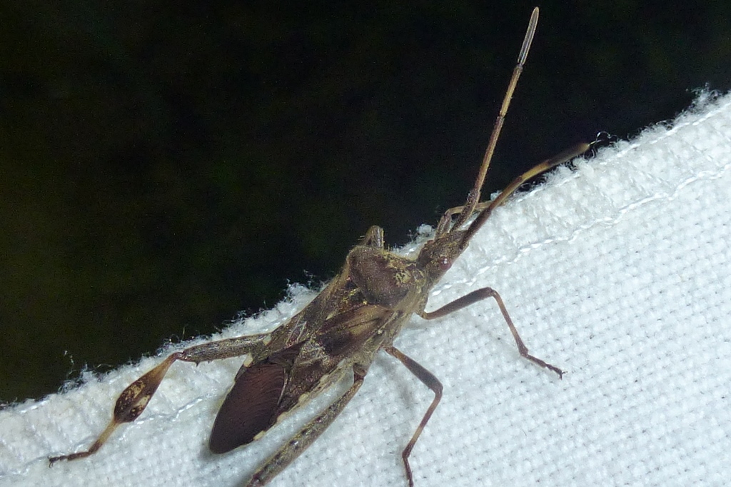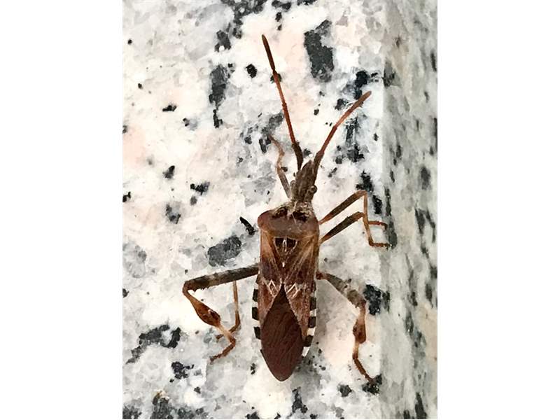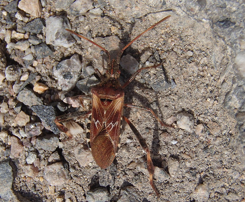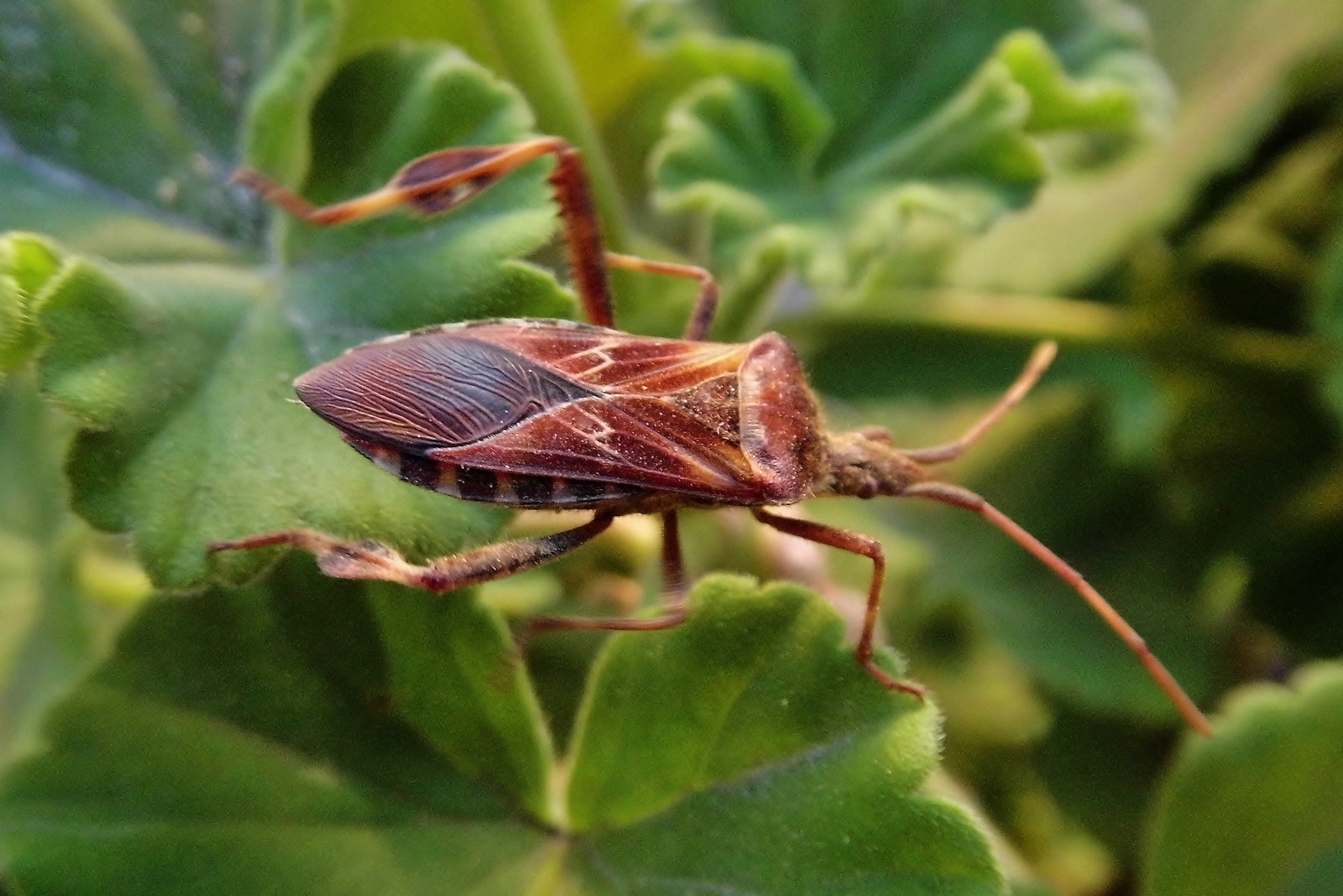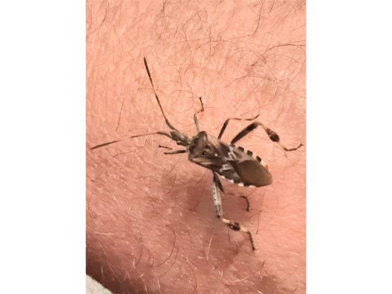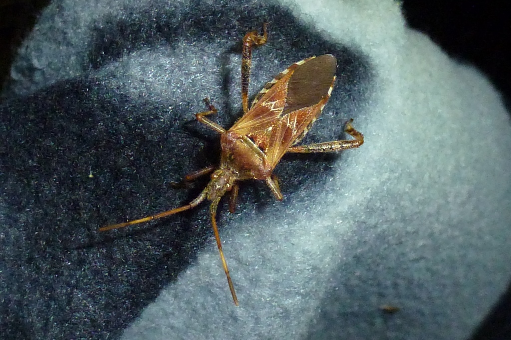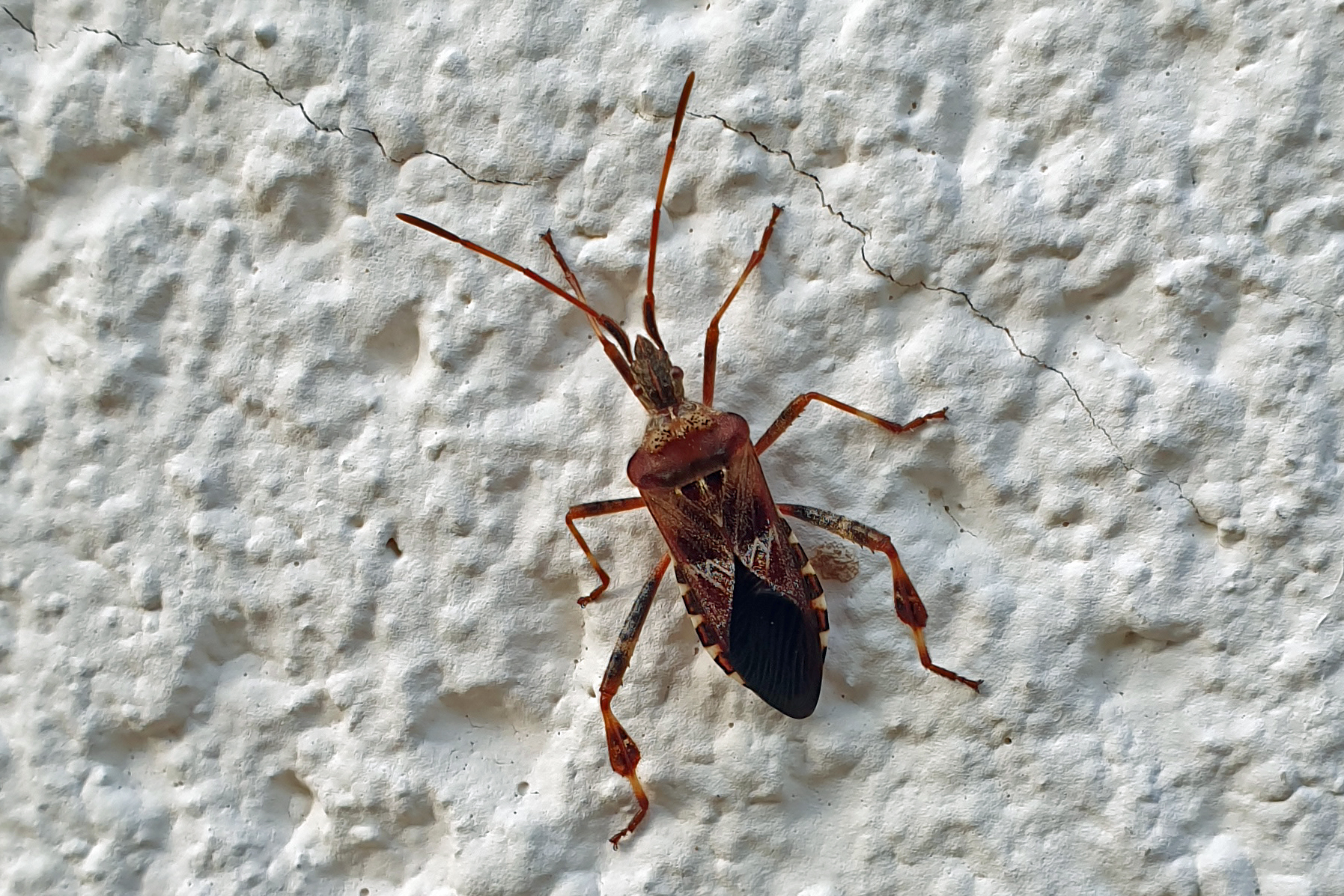 Larve der Amerikanischen Zapfenwanze ( Leptoglossus occidentalis). Deutschland, Baden-Württemberg, Baden-Baden, einzeln stehende Kiefer nord-nord-westlich Ortsteil Sandweier, 30.06.2012 (© Michael Münch)( Bild vergrößern)