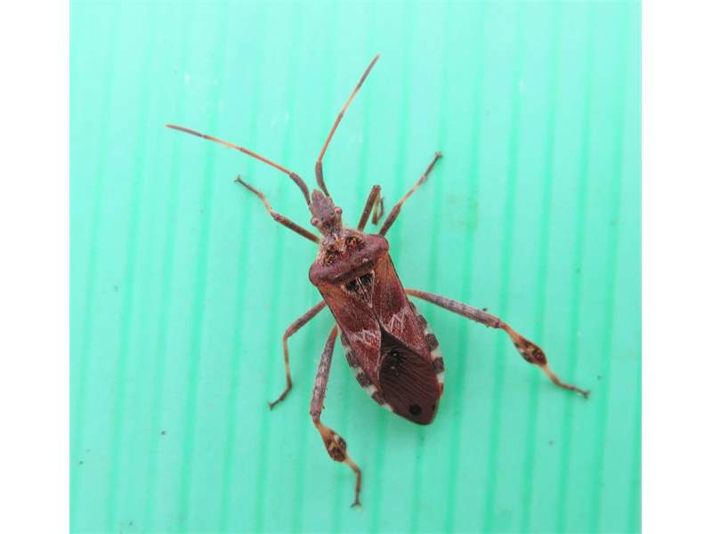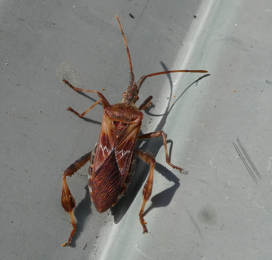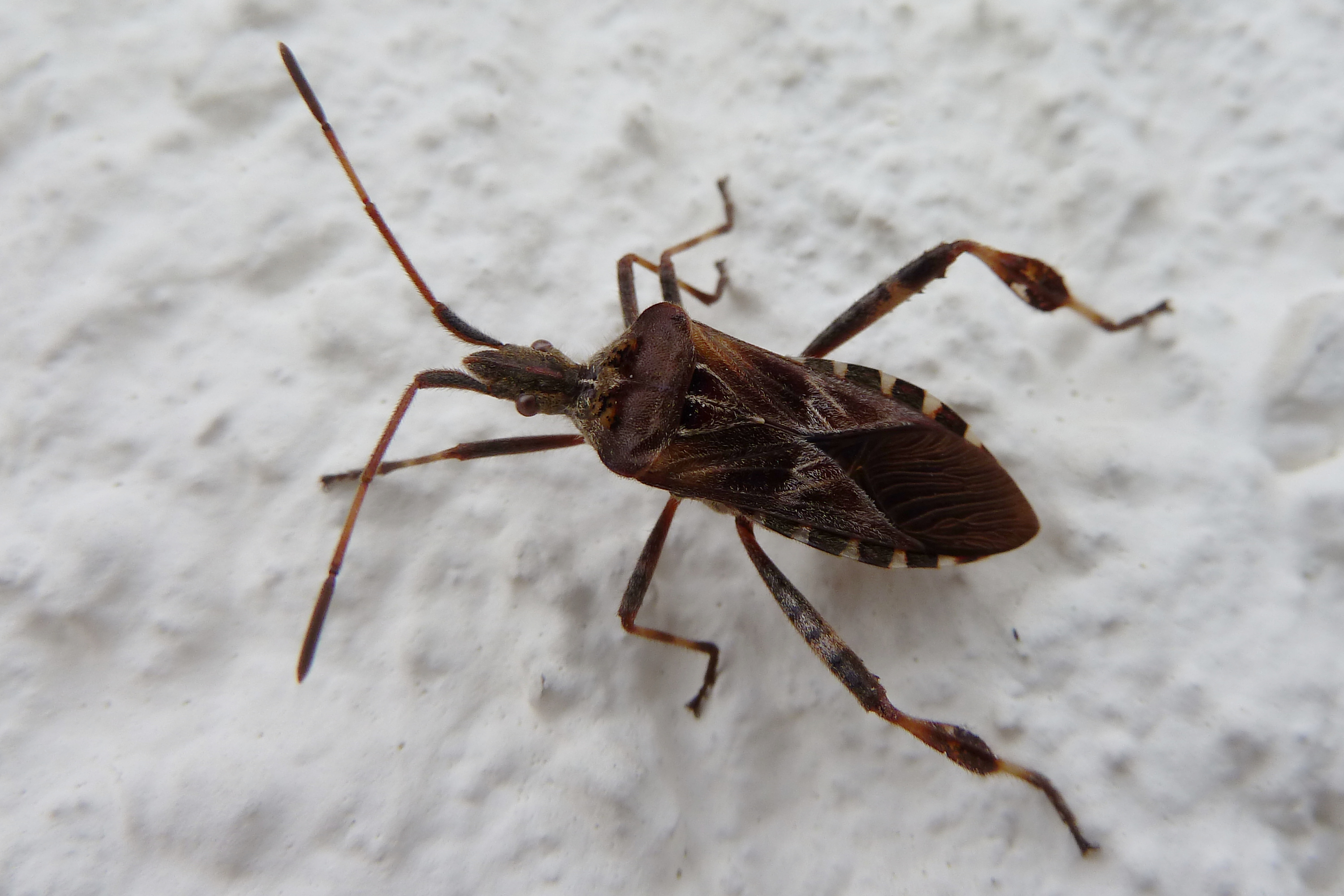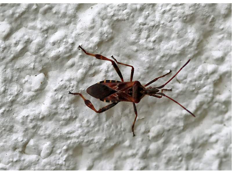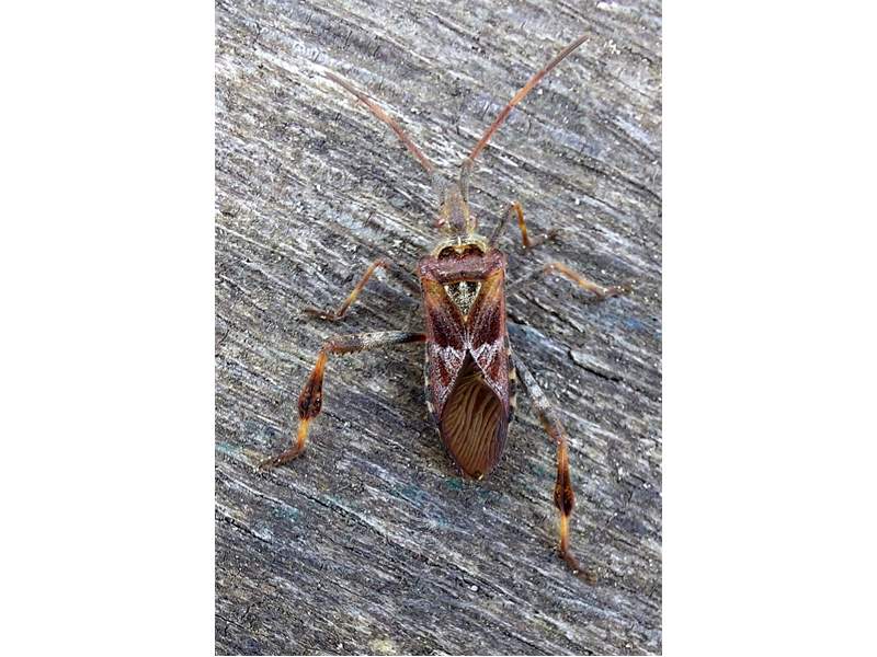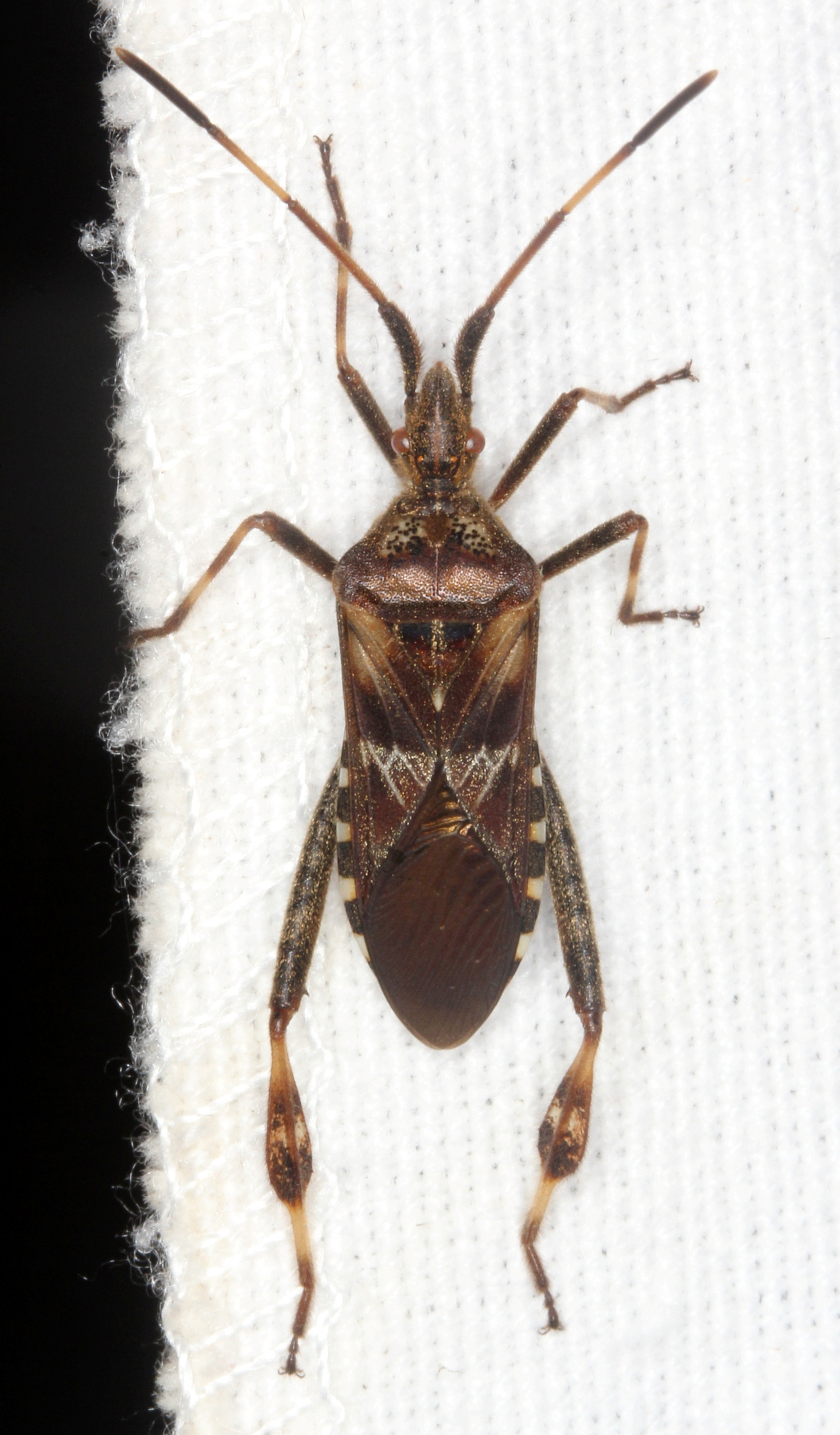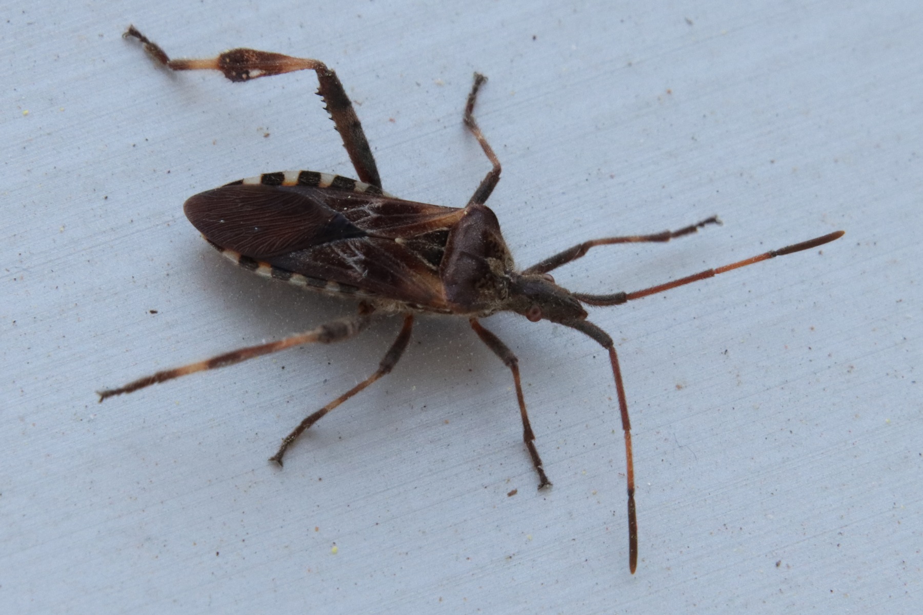 Larve der Amerikanischen Zapfenwanze ( Leptoglossus occidentalis). Deutschland, Baden-Württemberg, Baden-Baden, einzeln stehende Kiefer nord-nord-westlich Ortsteil Sandweier, 30.06.2012 (© Michael Münch)( Bild vergrößern)