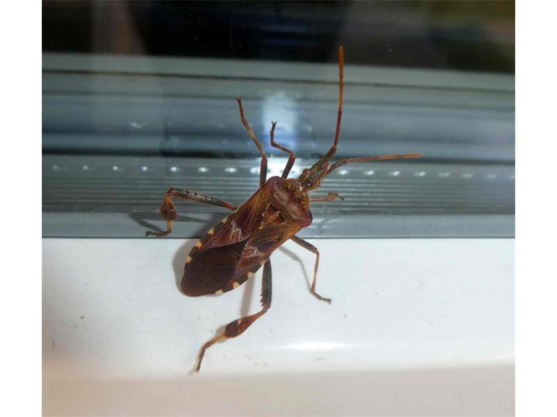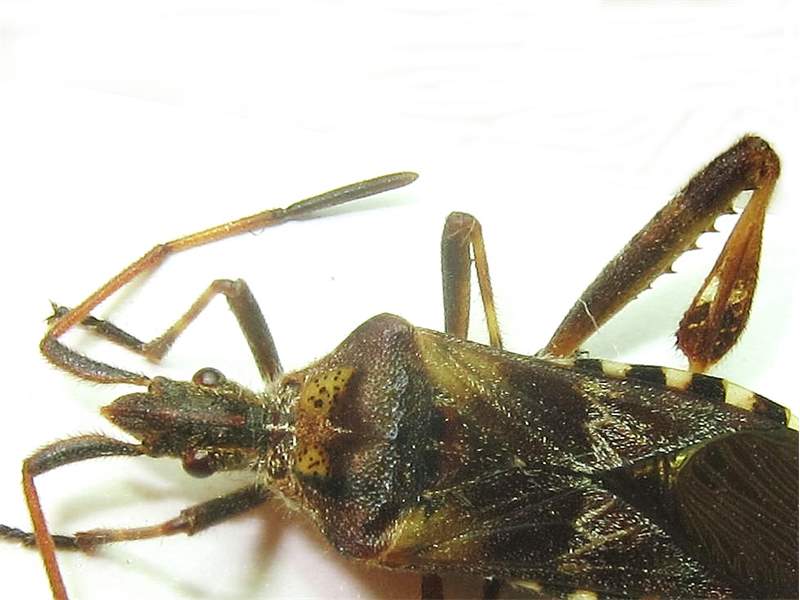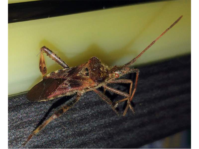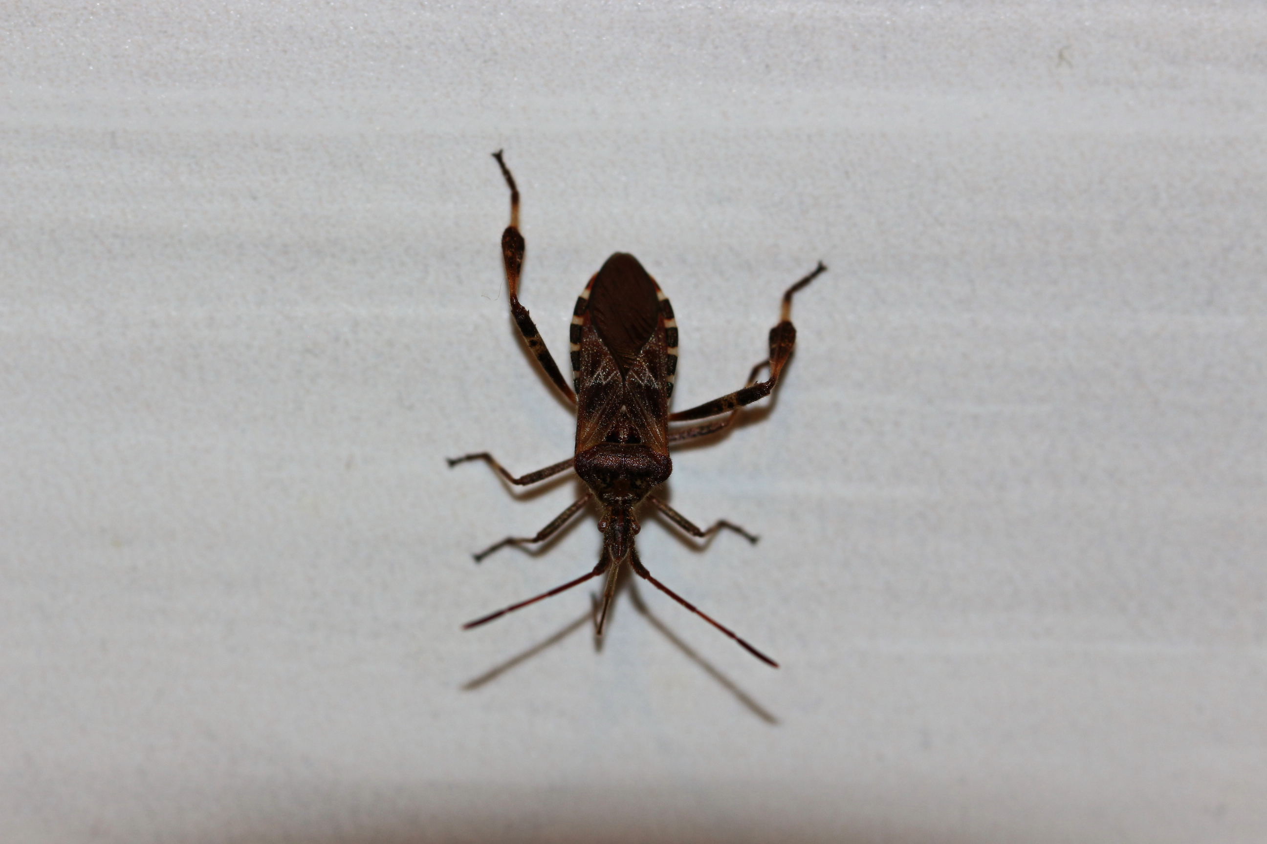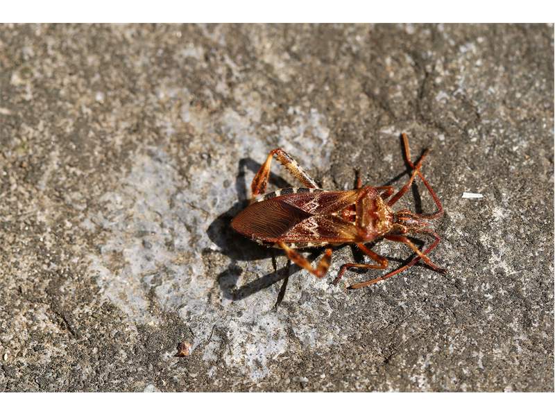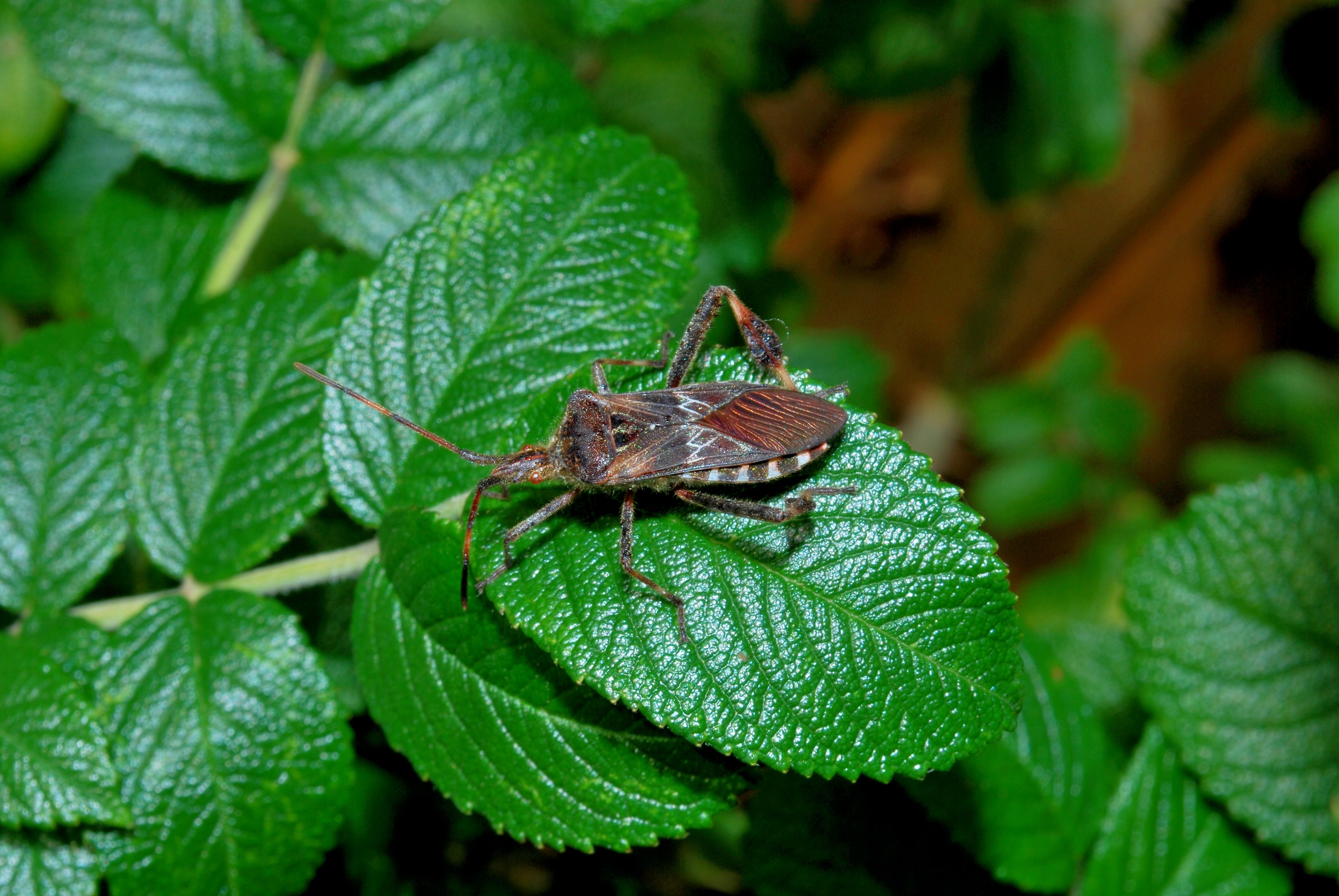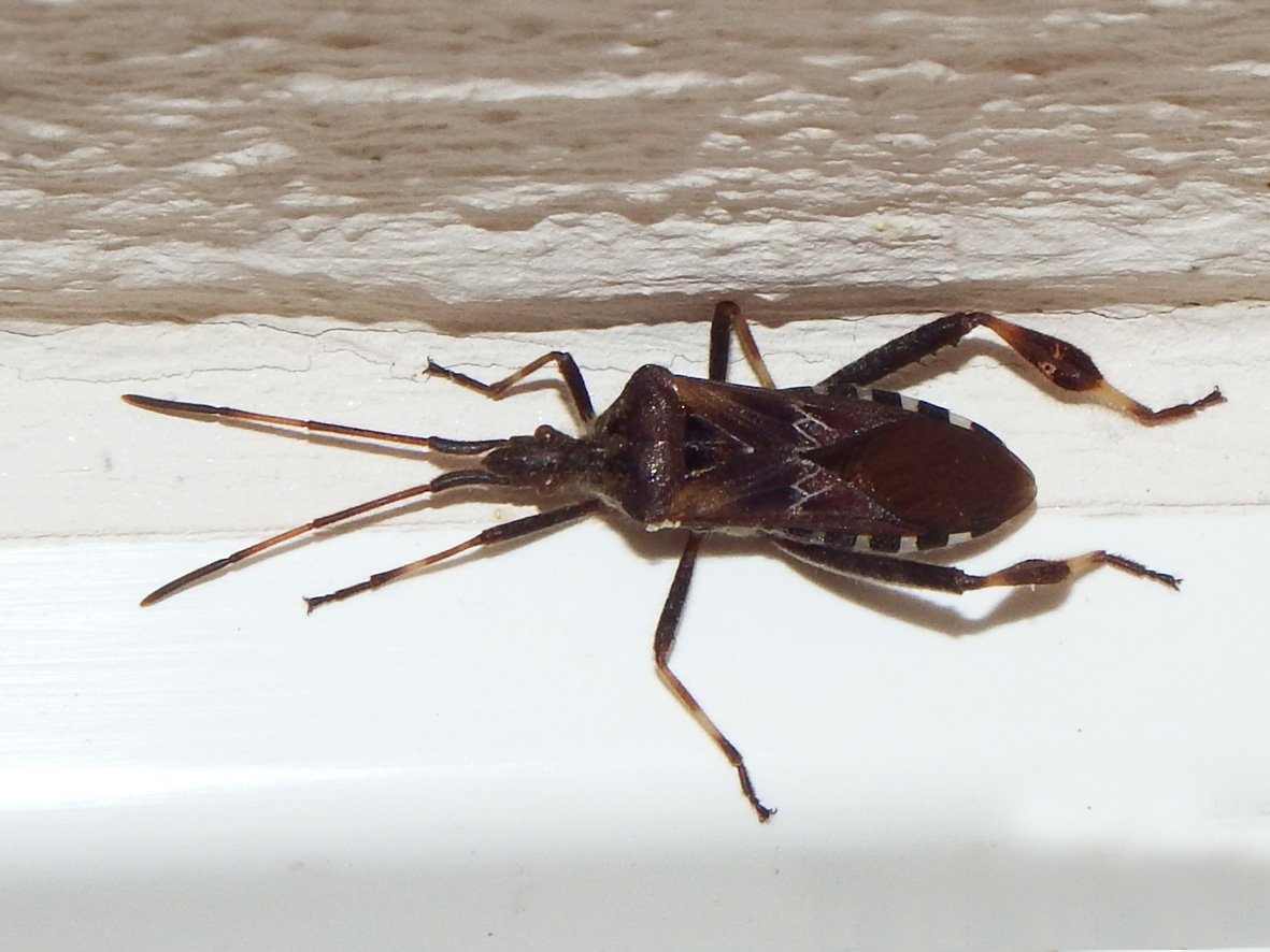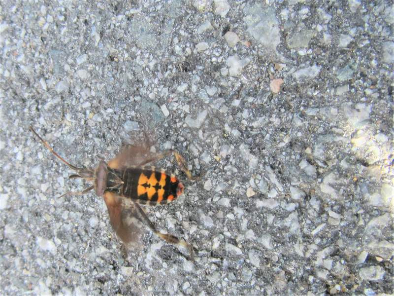 Larve der Amerikanischen Zapfenwanze ( Leptoglossus occidentalis). Deutschland, Baden-Württemberg, Baden-Baden, einzeln stehende Kiefer nord-nord-westlich Ortsteil Sandweier, 30.06.2012 (© Michael Münch)( Bild vergrößern)