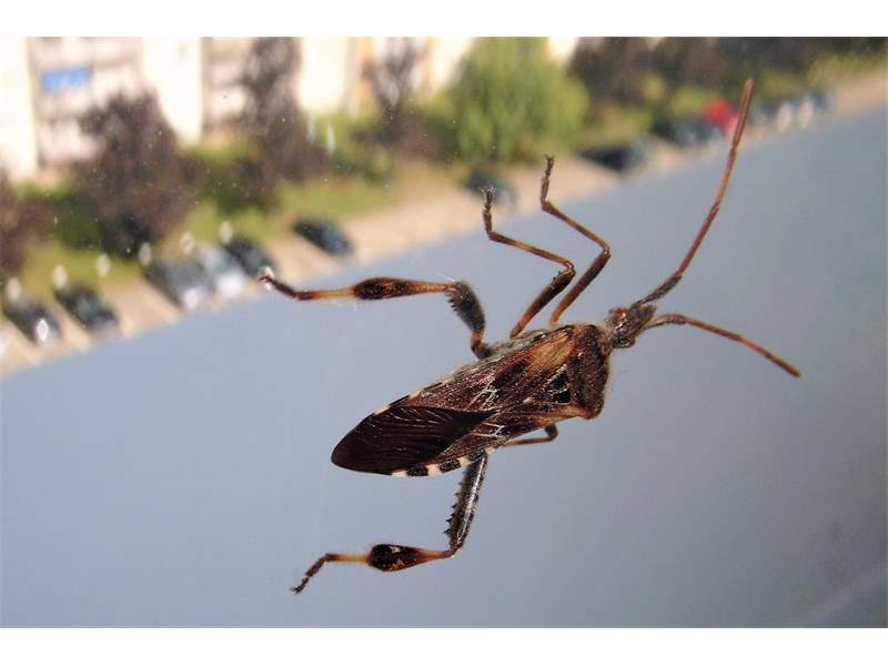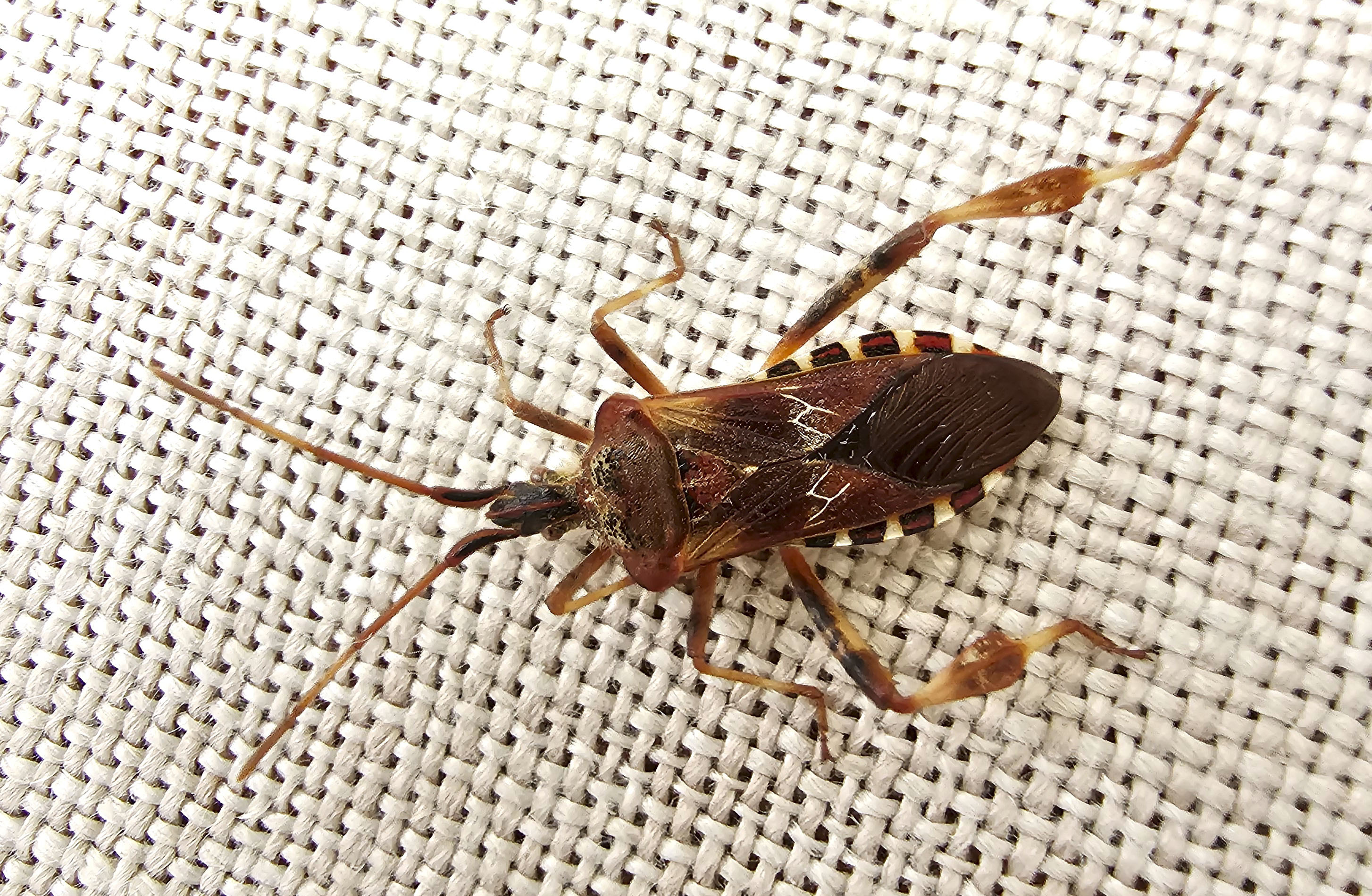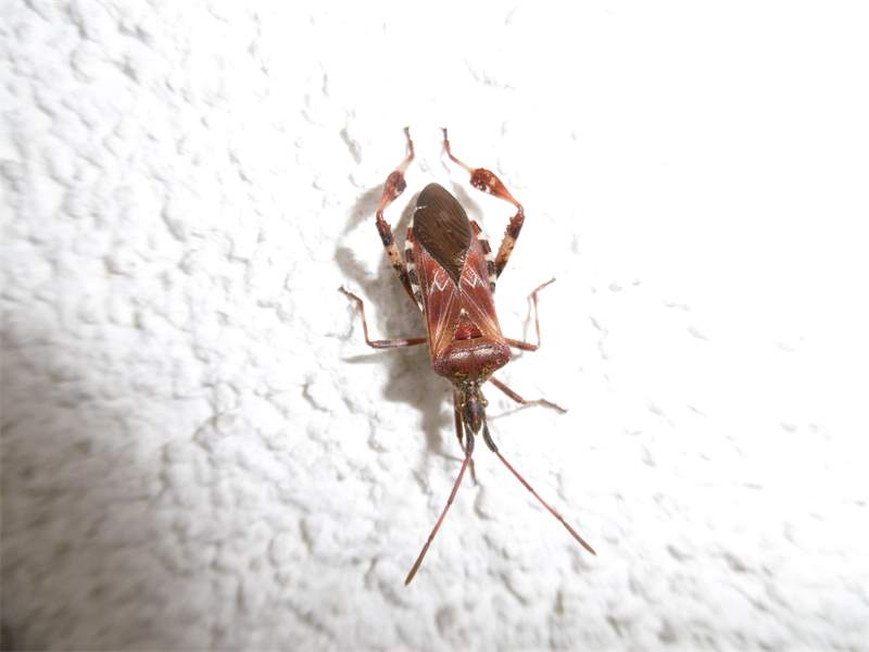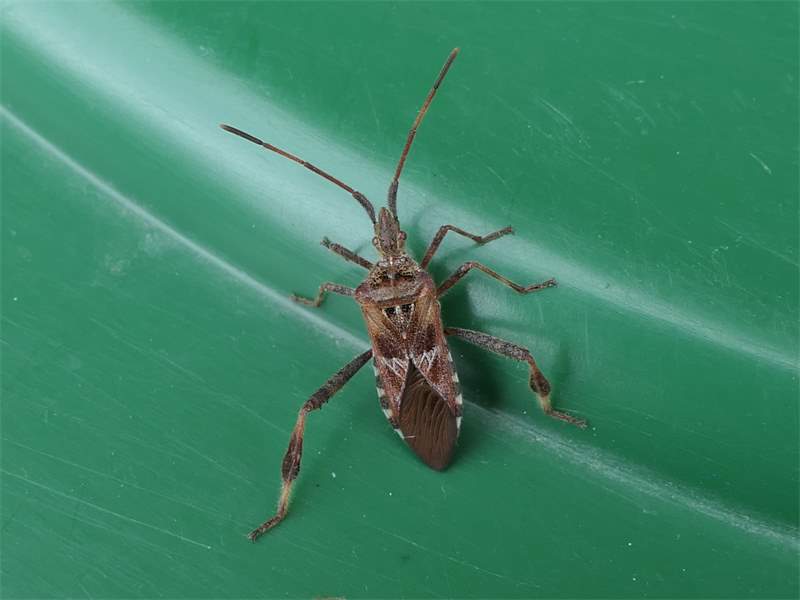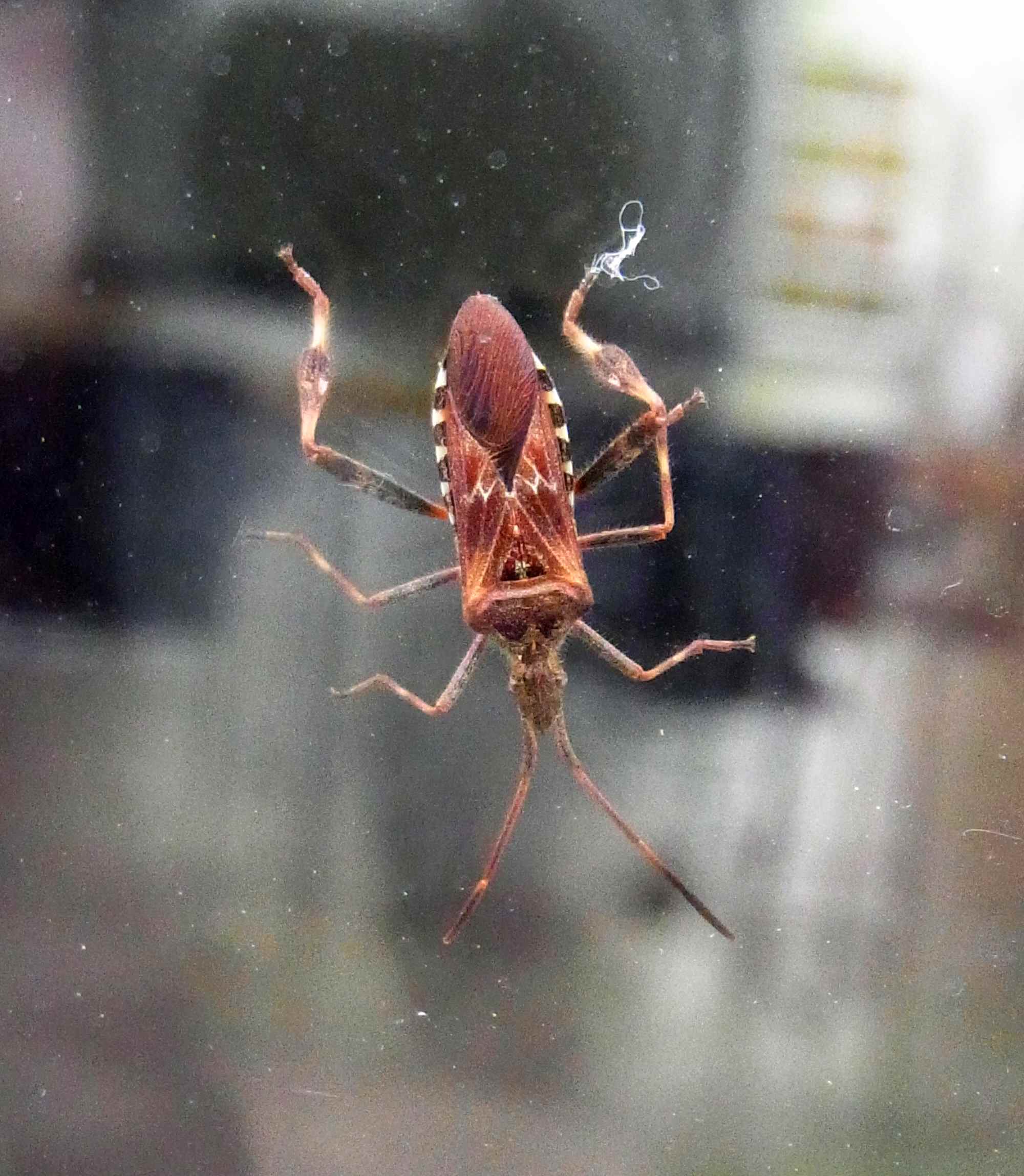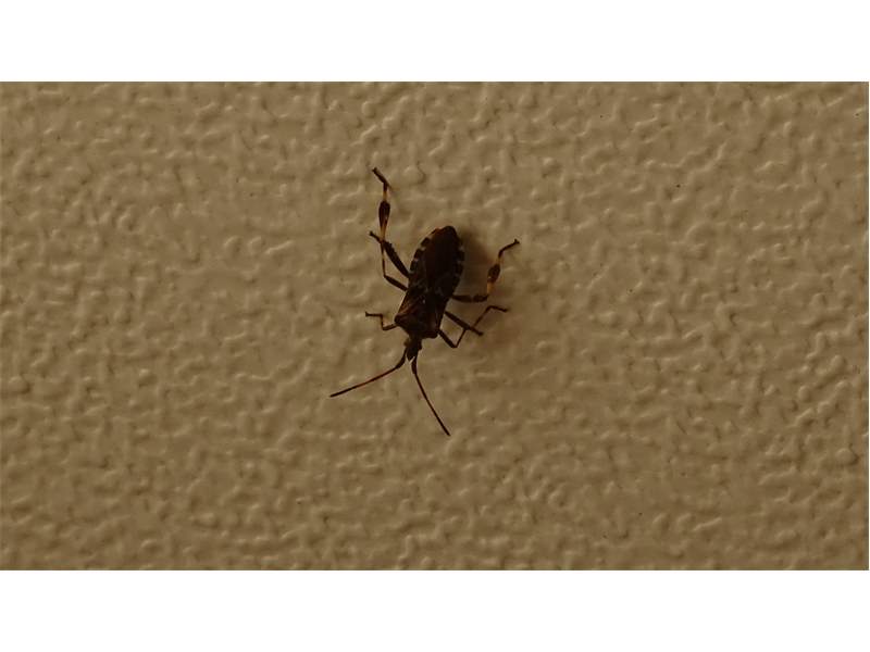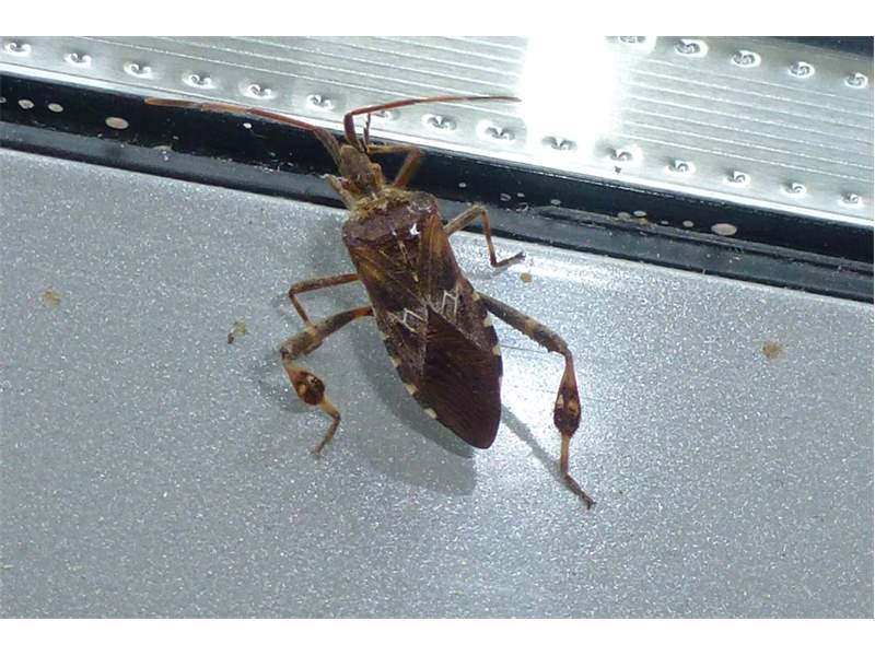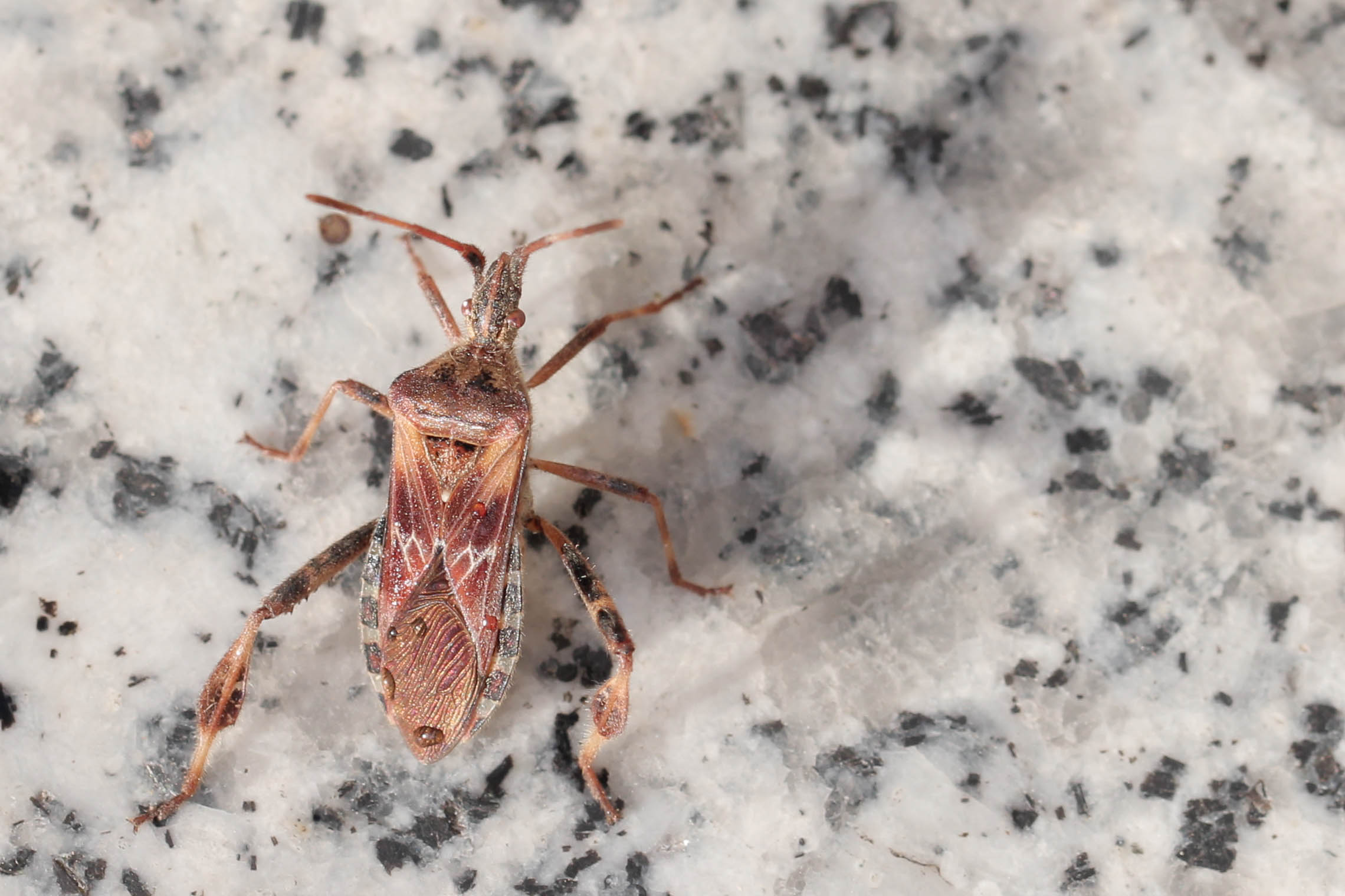 Larve der Amerikanischen Zapfenwanze ( Leptoglossus occidentalis). Deutschland, Baden-Württemberg, Baden-Baden, einzeln stehende Kiefer nord-nord-westlich Ortsteil Sandweier, 30.06.2012 (© Michael Münch)( Bild vergrößern)