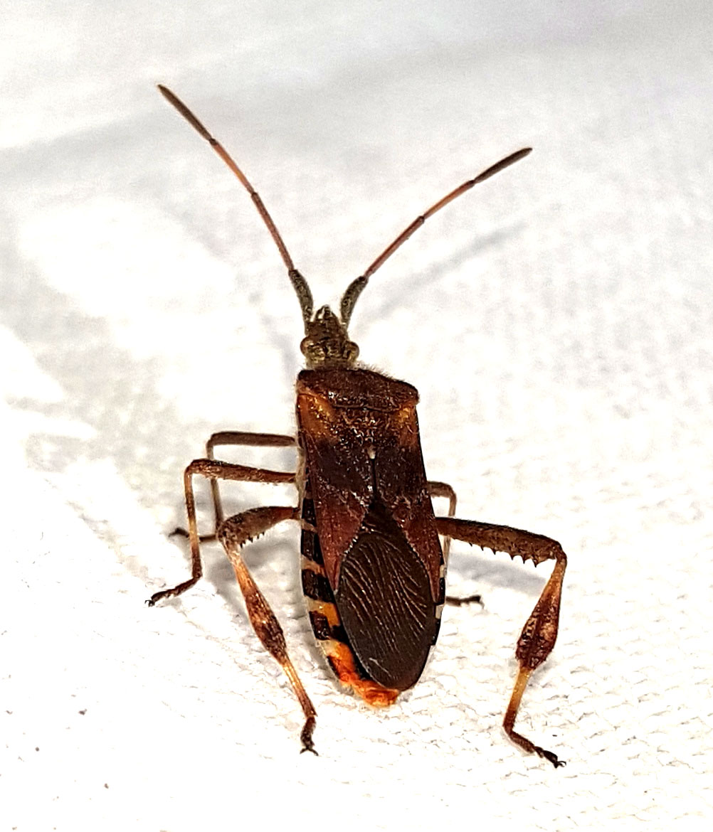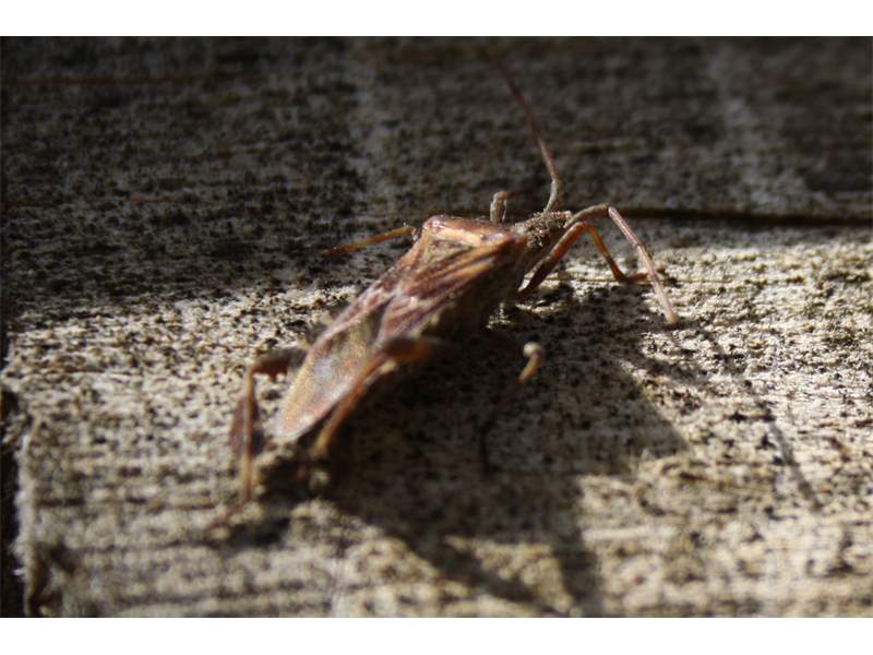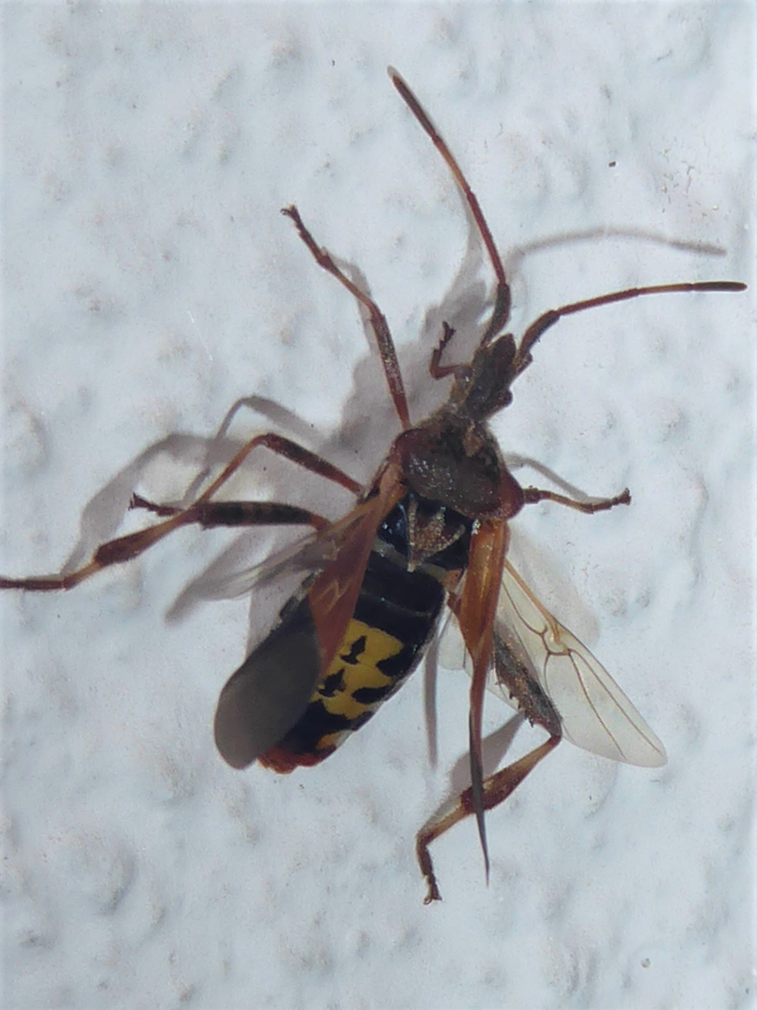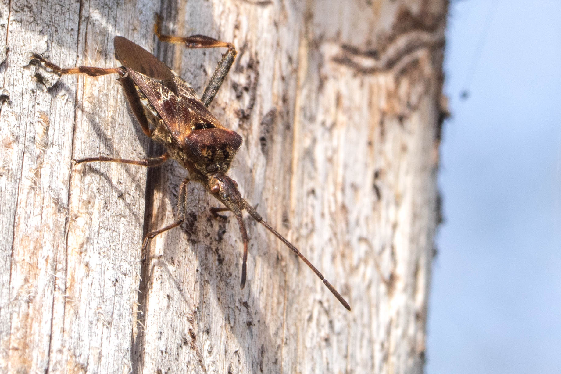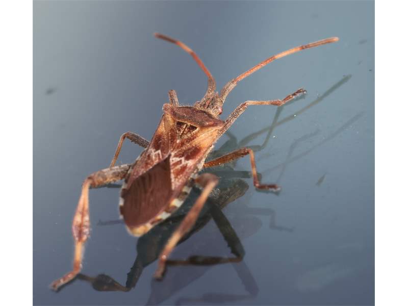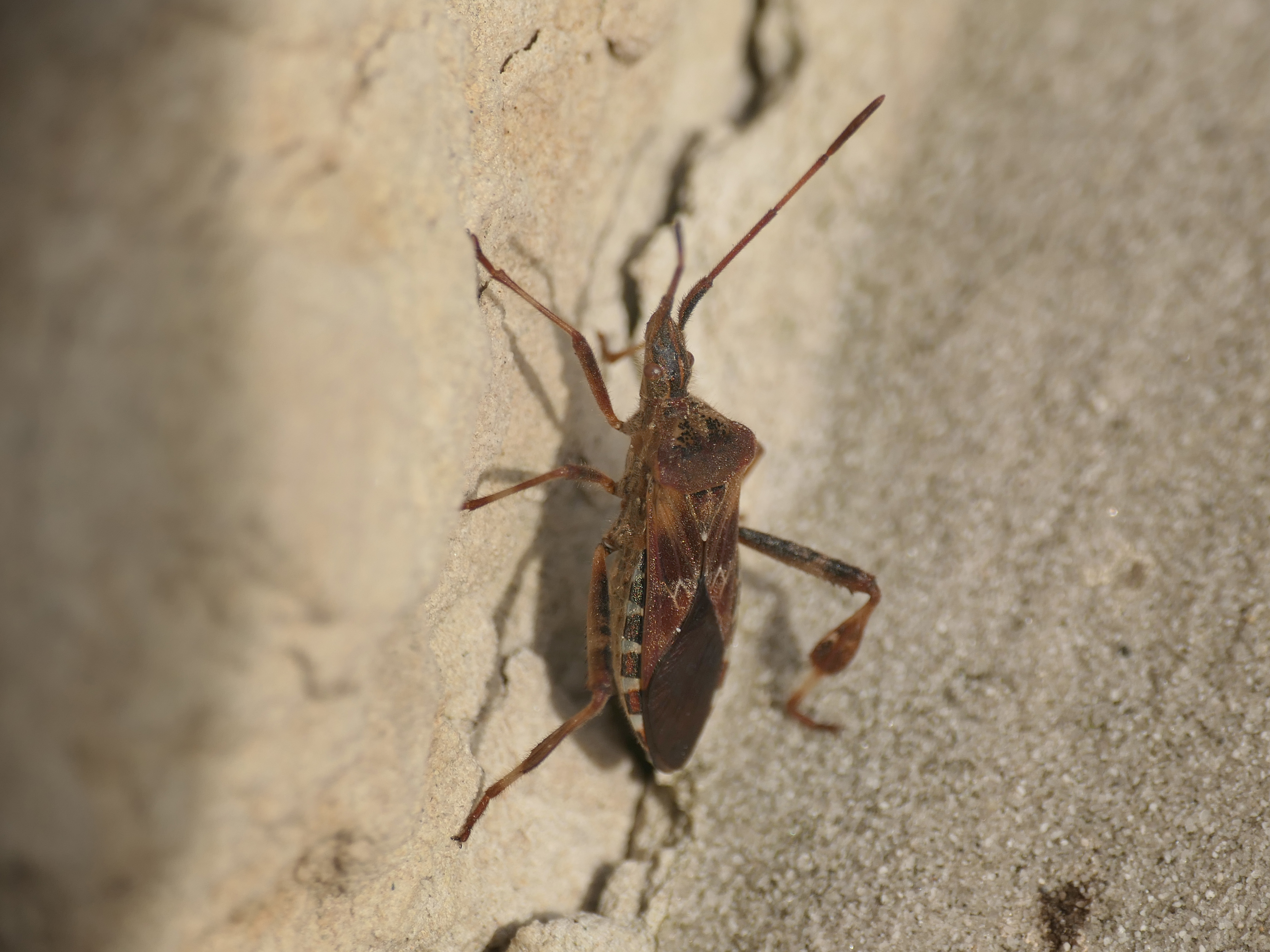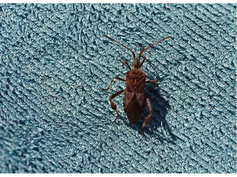 Larve der Amerikanischen Zapfenwanze ( Leptoglossus occidentalis). Deutschland, Baden-Württemberg, Baden-Baden, einzeln stehende Kiefer nord-nord-westlich Ortsteil Sandweier, 30.06.2012 (© Michael Münch)( Bild vergrößern)