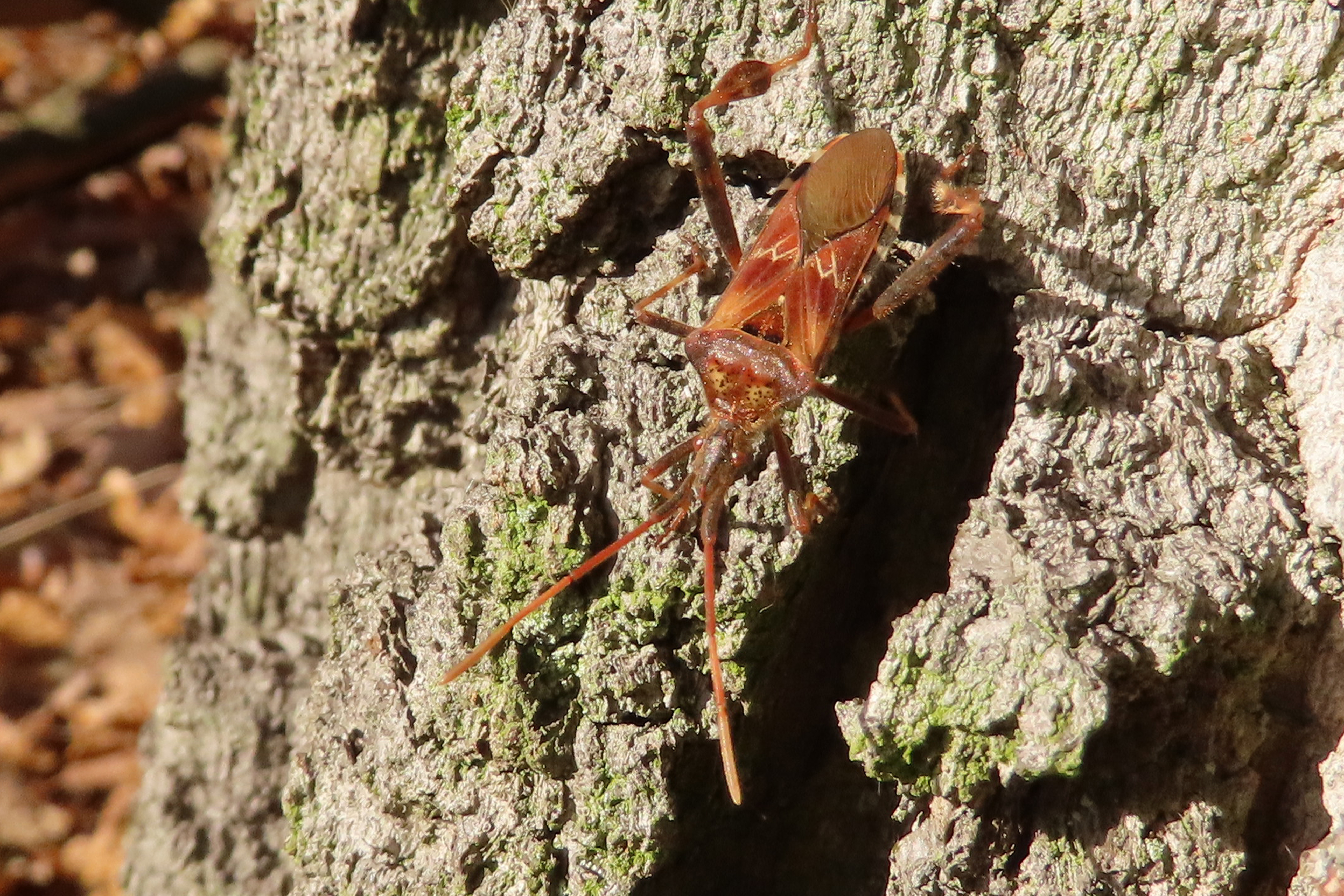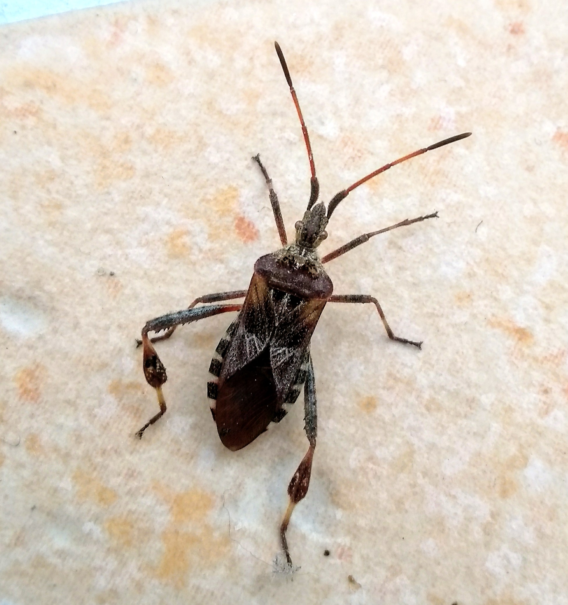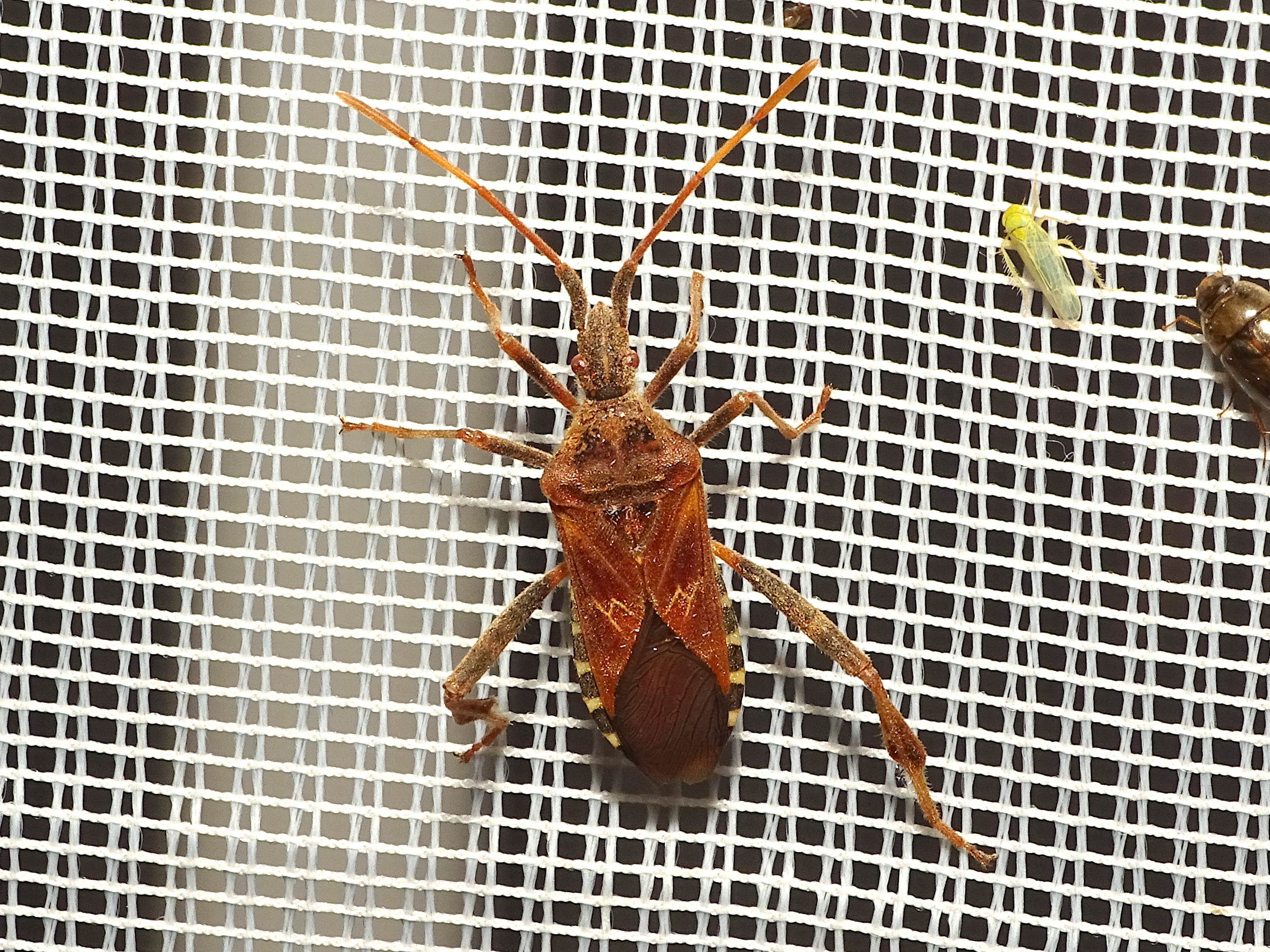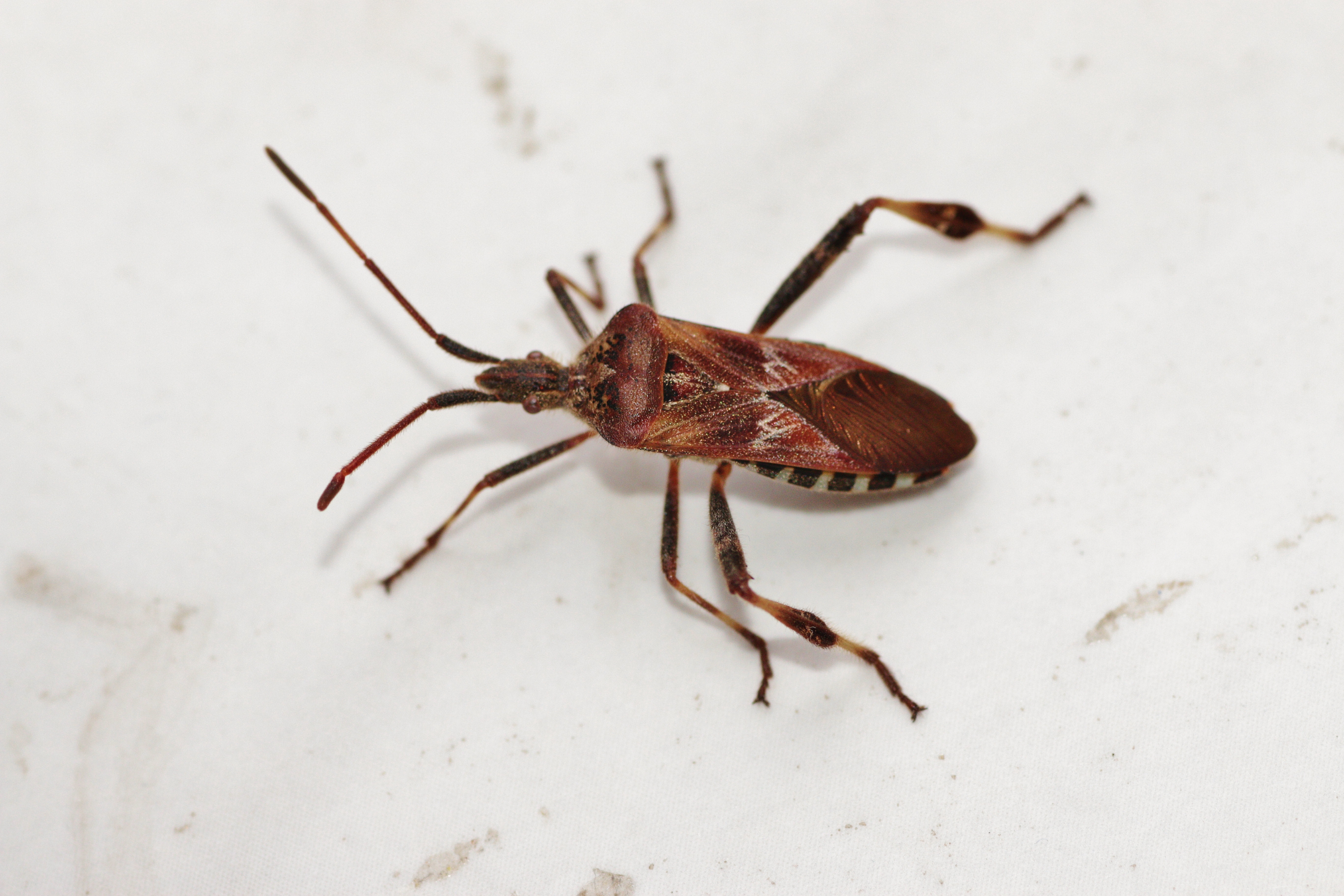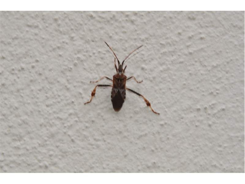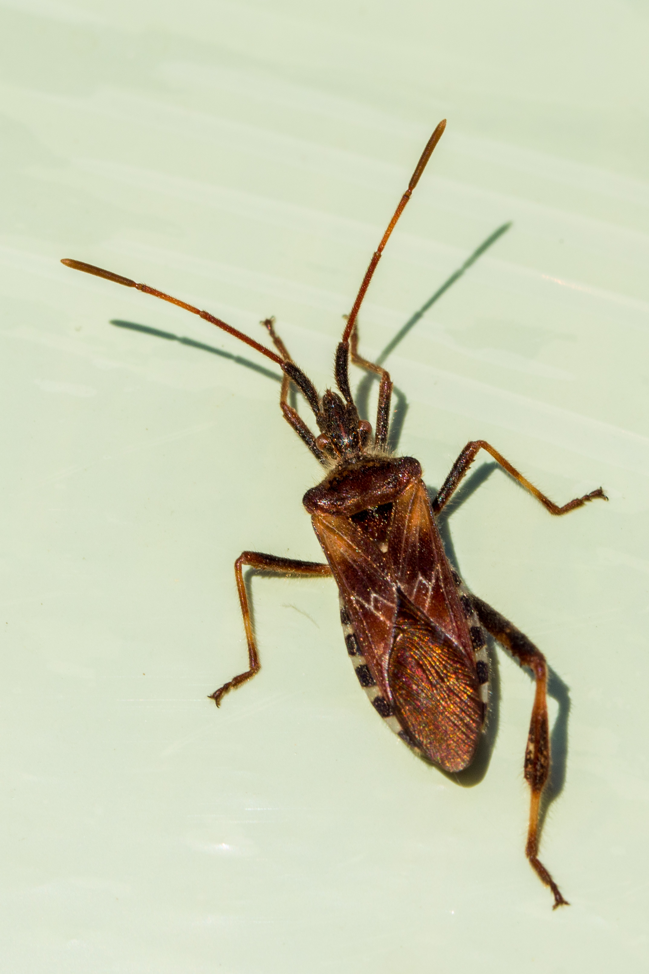 Larve der Amerikanischen Zapfenwanze ( Leptoglossus occidentalis). Deutschland, Baden-Württemberg, Baden-Baden, einzeln stehende Kiefer nord-nord-westlich Ortsteil Sandweier, 30.06.2012 (© Michael Münch)( Bild vergrößern)