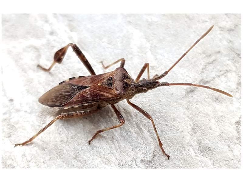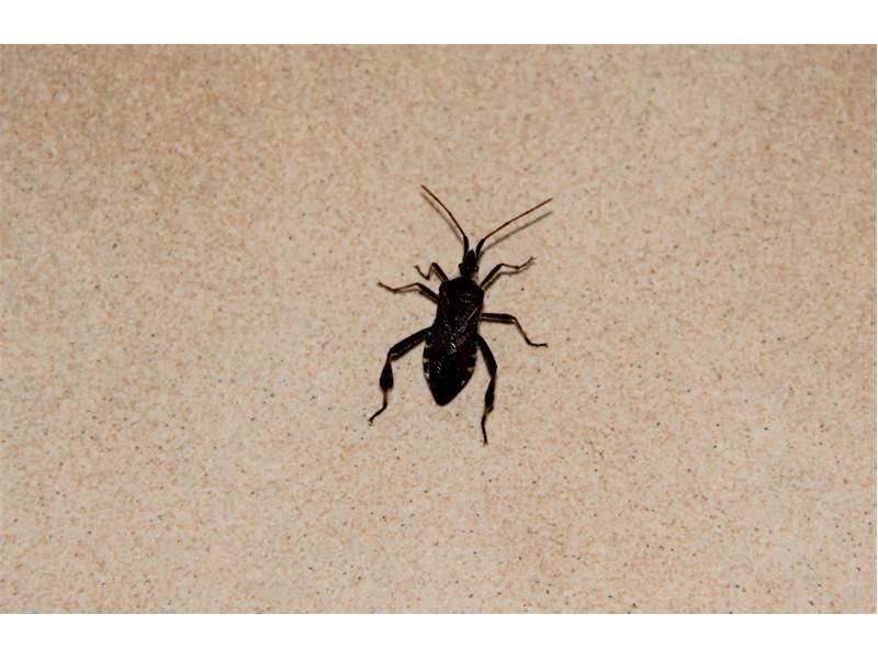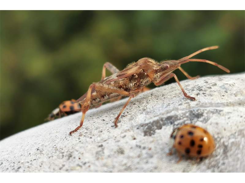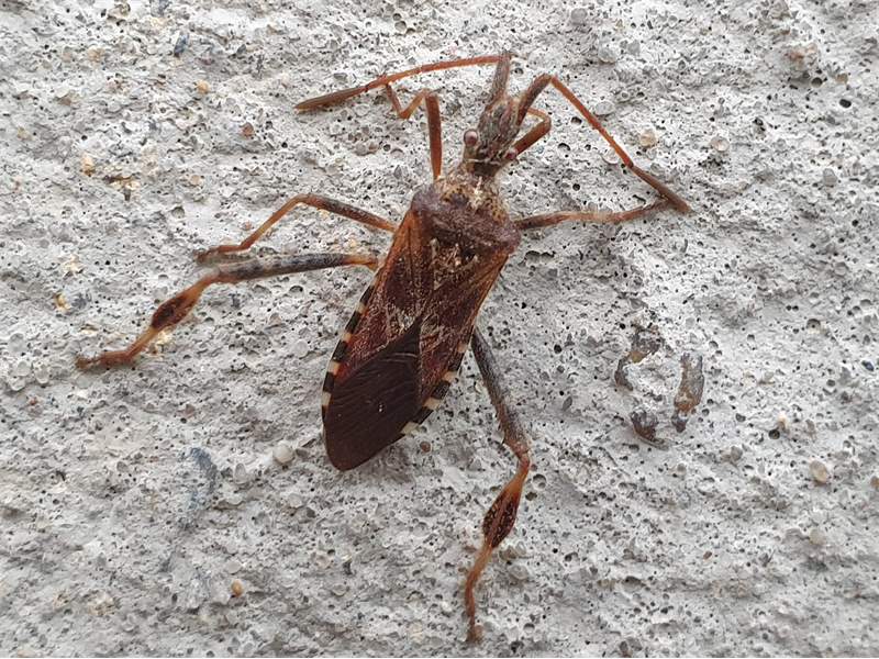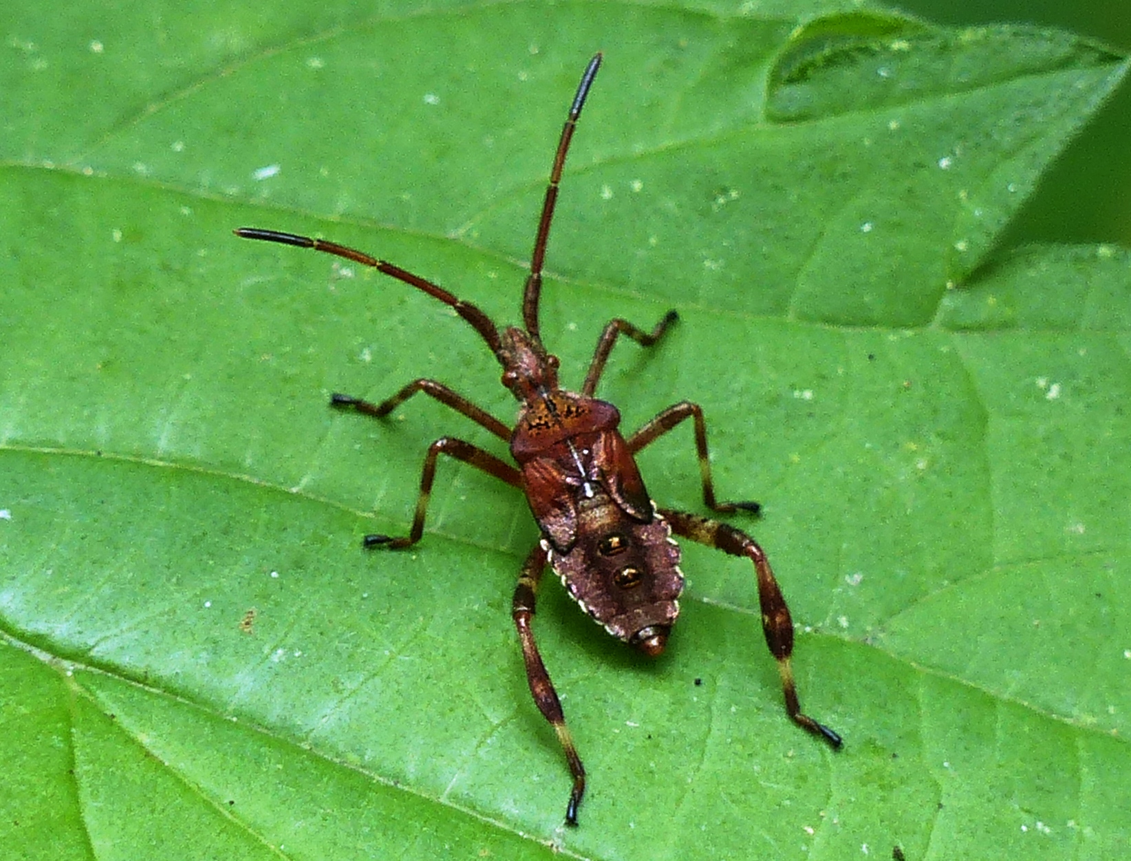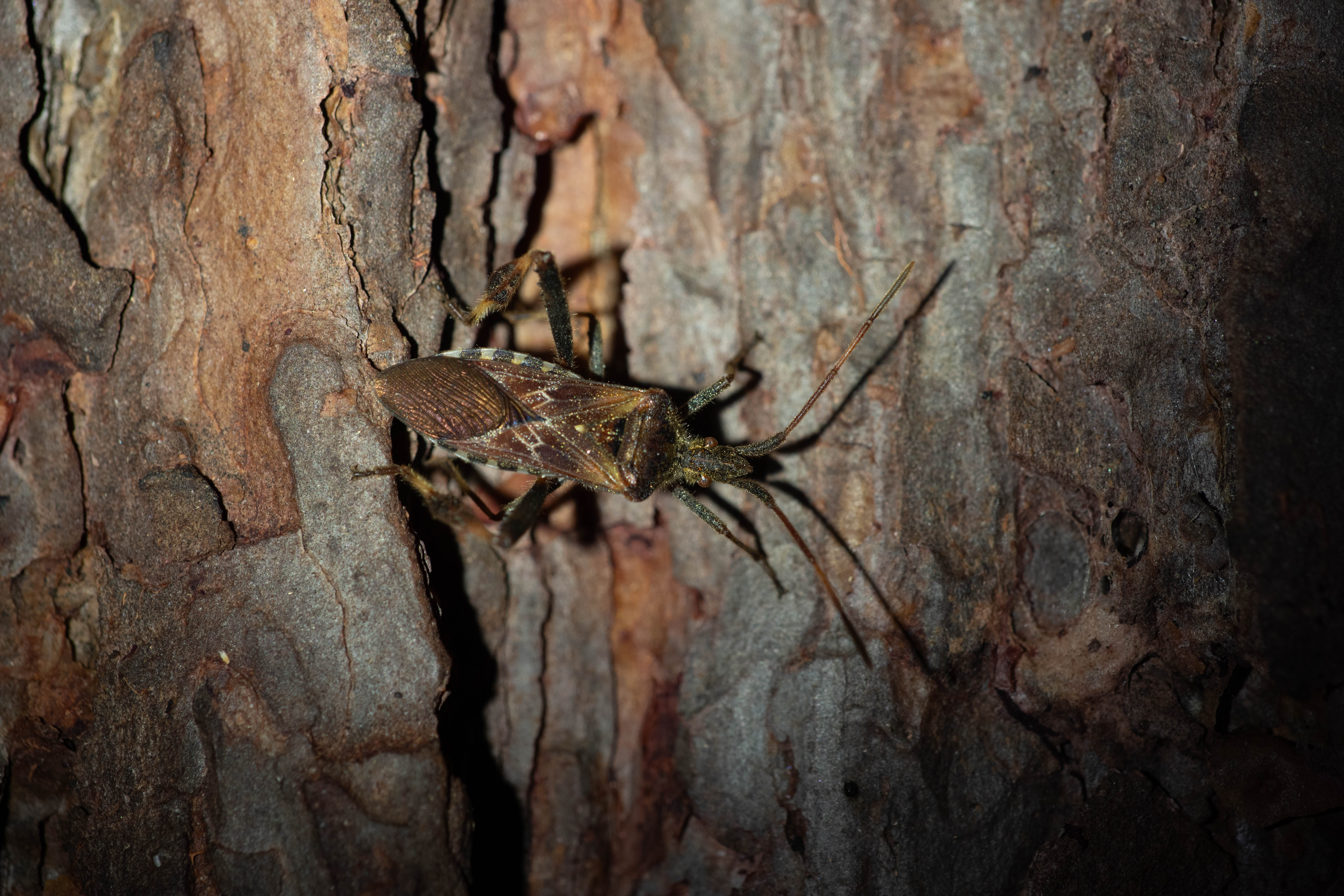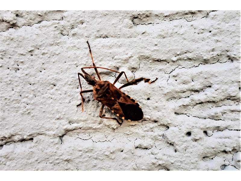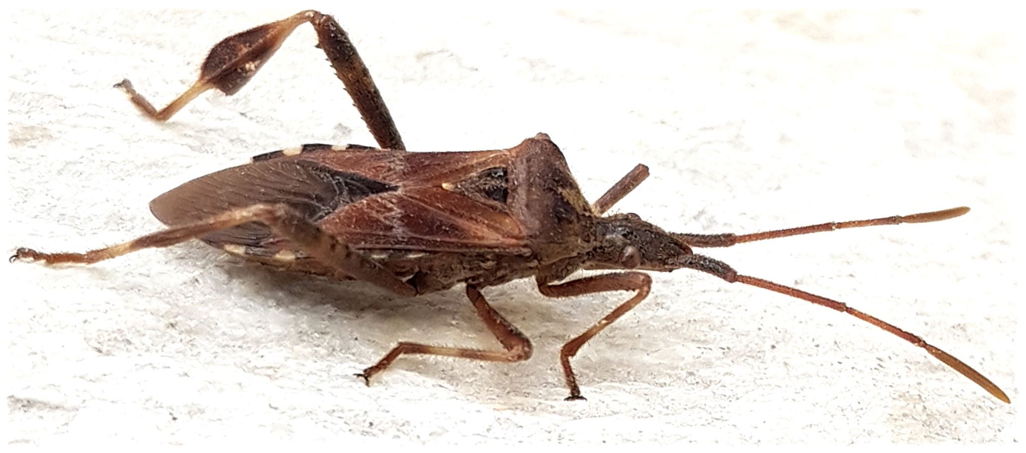 Larve der Amerikanischen Zapfenwanze ( Leptoglossus occidentalis). Deutschland, Baden-Württemberg, Baden-Baden, einzeln stehende Kiefer nord-nord-westlich Ortsteil Sandweier, 30.06.2012 (© Michael Münch)( Bild vergrößern)