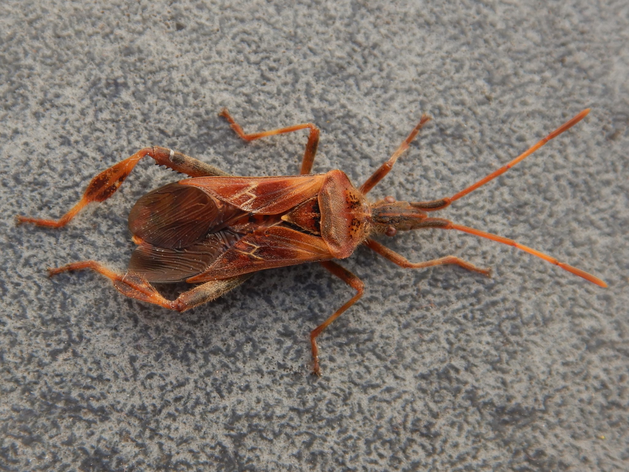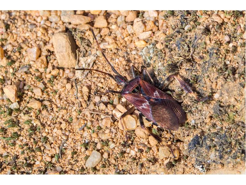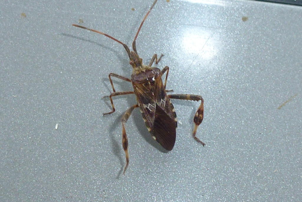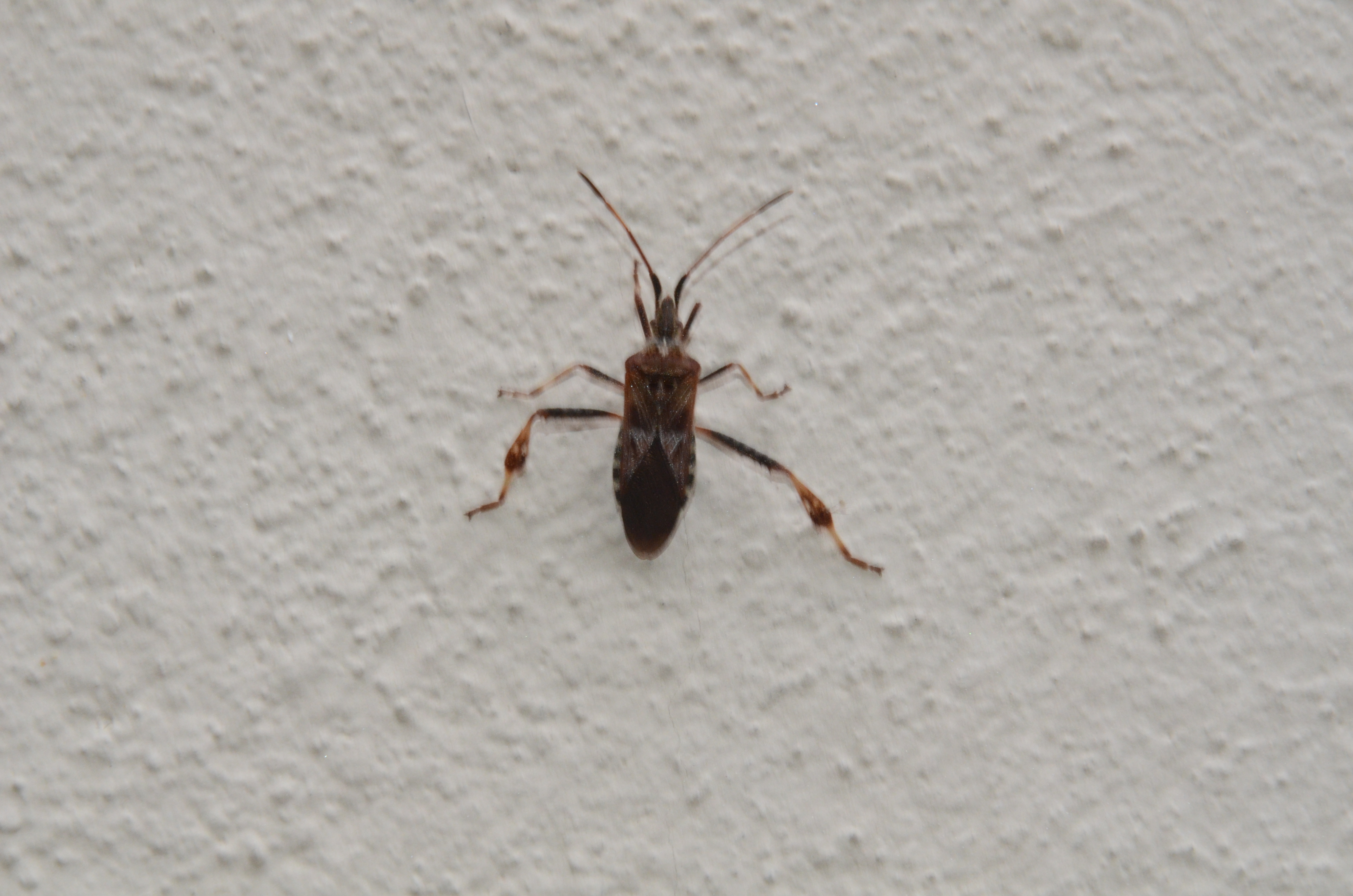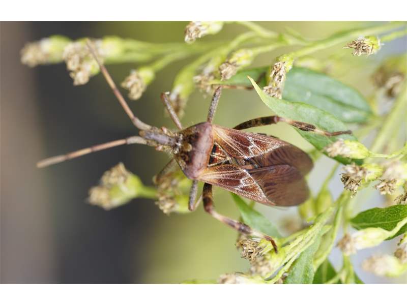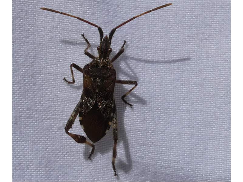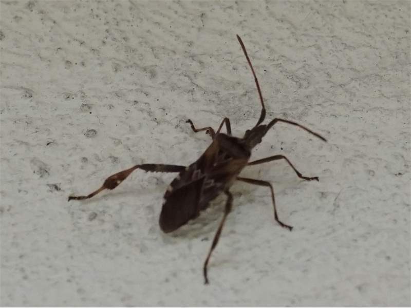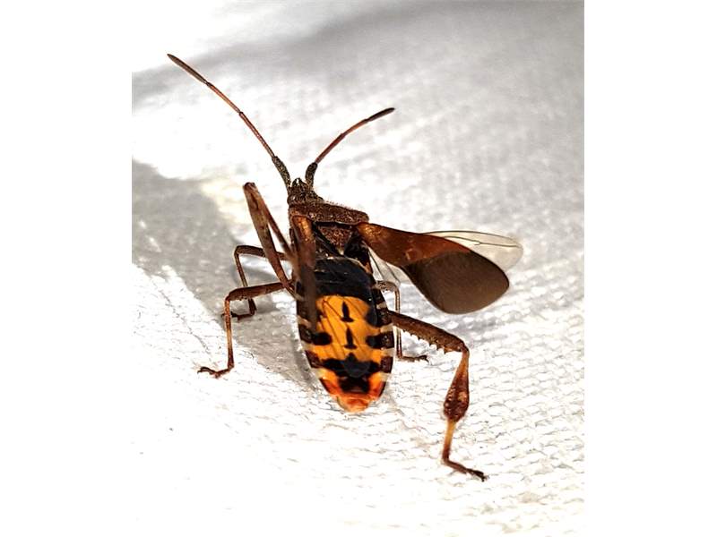 Larve der Amerikanischen Zapfenwanze ( Leptoglossus occidentalis). Deutschland, Baden-Württemberg, Baden-Baden, einzeln stehende Kiefer nord-nord-westlich Ortsteil Sandweier, 30.06.2012 (© Michael Münch)( Bild vergrößern)
