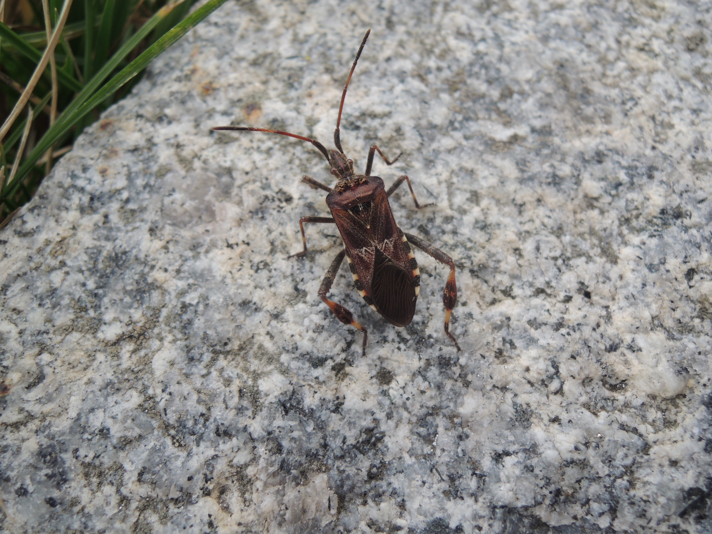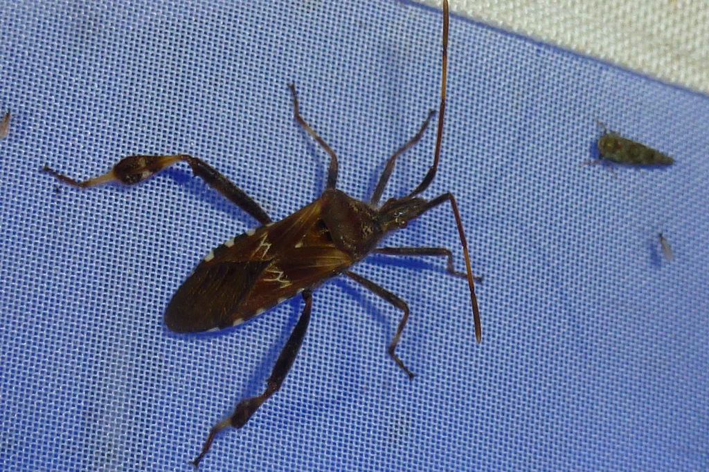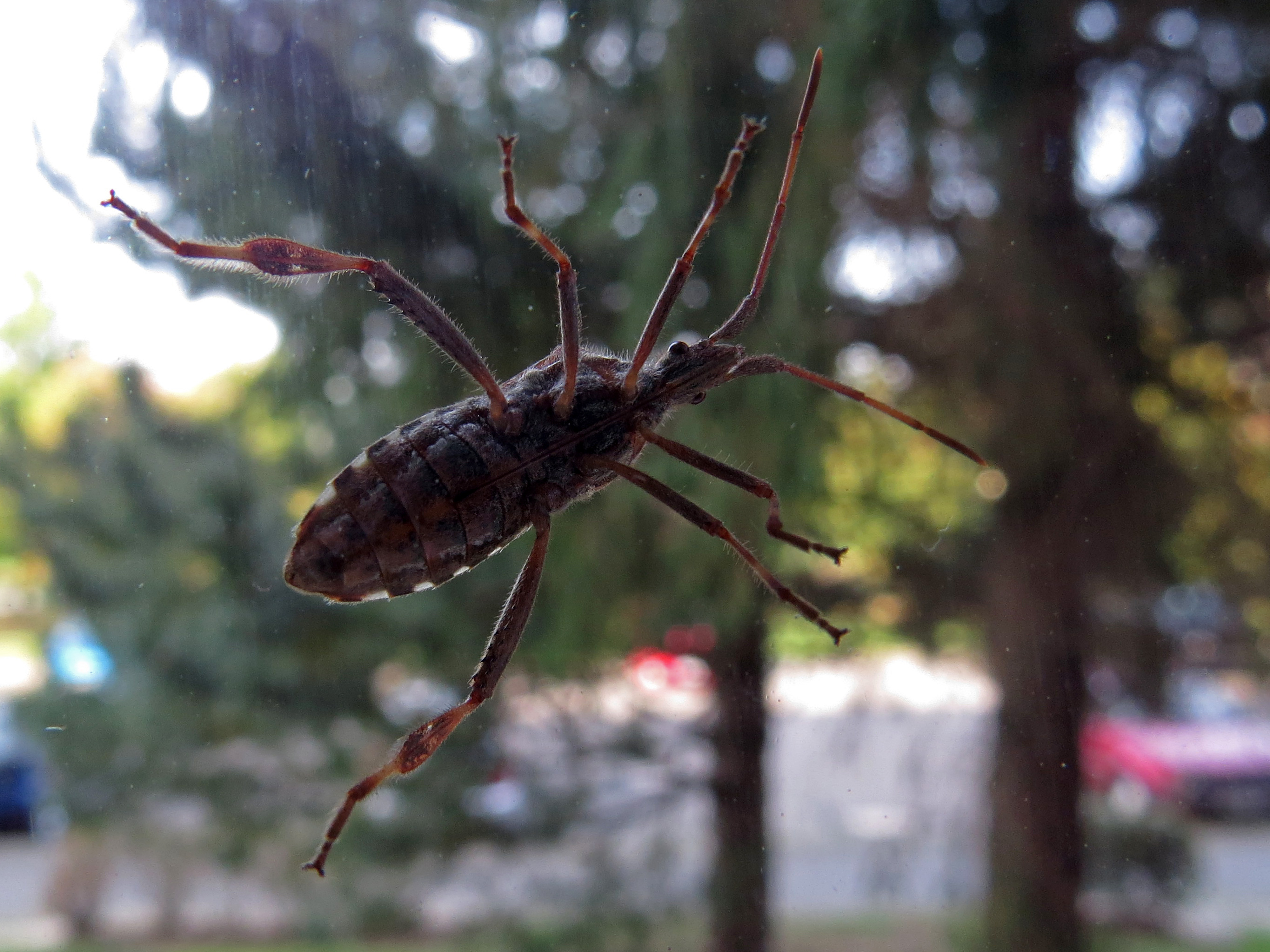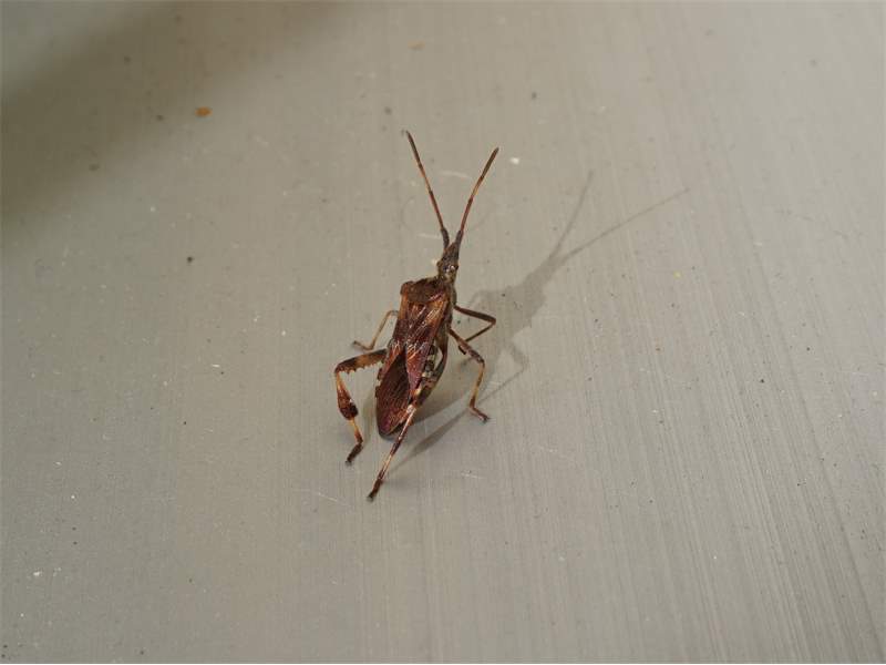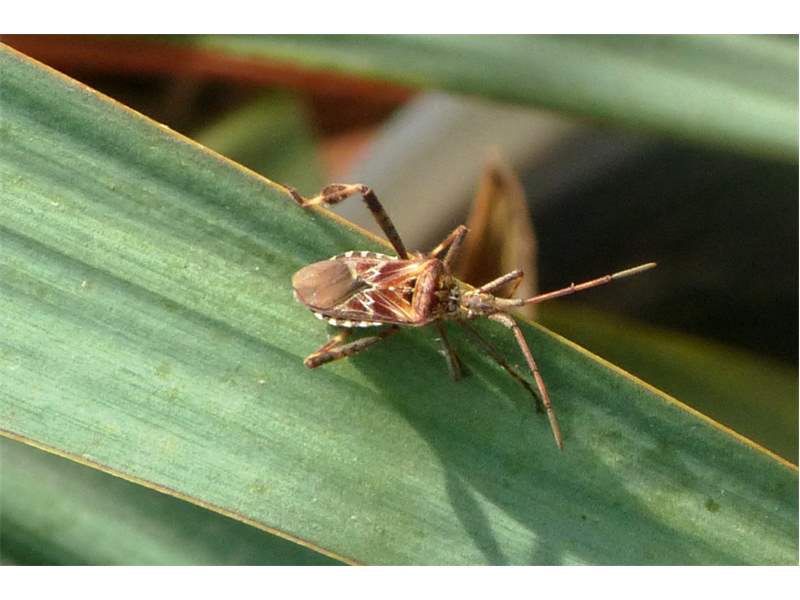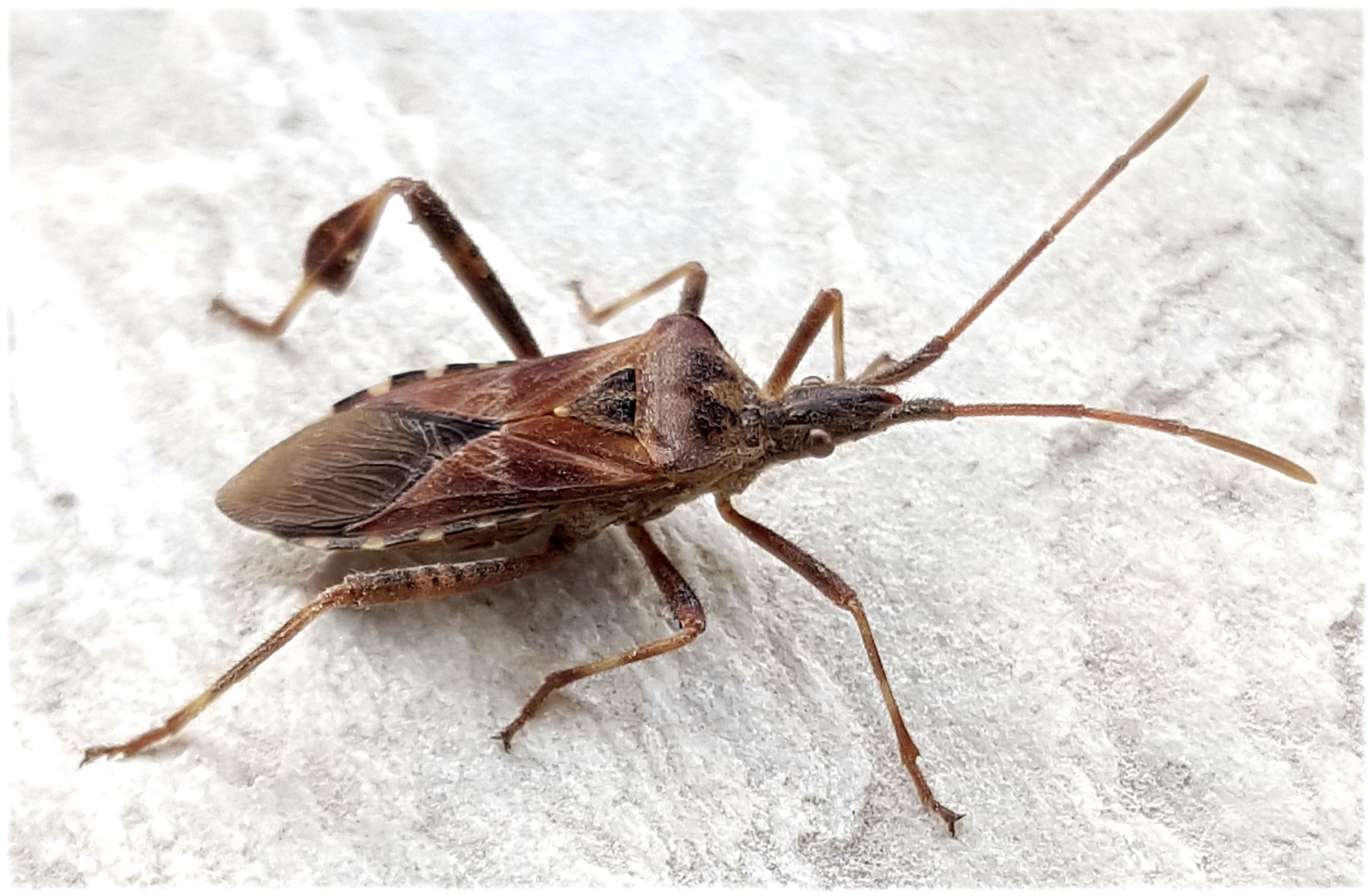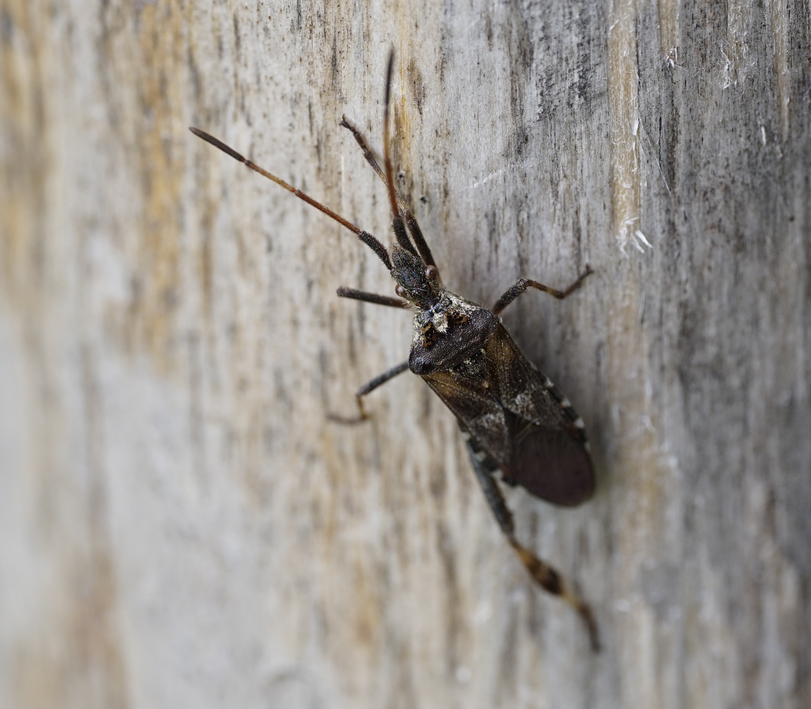 Larve der Amerikanischen Zapfenwanze ( Leptoglossus occidentalis). Deutschland, Baden-Württemberg, Baden-Baden, einzeln stehende Kiefer nord-nord-westlich Ortsteil Sandweier, 30.06.2012 (© Michael Münch)( Bild vergrößern)