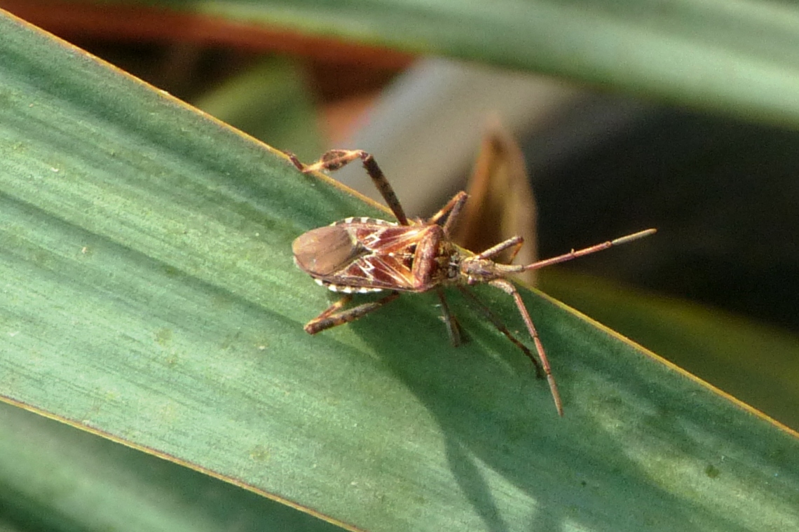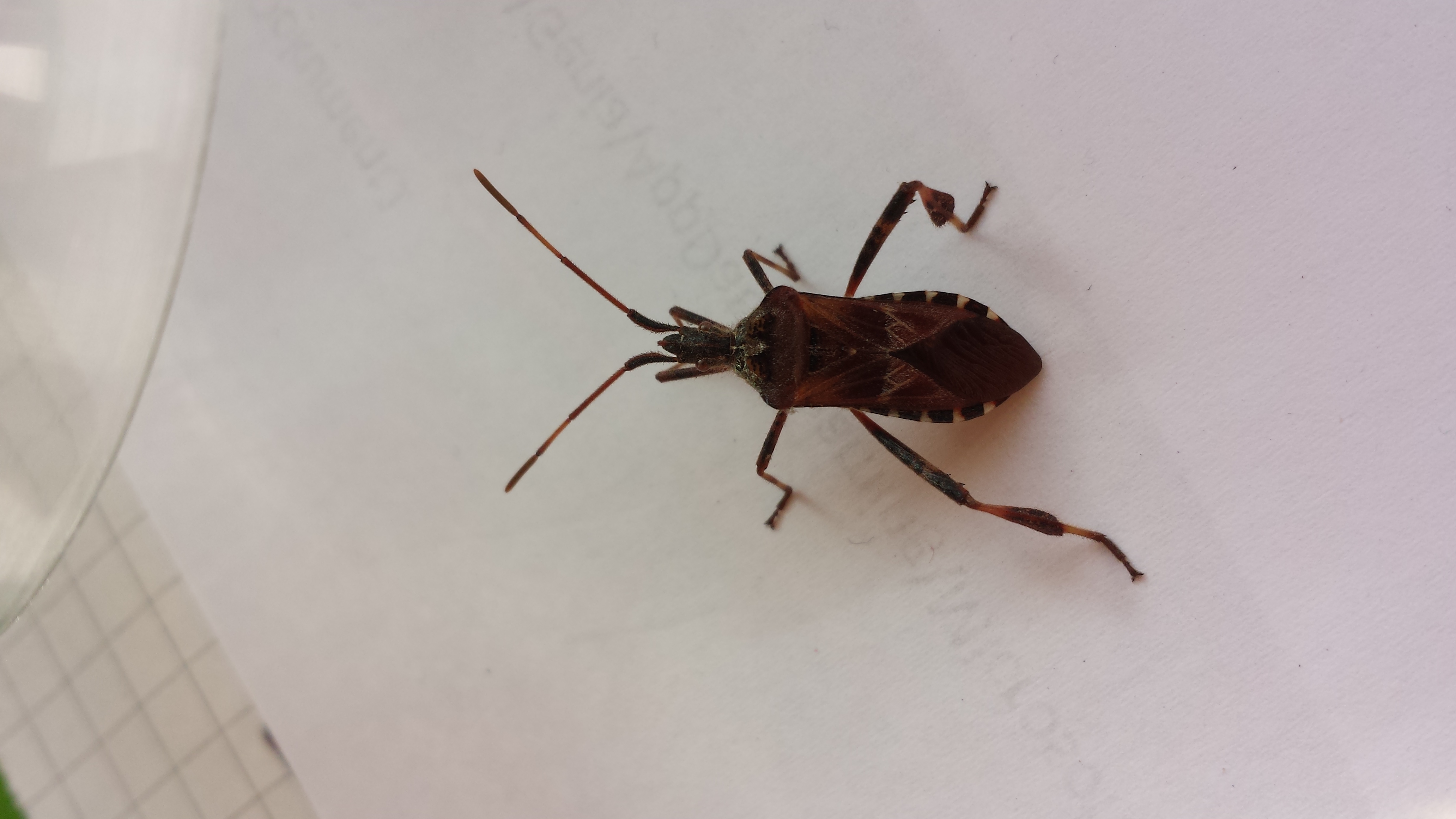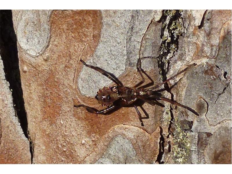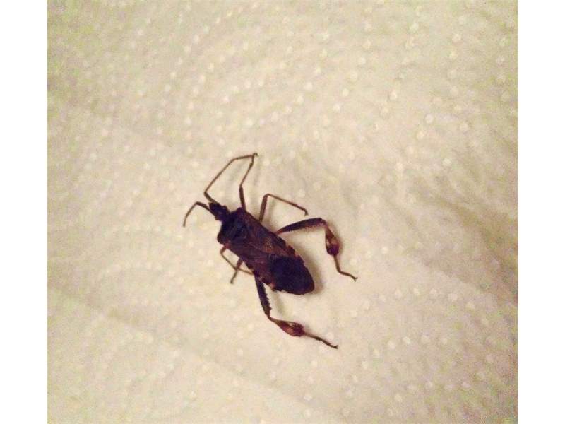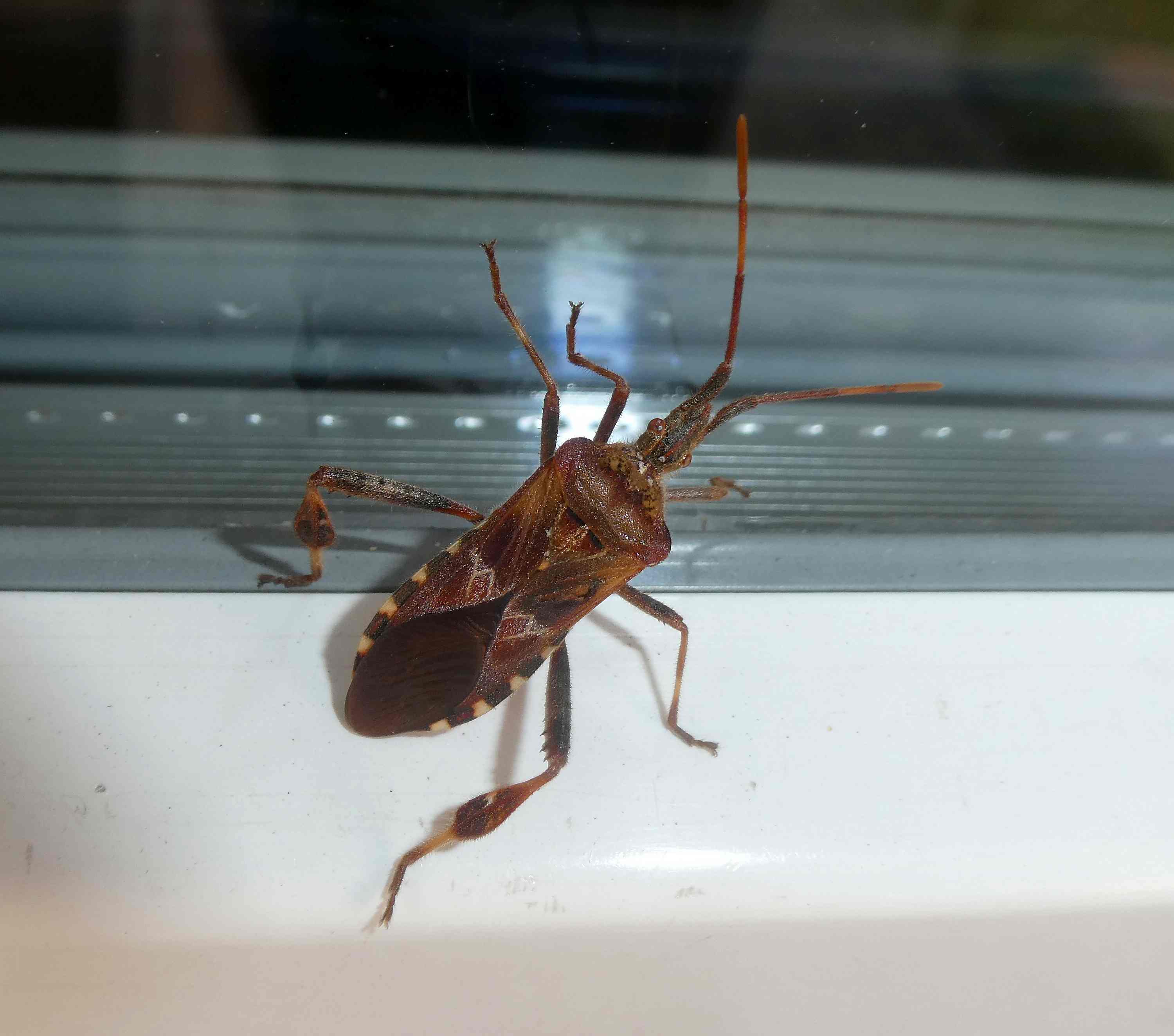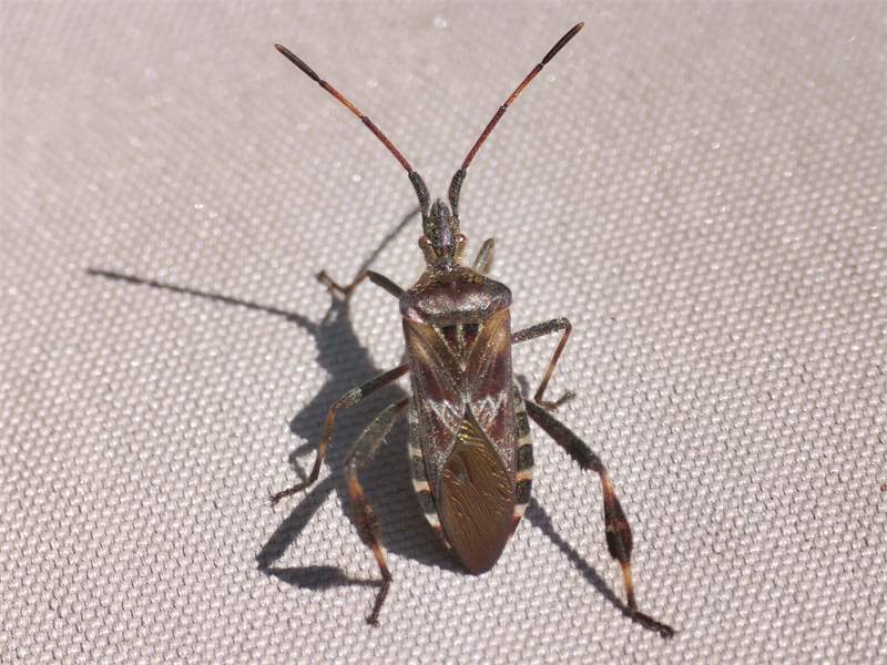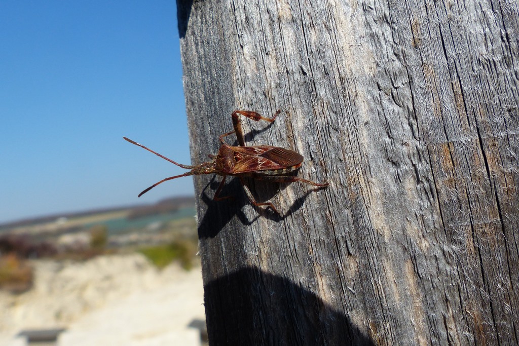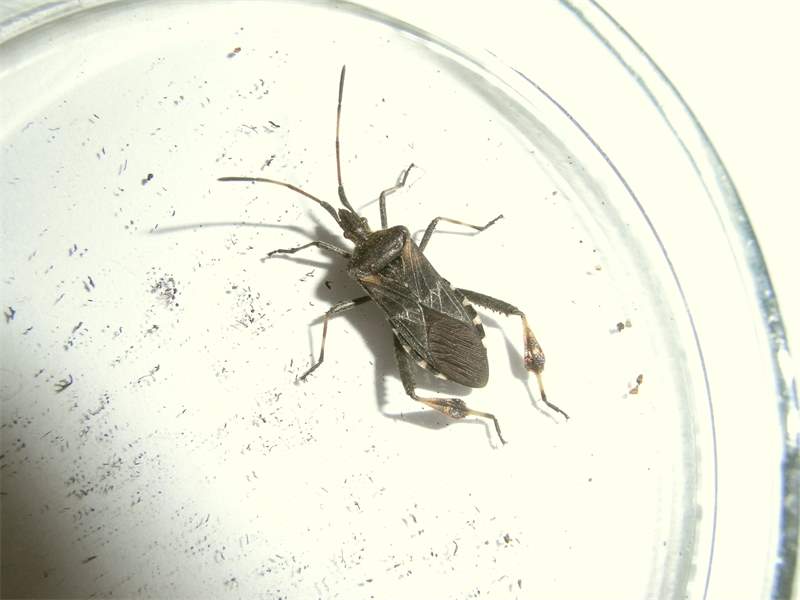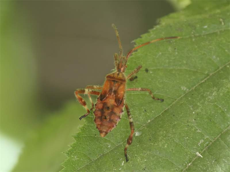 Larve der Amerikanischen Zapfenwanze ( Leptoglossus occidentalis). Deutschland, Baden-Württemberg, Baden-Baden, einzeln stehende Kiefer nord-nord-westlich Ortsteil Sandweier, 30.06.2012 (© Michael Münch)( Bild vergrößern)