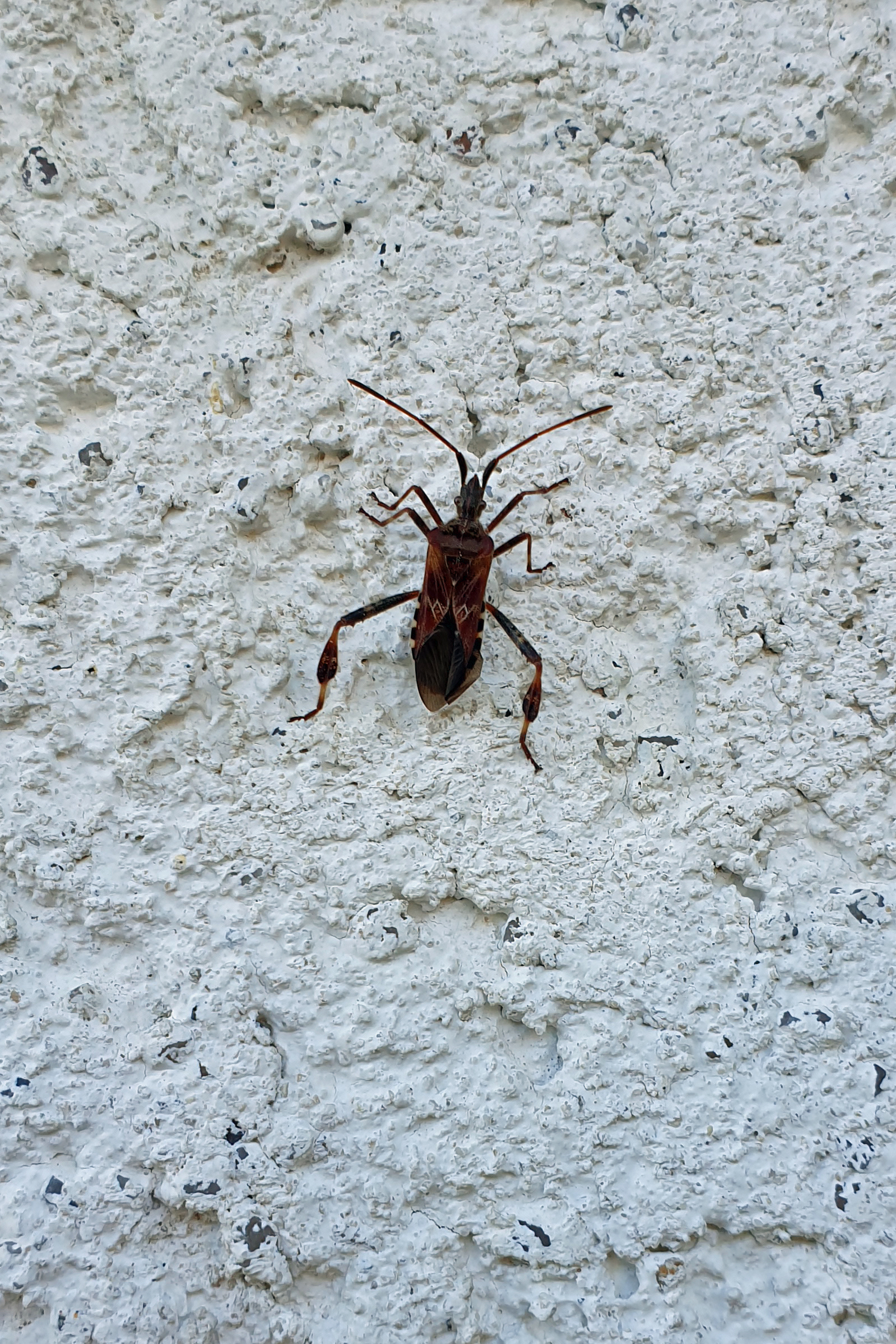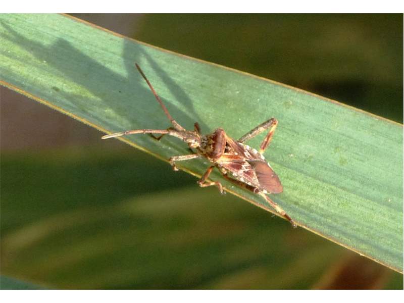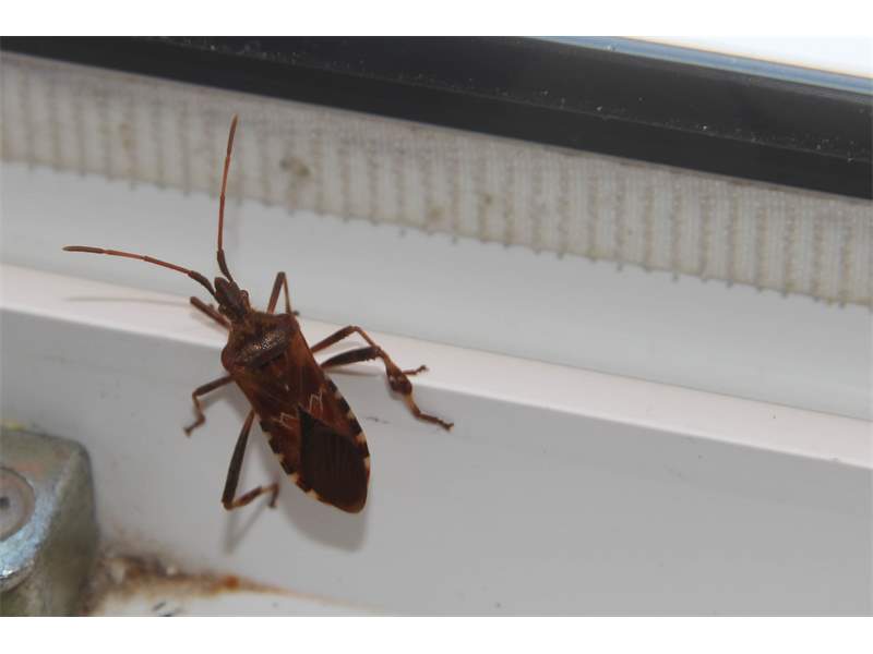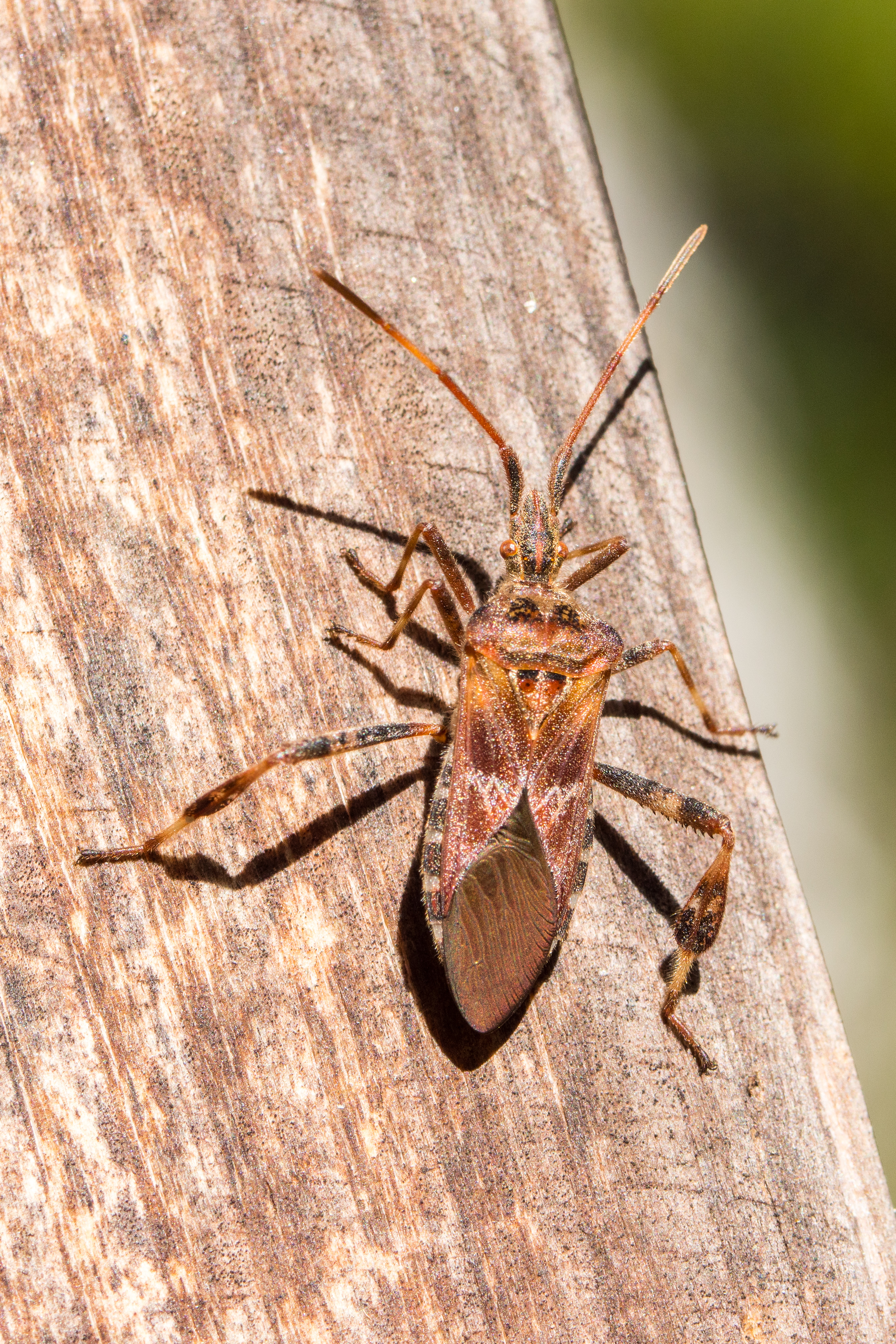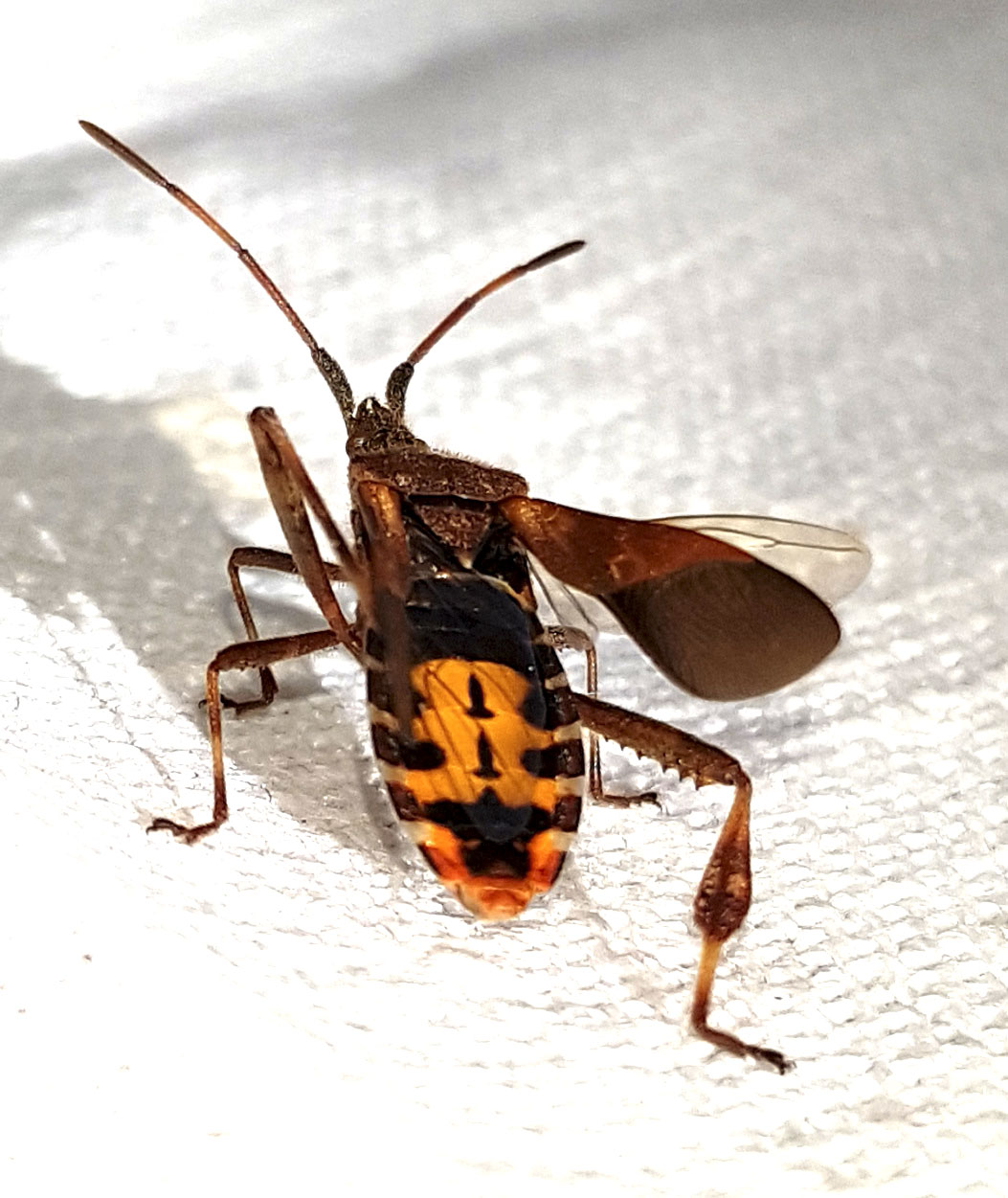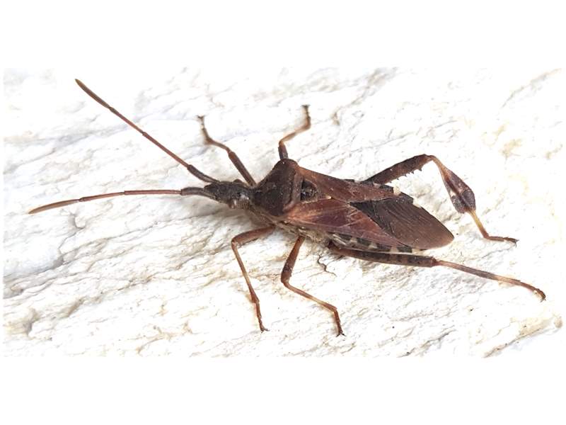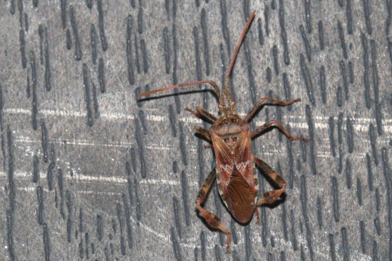Larve der Amerikanischen Zapfenwanze ( Leptoglossus occidentalis). Deutschland, Baden-Württemberg, Baden-Baden, einzeln stehende Kiefer nord-nord-westlich Ortsteil Sandweier, 30.06.2012 (© Michael Münch)( Bild vergrößern)