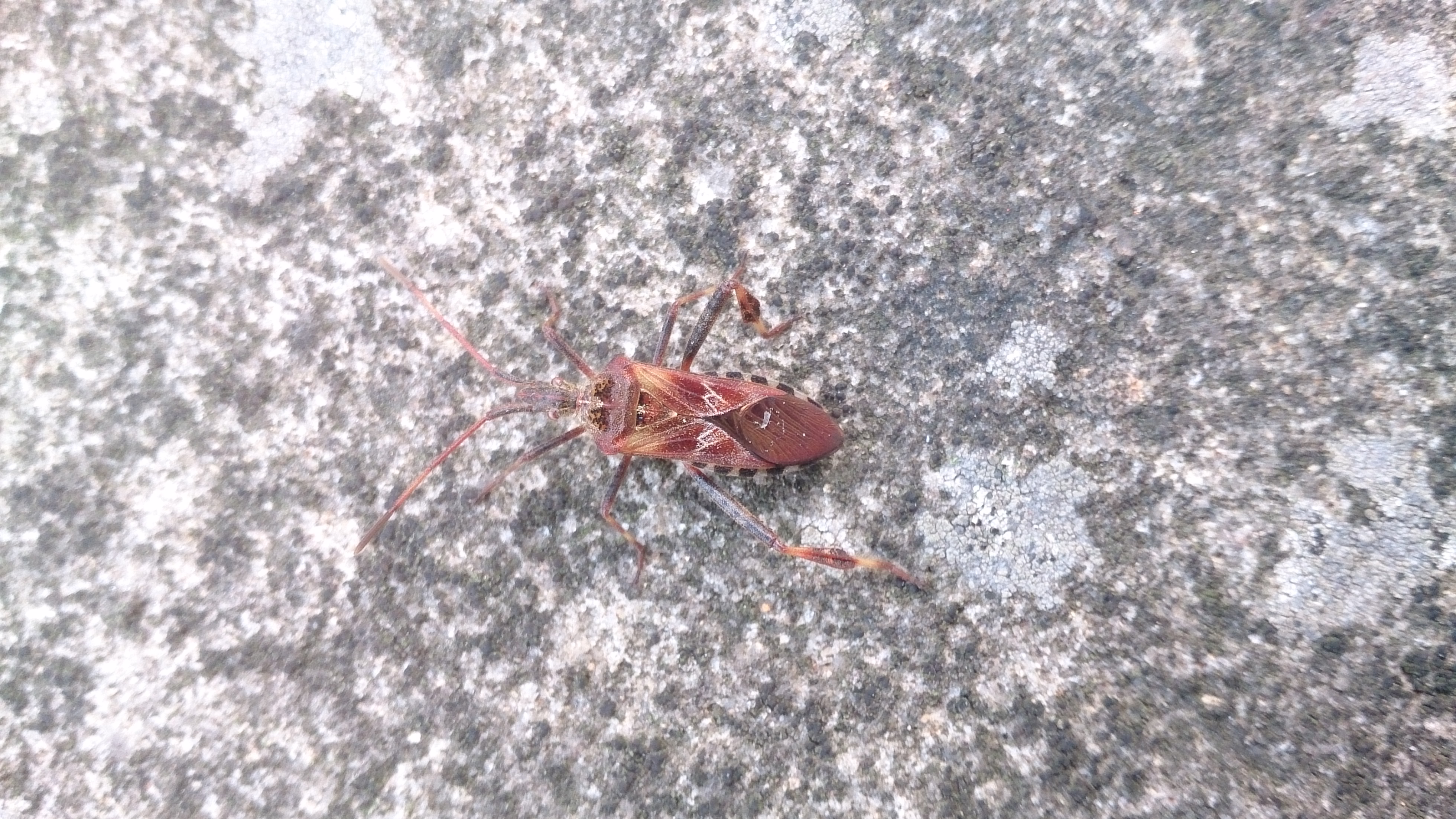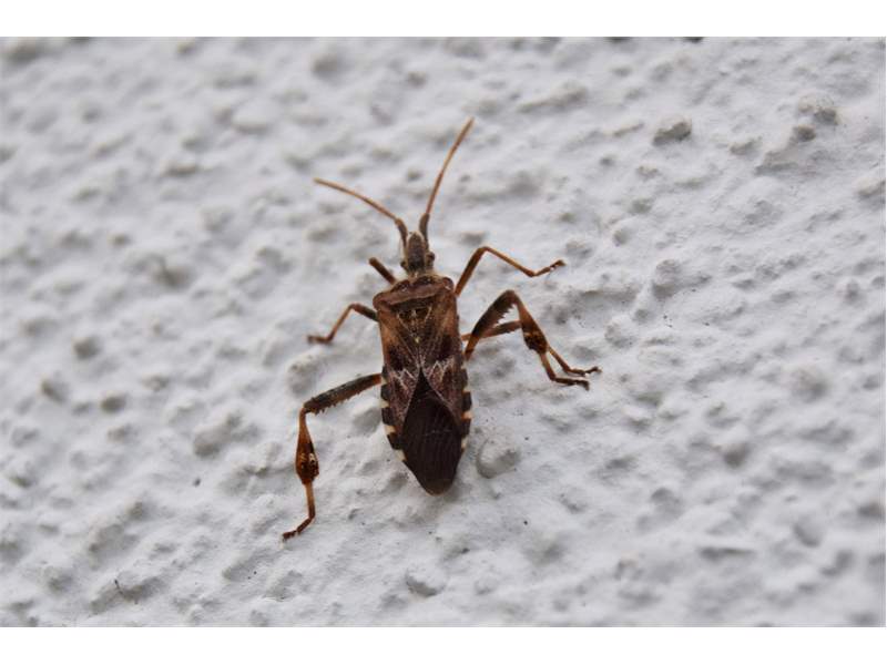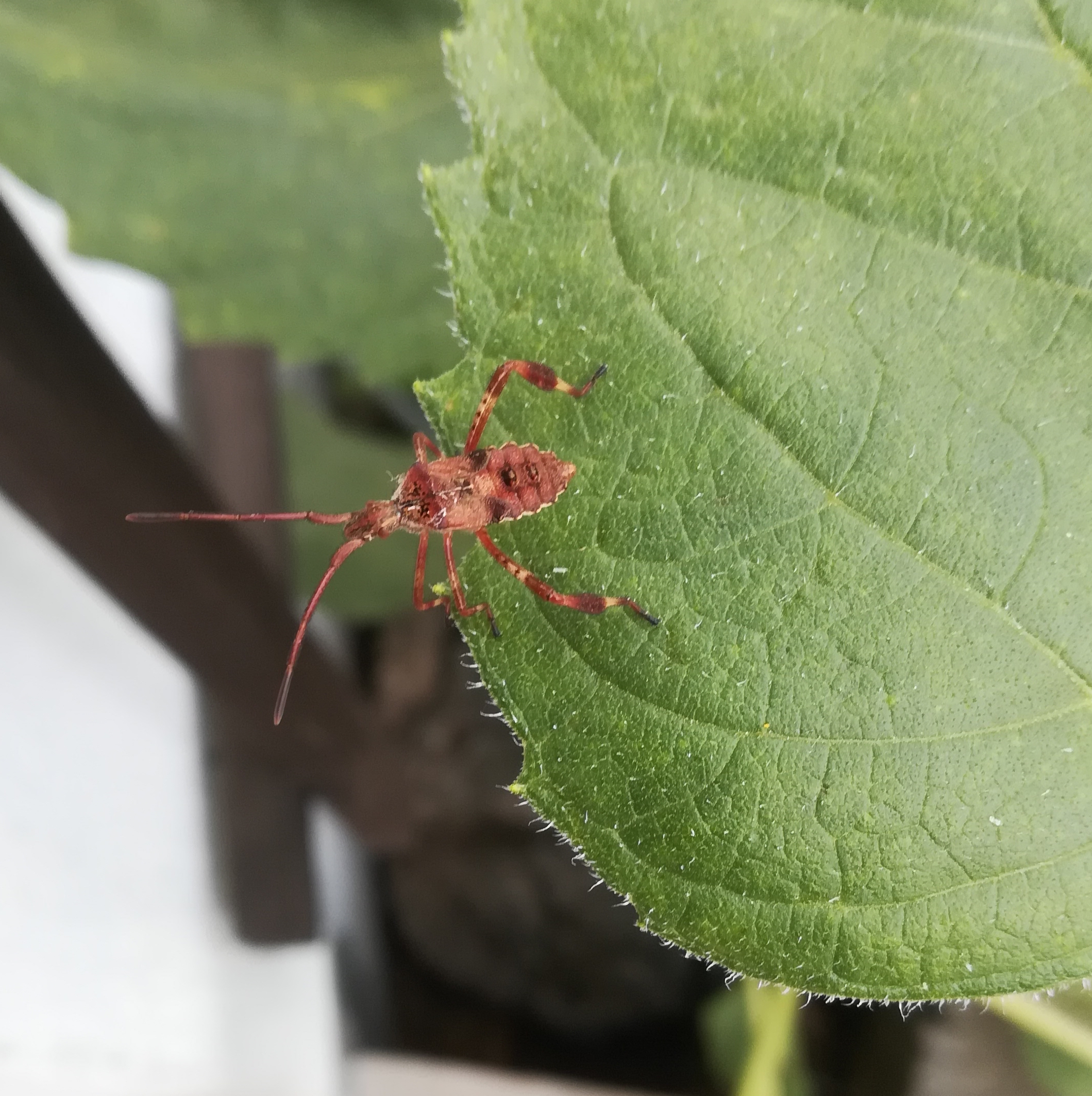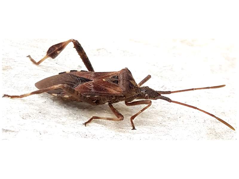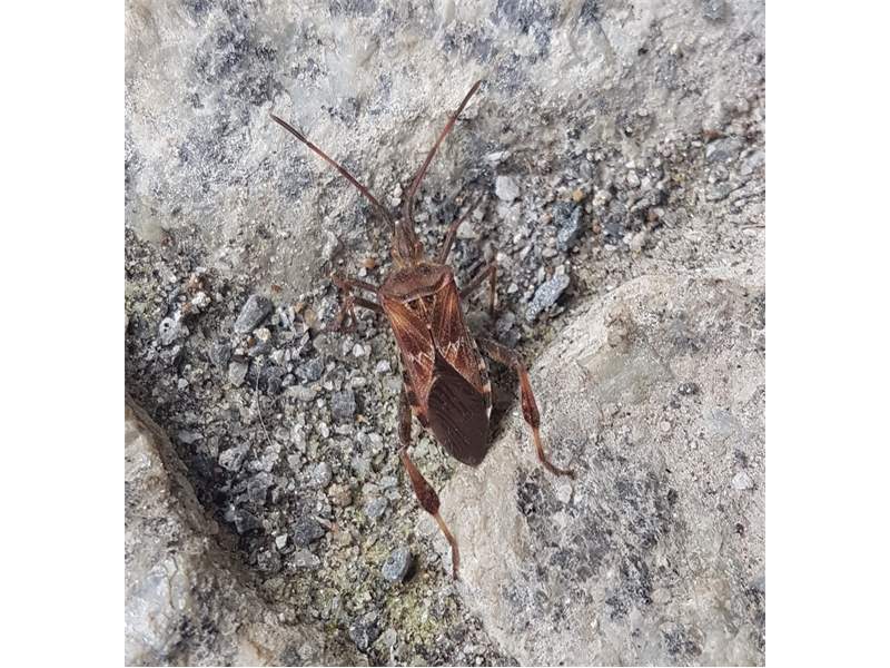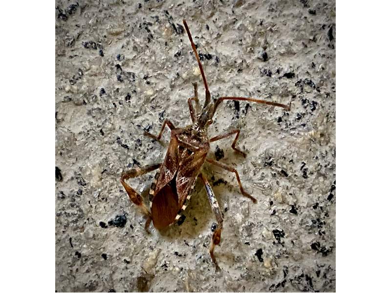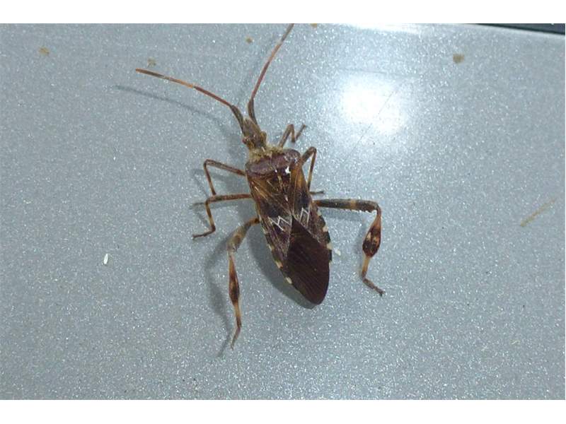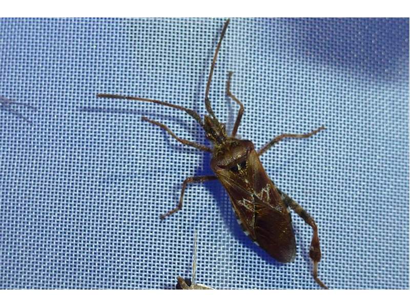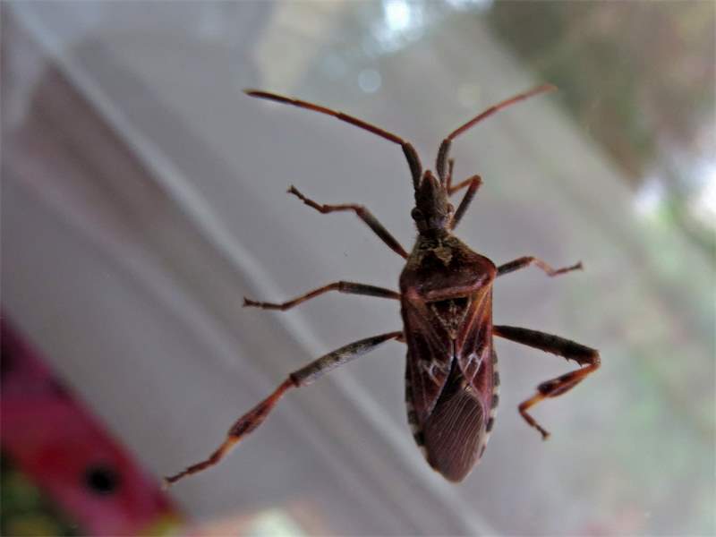 Larve der Amerikanischen Zapfenwanze ( Leptoglossus occidentalis). Deutschland, Baden-Württemberg, Baden-Baden, einzeln stehende Kiefer nord-nord-westlich Ortsteil Sandweier, 30.06.2012 (© Michael Münch)( Bild vergrößern)
