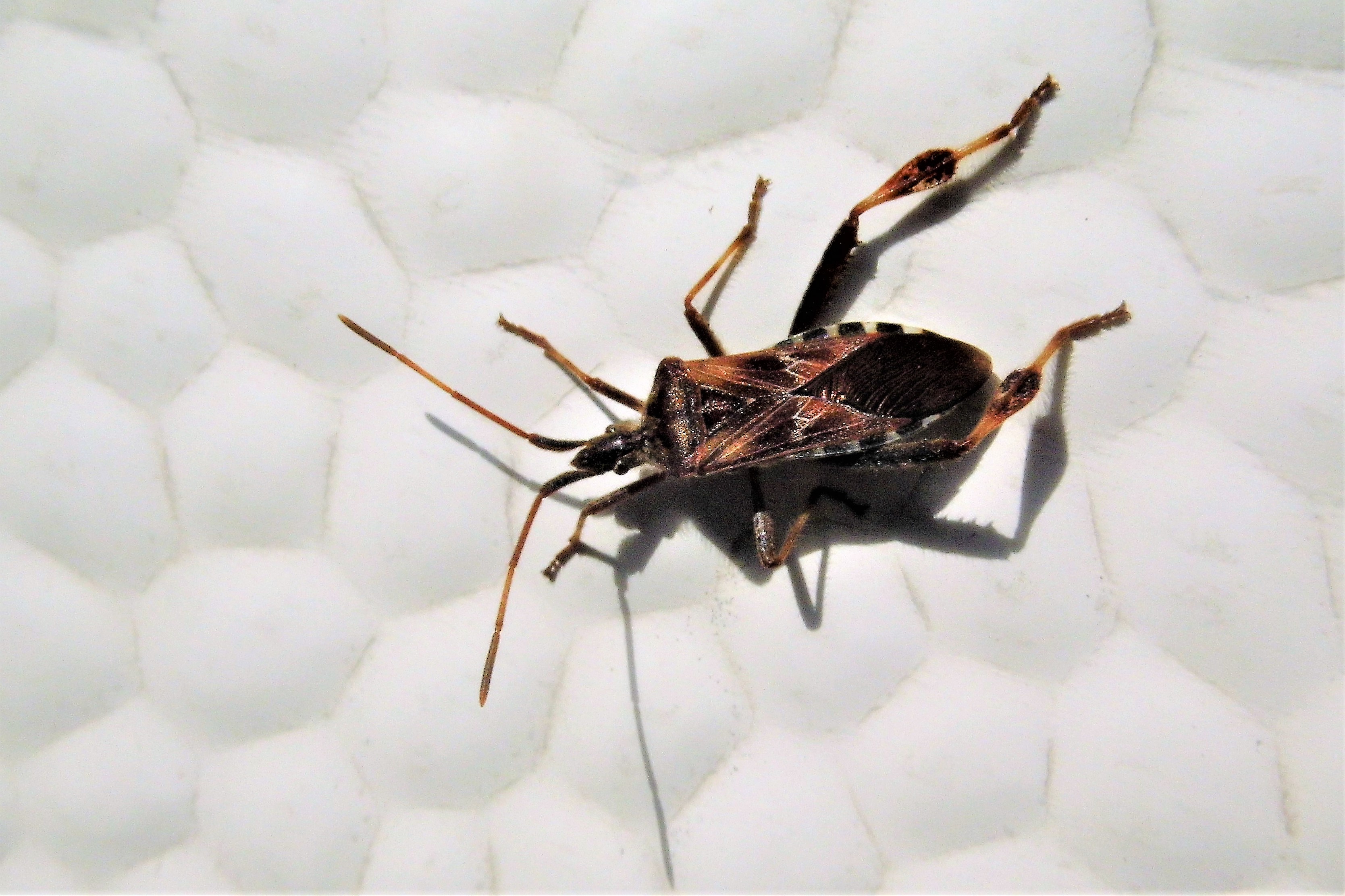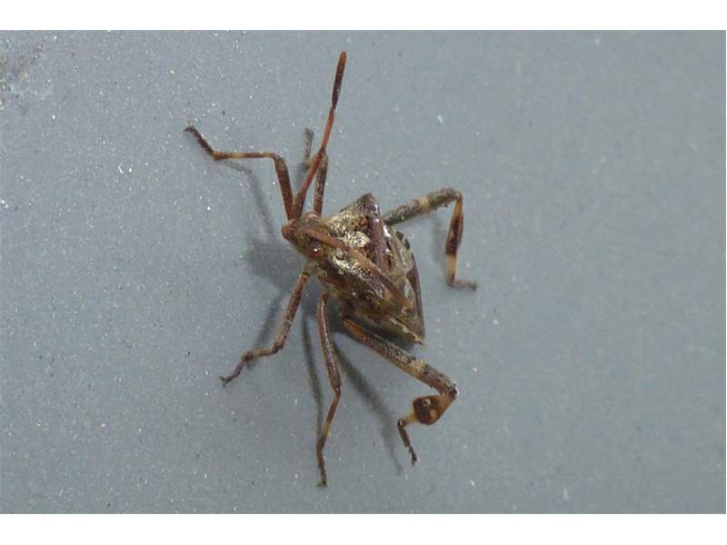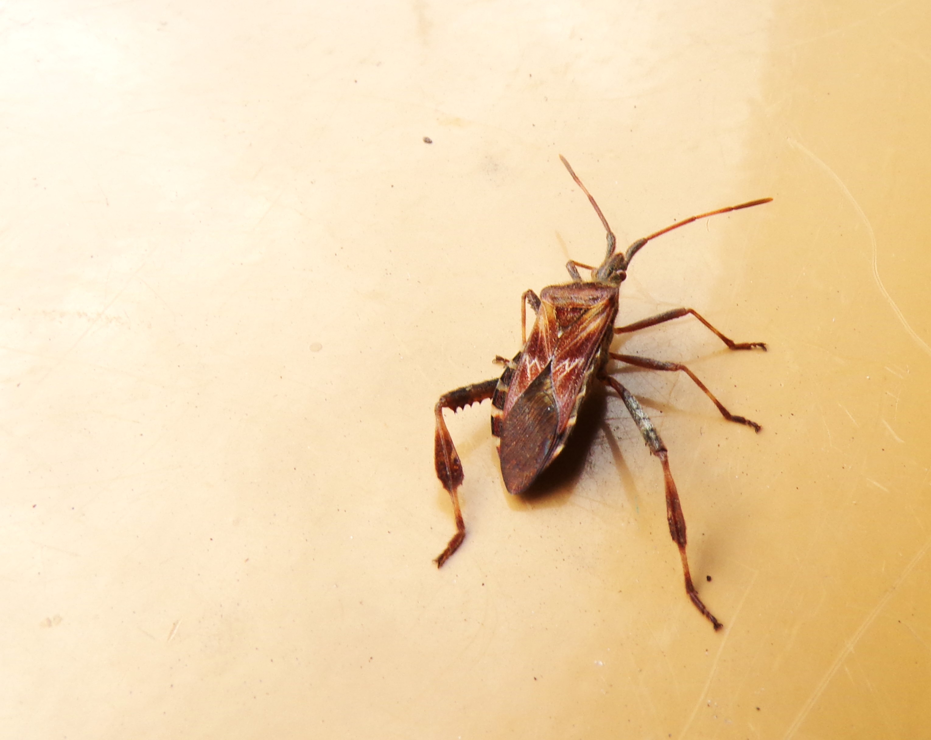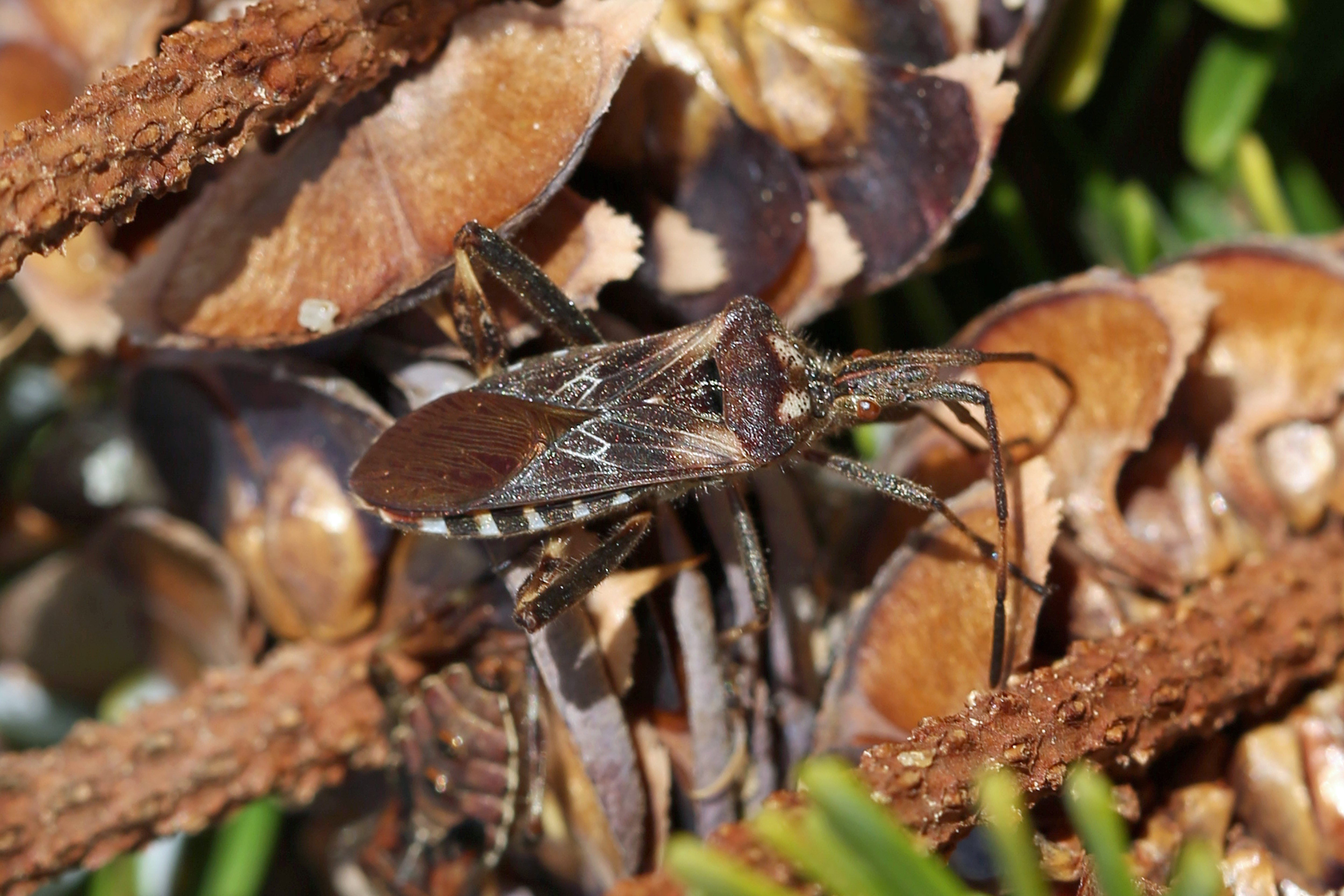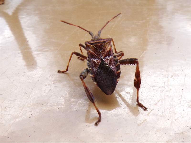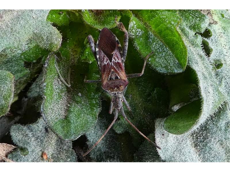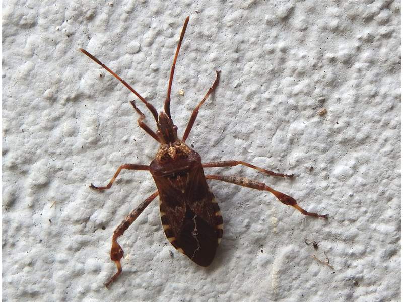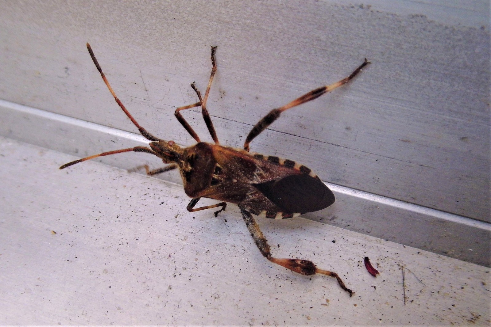 Larve der Amerikanischen Zapfenwanze ( Leptoglossus occidentalis). Deutschland, Baden-Württemberg, Baden-Baden, einzeln stehende Kiefer nord-nord-westlich Ortsteil Sandweier, 30.06.2012 (© Michael Münch)( Bild vergrößern)