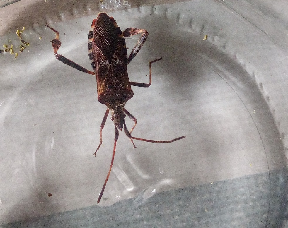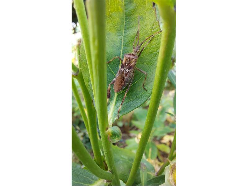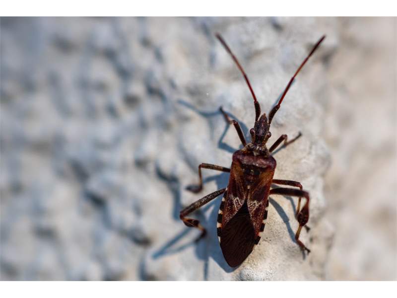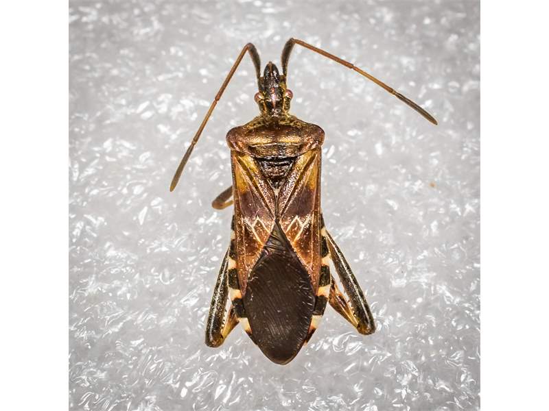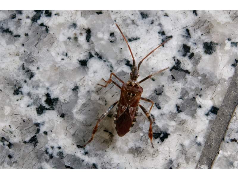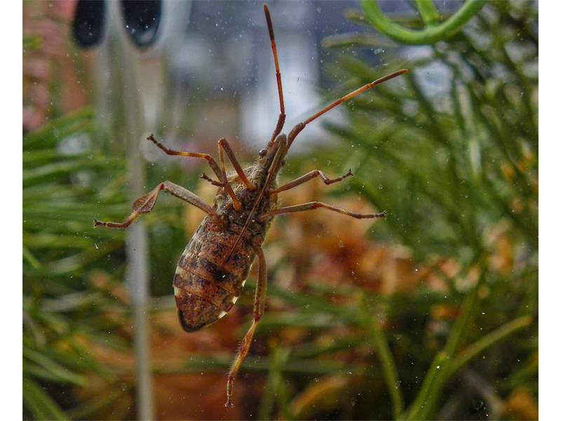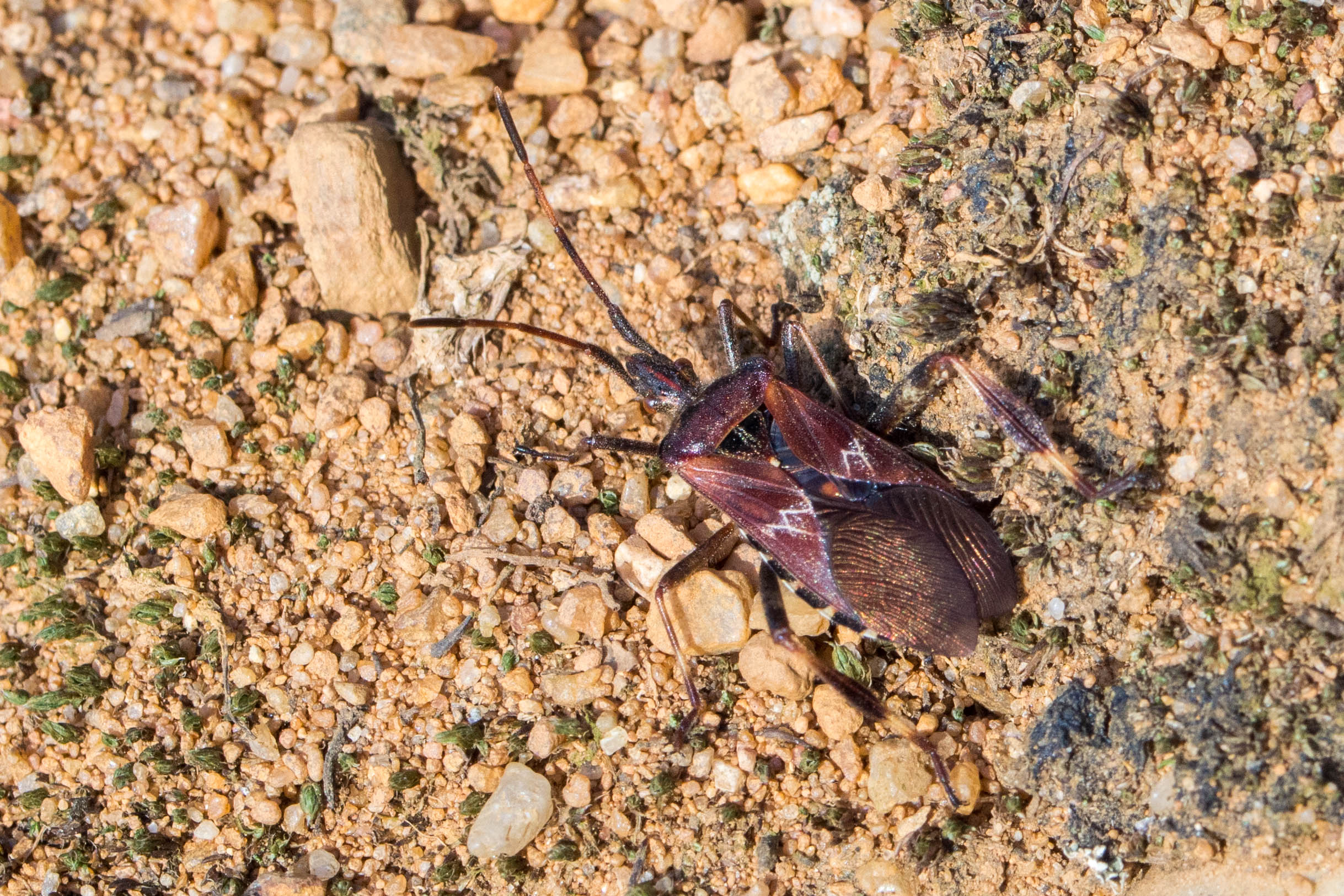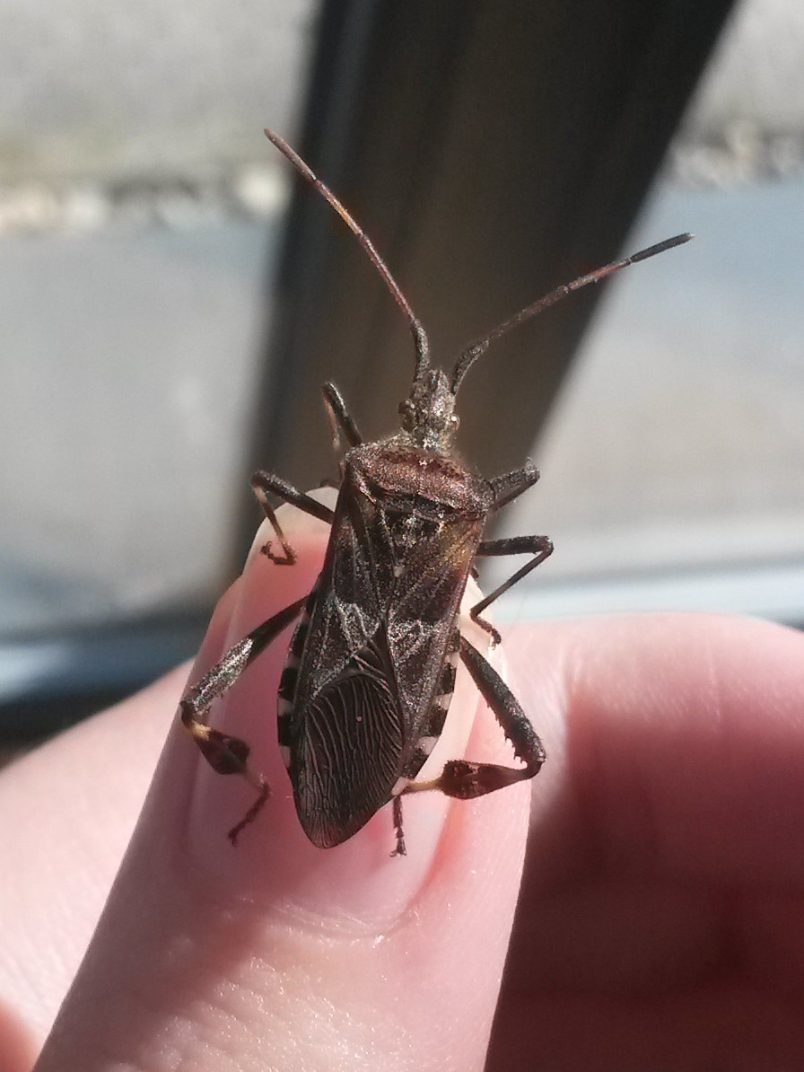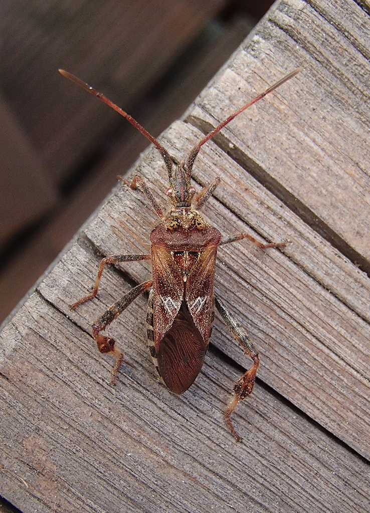 Larve der Amerikanischen Zapfenwanze ( Leptoglossus occidentalis). Deutschland, Baden-Württemberg, Baden-Baden, einzeln stehende Kiefer nord-nord-westlich Ortsteil Sandweier, 30.06.2012 (© Michael Münch)( Bild vergrößern)