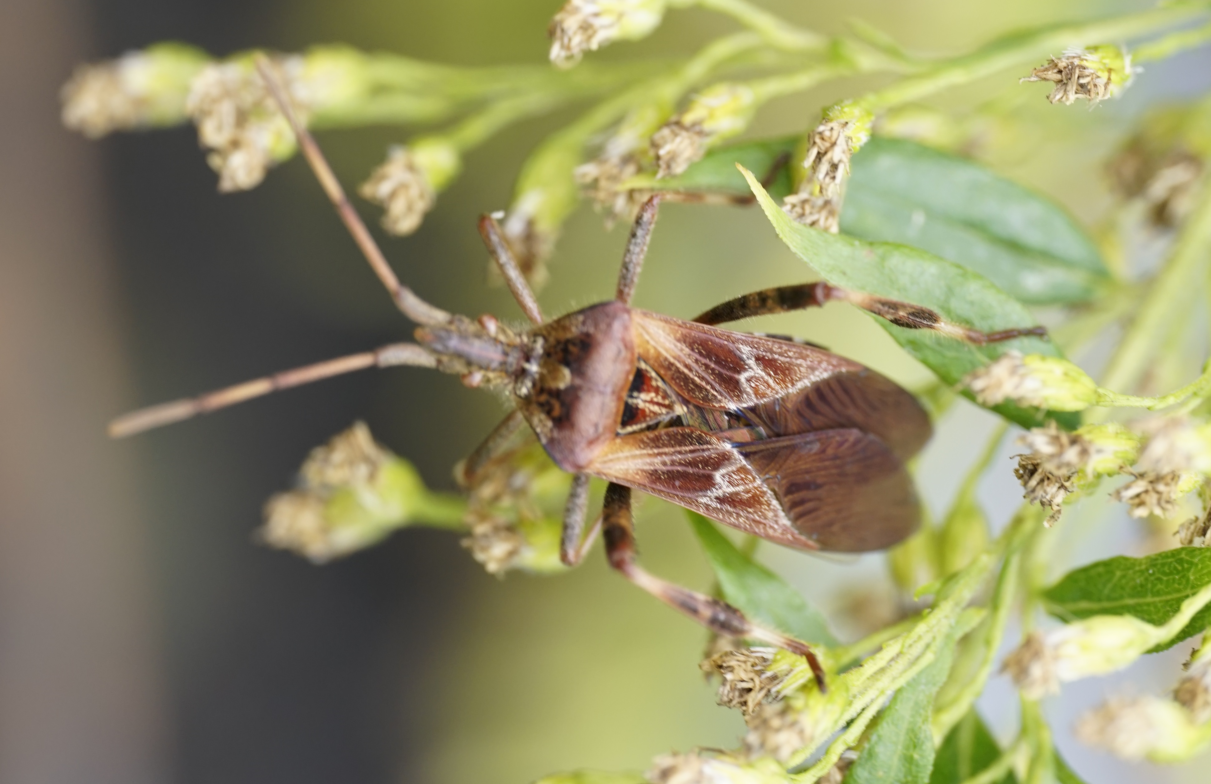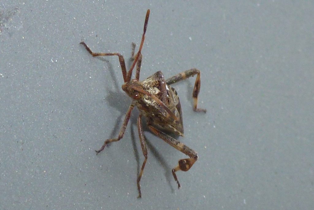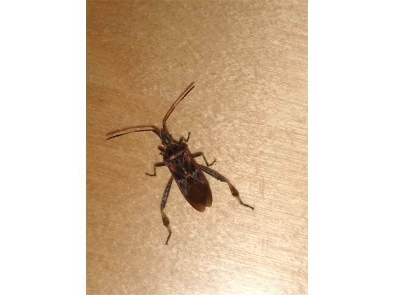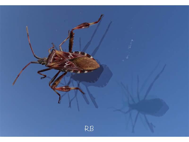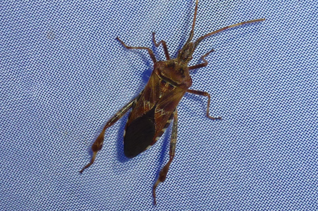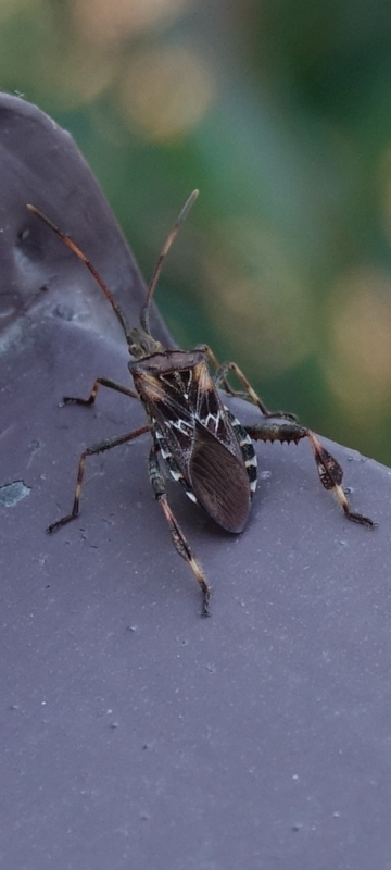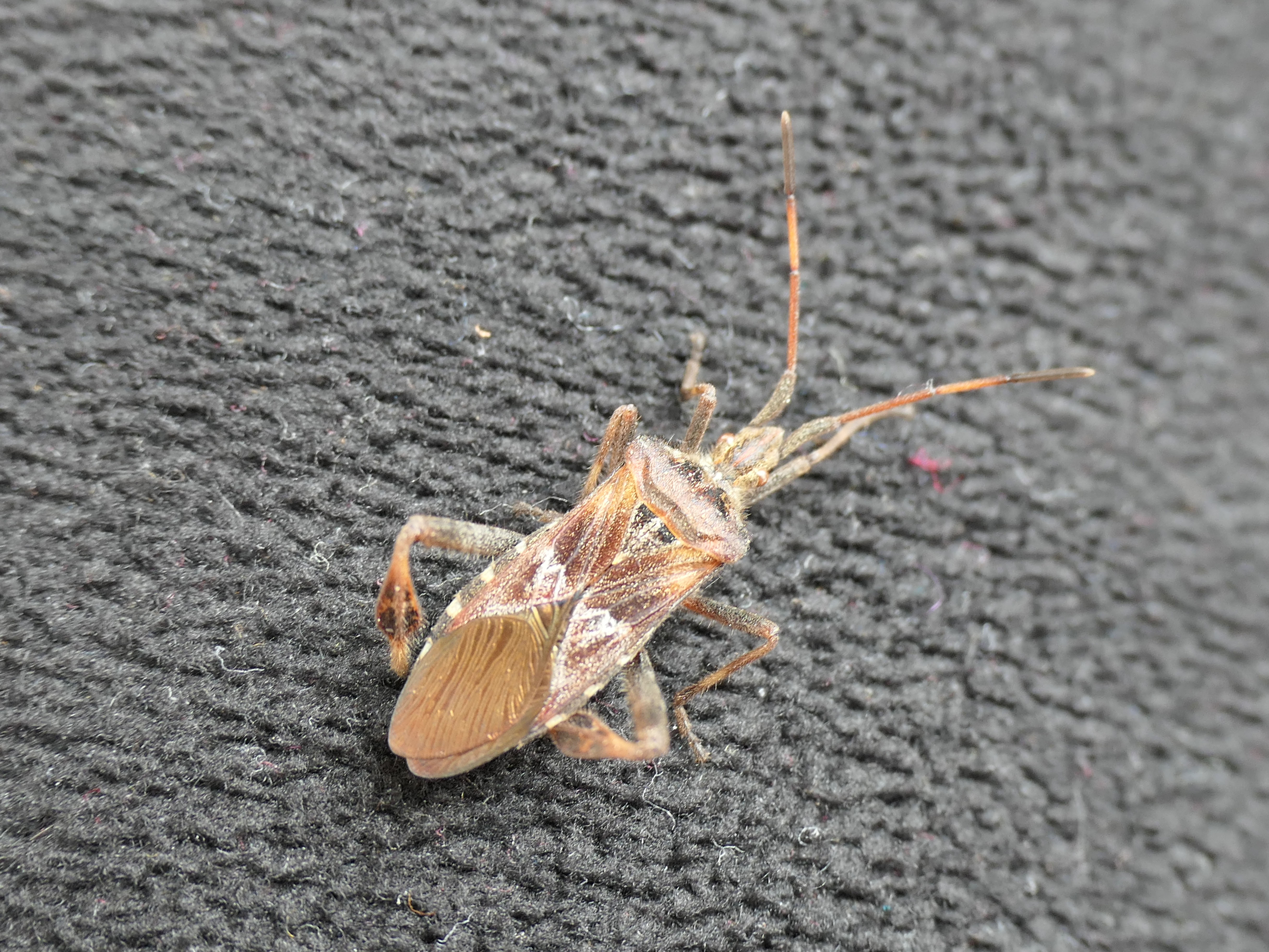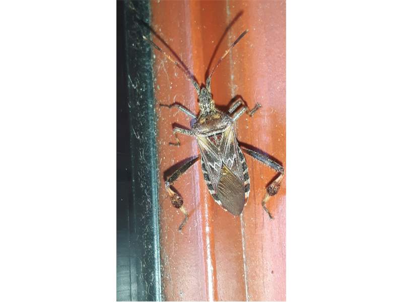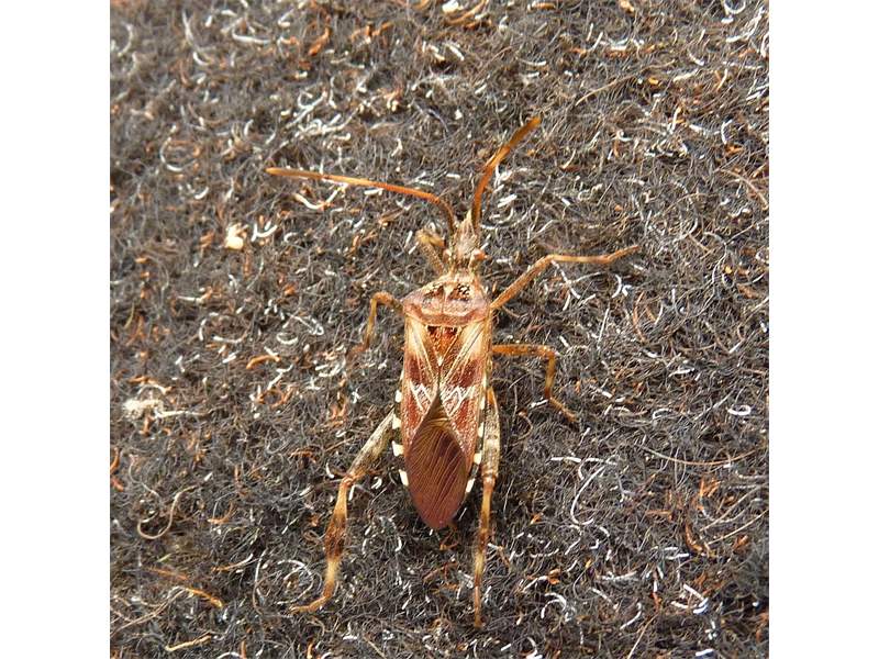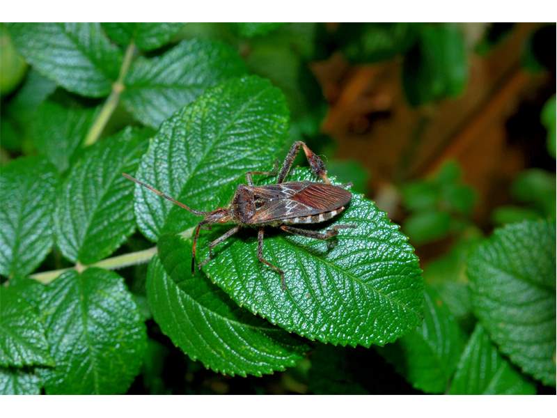 Larve der Amerikanischen Zapfenwanze ( Leptoglossus occidentalis). Deutschland, Baden-Württemberg, Baden-Baden, einzeln stehende Kiefer nord-nord-westlich Ortsteil Sandweier, 30.06.2012 (© Michael Münch)( Bild vergrößern)