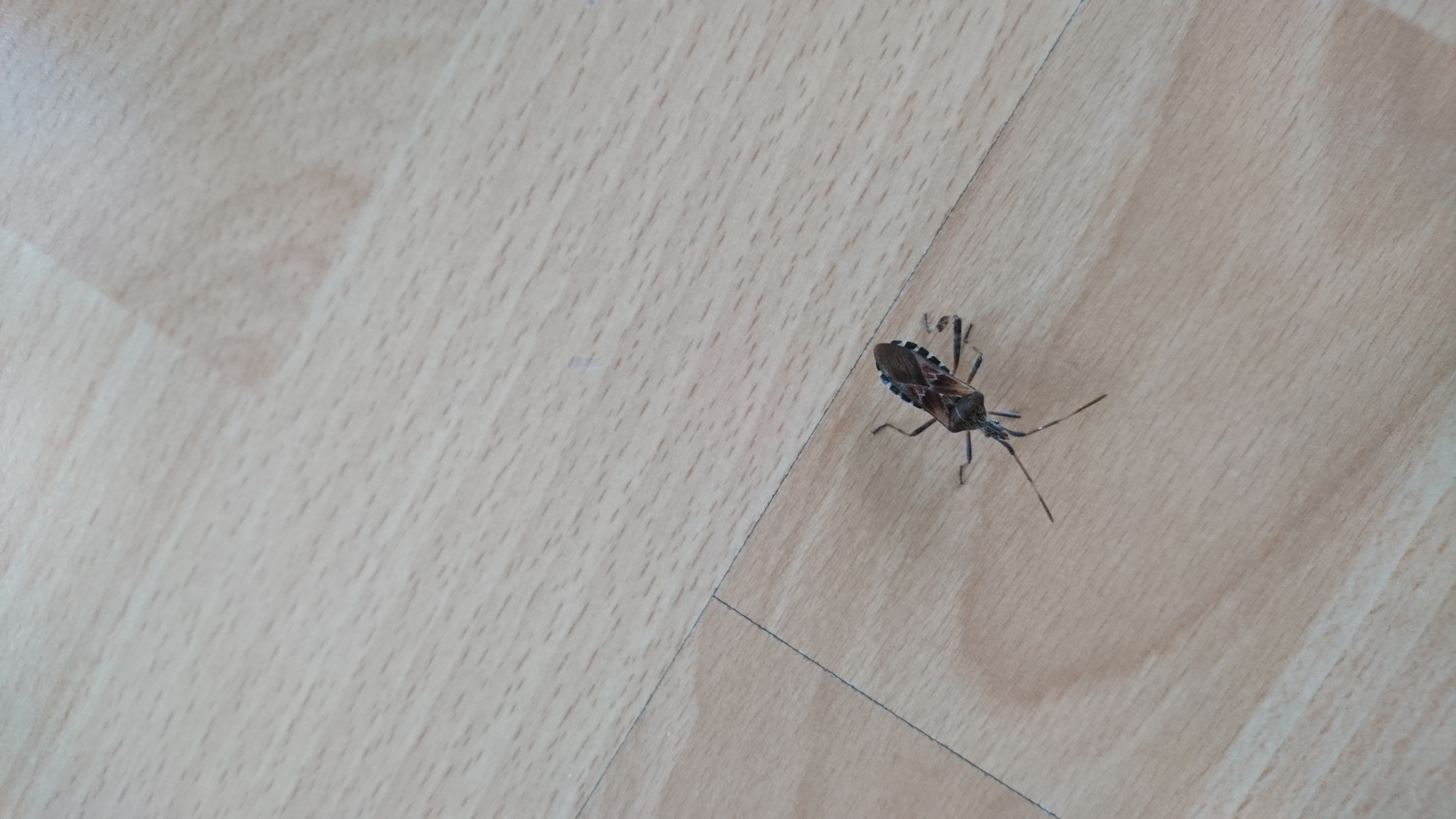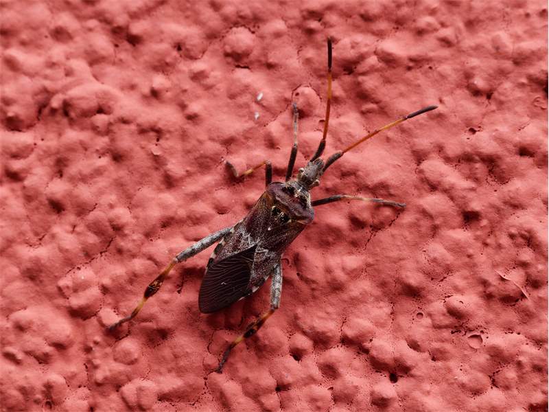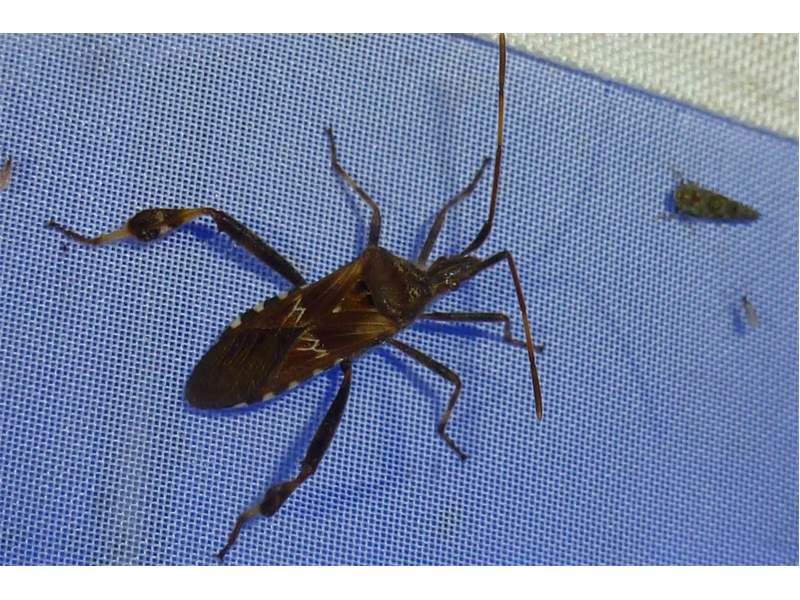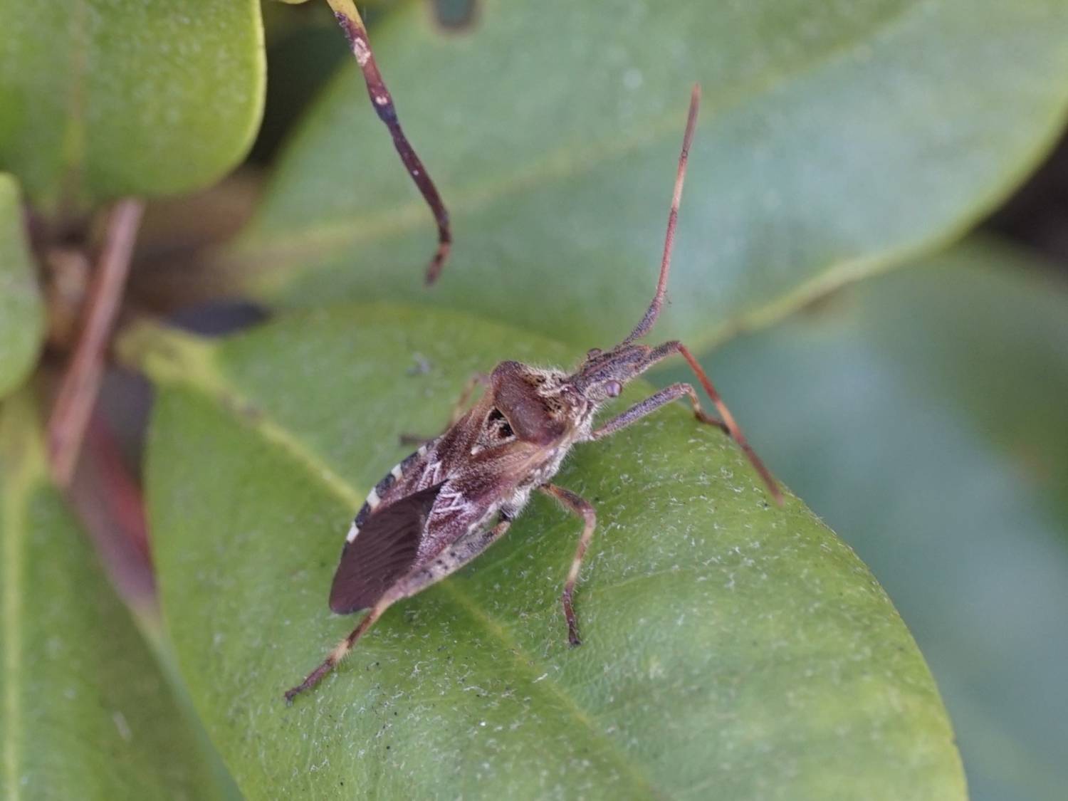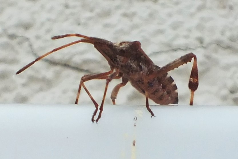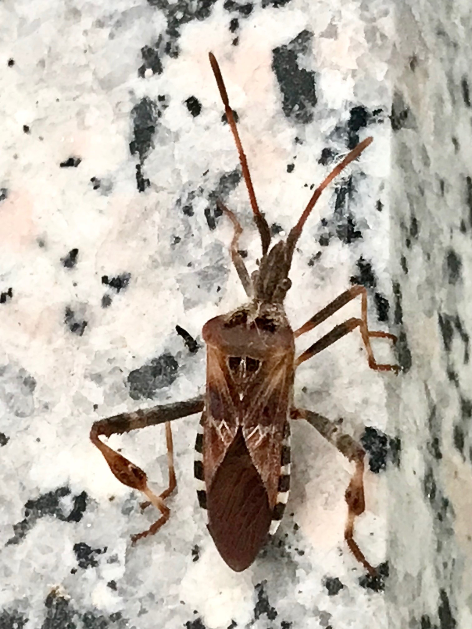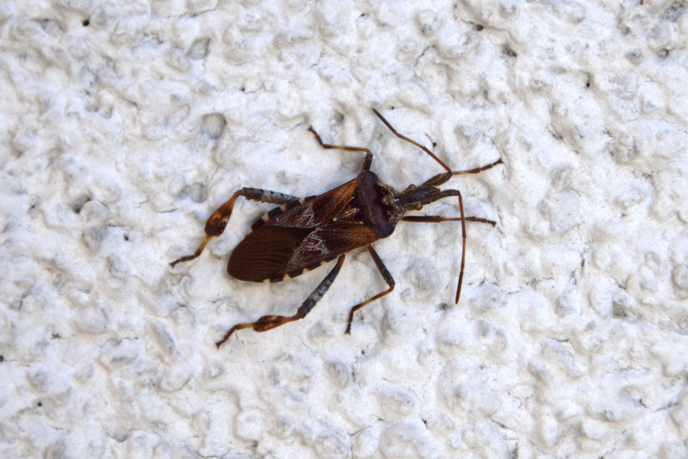 Larve der Amerikanischen Zapfenwanze ( Leptoglossus occidentalis). Deutschland, Baden-Württemberg, Baden-Baden, einzeln stehende Kiefer nord-nord-westlich Ortsteil Sandweier, 30.06.2012 (© Michael Münch)( Bild vergrößern)