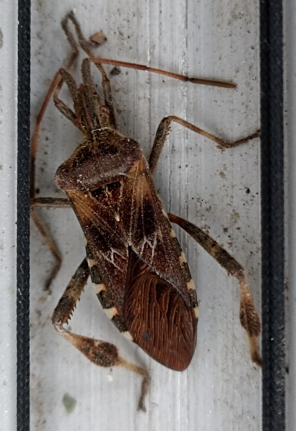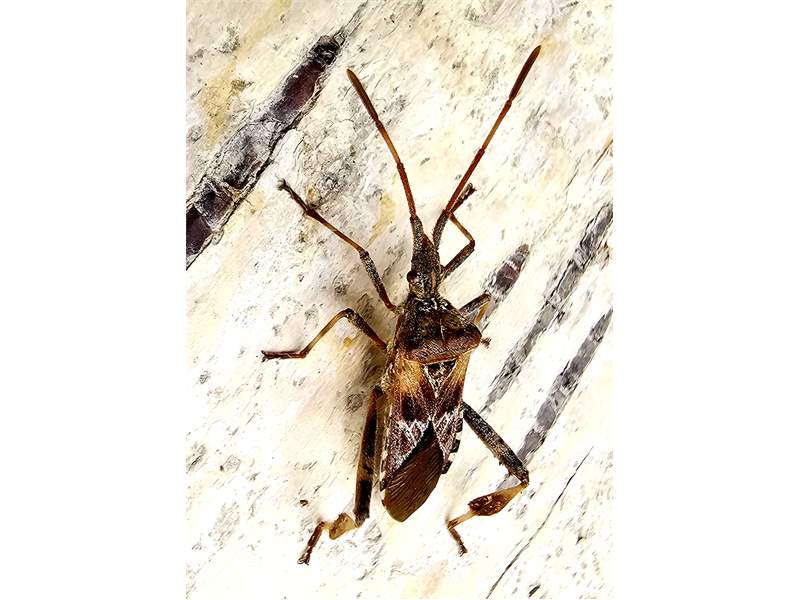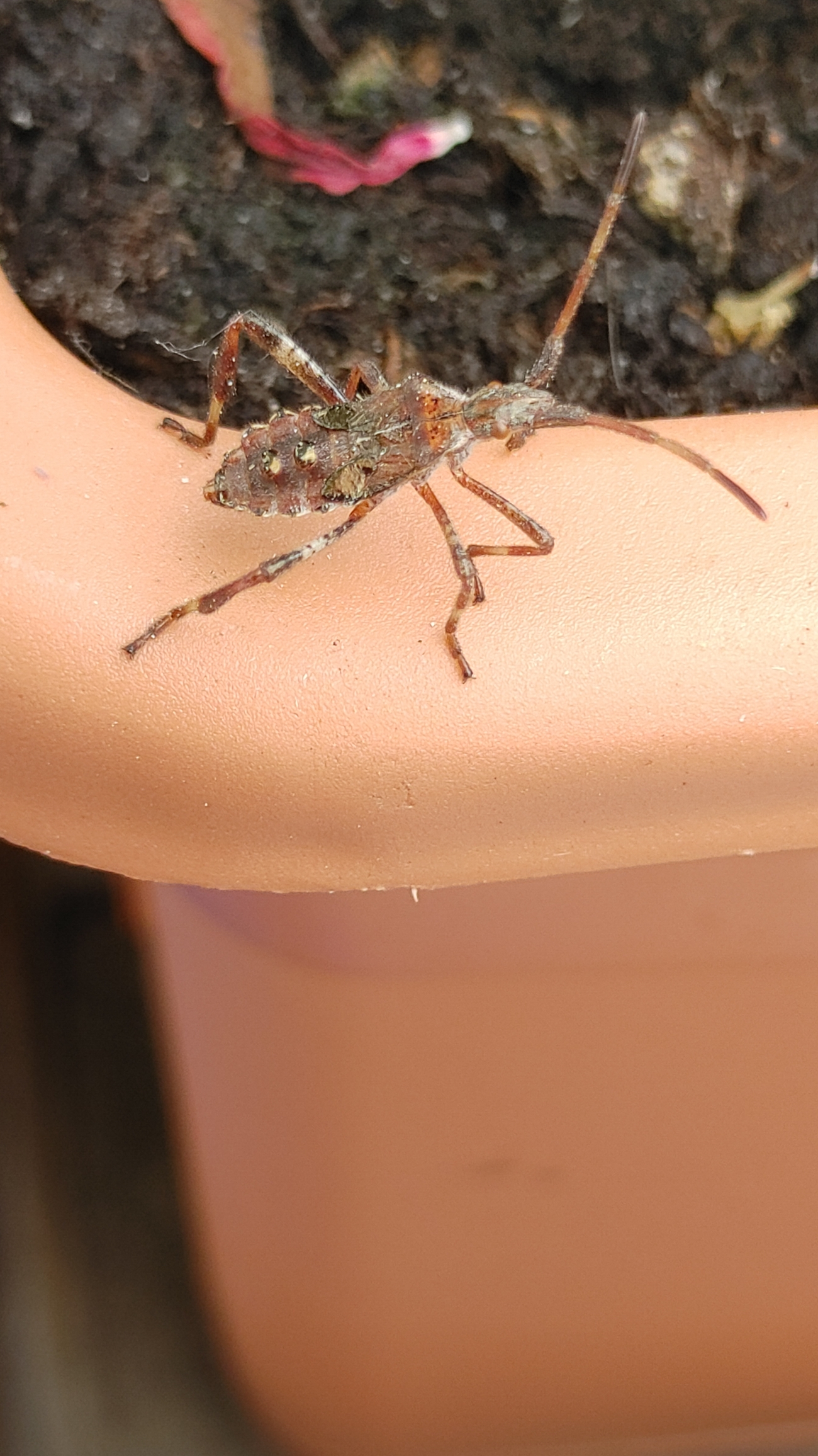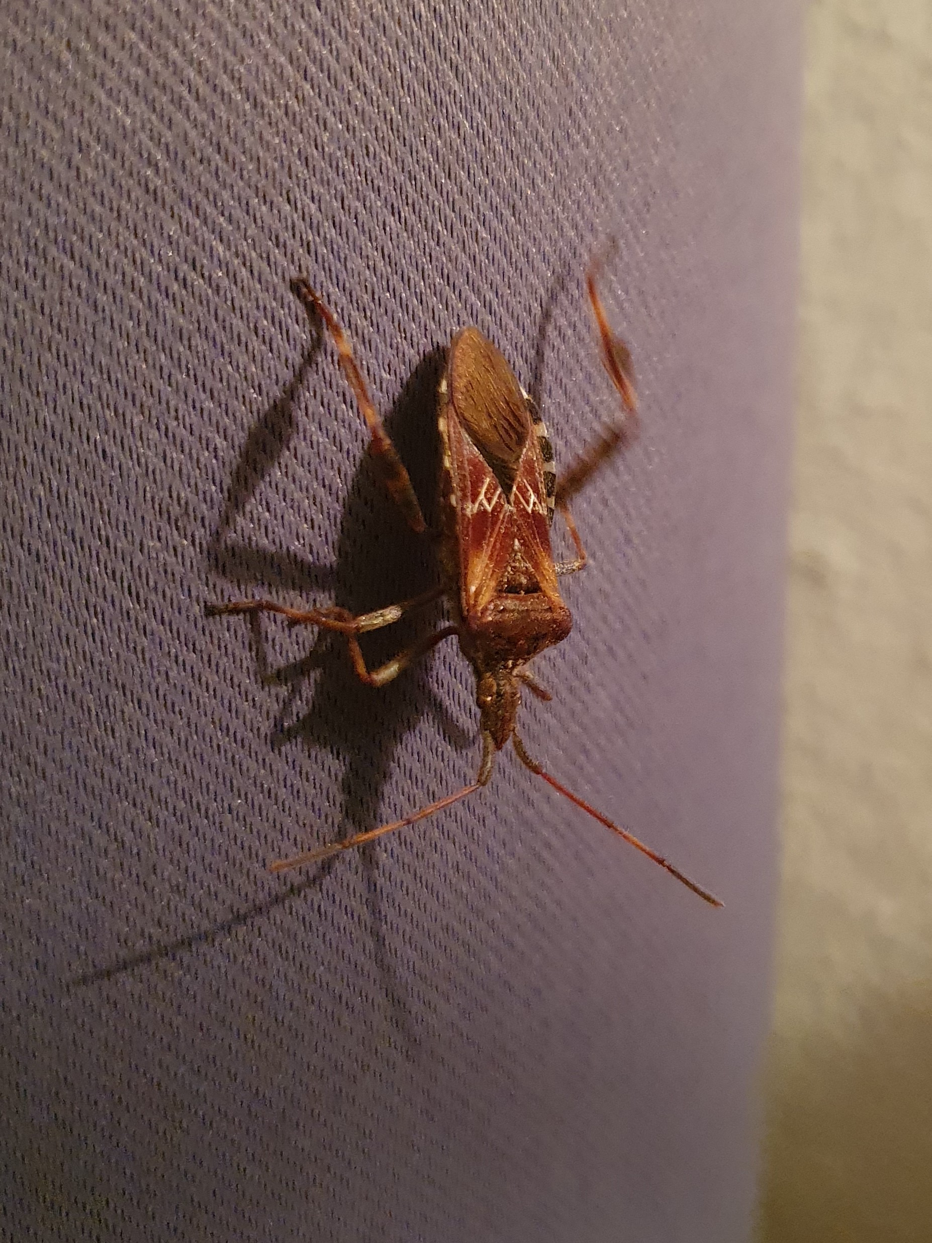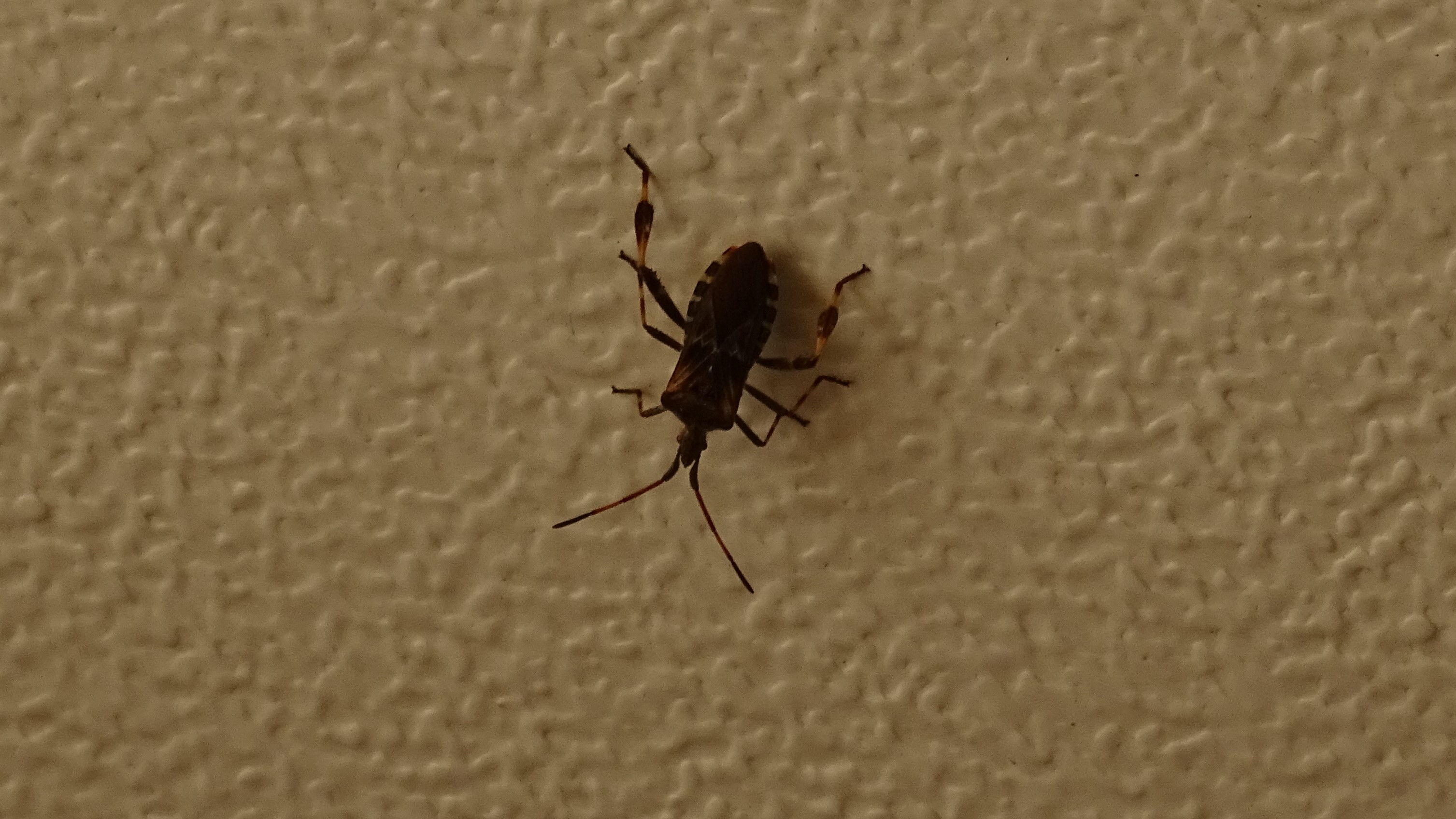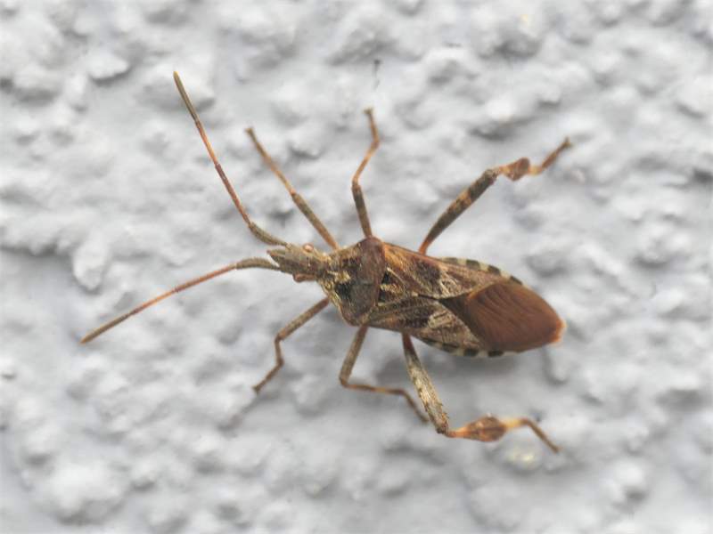 Larve der Amerikanischen Zapfenwanze ( Leptoglossus occidentalis). Deutschland, Baden-Württemberg, Baden-Baden, einzeln stehende Kiefer nord-nord-westlich Ortsteil Sandweier, 30.06.2012 (© Michael Münch)( Bild vergrößern)