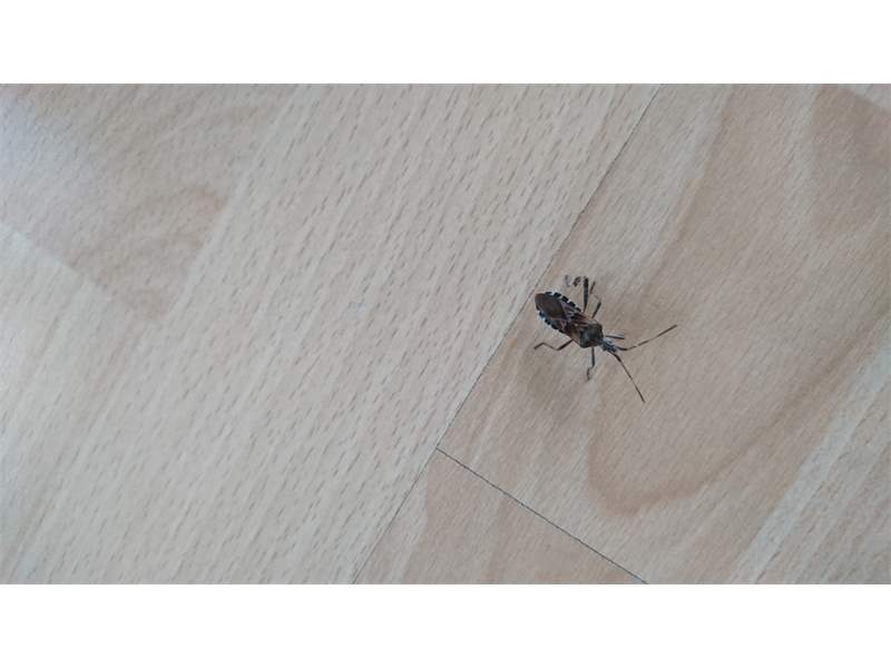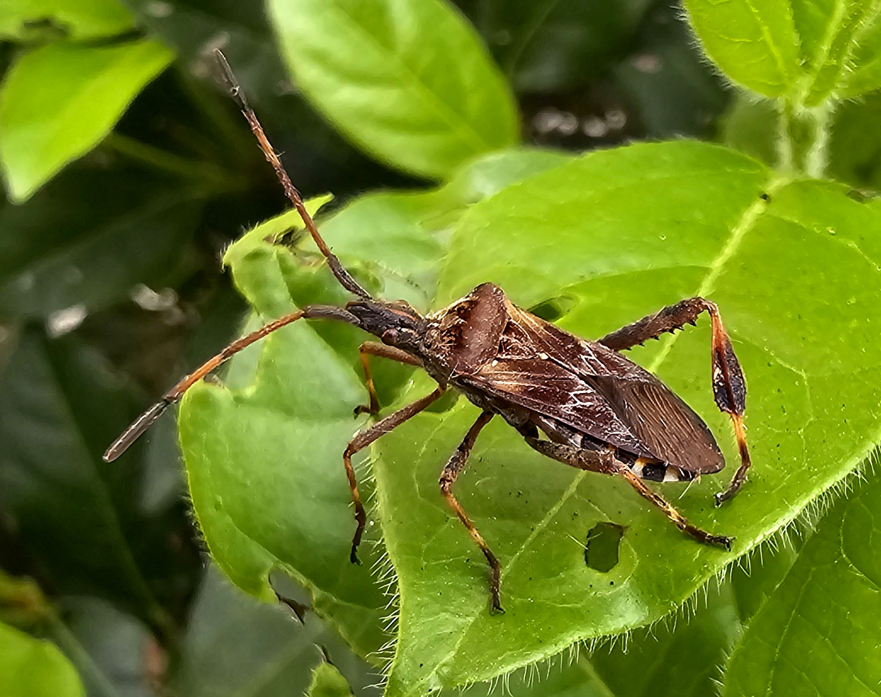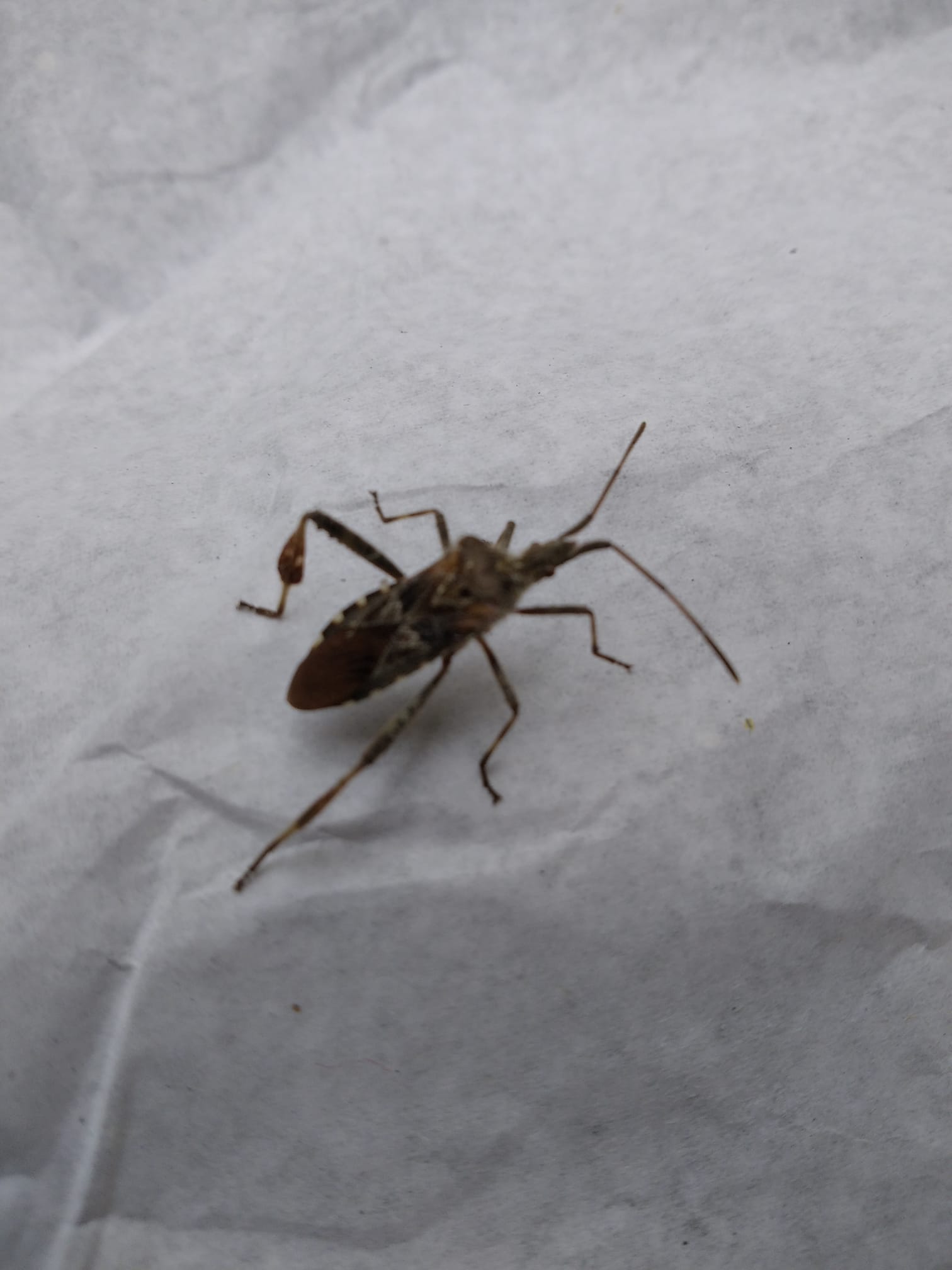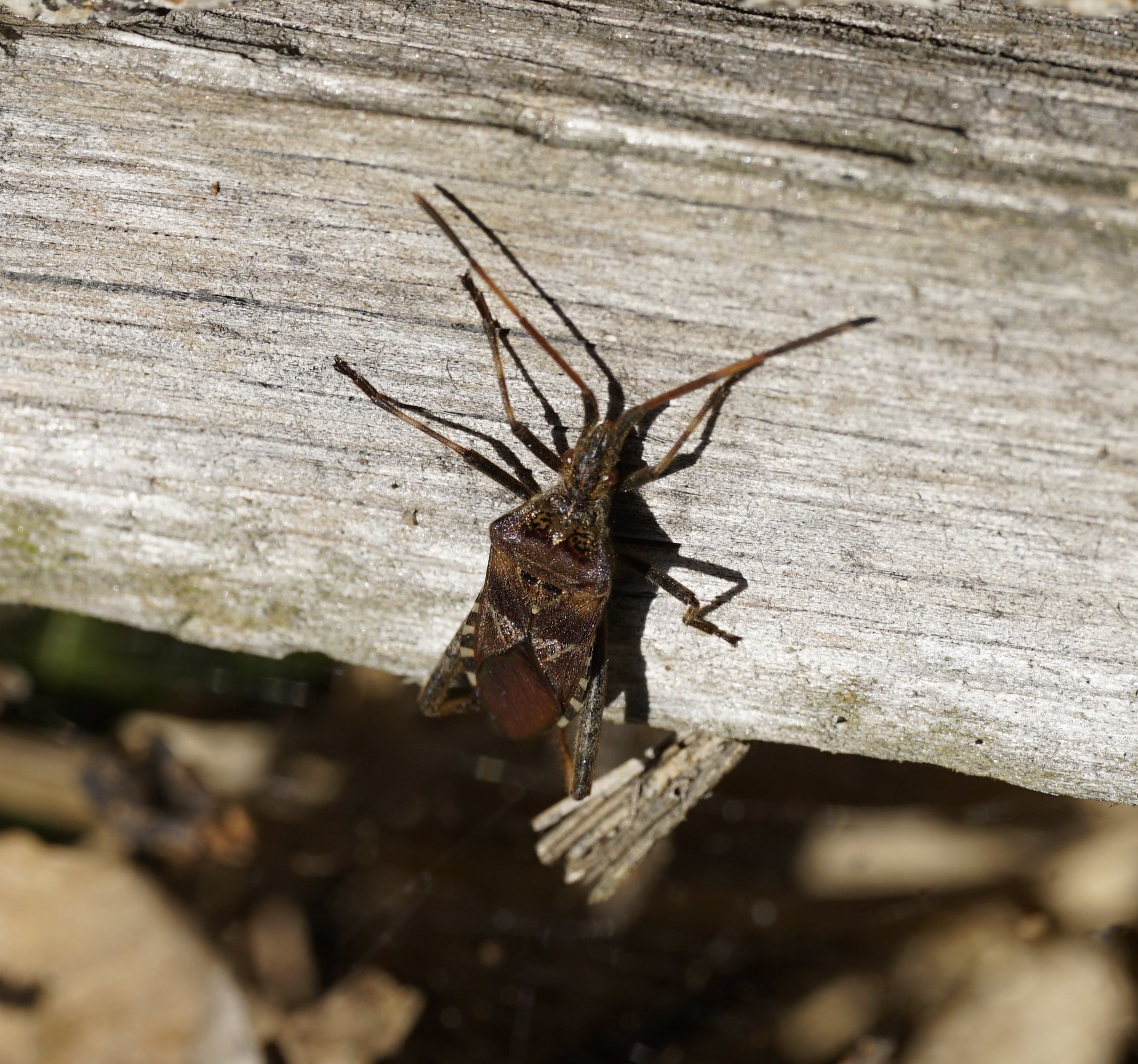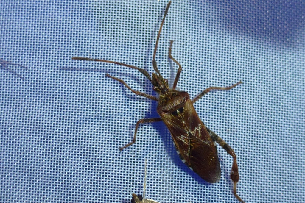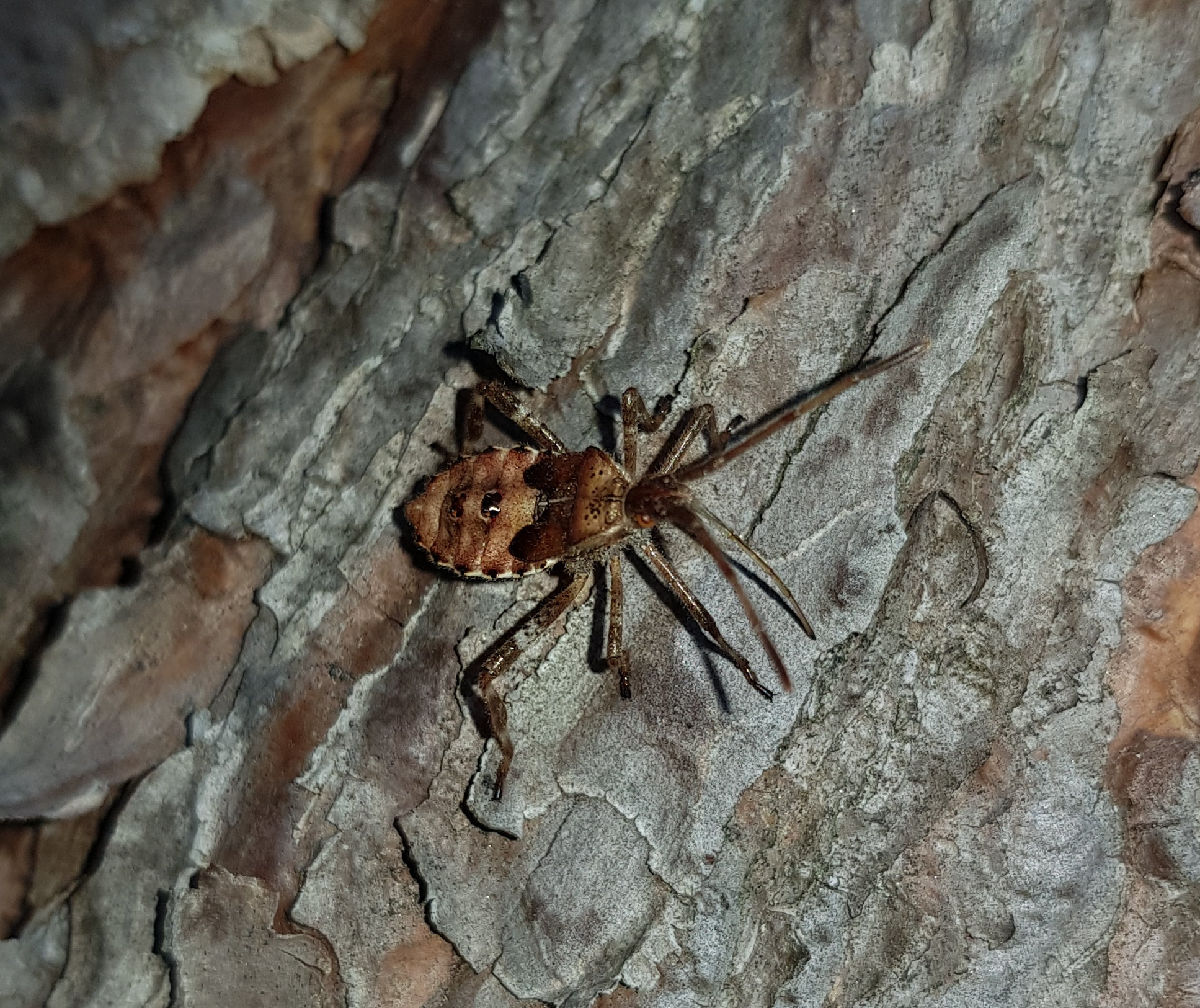 Larve der Amerikanischen Zapfenwanze ( Leptoglossus occidentalis). Deutschland, Baden-Württemberg, Baden-Baden, einzeln stehende Kiefer nord-nord-westlich Ortsteil Sandweier, 30.06.2012 (© Michael Münch)( Bild vergrößern)