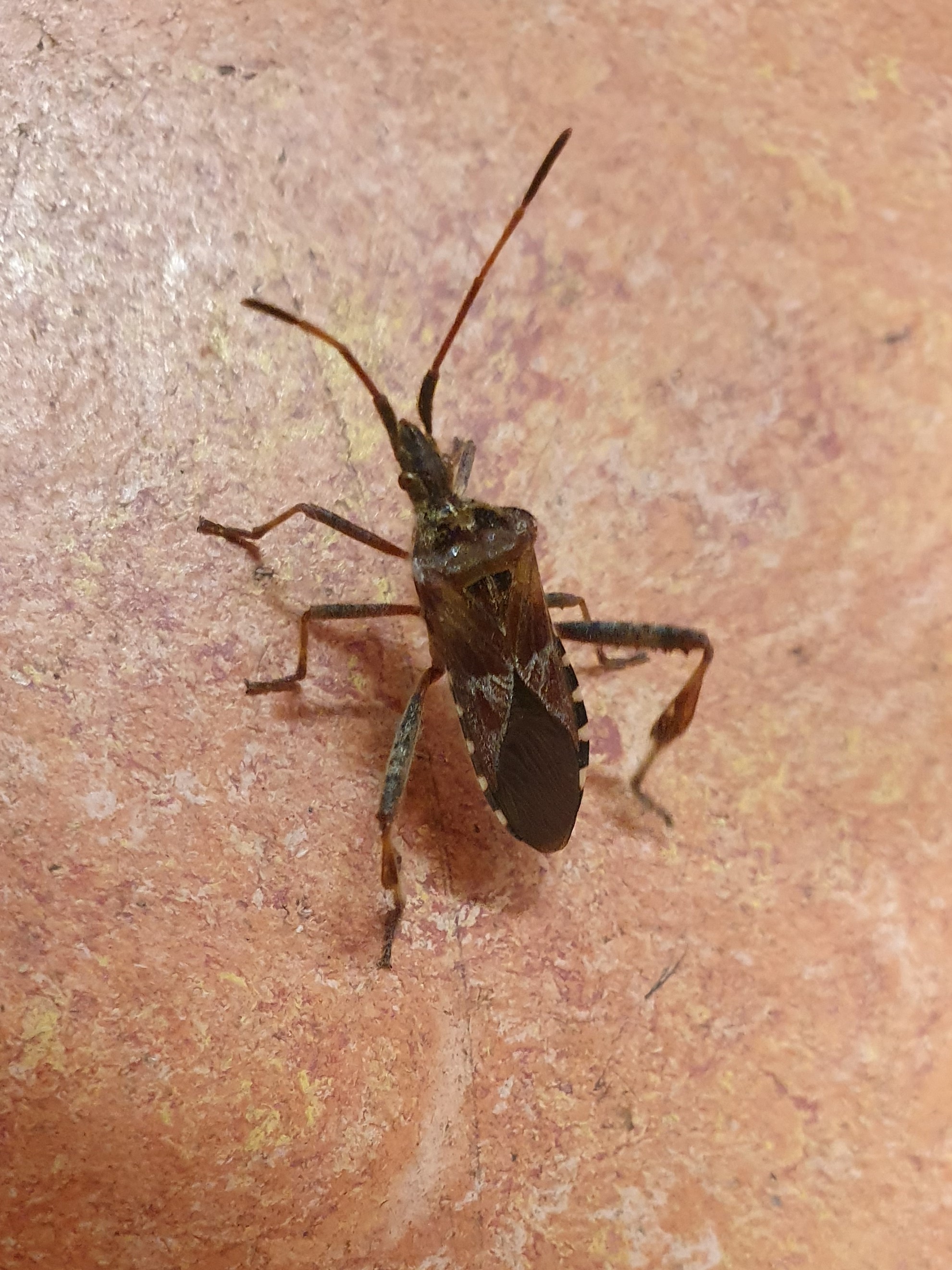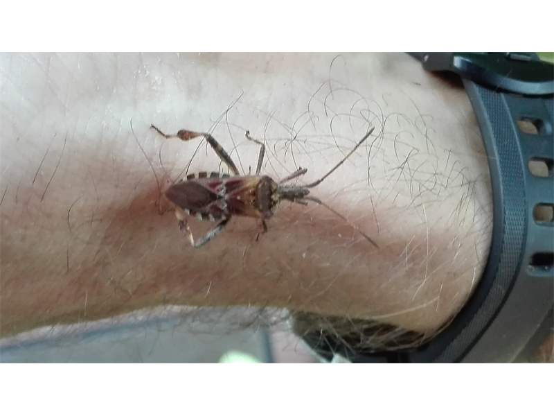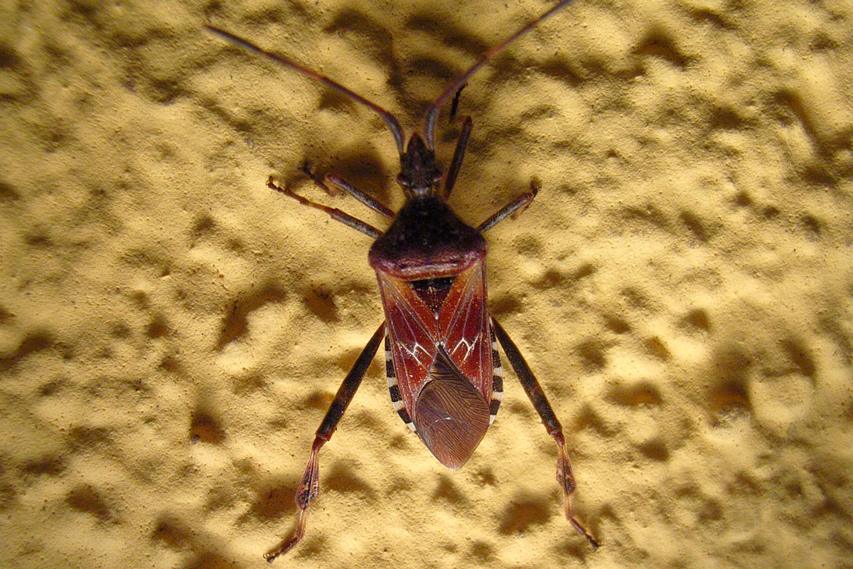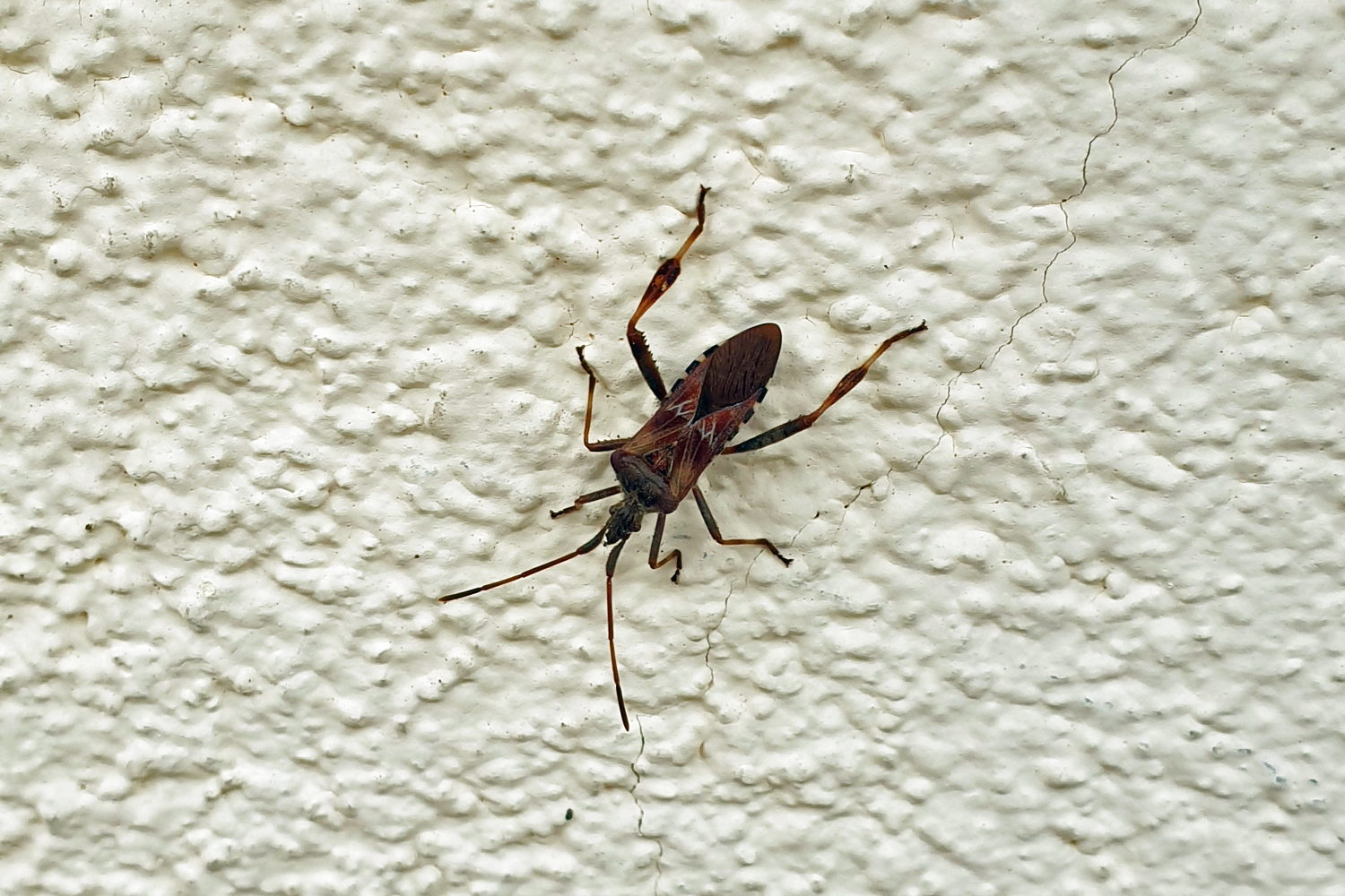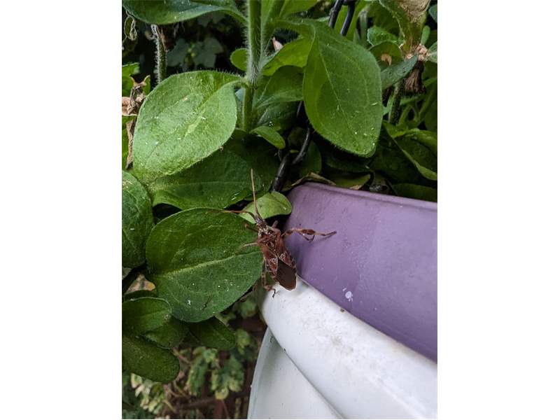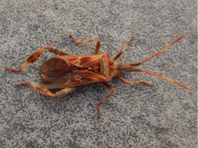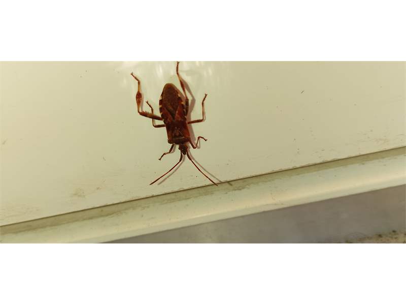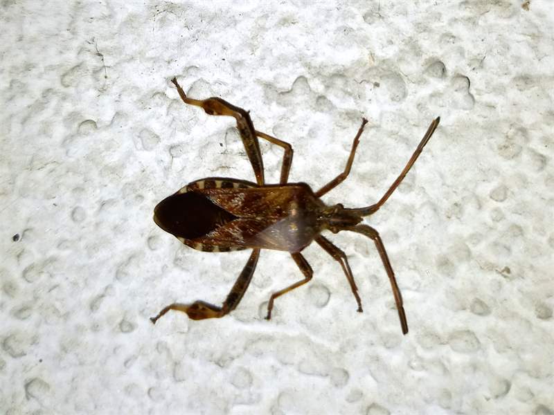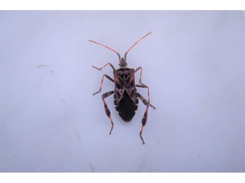 Larve der Amerikanischen Zapfenwanze ( Leptoglossus occidentalis). Deutschland, Baden-Württemberg, Baden-Baden, einzeln stehende Kiefer nord-nord-westlich Ortsteil Sandweier, 30.06.2012 (© Michael Münch)( Bild vergrößern)