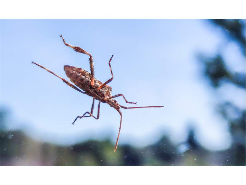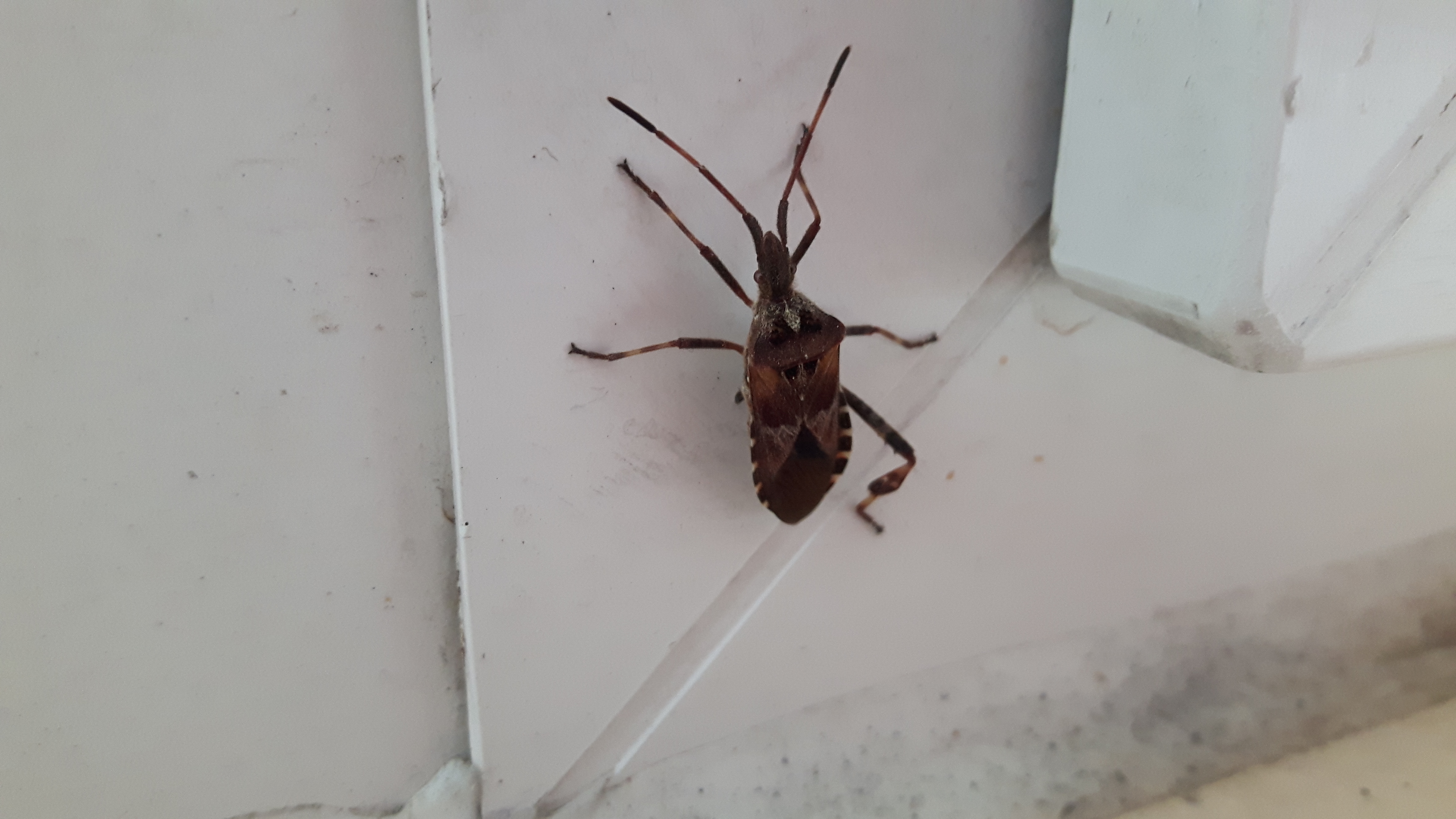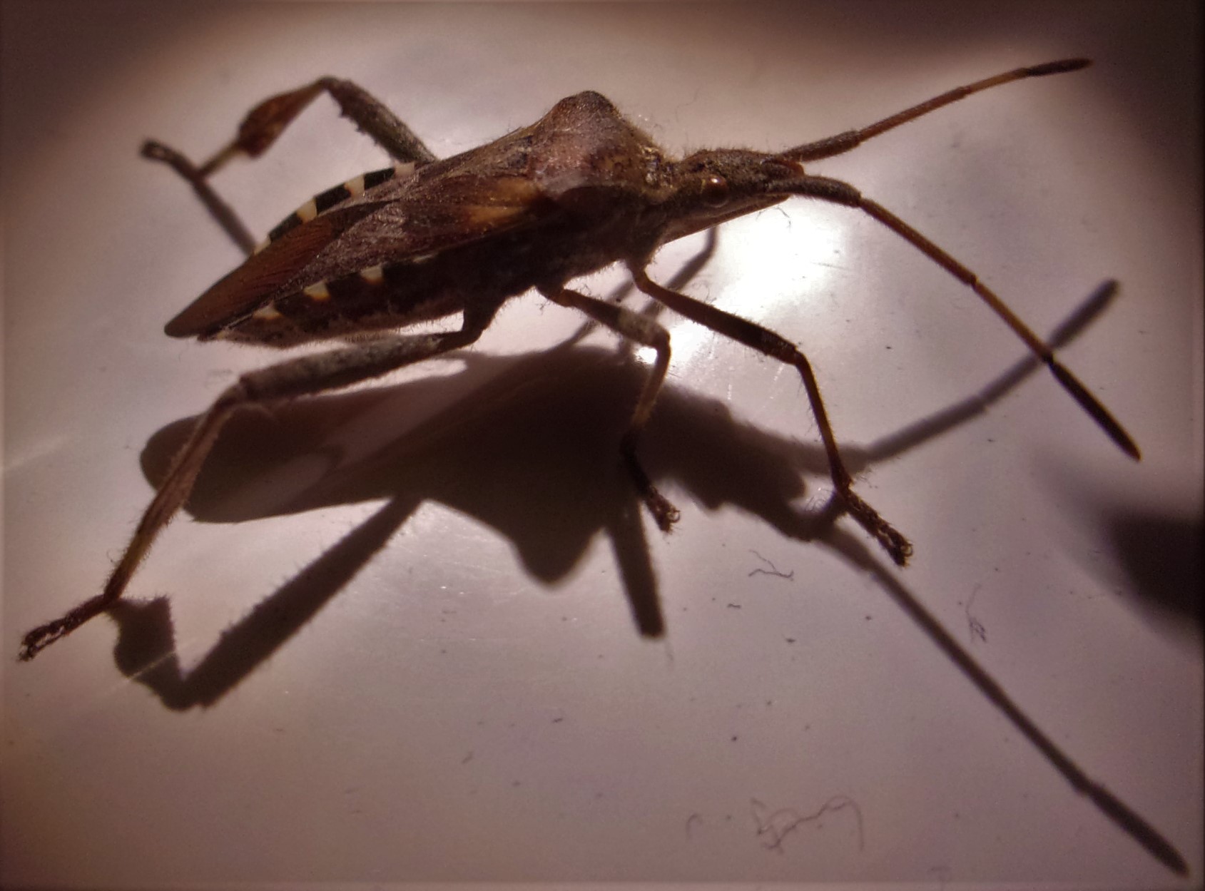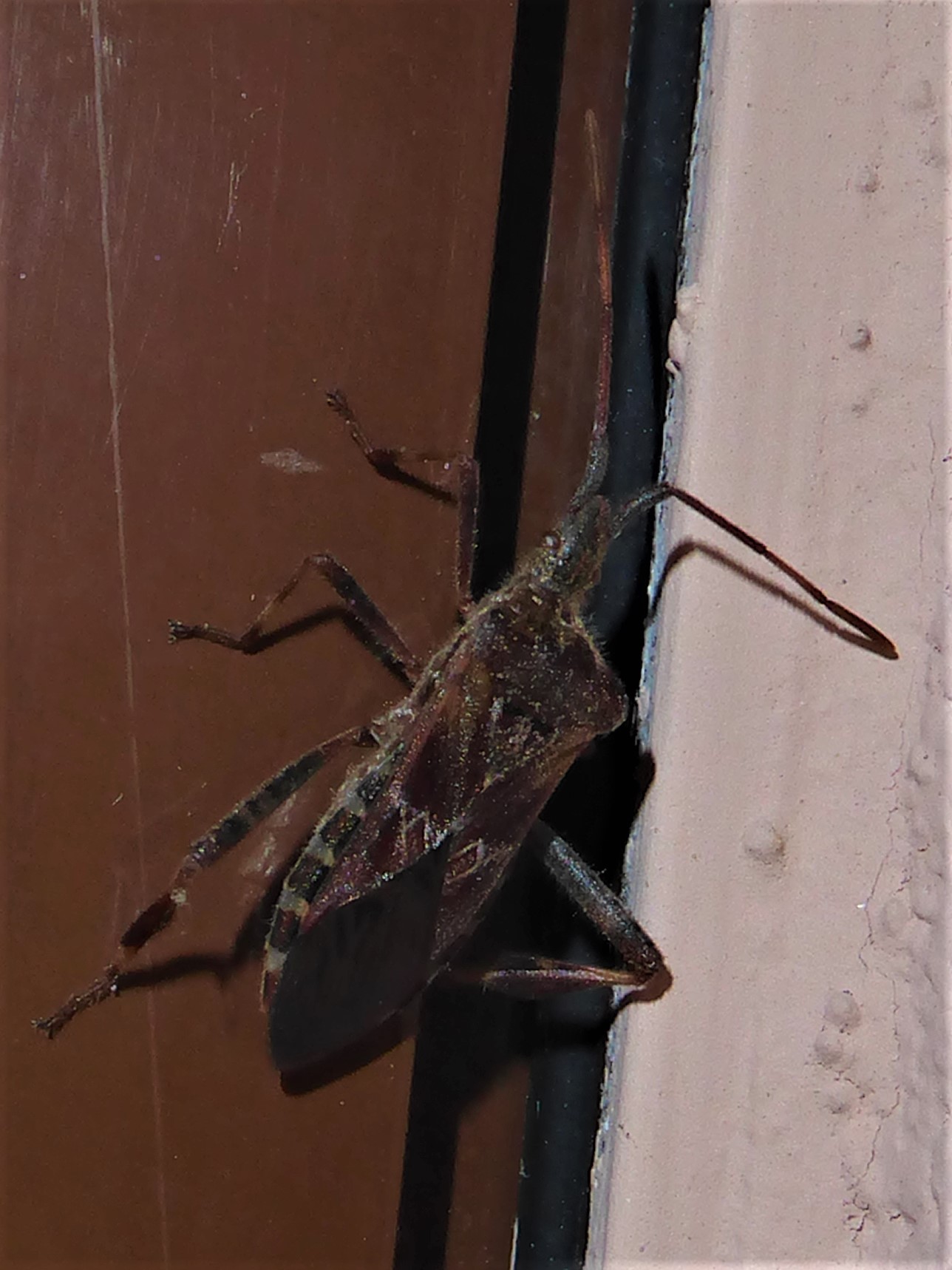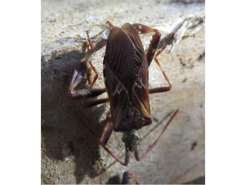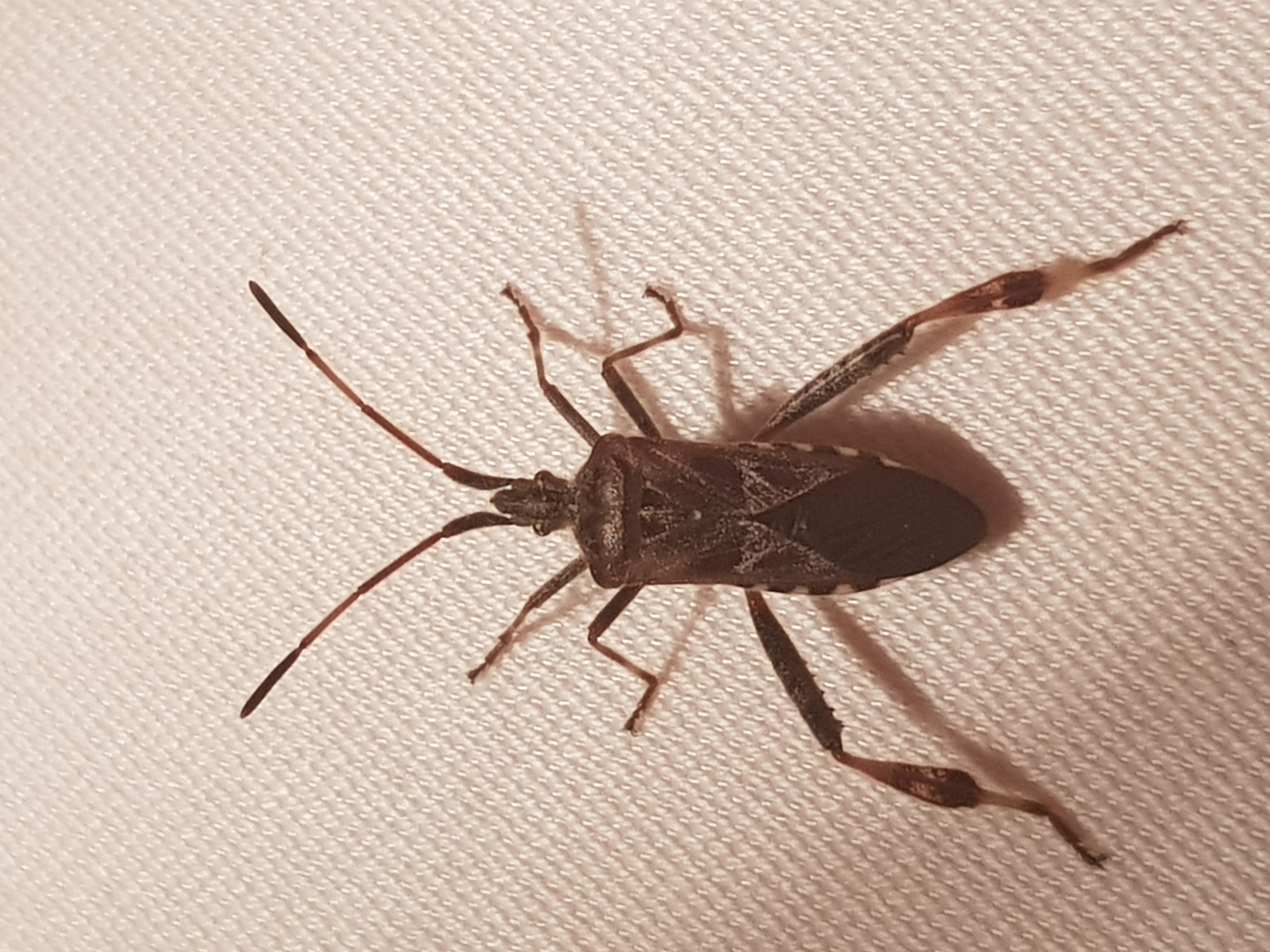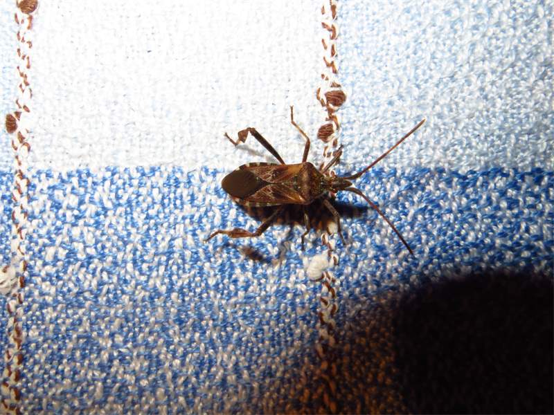 Larve der Amerikanischen Zapfenwanze ( Leptoglossus occidentalis). Deutschland, Baden-Württemberg, Baden-Baden, einzeln stehende Kiefer nord-nord-westlich Ortsteil Sandweier, 30.06.2012 (© Michael Münch)( Bild vergrößern)