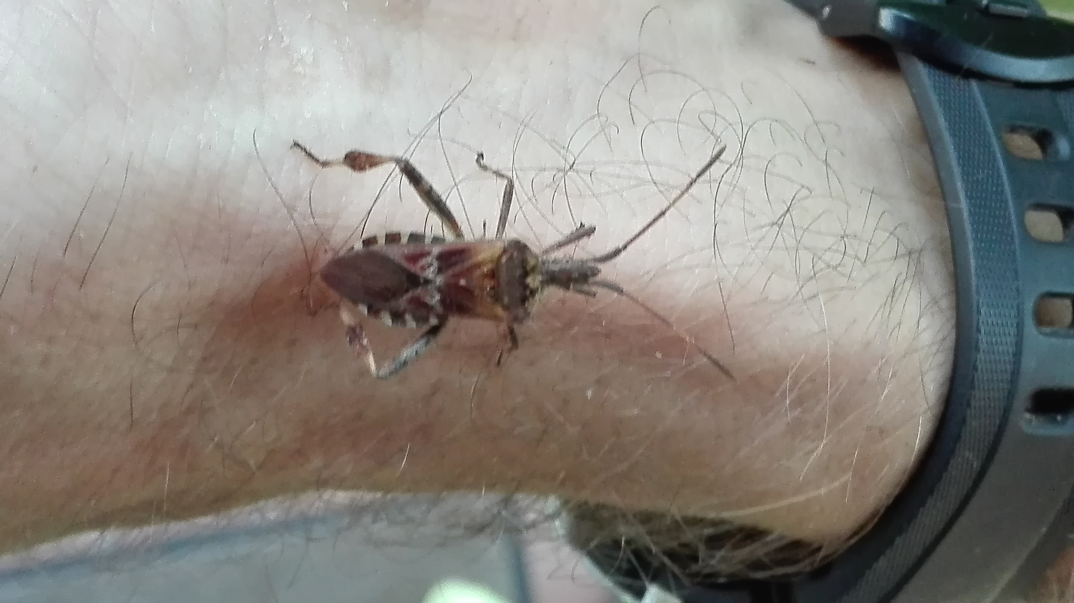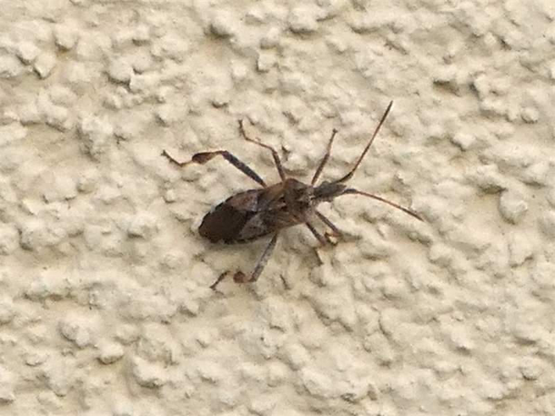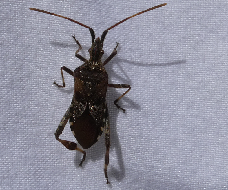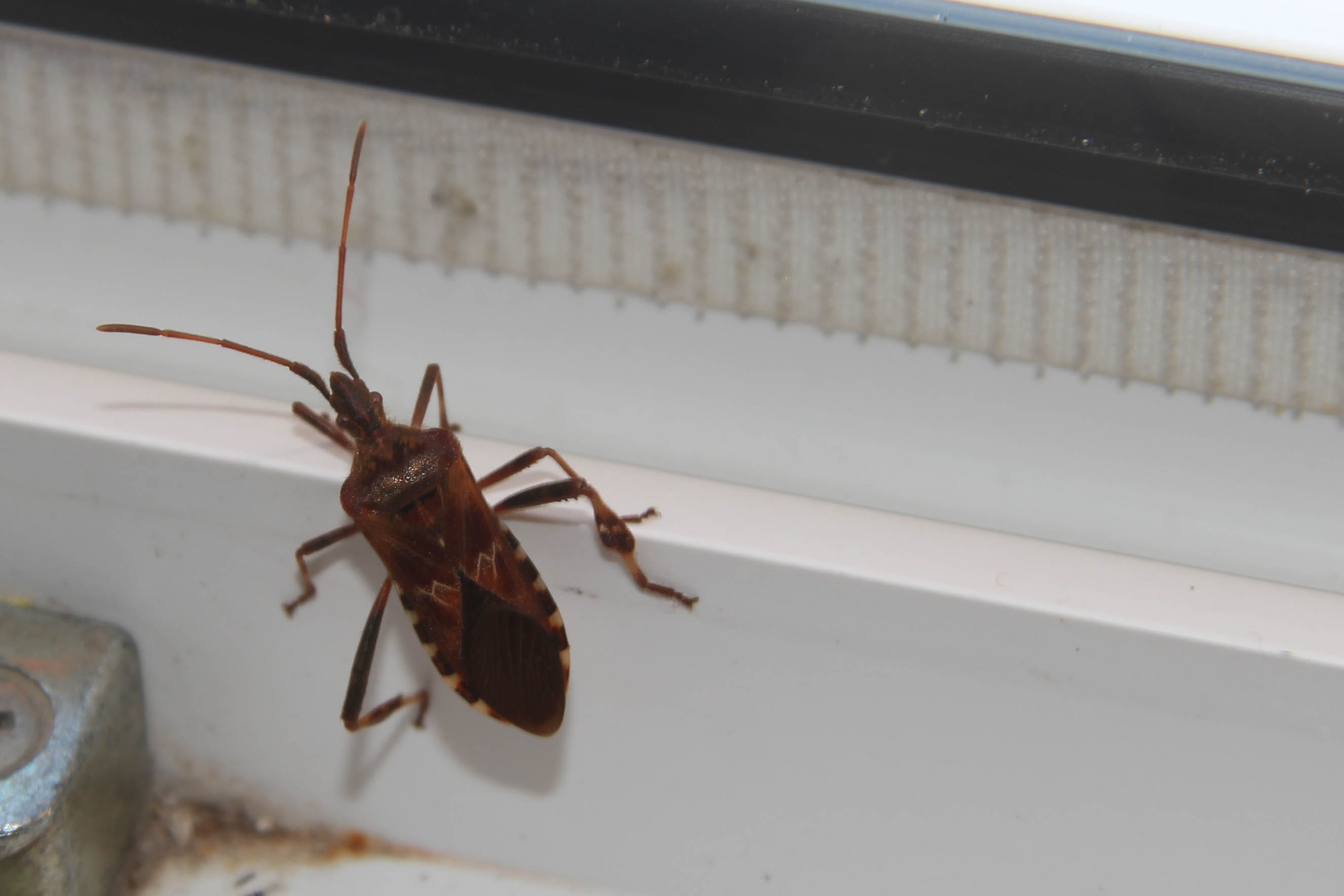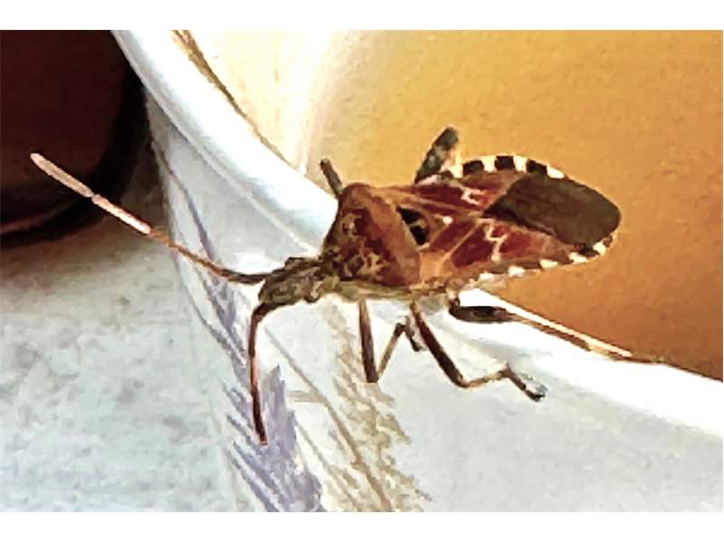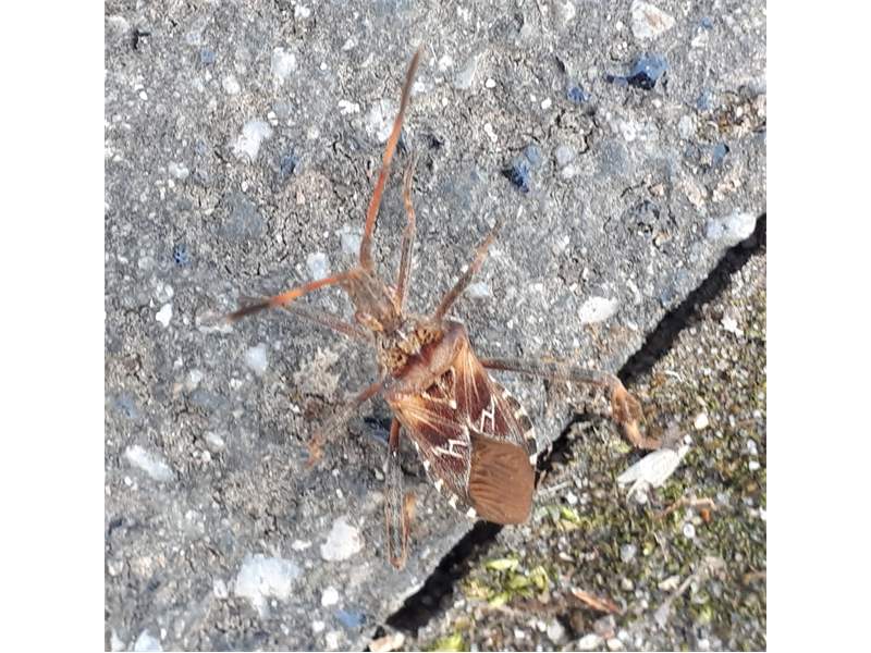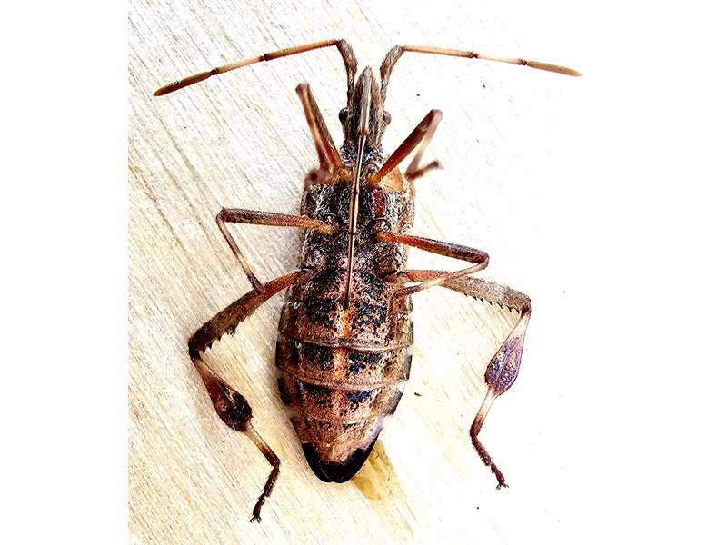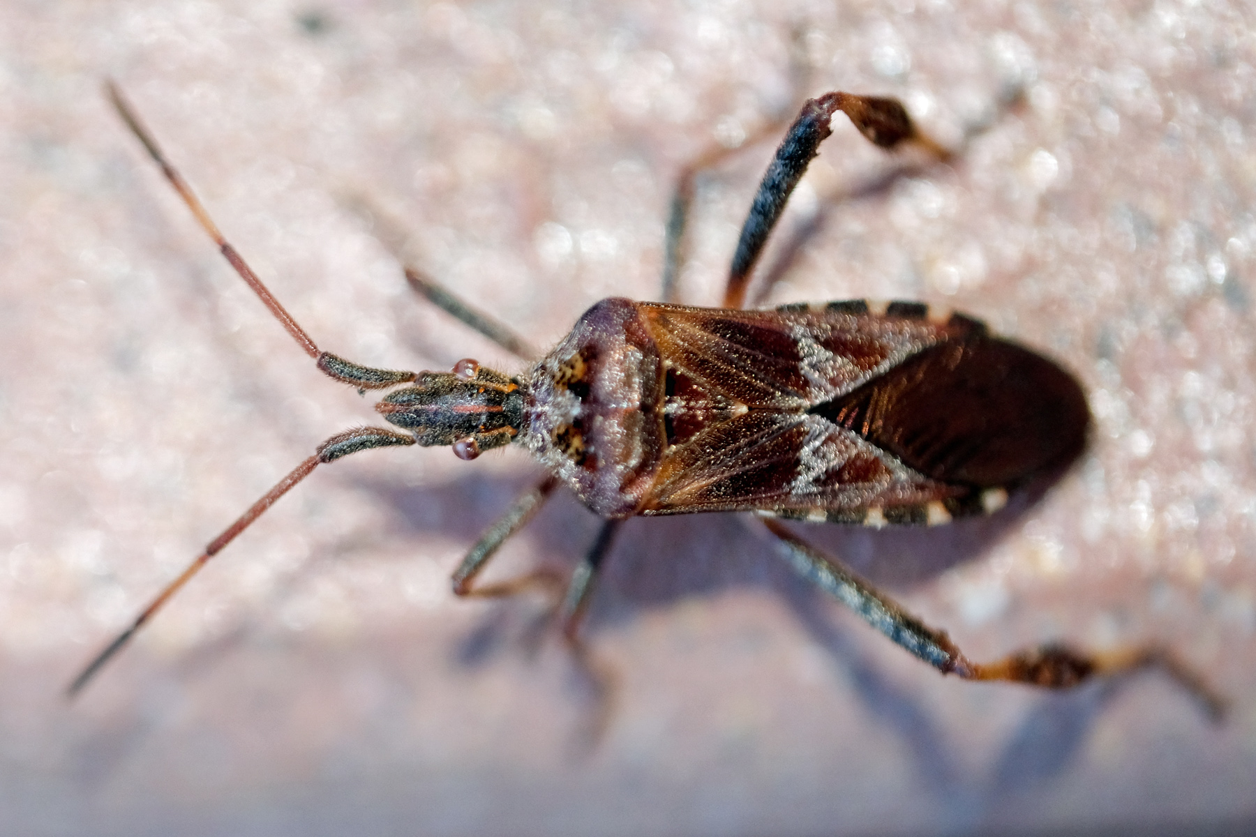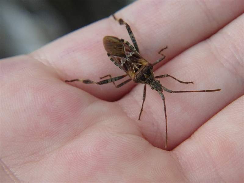 Larve der Amerikanischen Zapfenwanze ( Leptoglossus occidentalis). Deutschland, Baden-Württemberg, Baden-Baden, einzeln stehende Kiefer nord-nord-westlich Ortsteil Sandweier, 30.06.2012 (© Michael Münch)( Bild vergrößern)